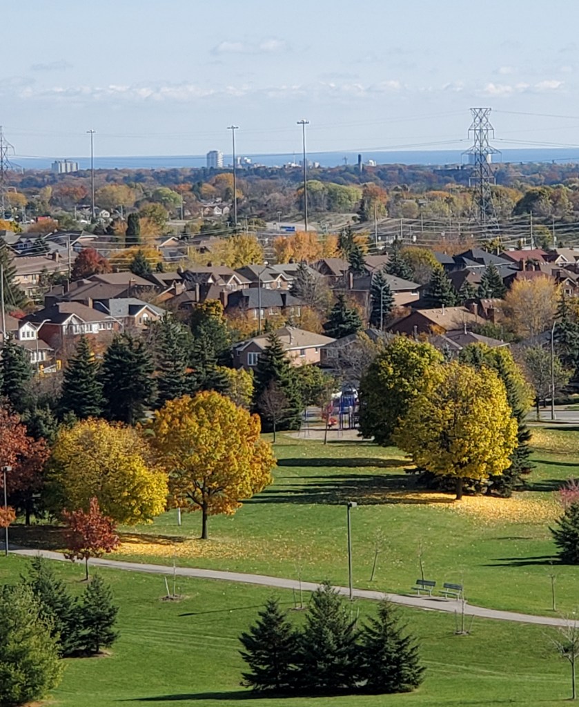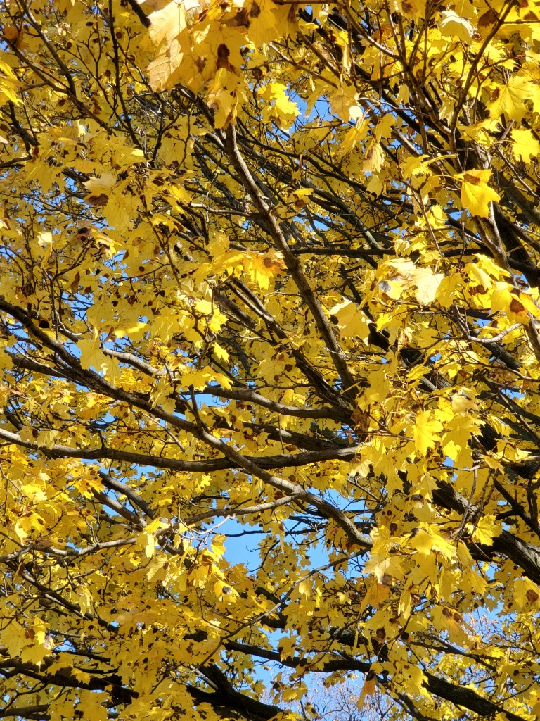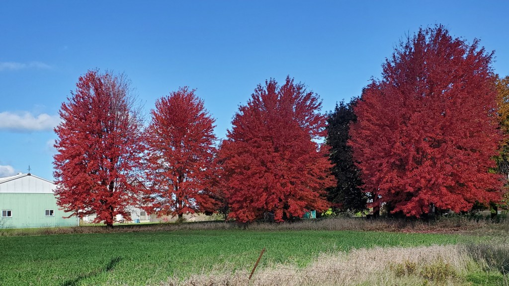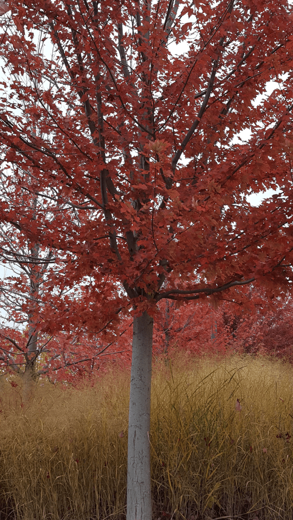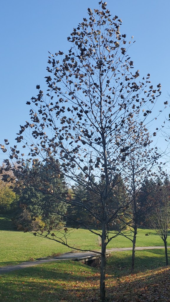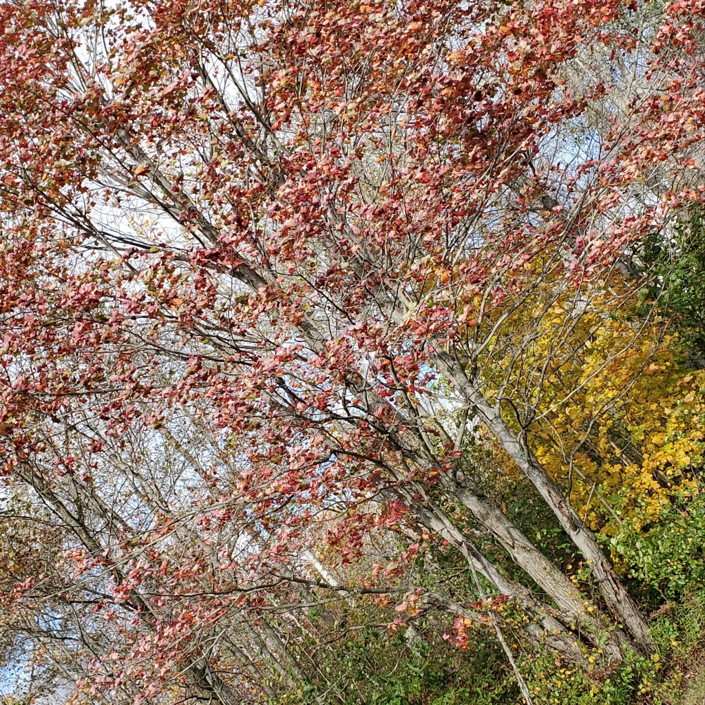 So refreshing to my eyes, so contrasting, yet mingles with varied trees around