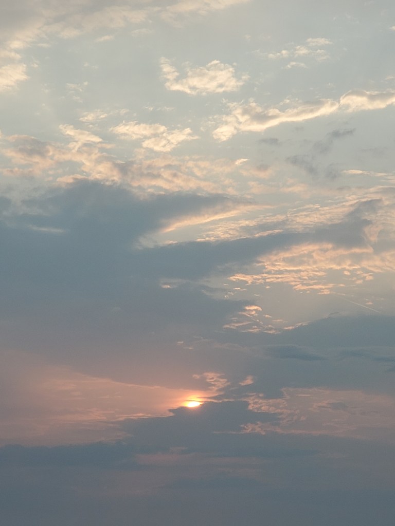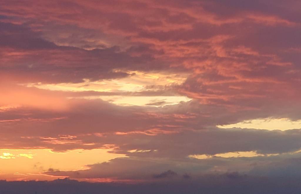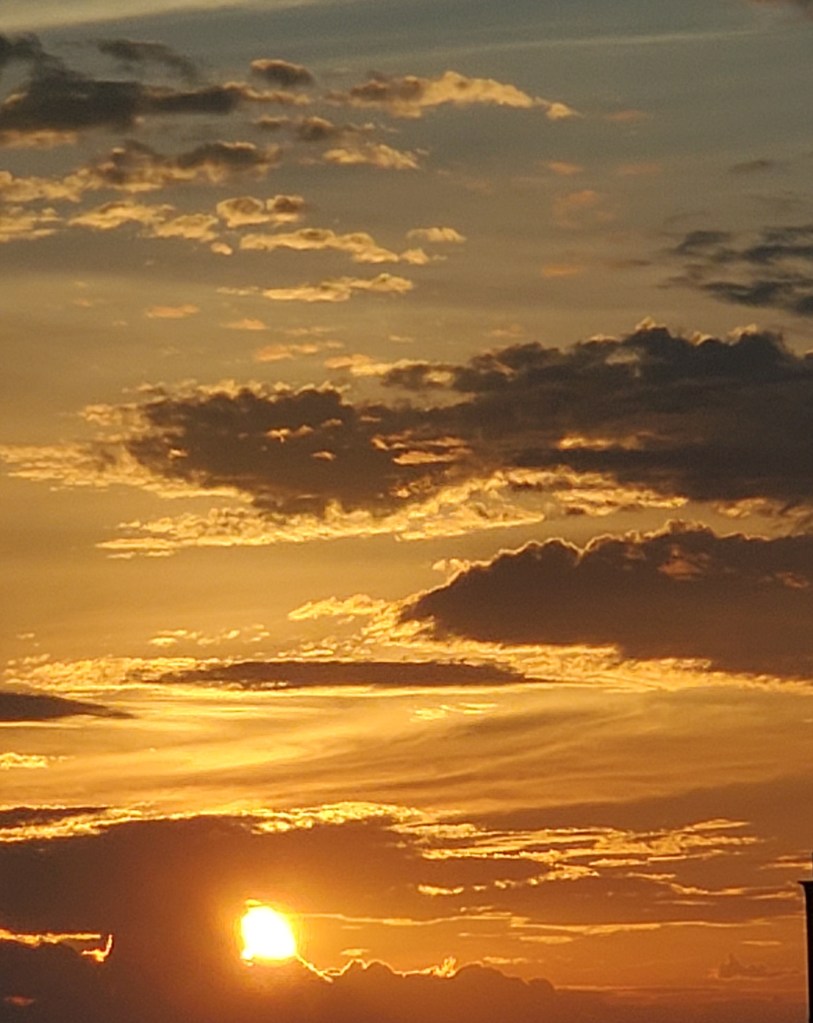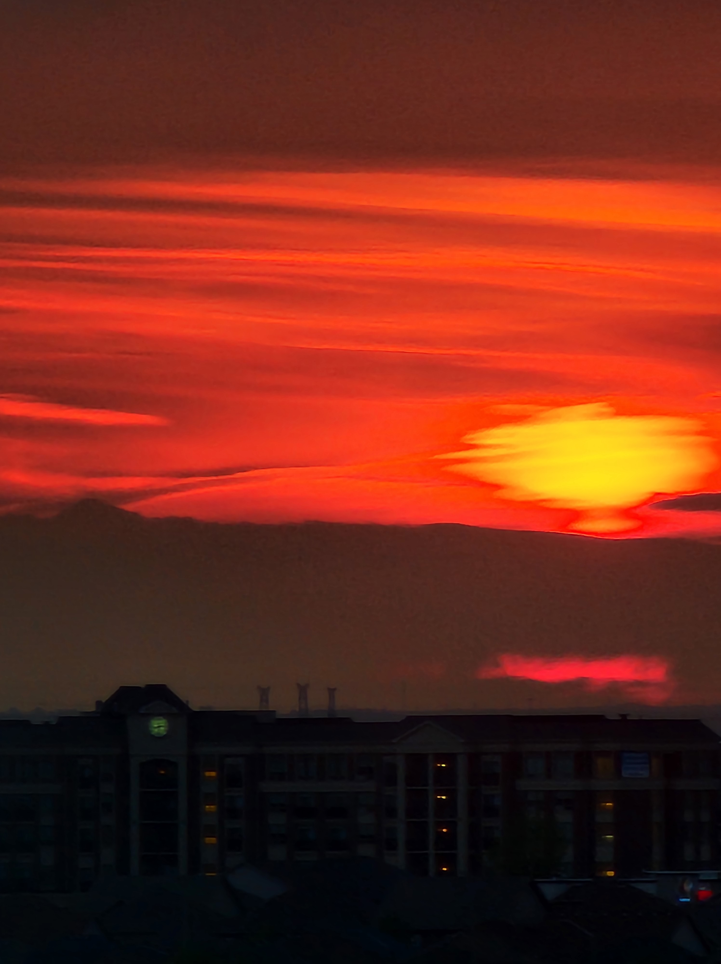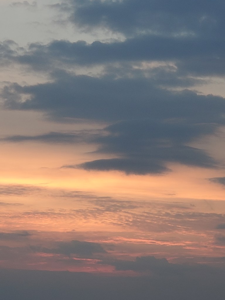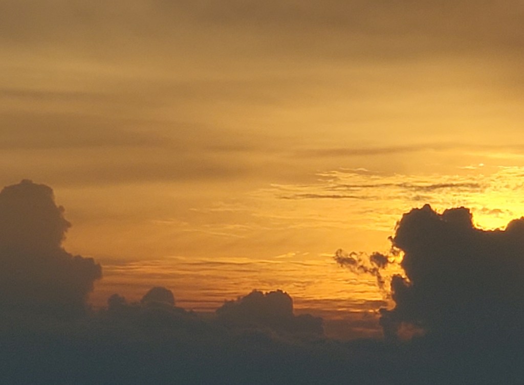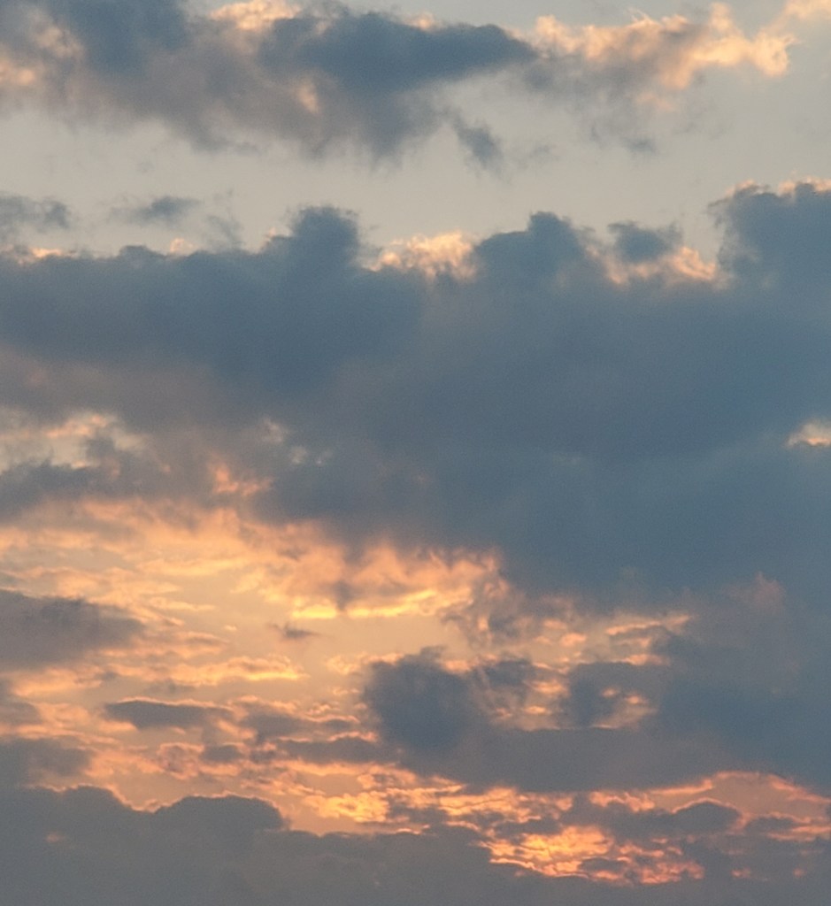 This morning, sunrise shared its golden-red light with clouds diffused gentle white