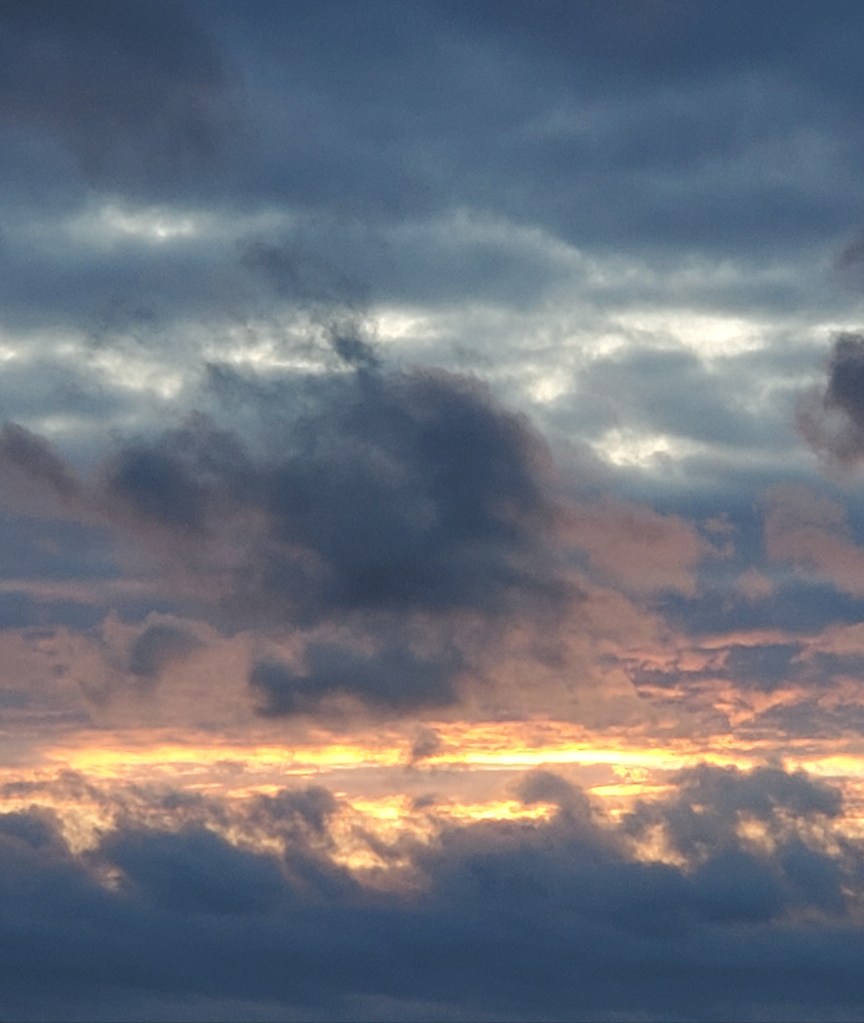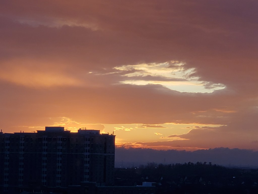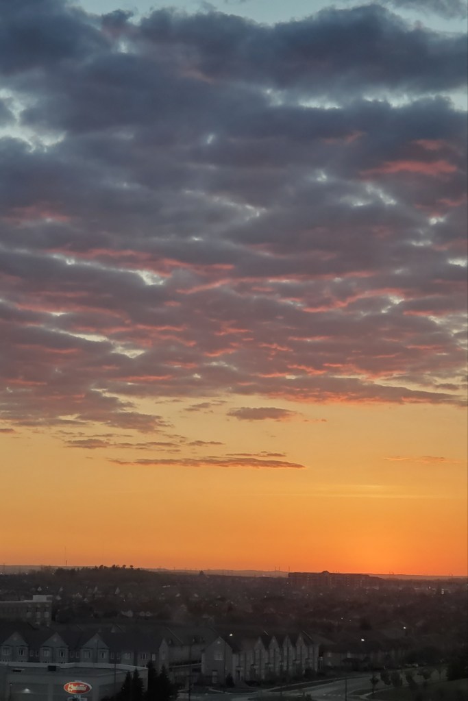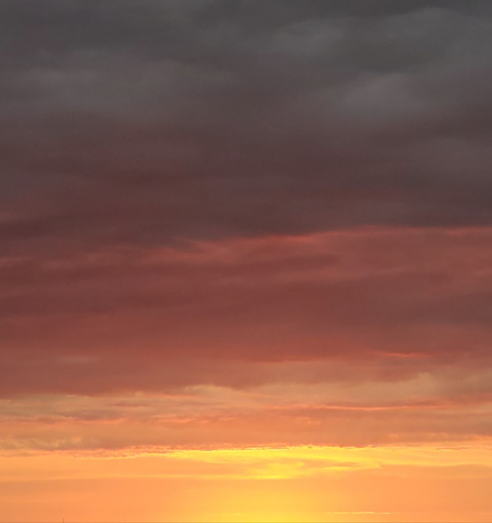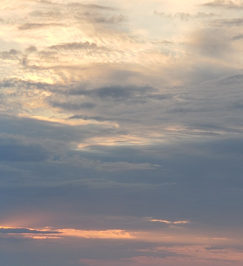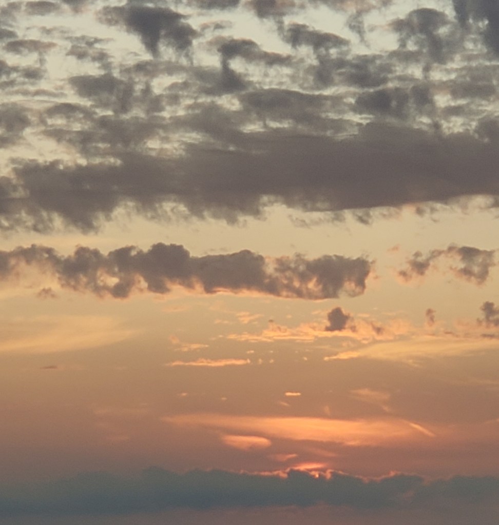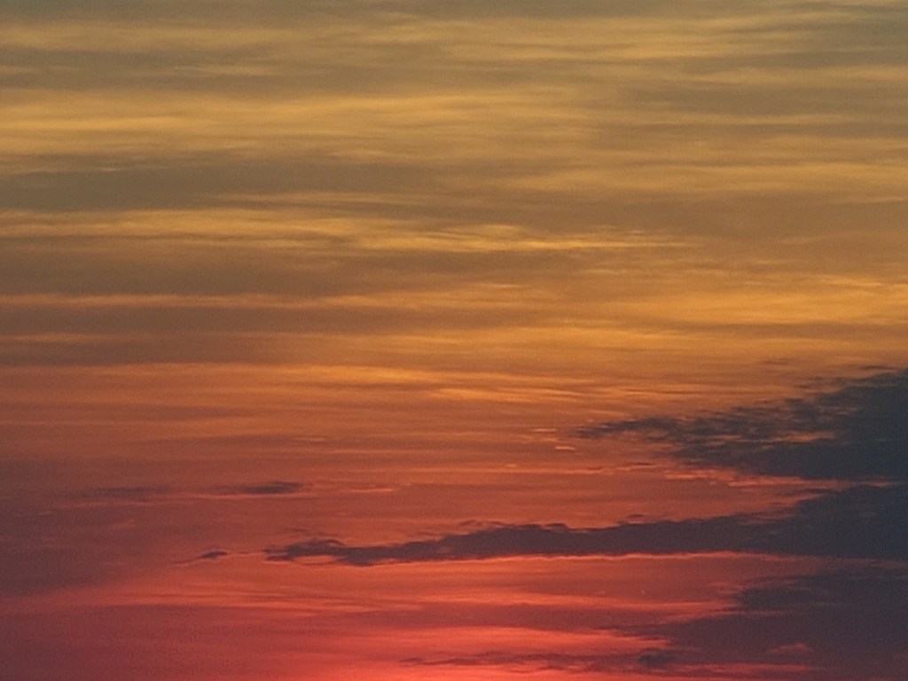 This morning, sunrise shared its golden-red light with clouds diffused gentle white
