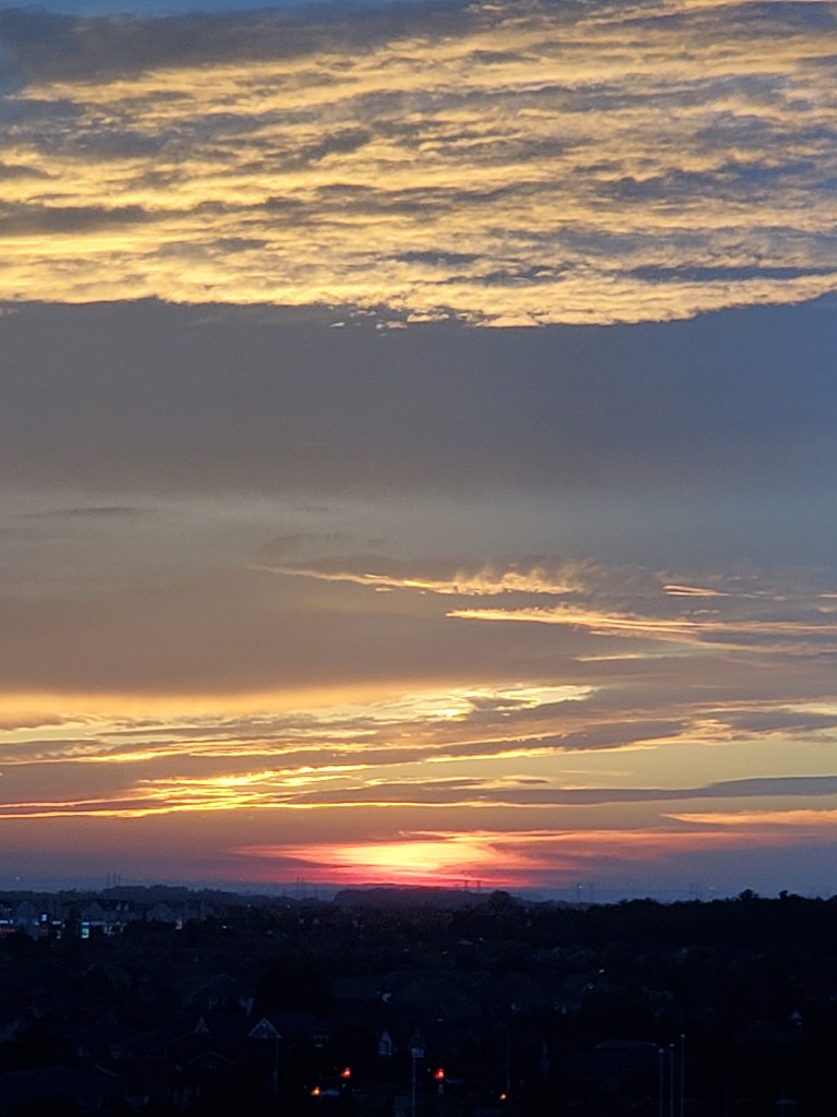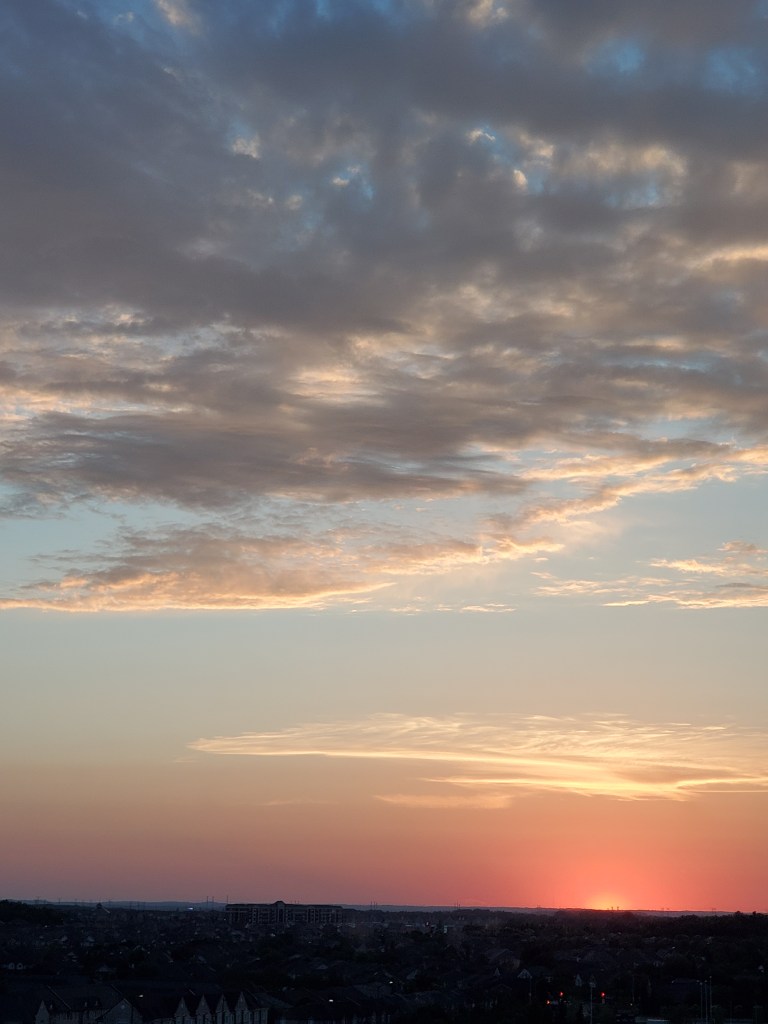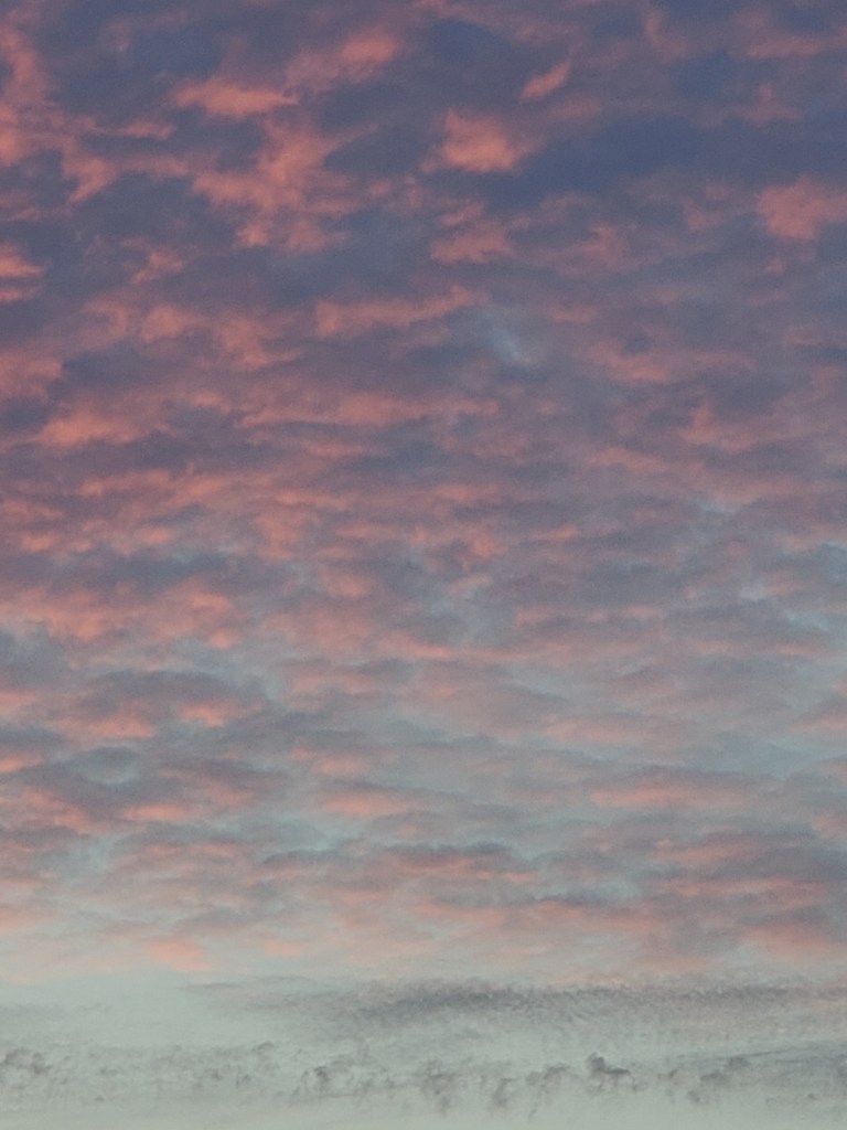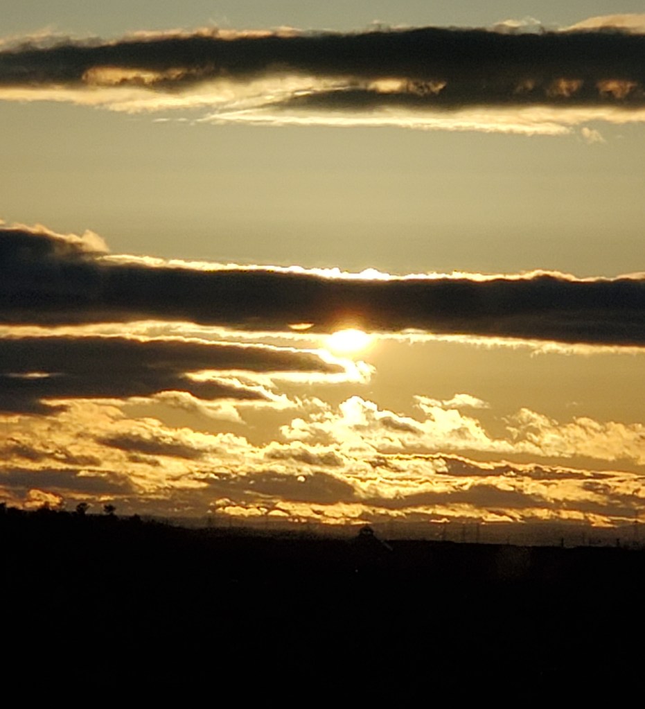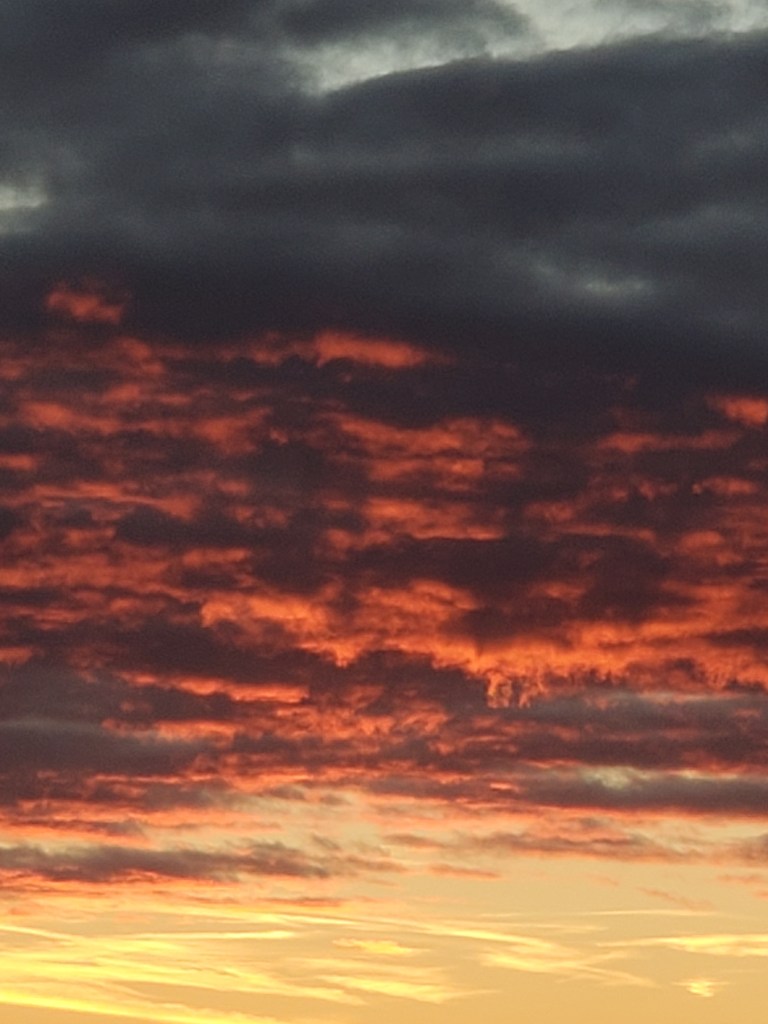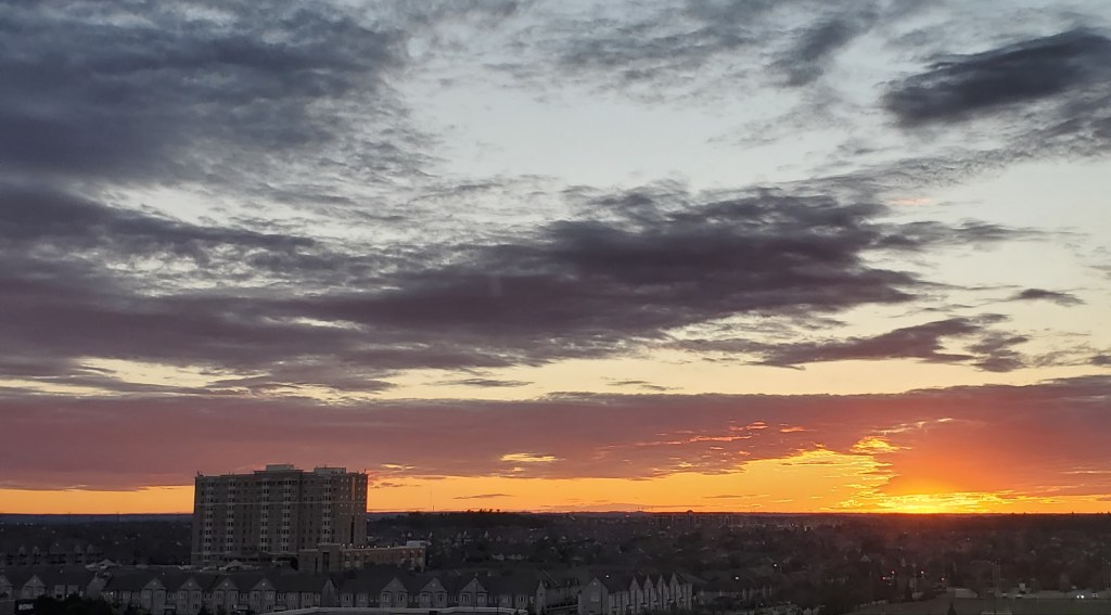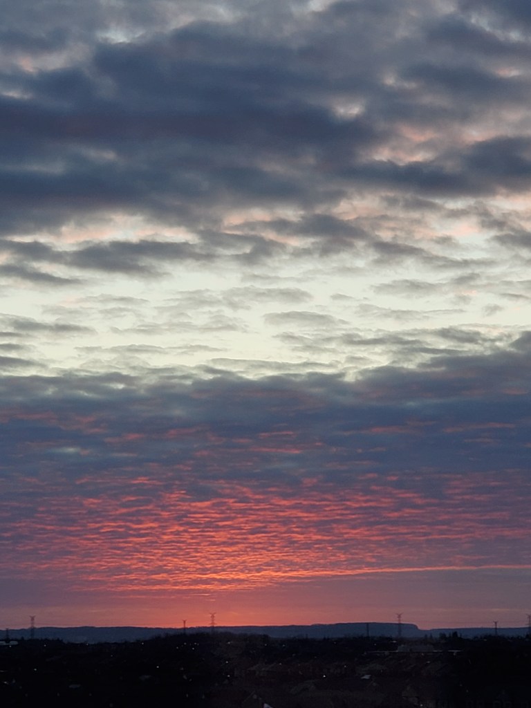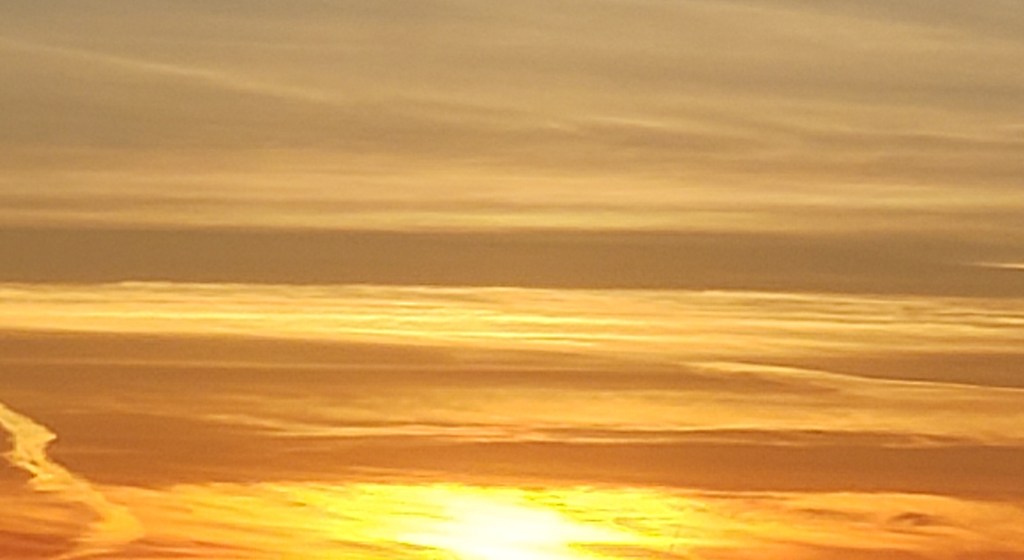 This morning, sunrise shared its golden-red light with clouds diffused gentle white