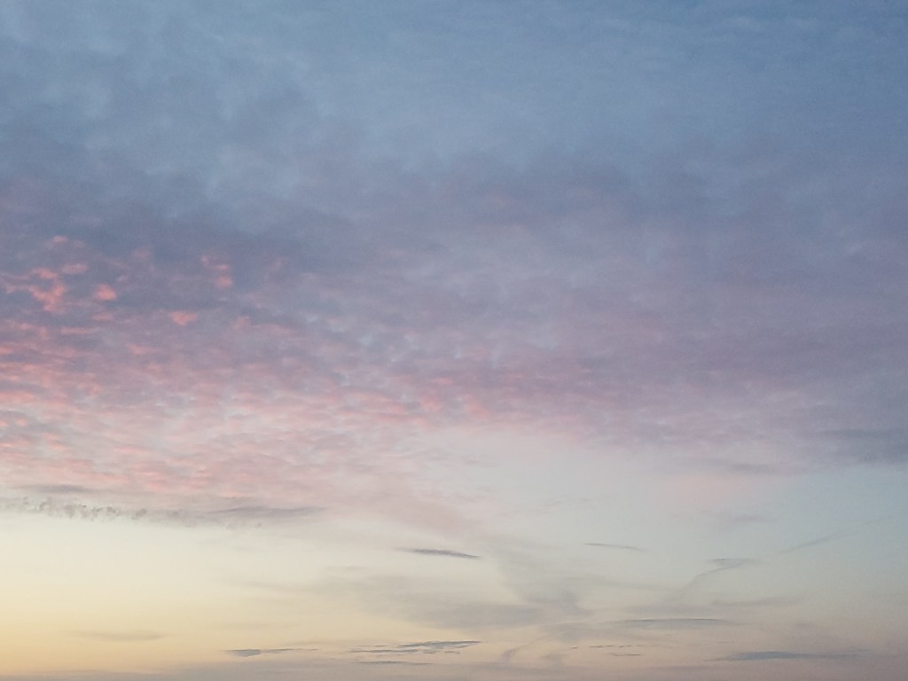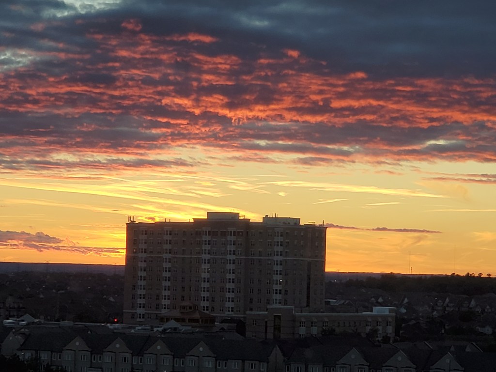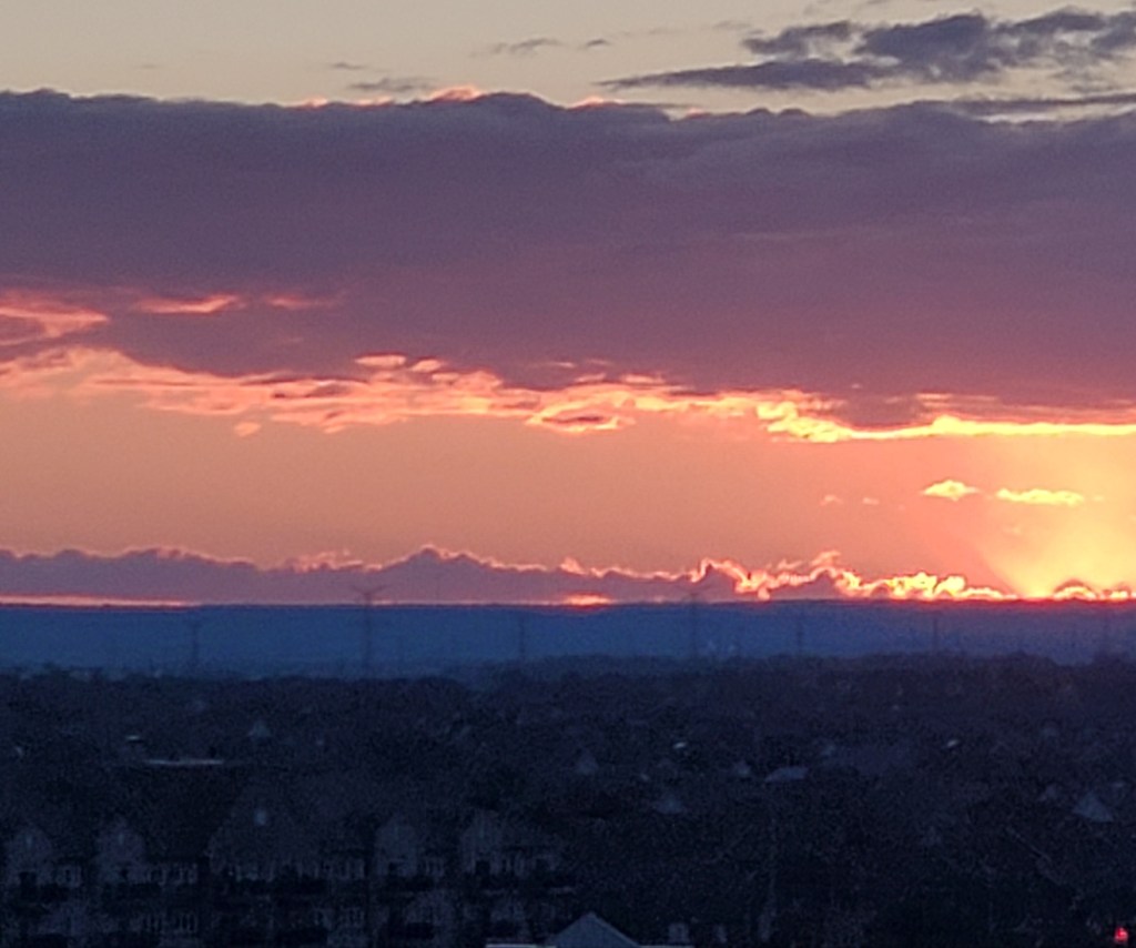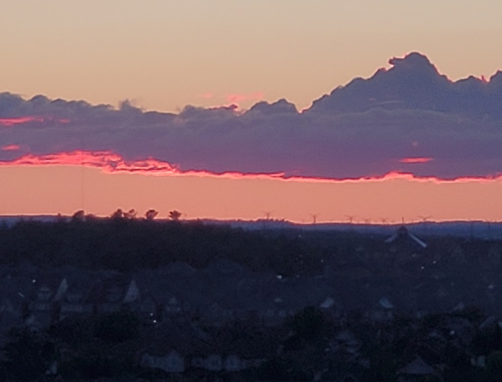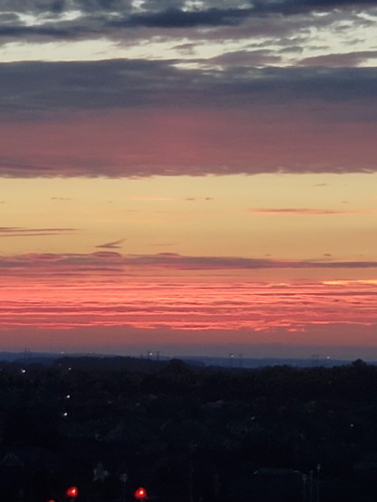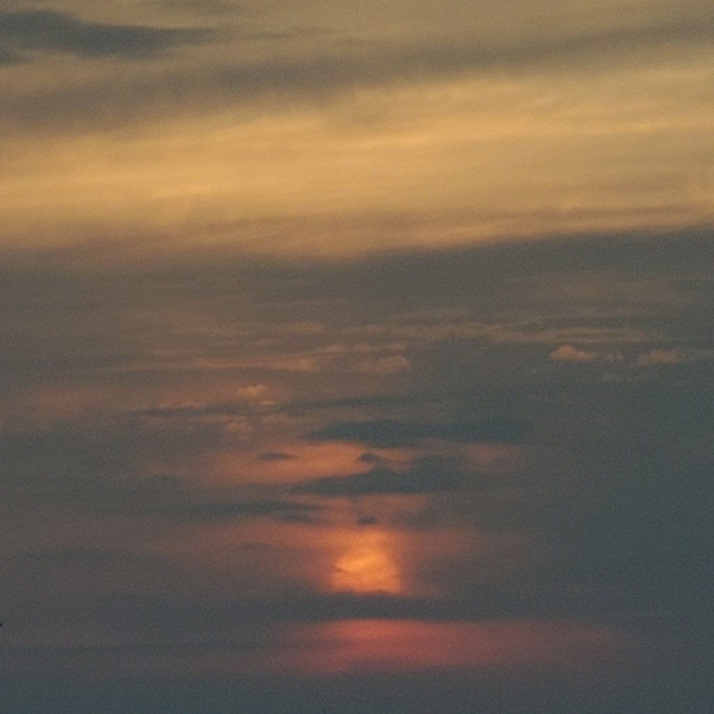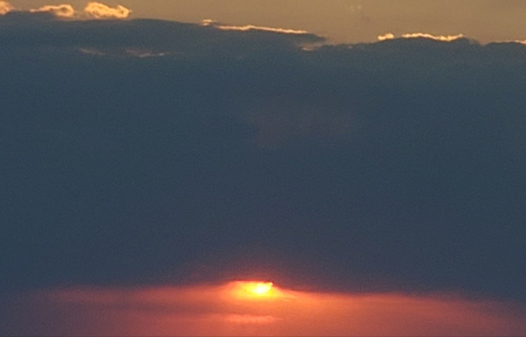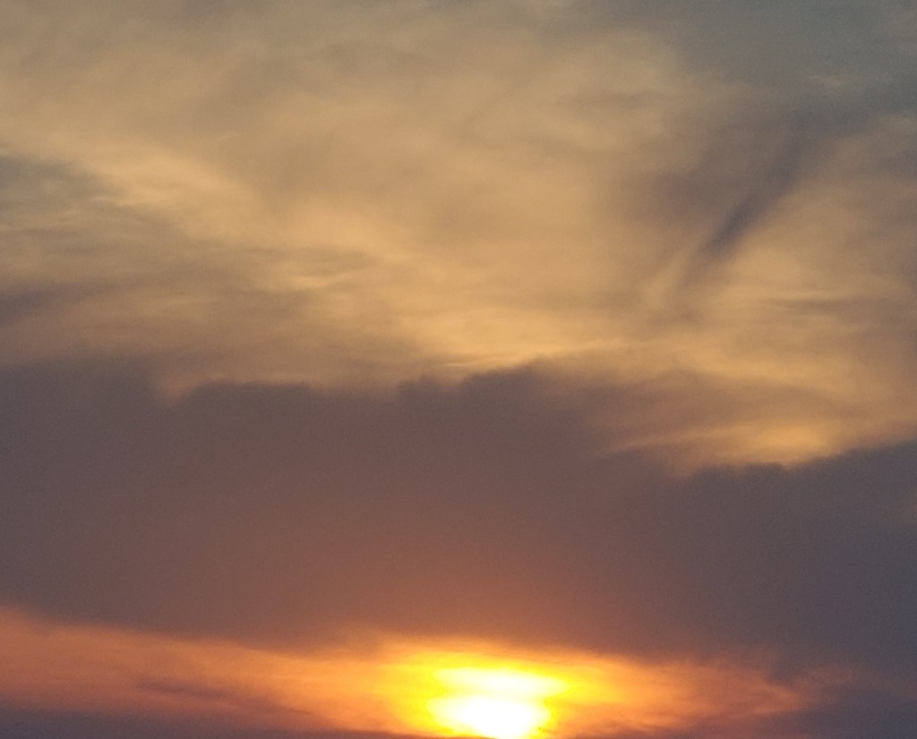This morning, sunrise shared its golden-red light with clouds diffused gentle white
