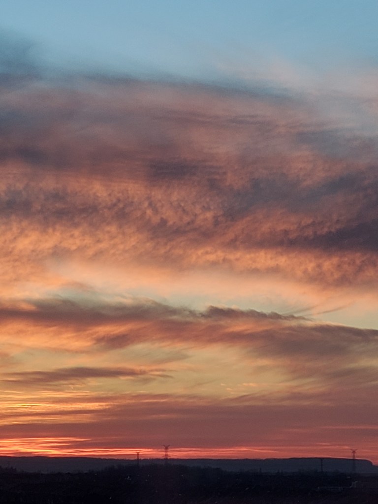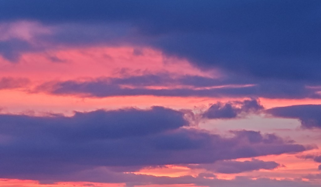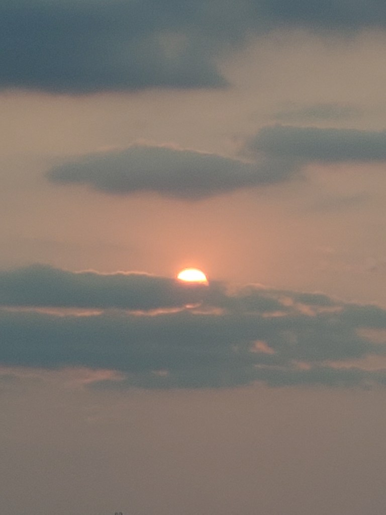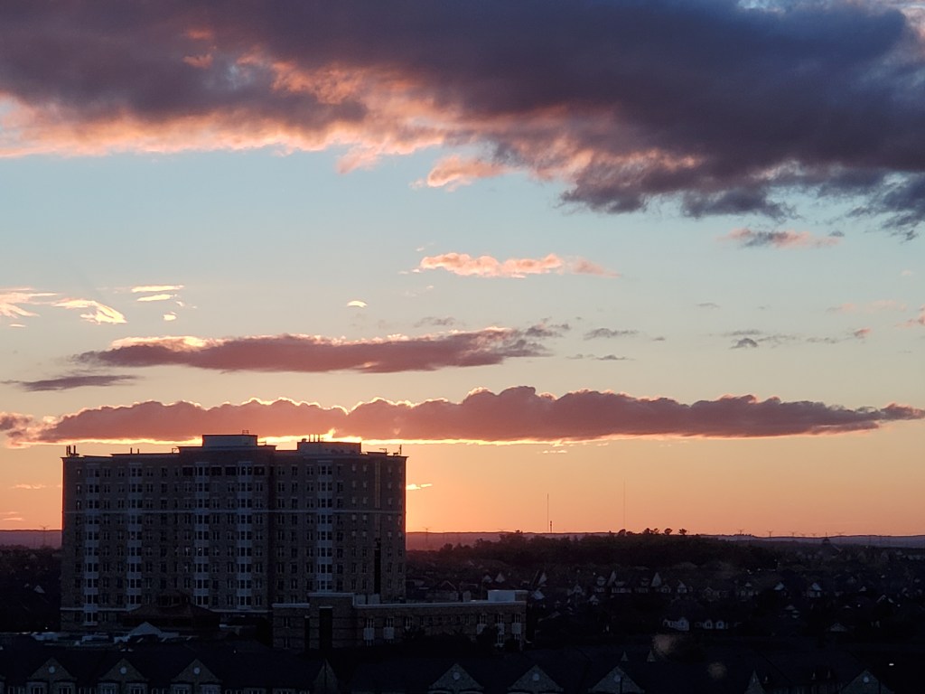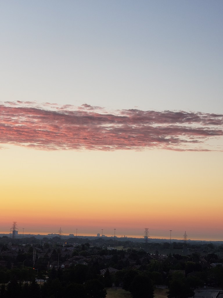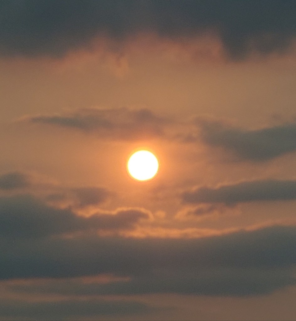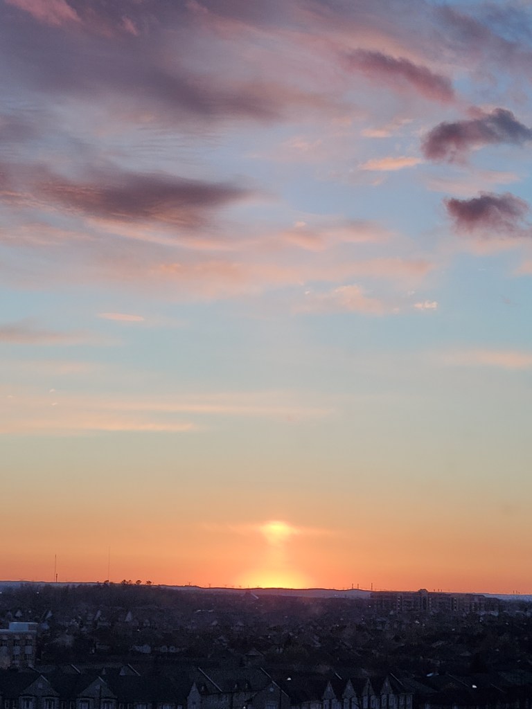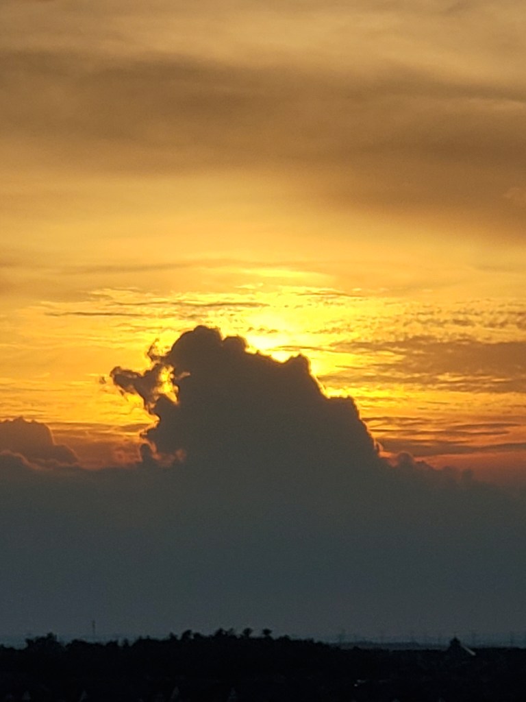 This morning, sunrise shared its golden-red light with clouds diffused gentle white