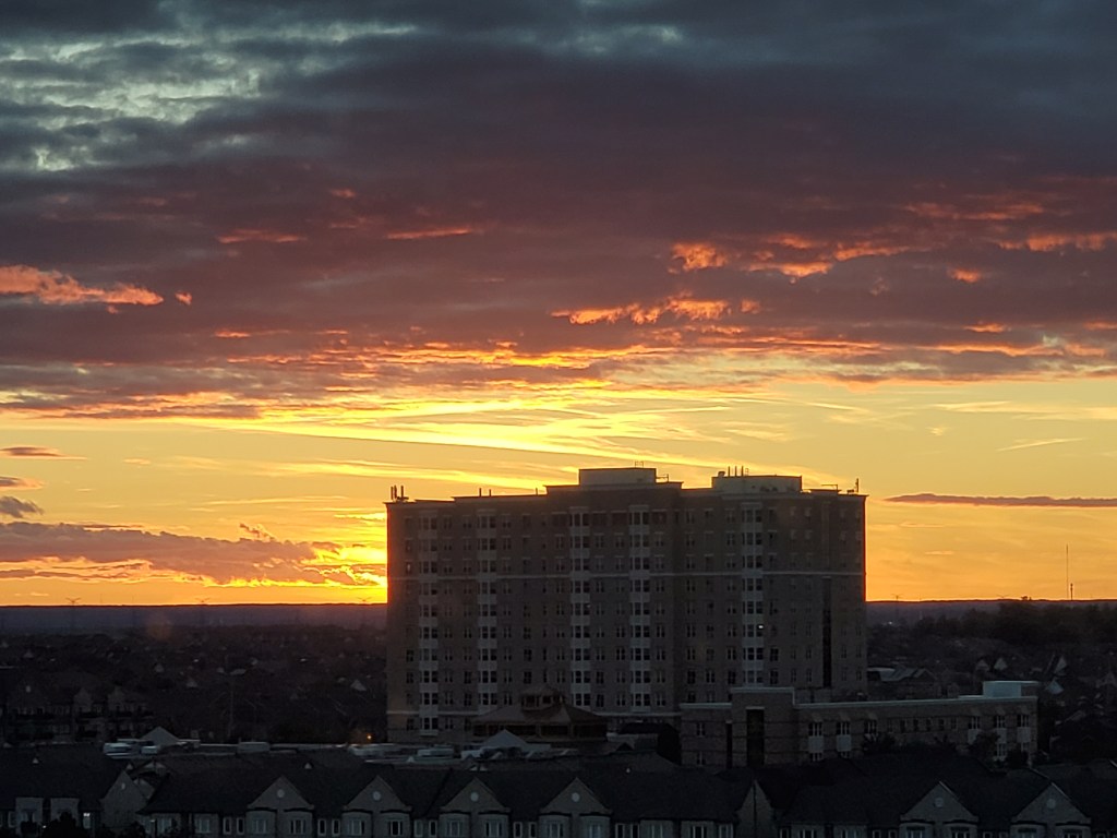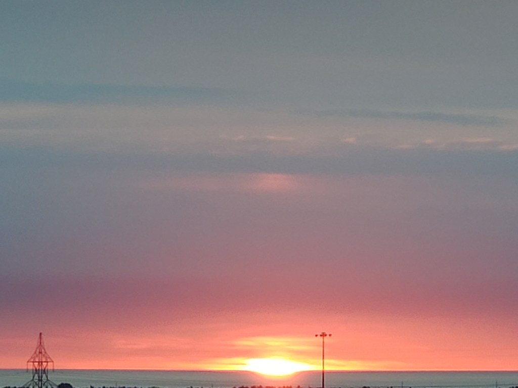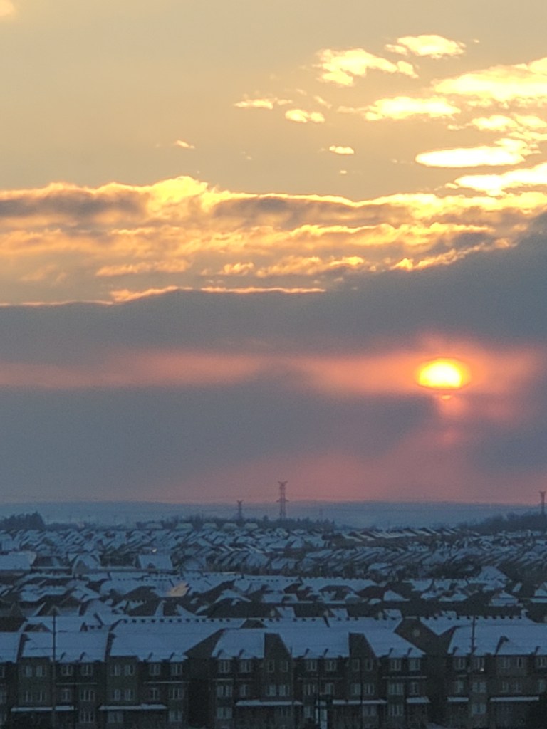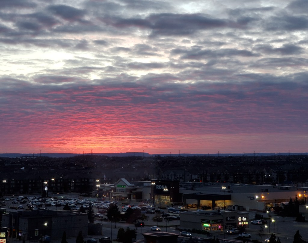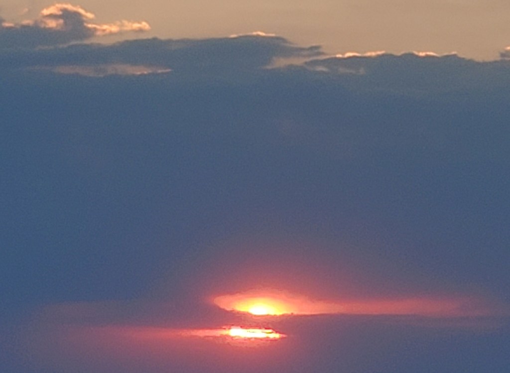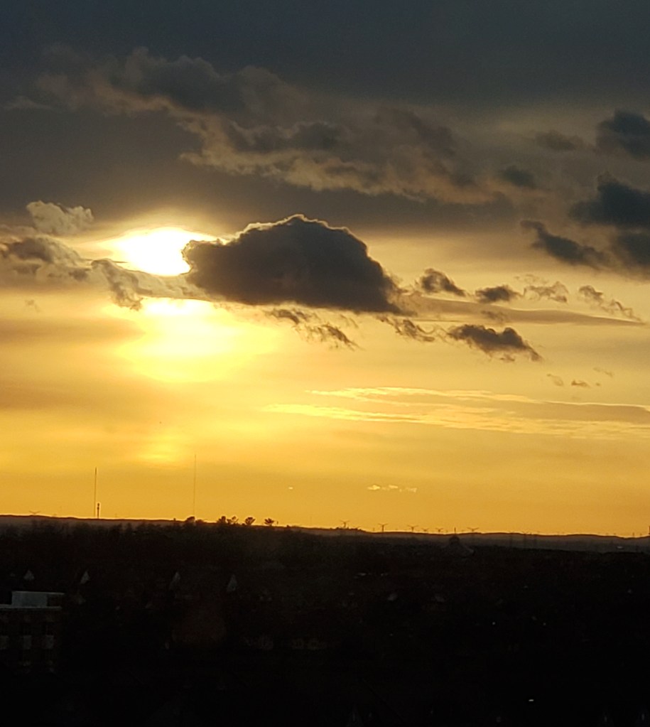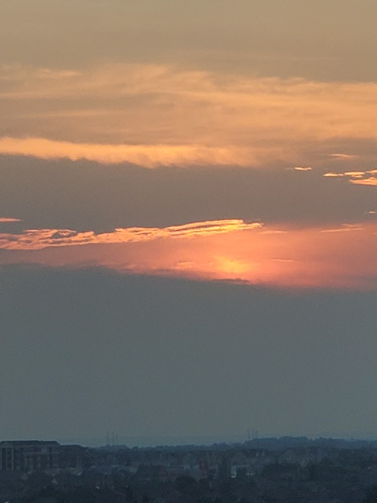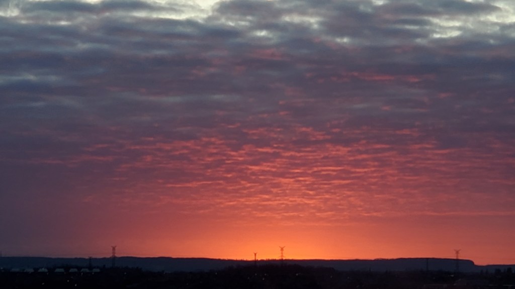 This morning, sunrise shared its golden-red light with clouds diffused gentle white