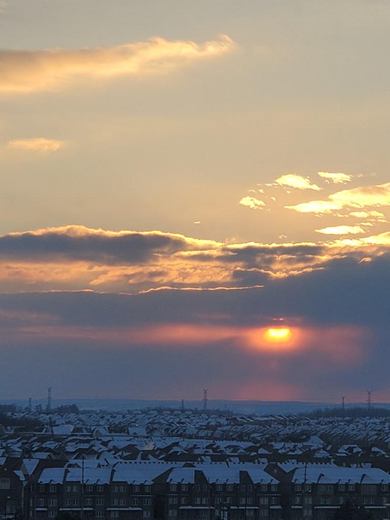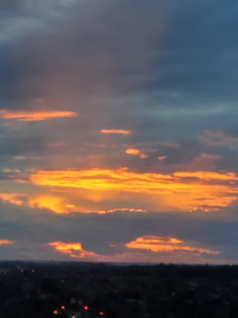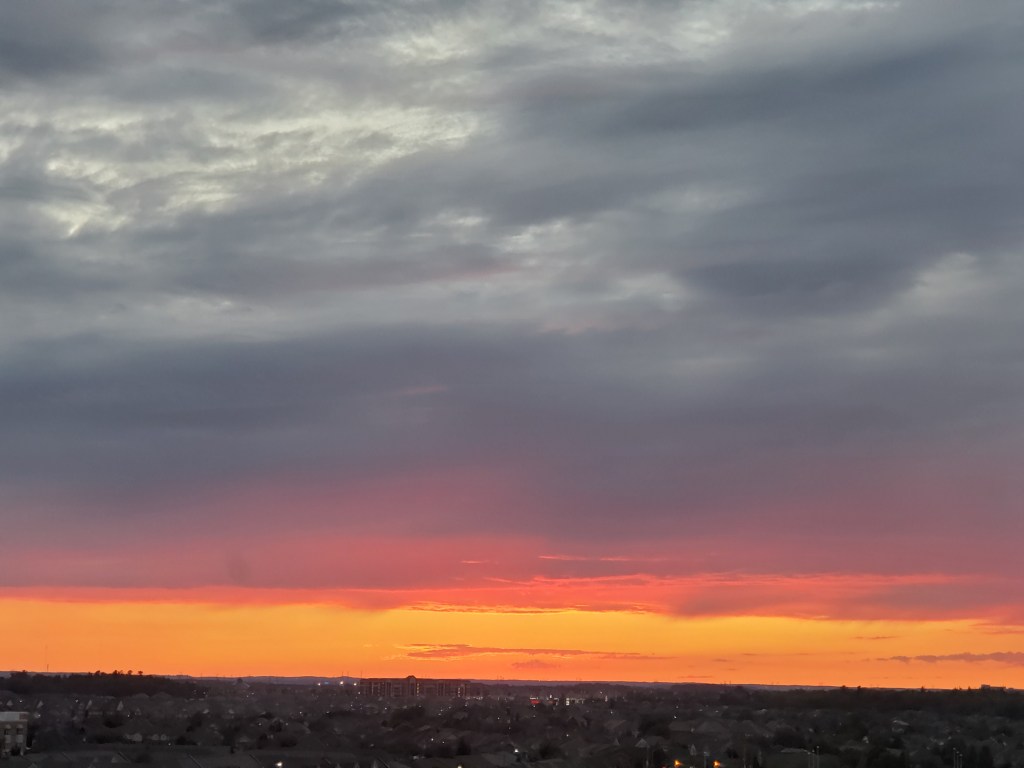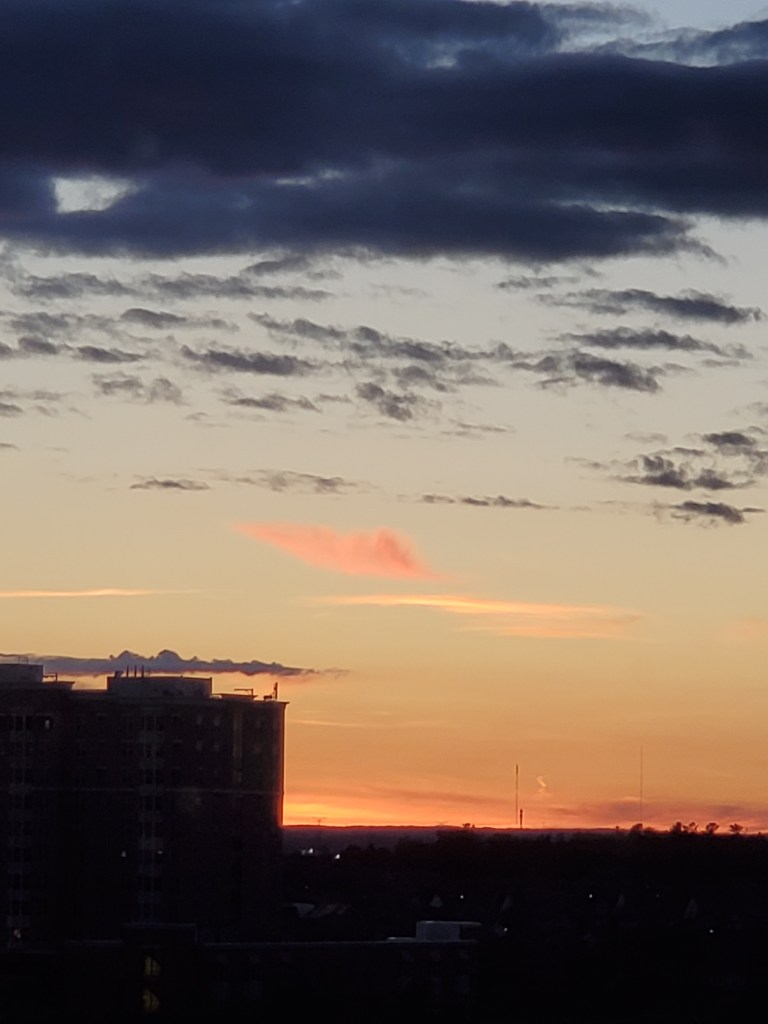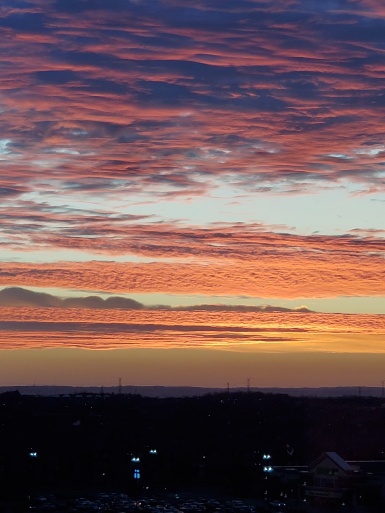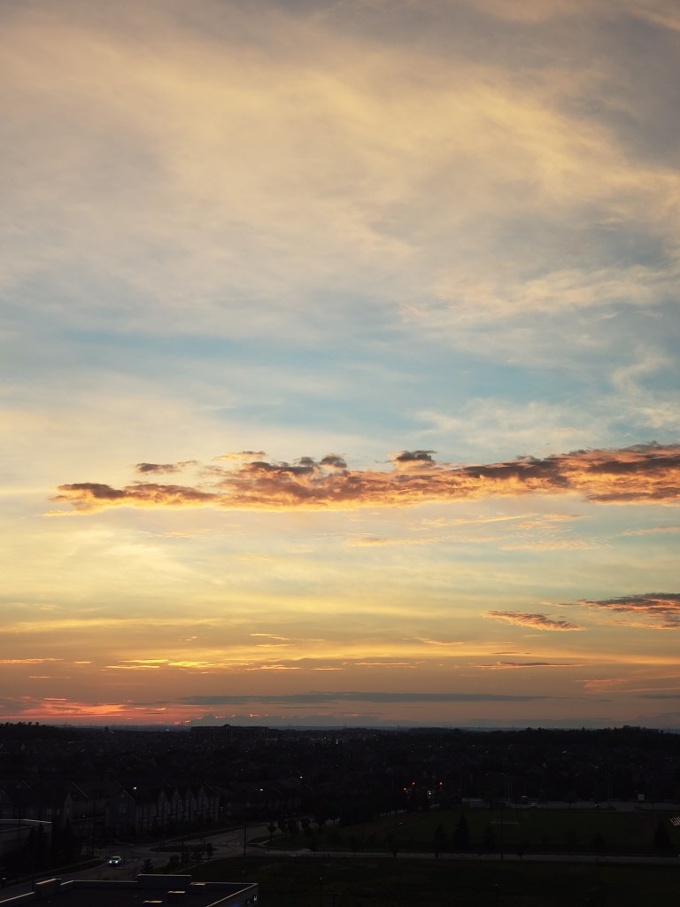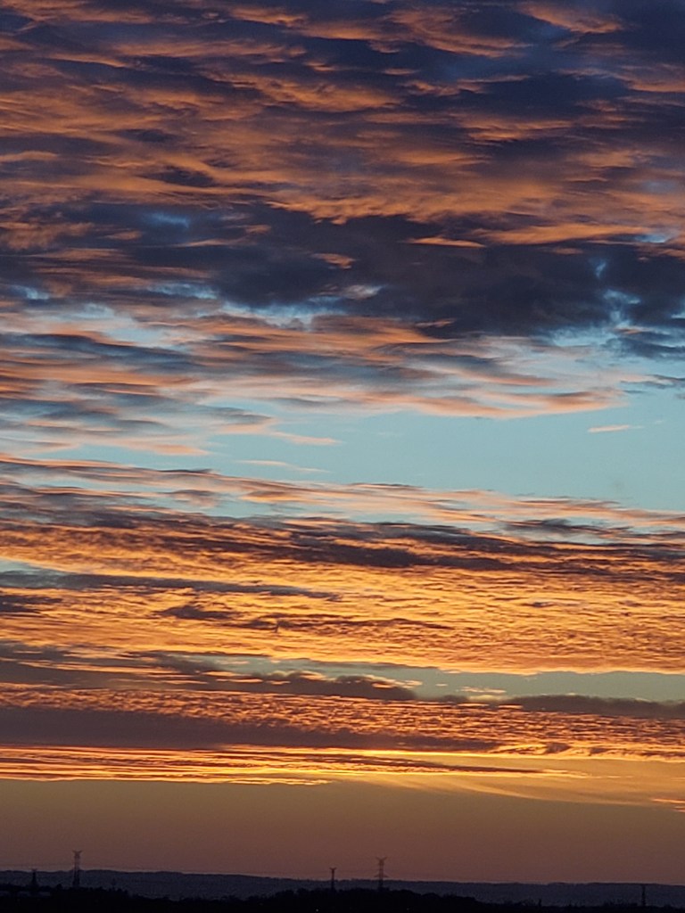 This morning, sunrise shared its golden-red light with clouds diffused gentle white