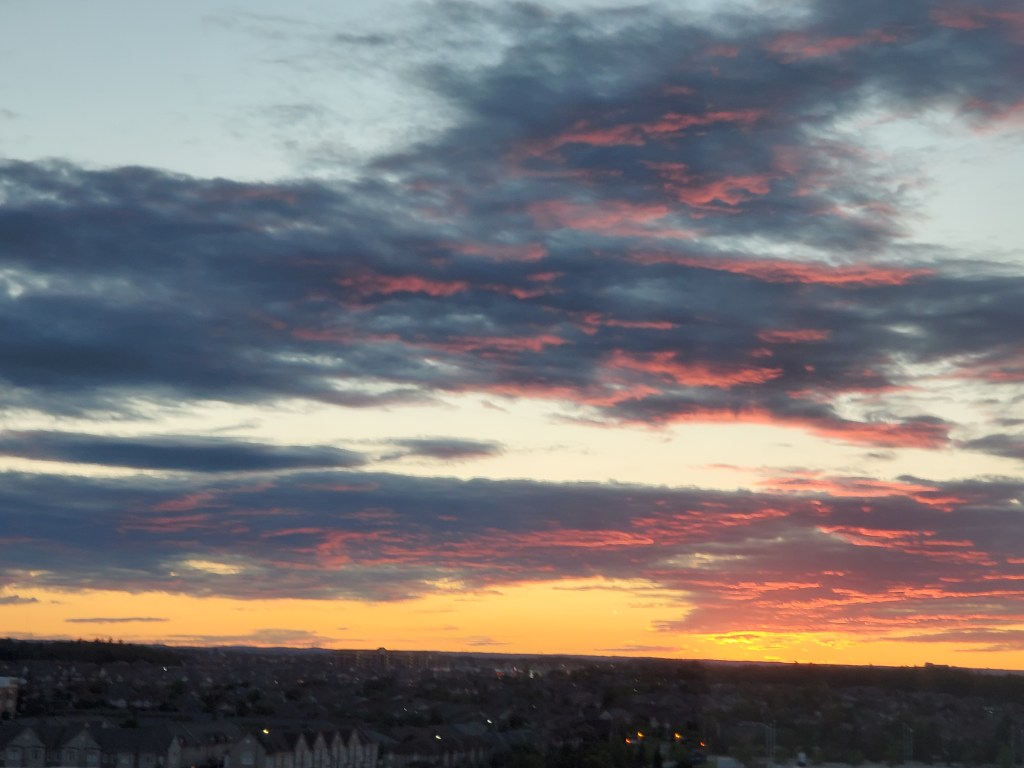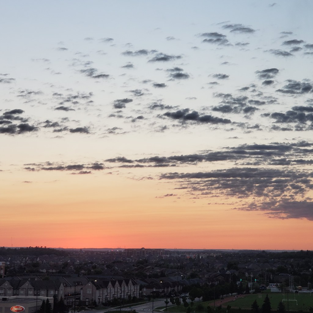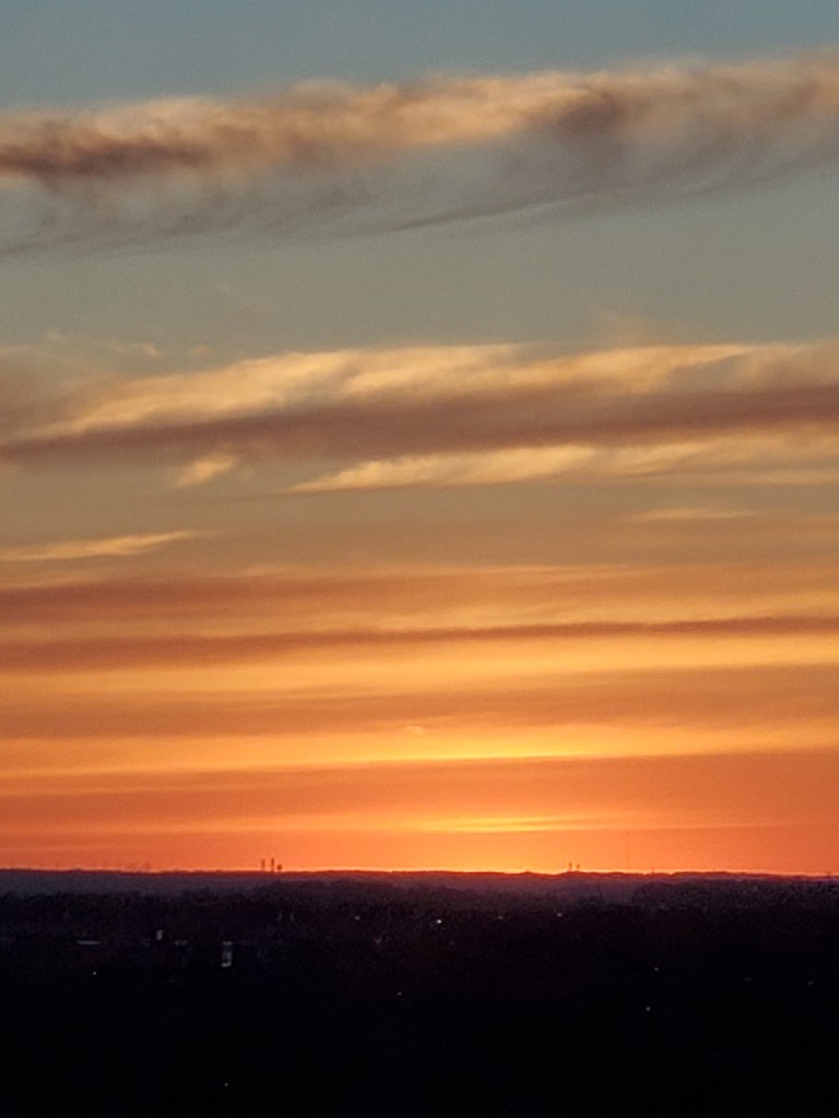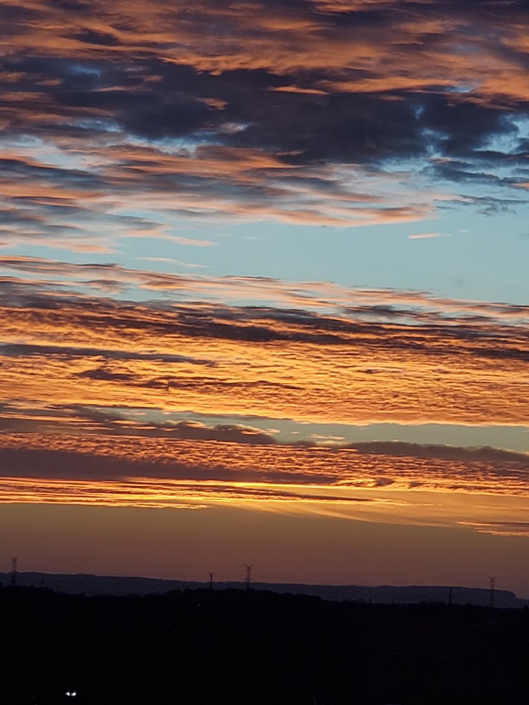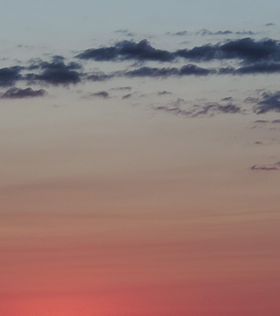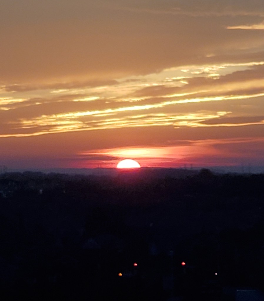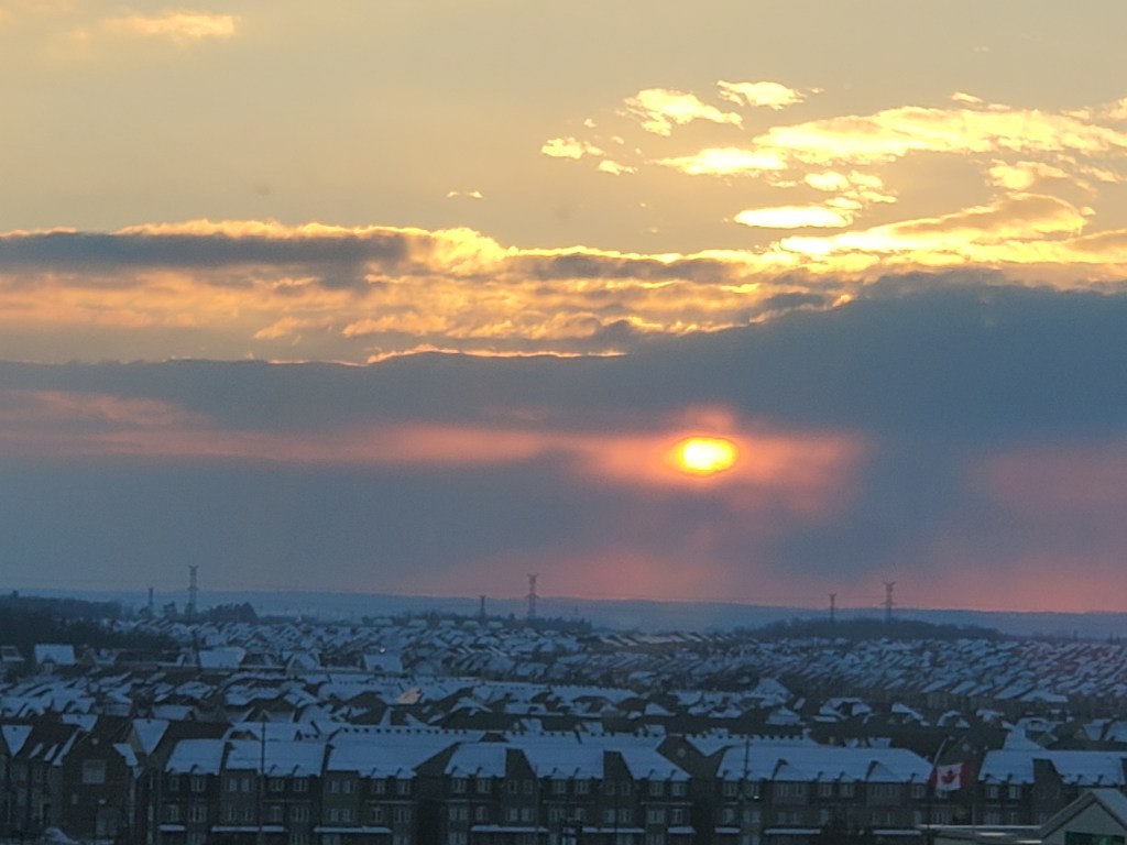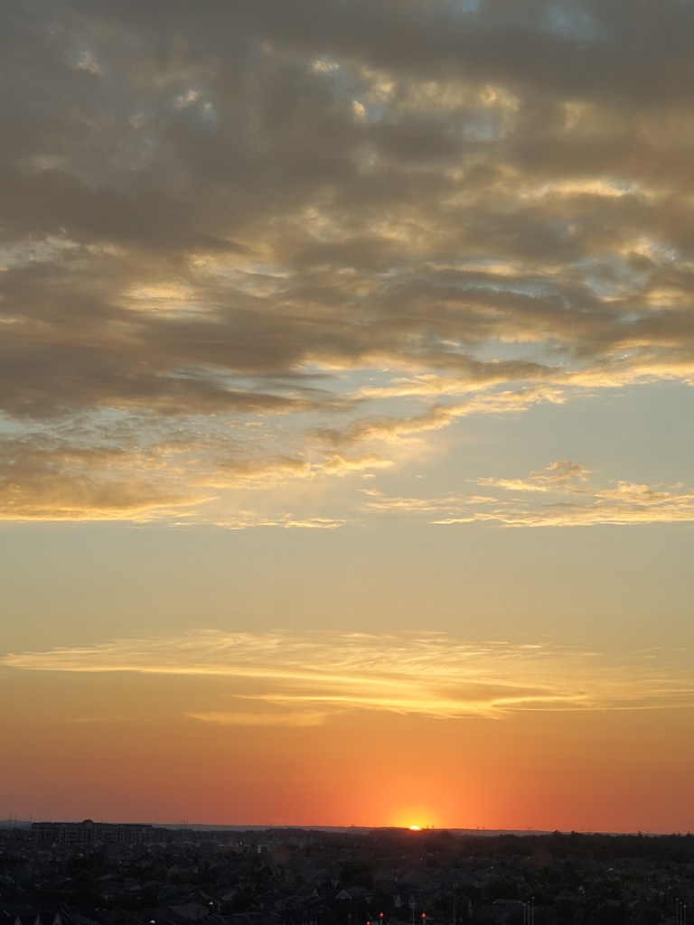 This morning, sunrise shared its golden-red light with clouds diffused gentle white
