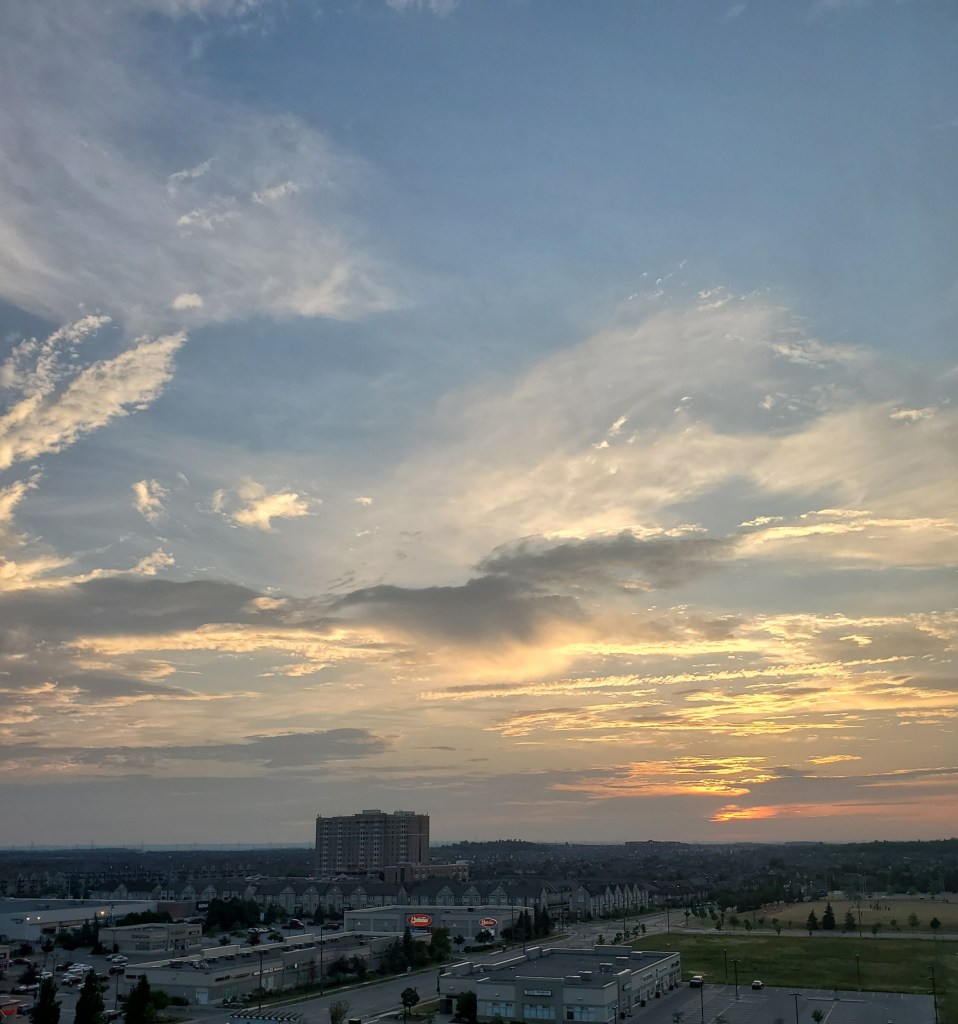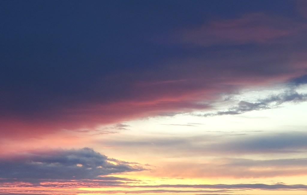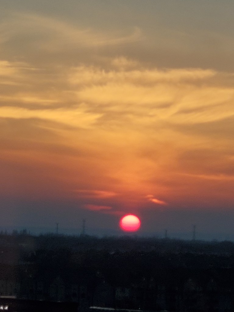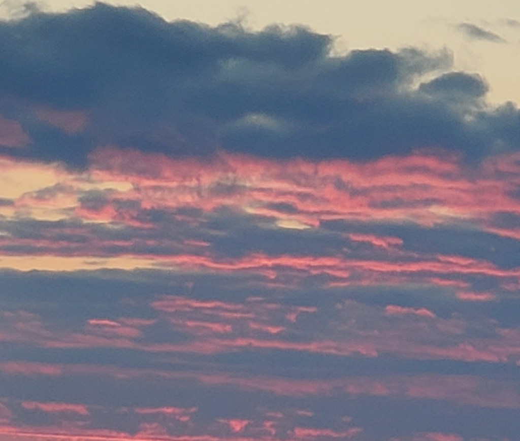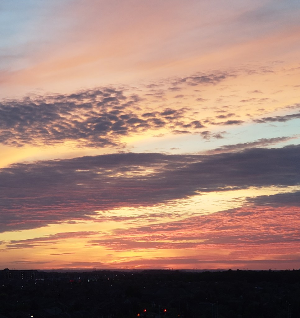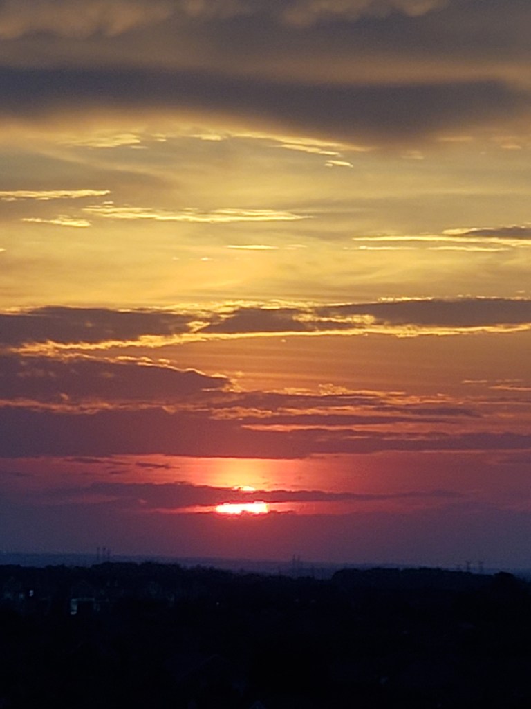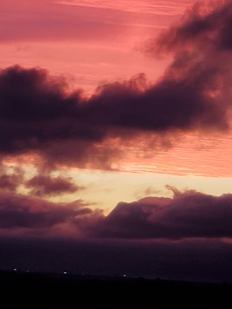 This morning, sunrise shared its golden-red light with clouds diffused gentle white