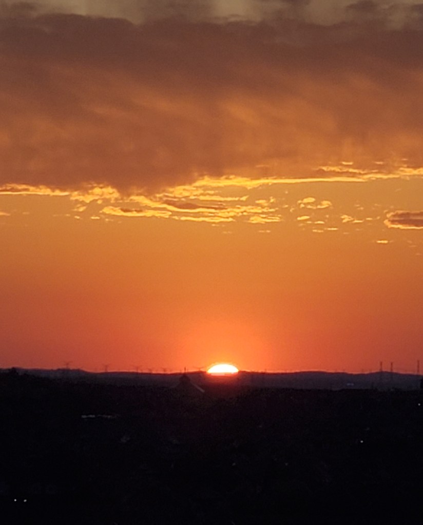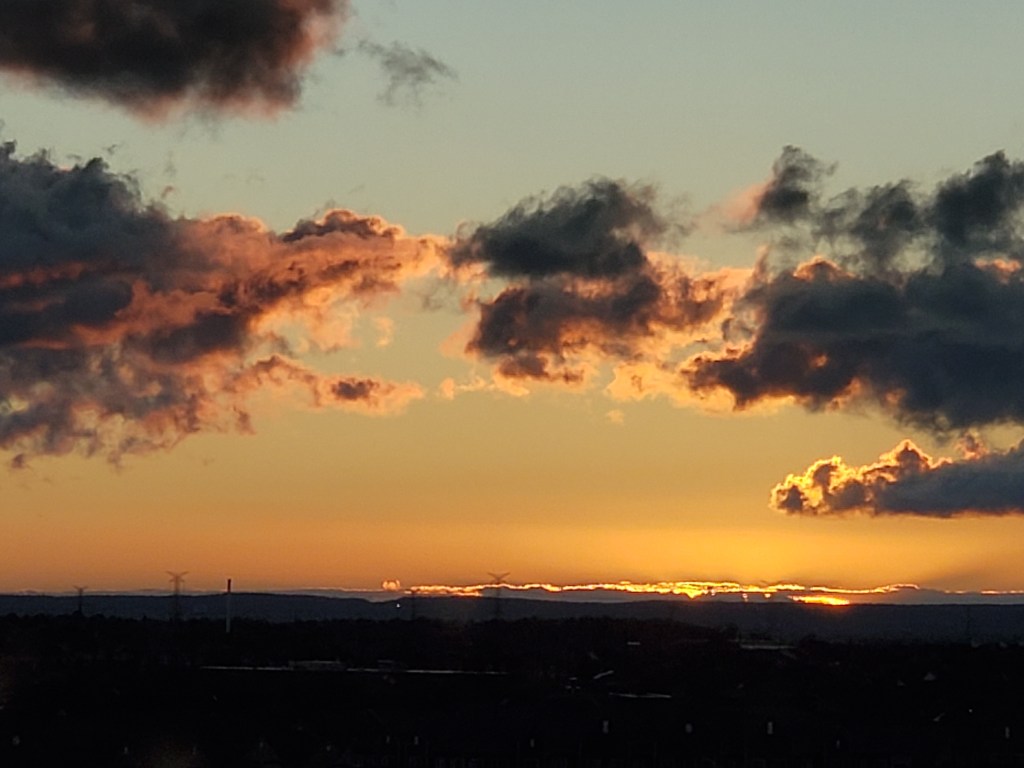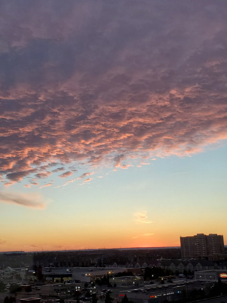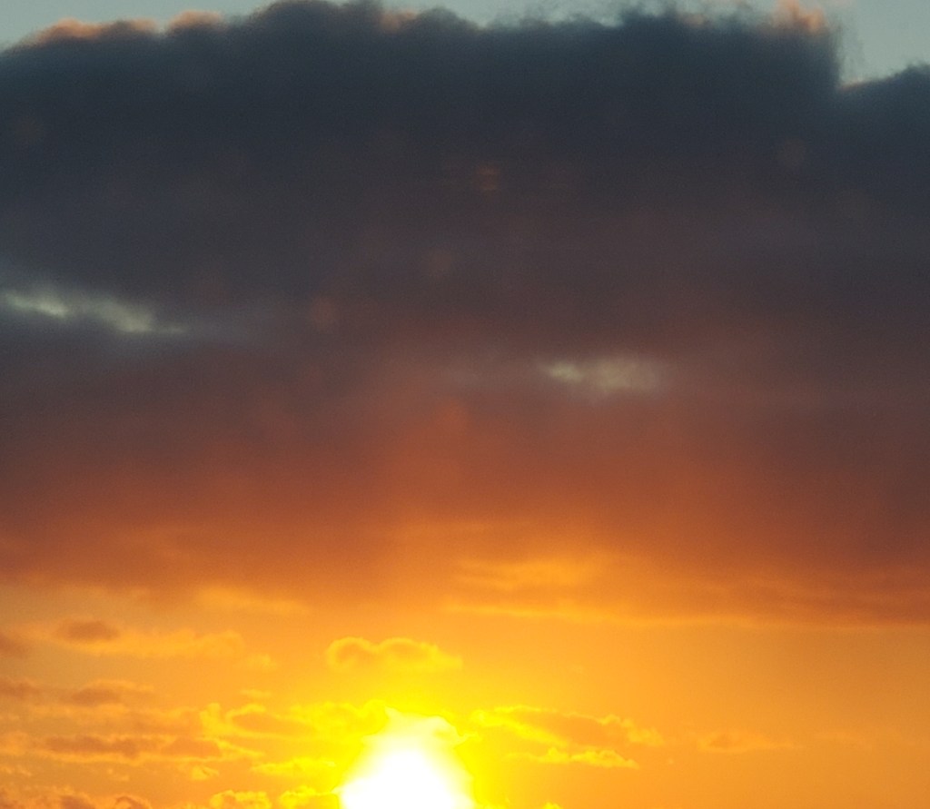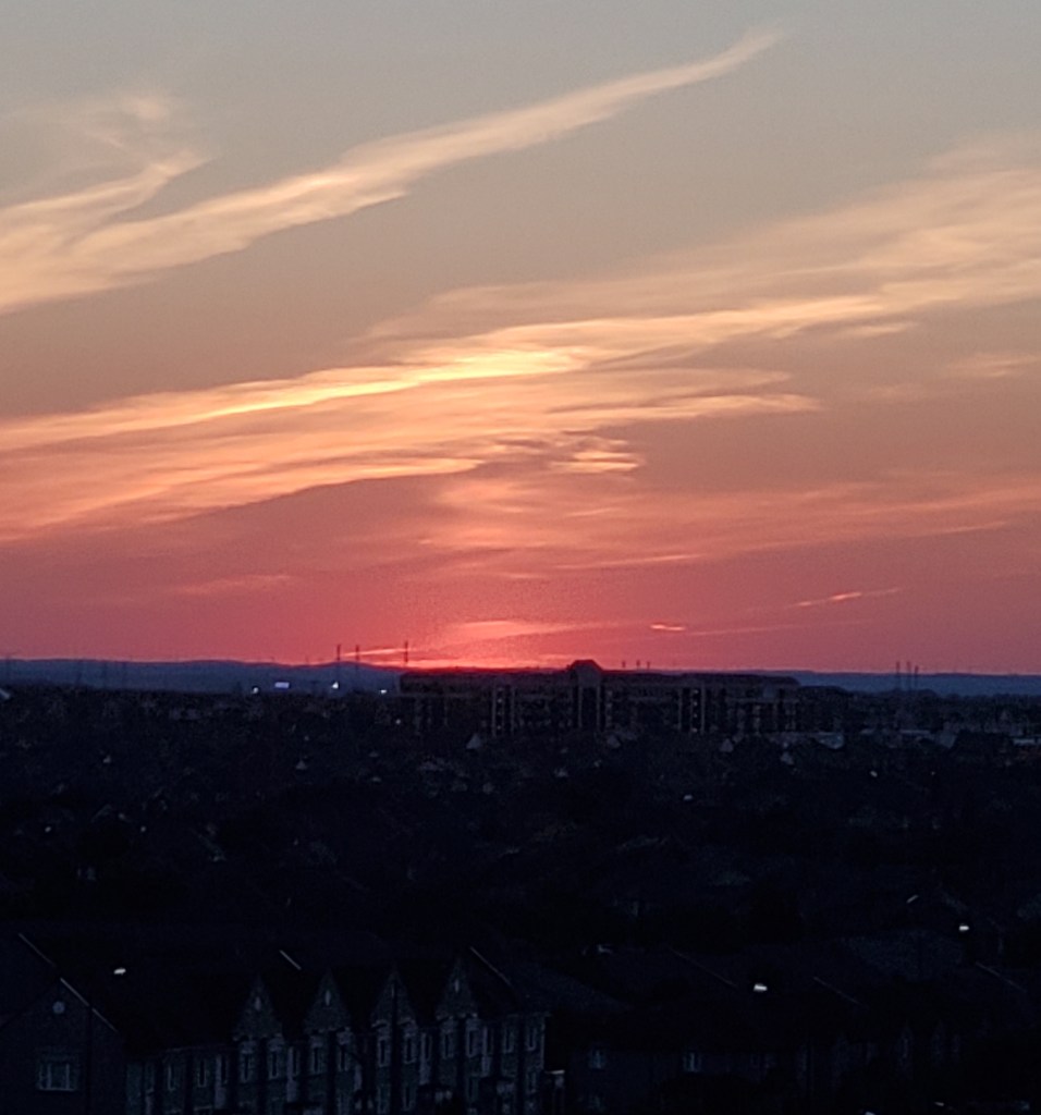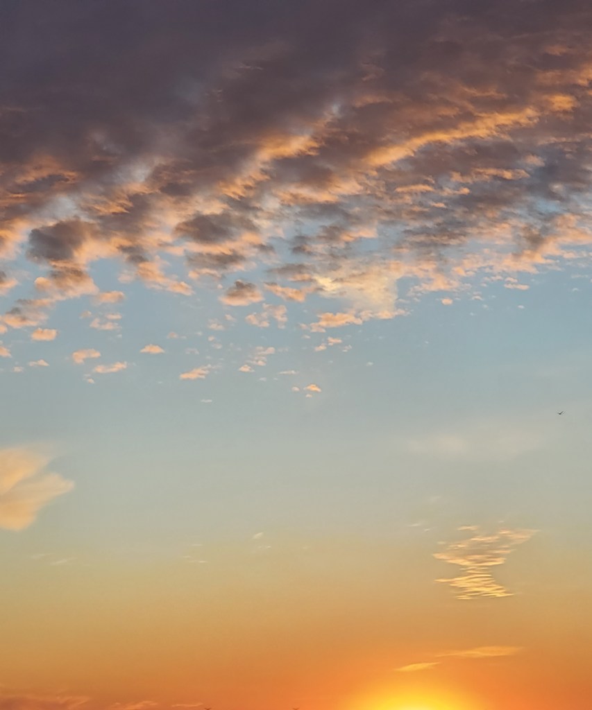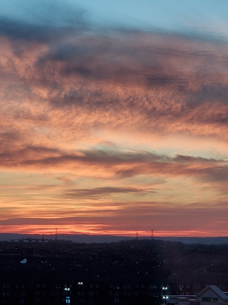 This morning, sunrise shared its golden-red light with clouds diffused gentle white