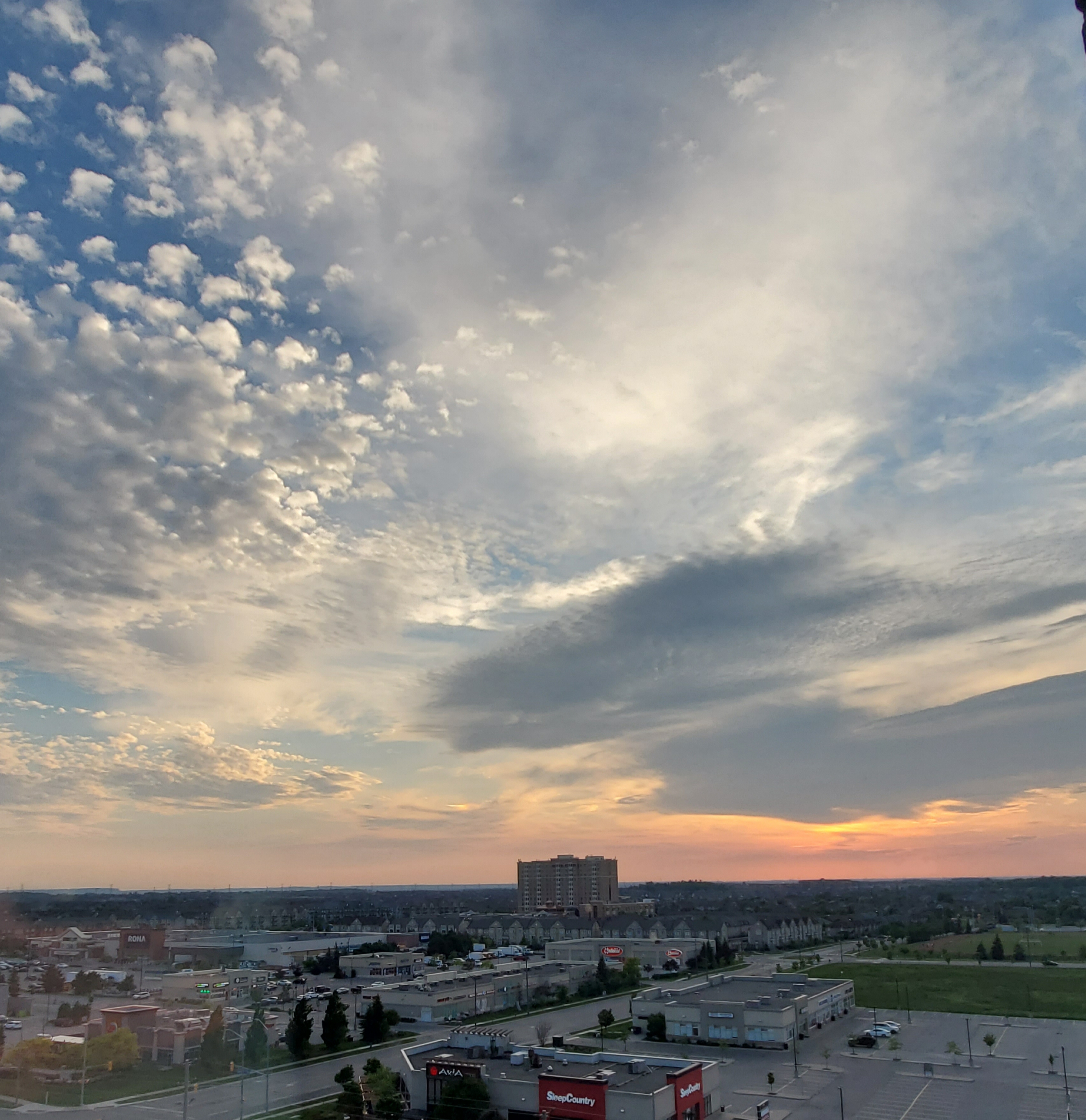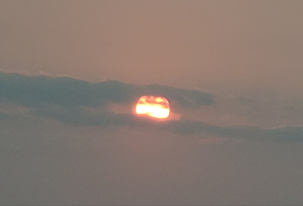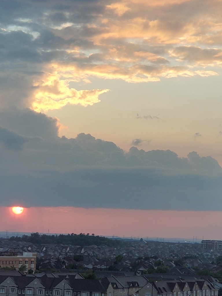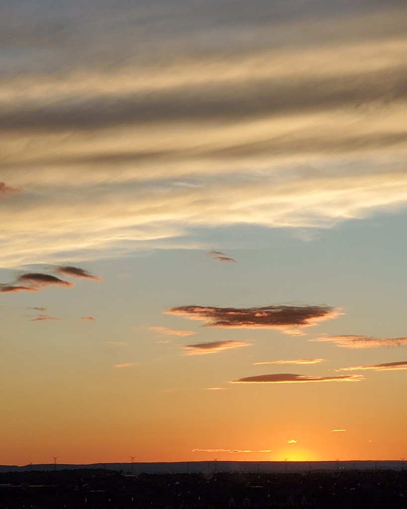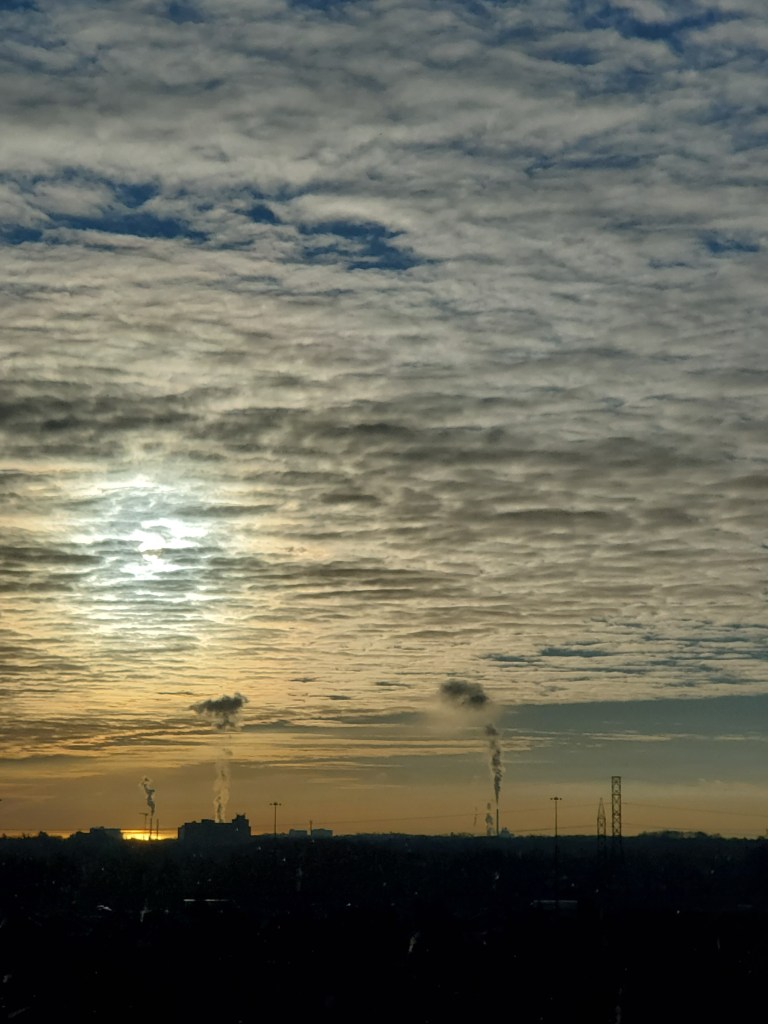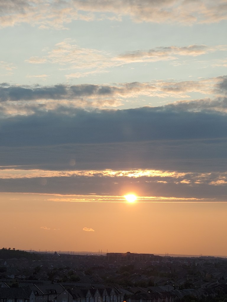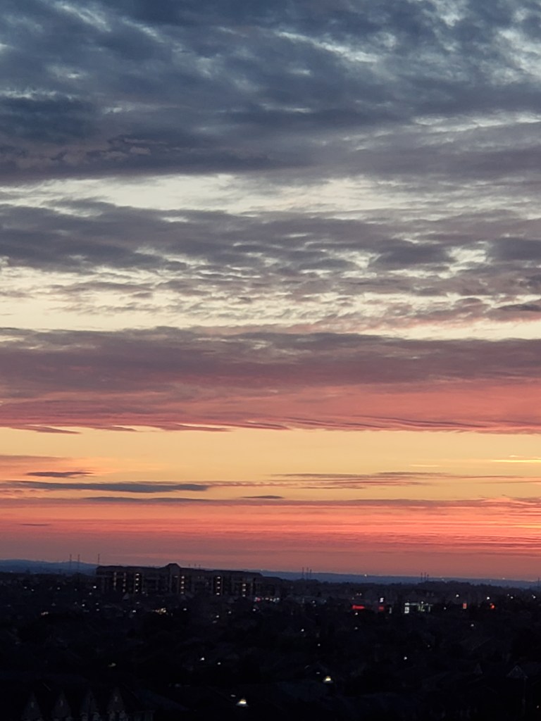 This morning, sunrise shared its golden-red light with clouds diffused gentle white