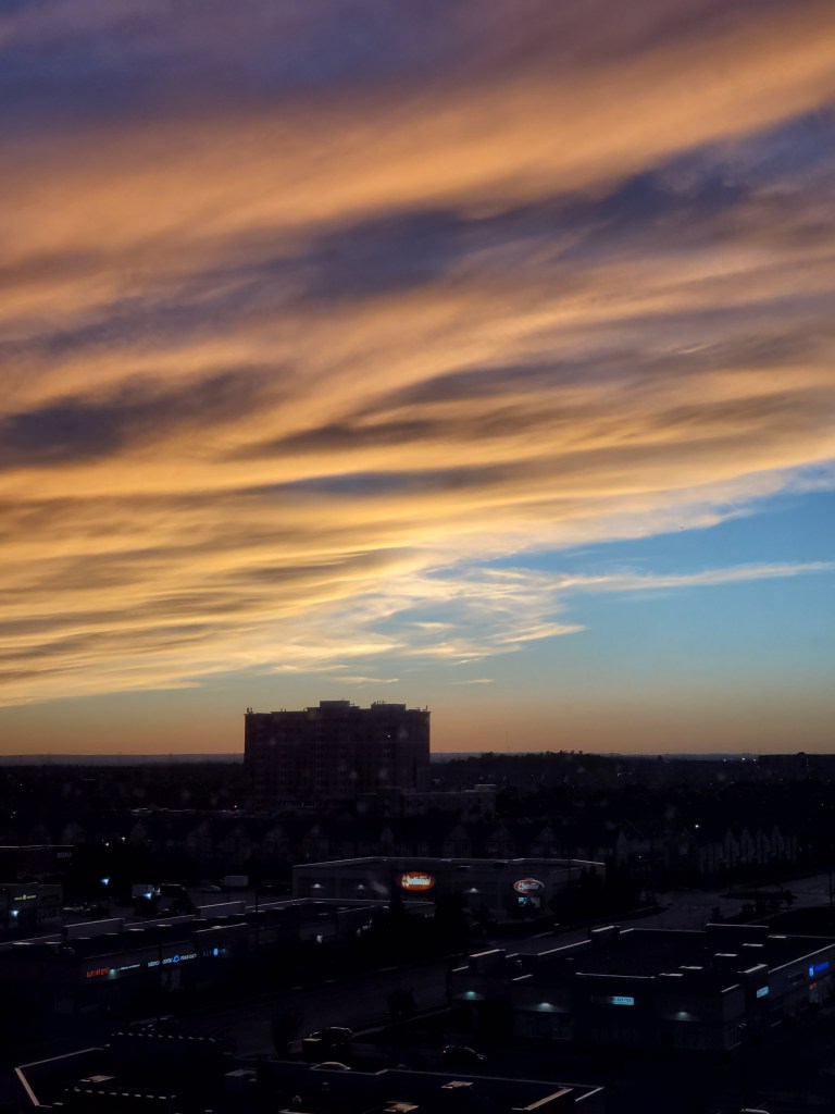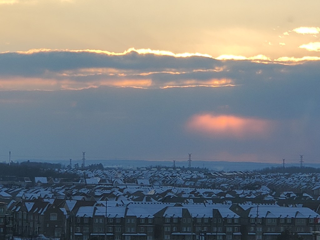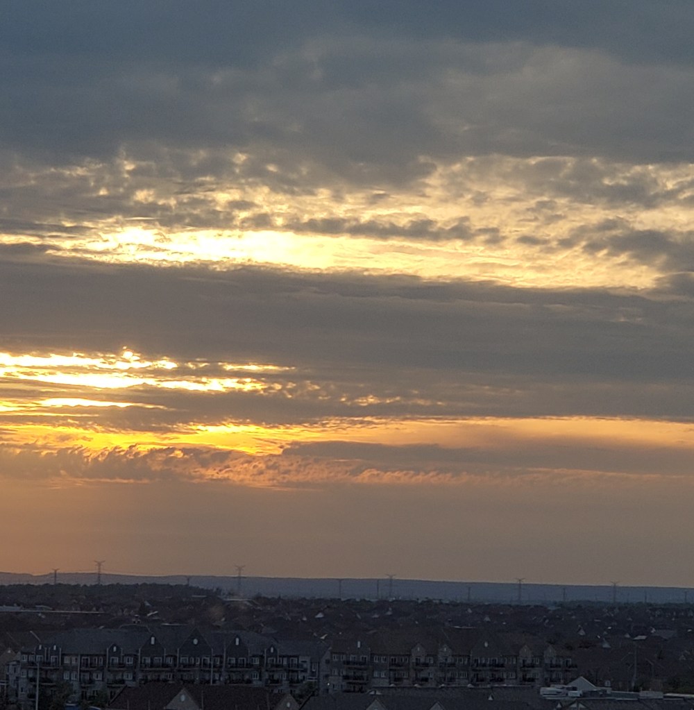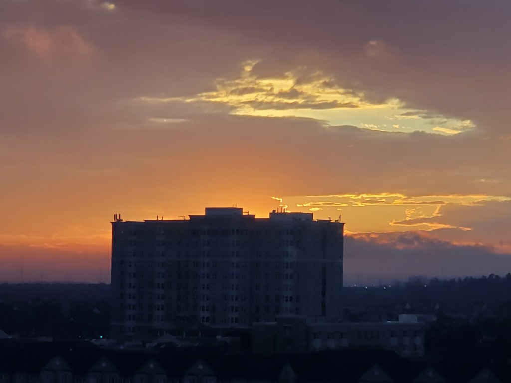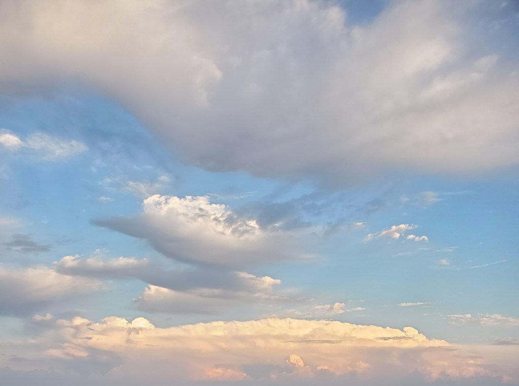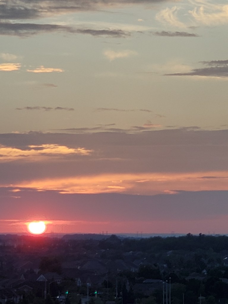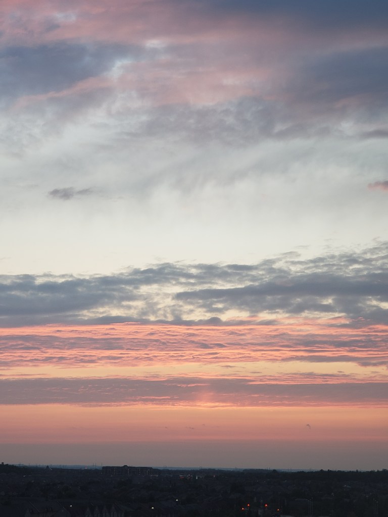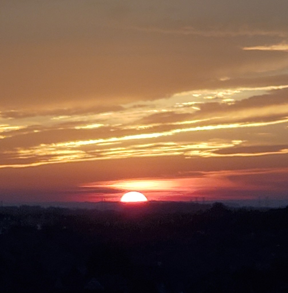 This morning, sunrise shared its golden-red light with clouds diffused gentle white
