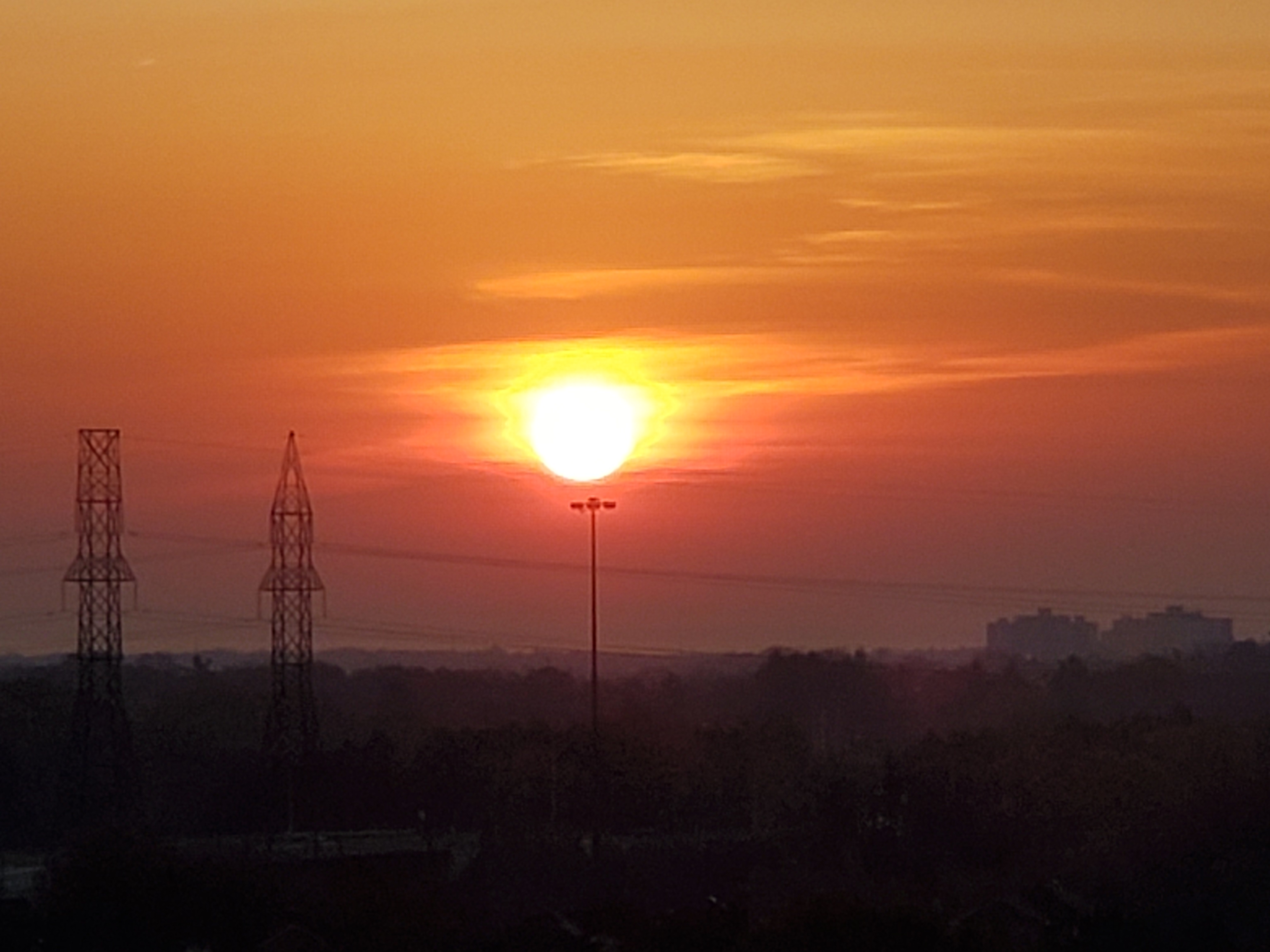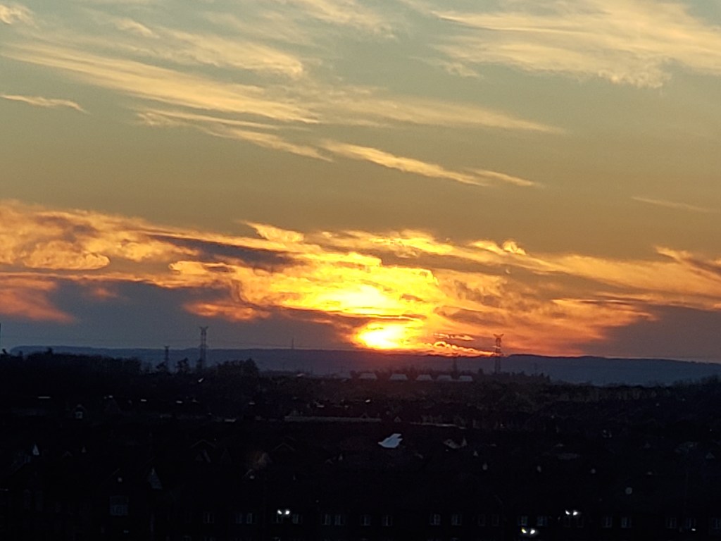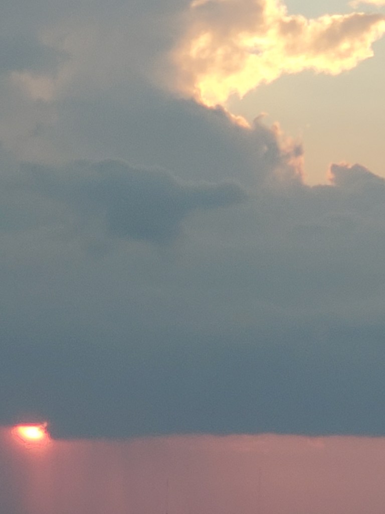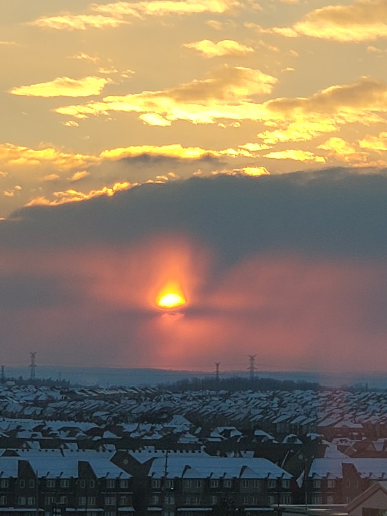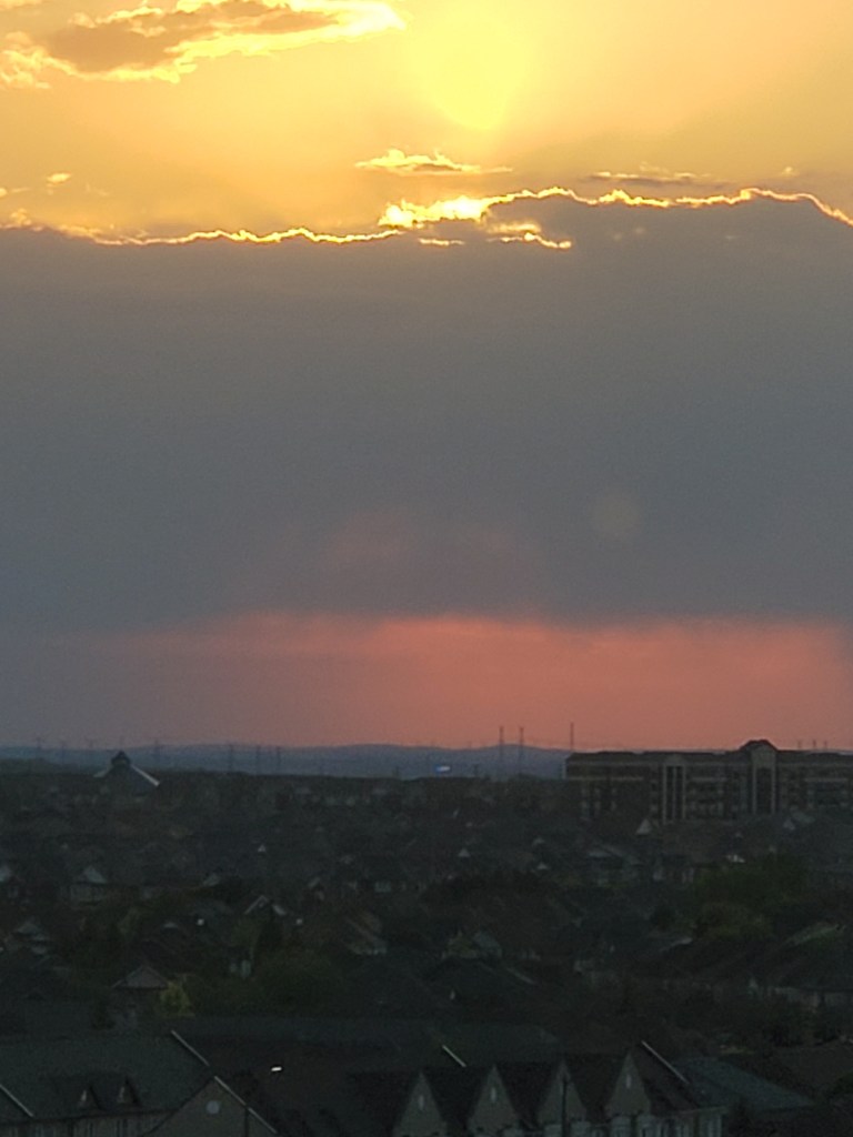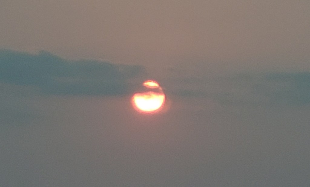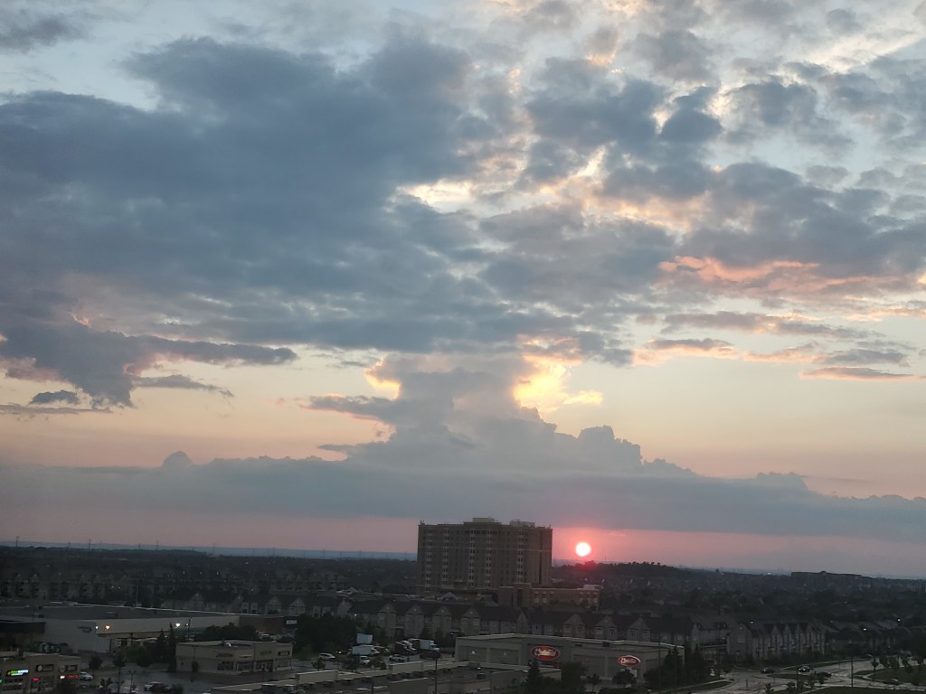 This morning, sunrise shared its golden-red light with clouds diffused gentle white