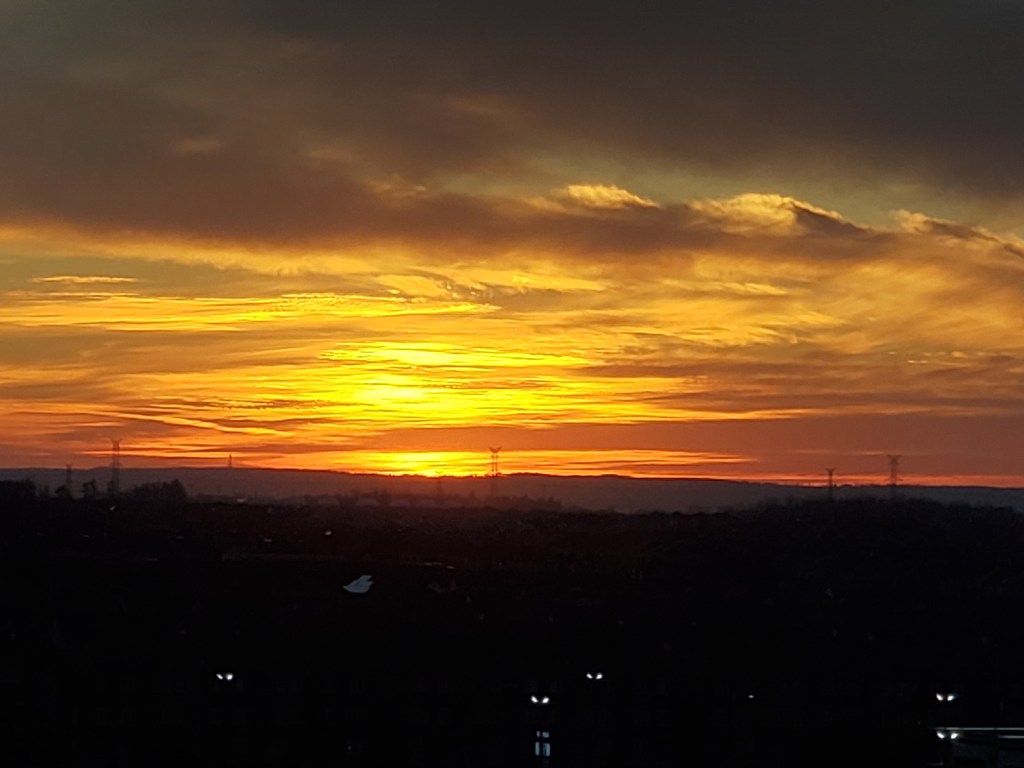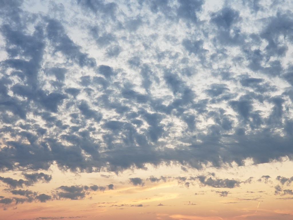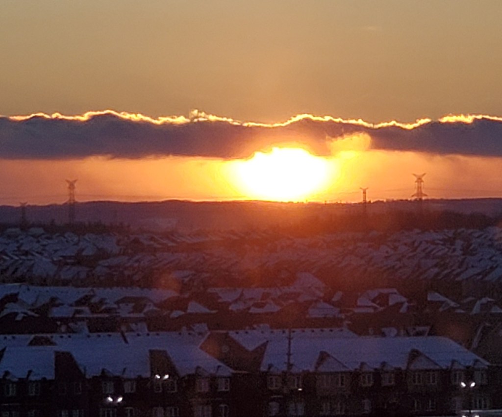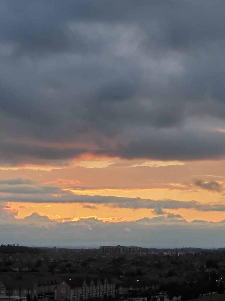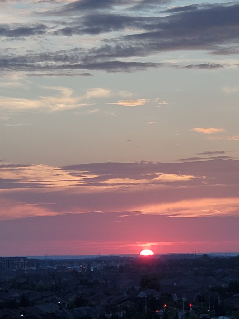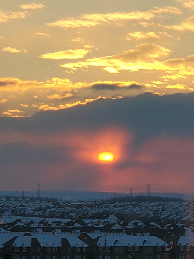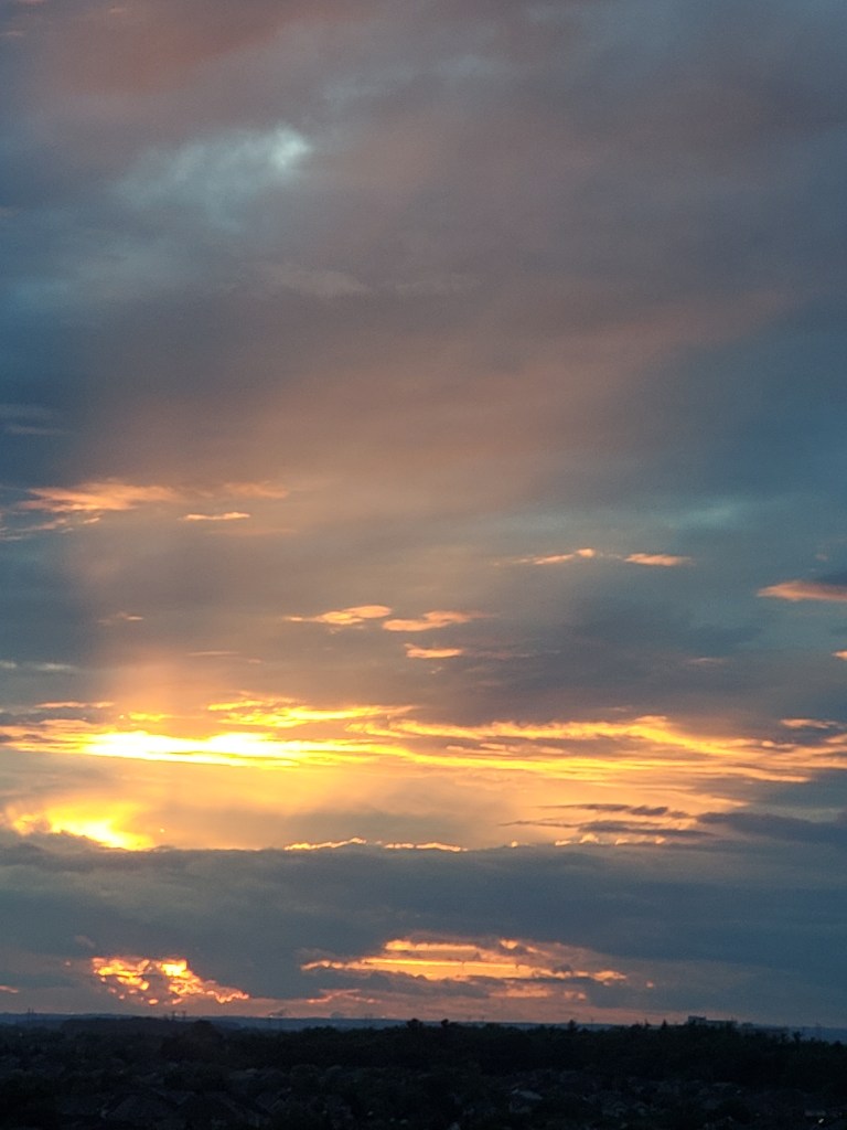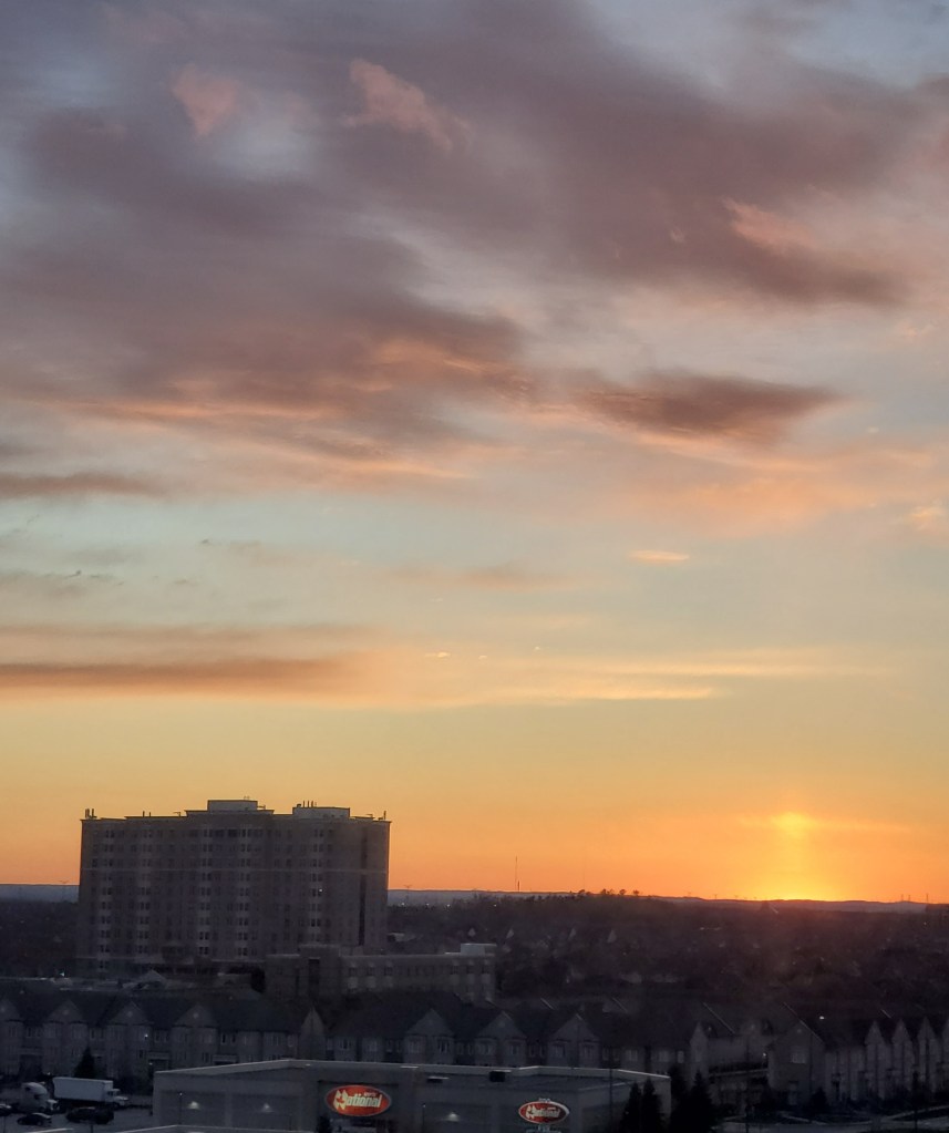 This morning, sunrise shared its golden-red light with clouds diffused gentle white