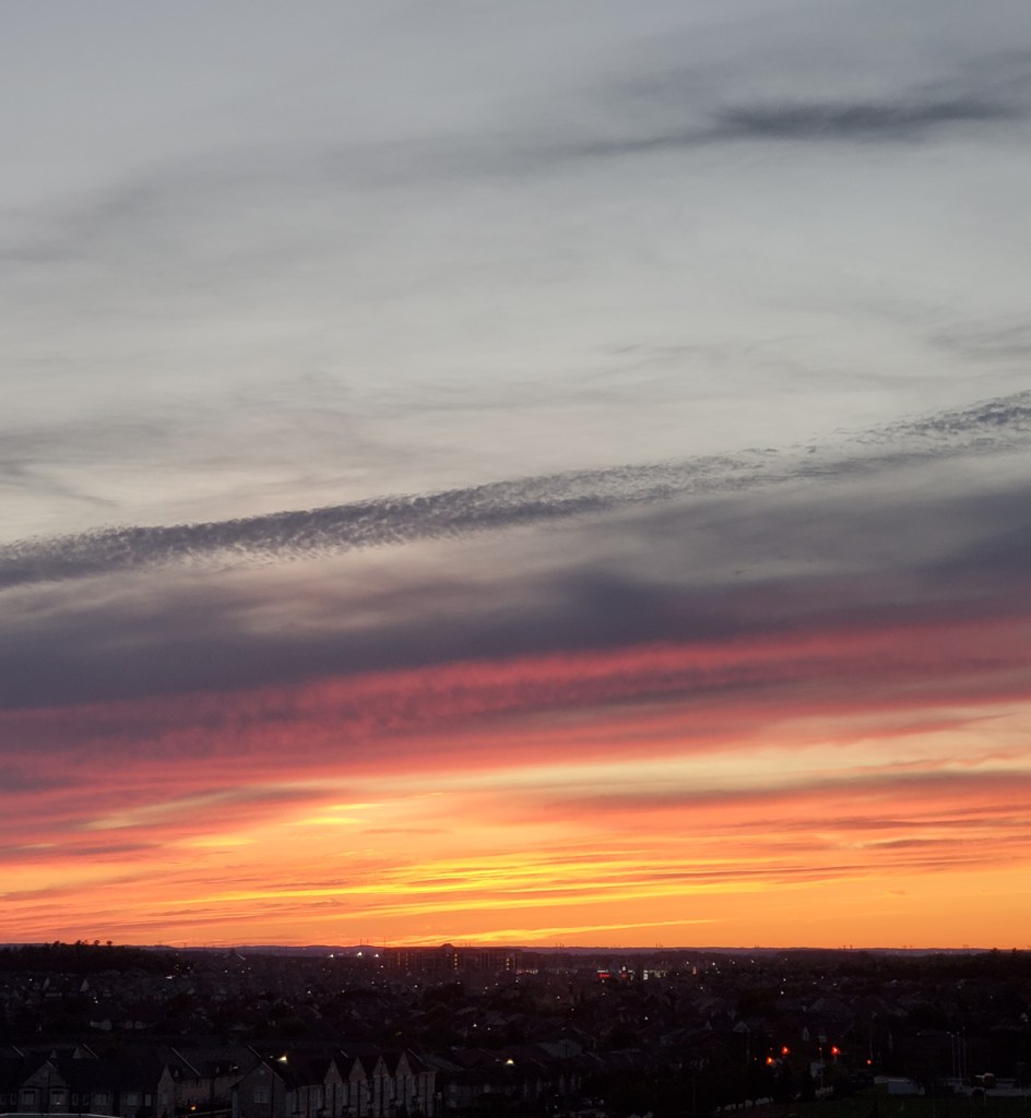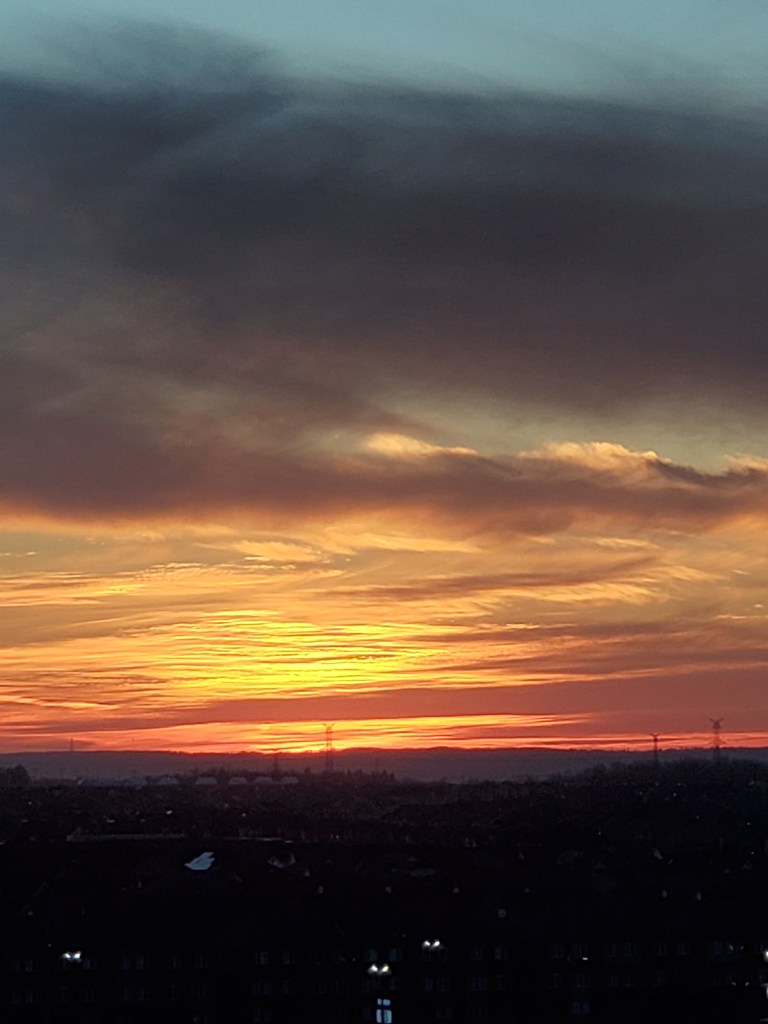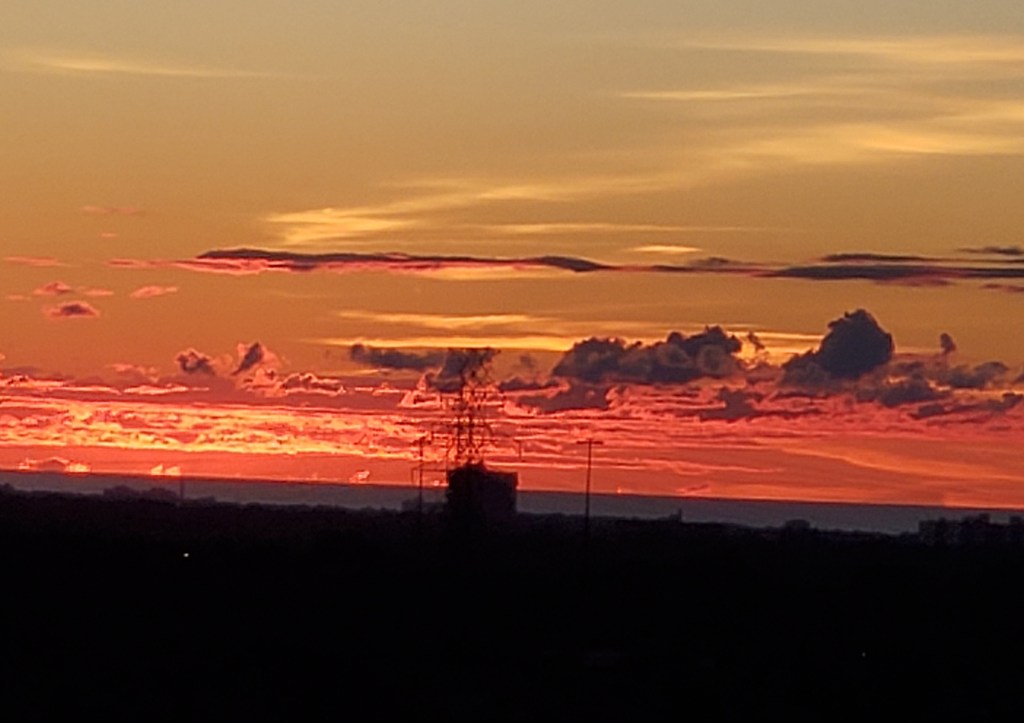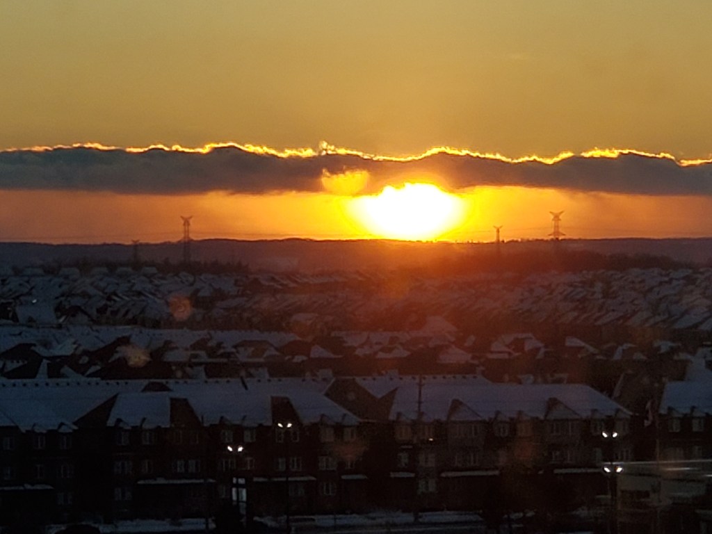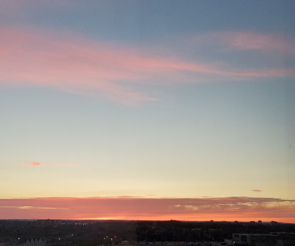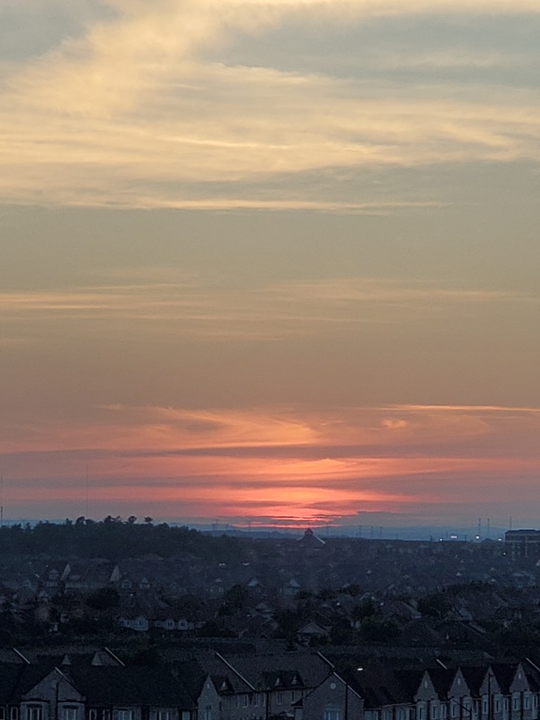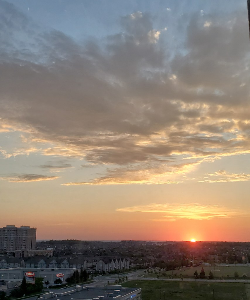 This morning, sunrise shared its golden-red light with clouds diffused gentle white