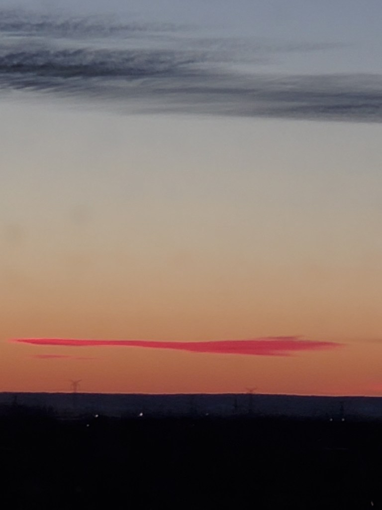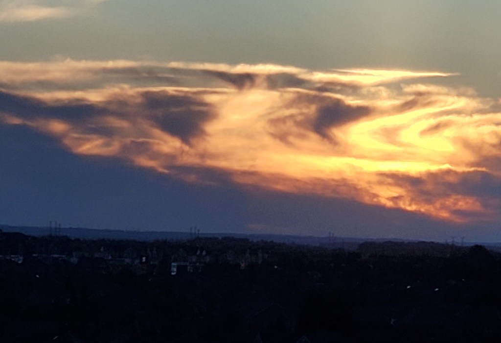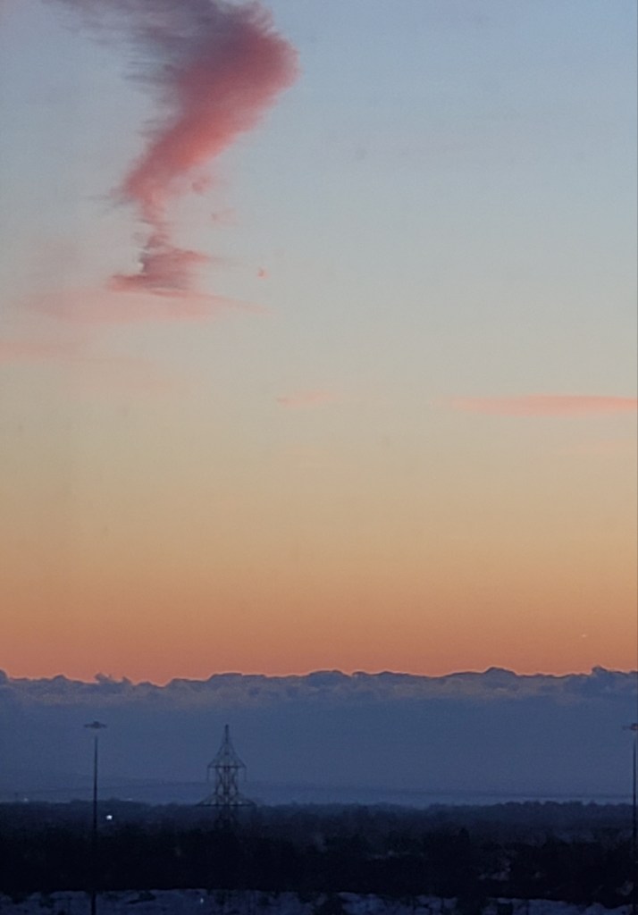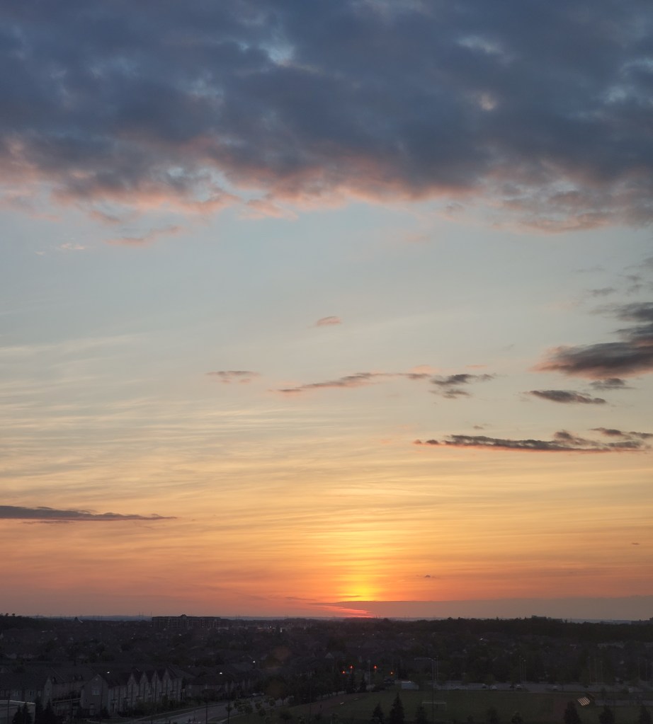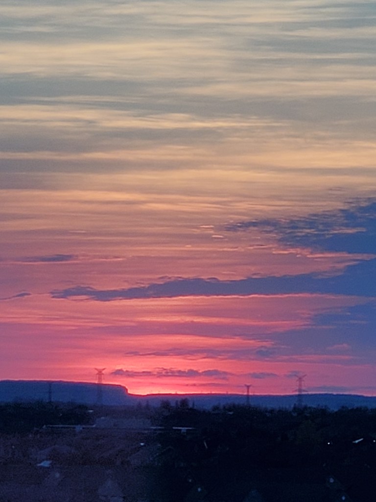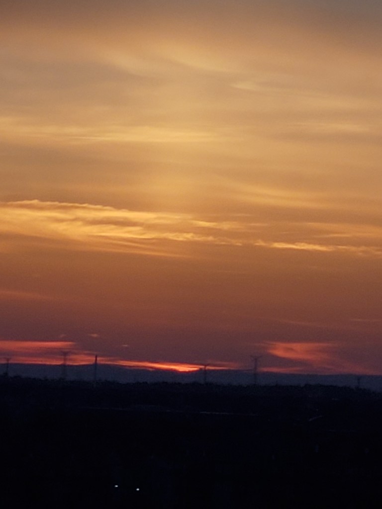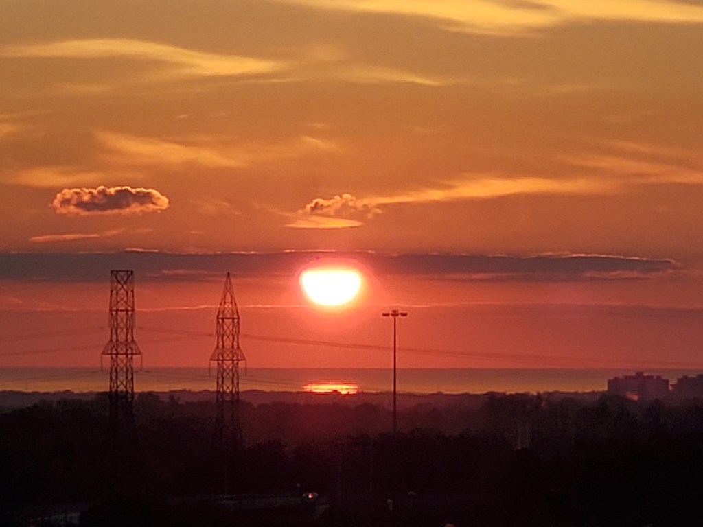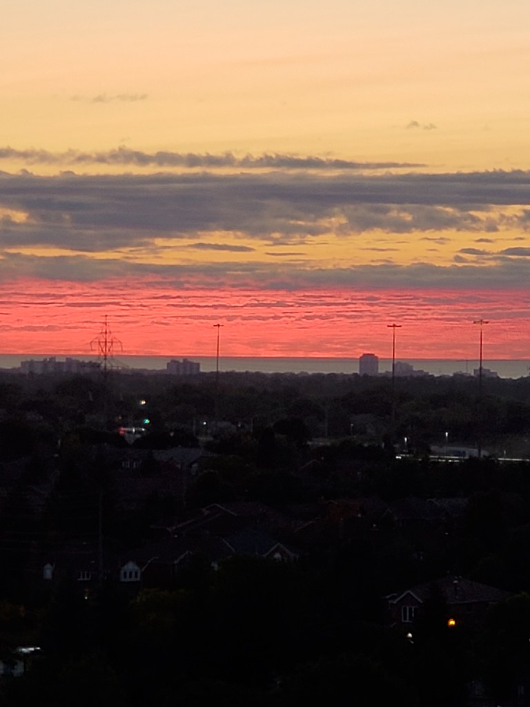 This morning, sunrise shared its golden-red light with clouds diffused gentle white