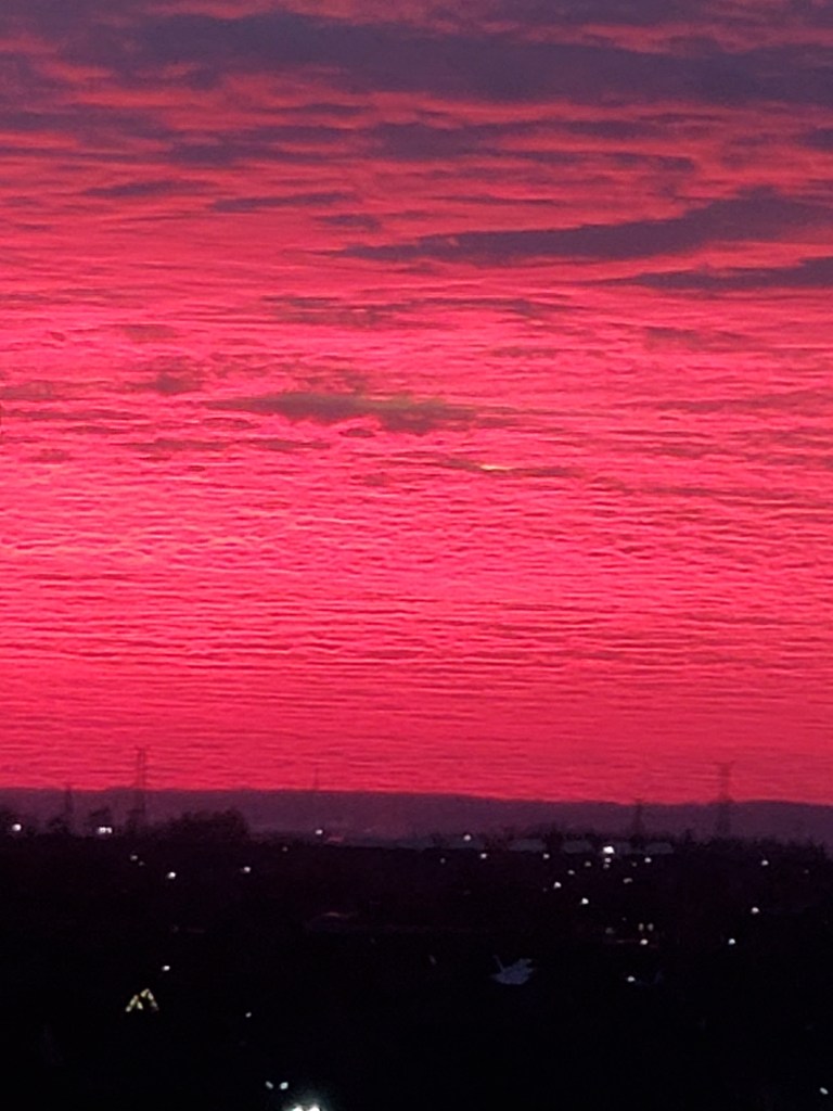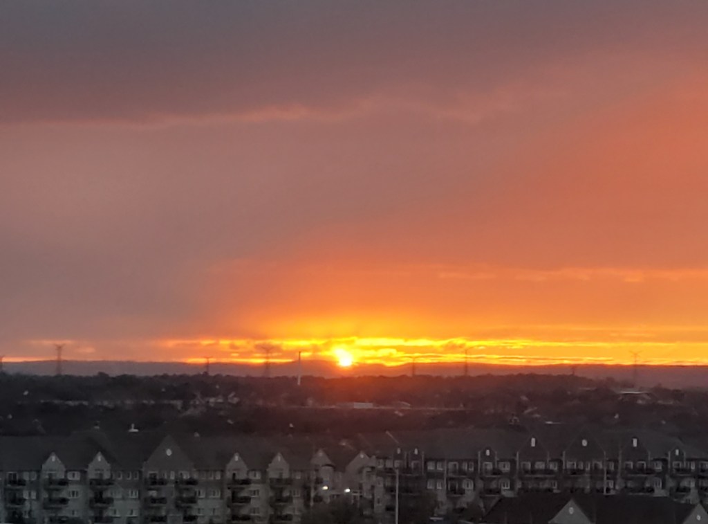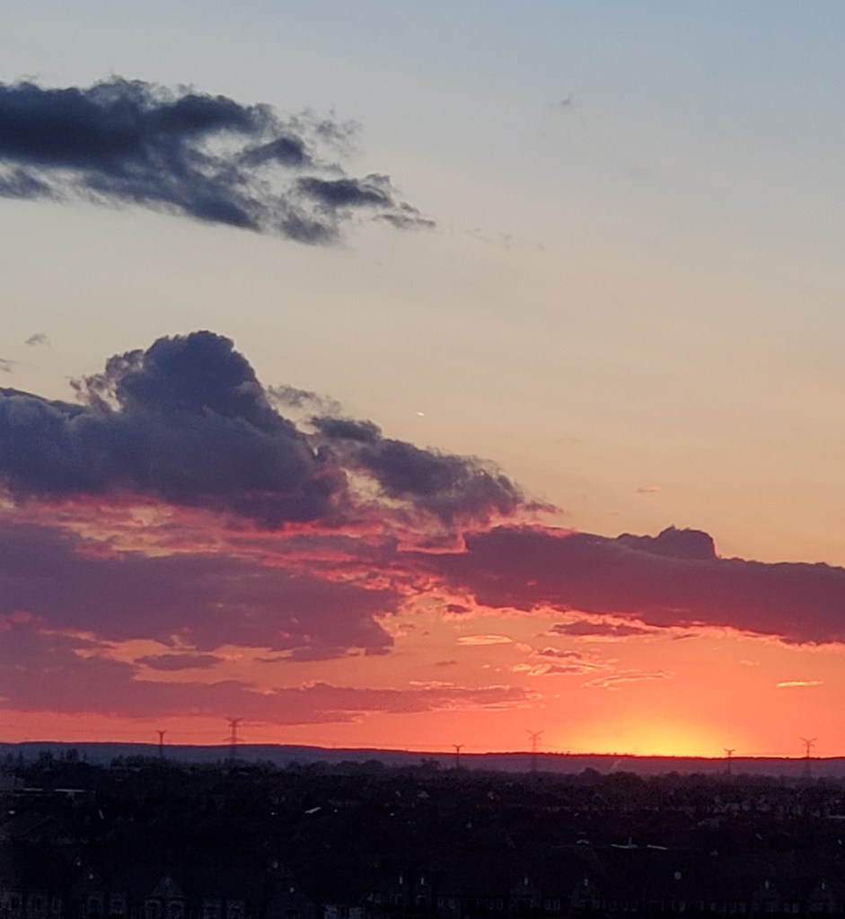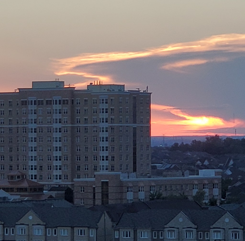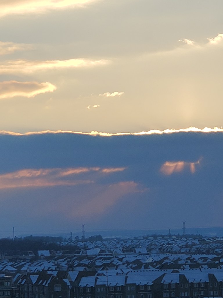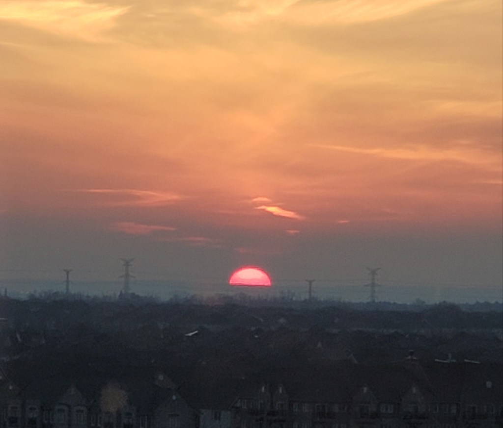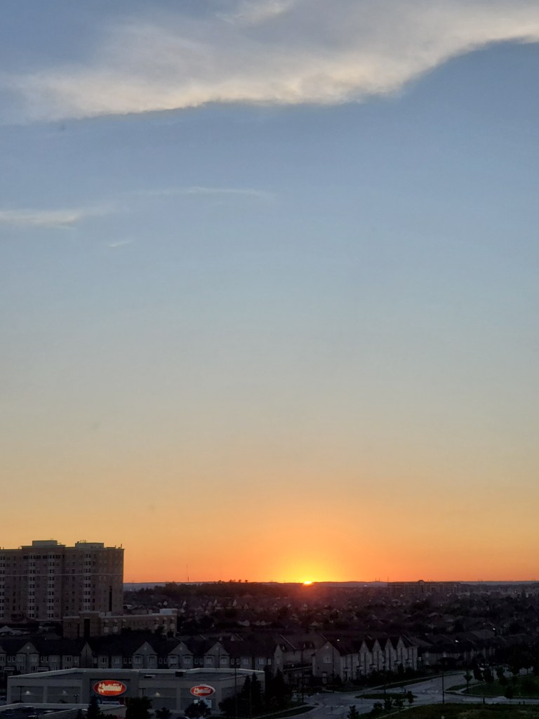 This morning, sunrise shared its golden-red light with clouds diffused gentle white
