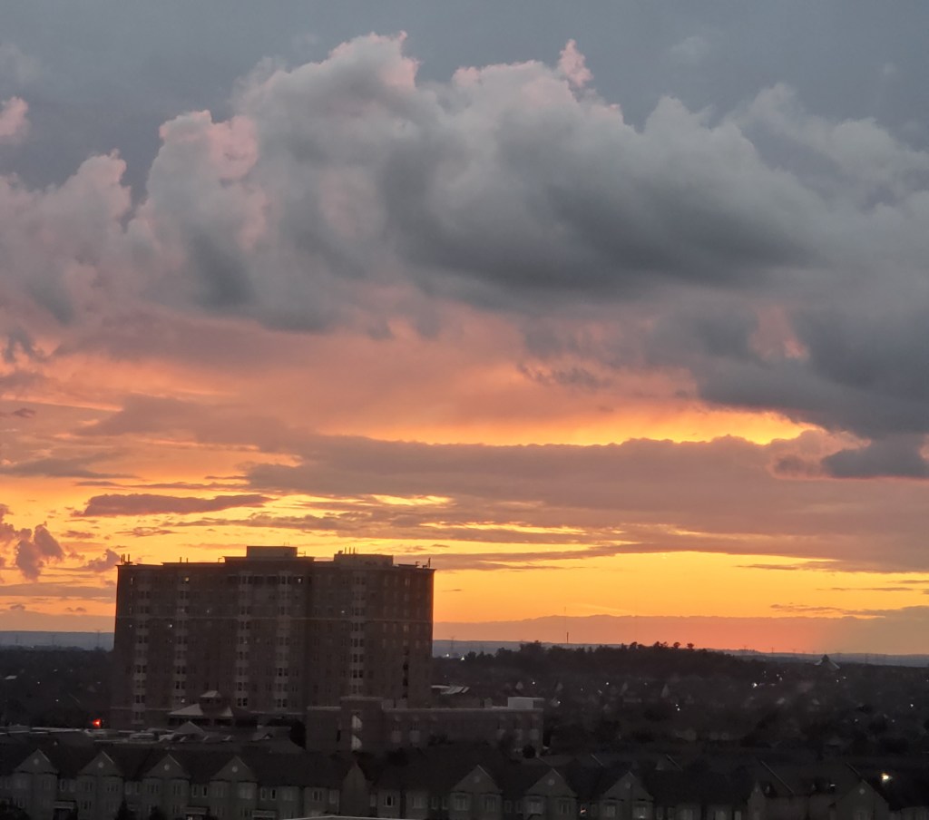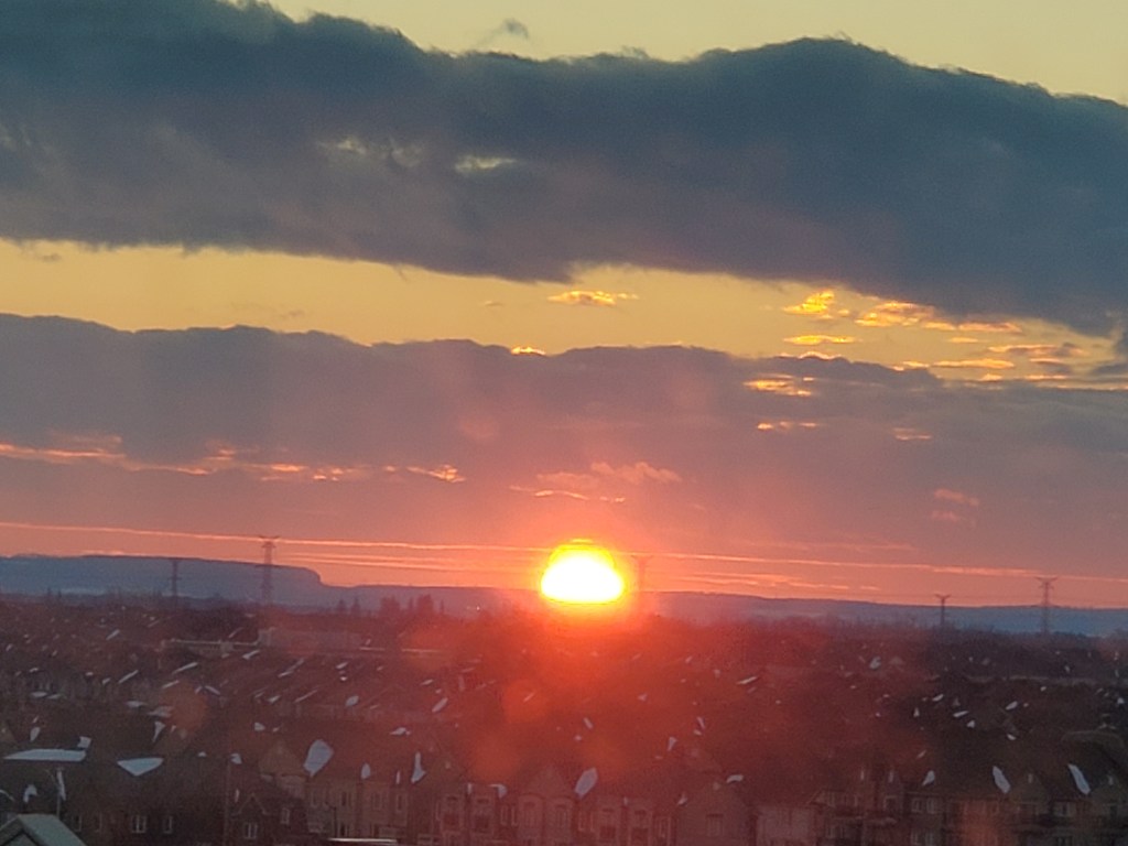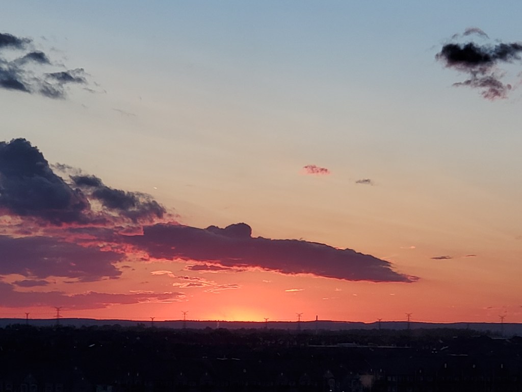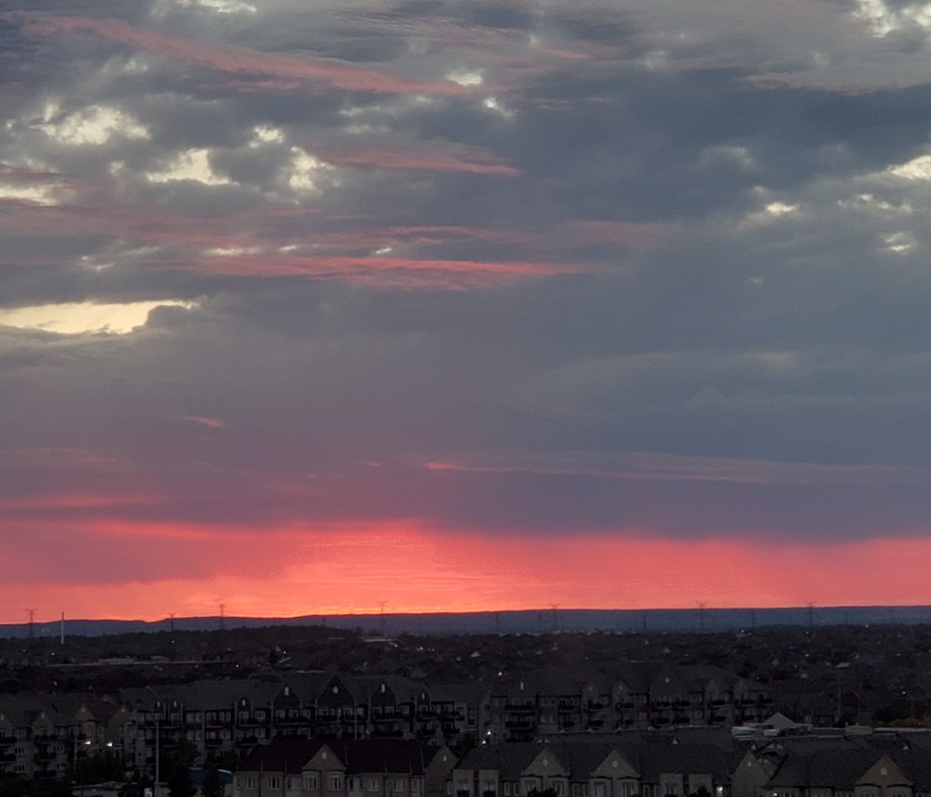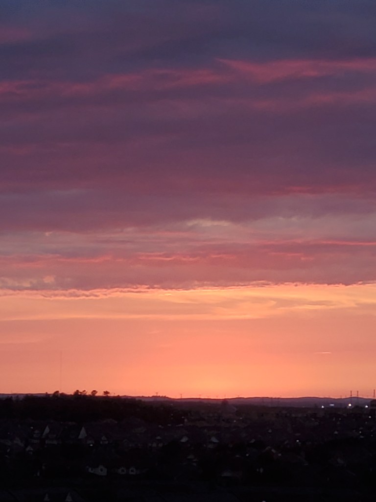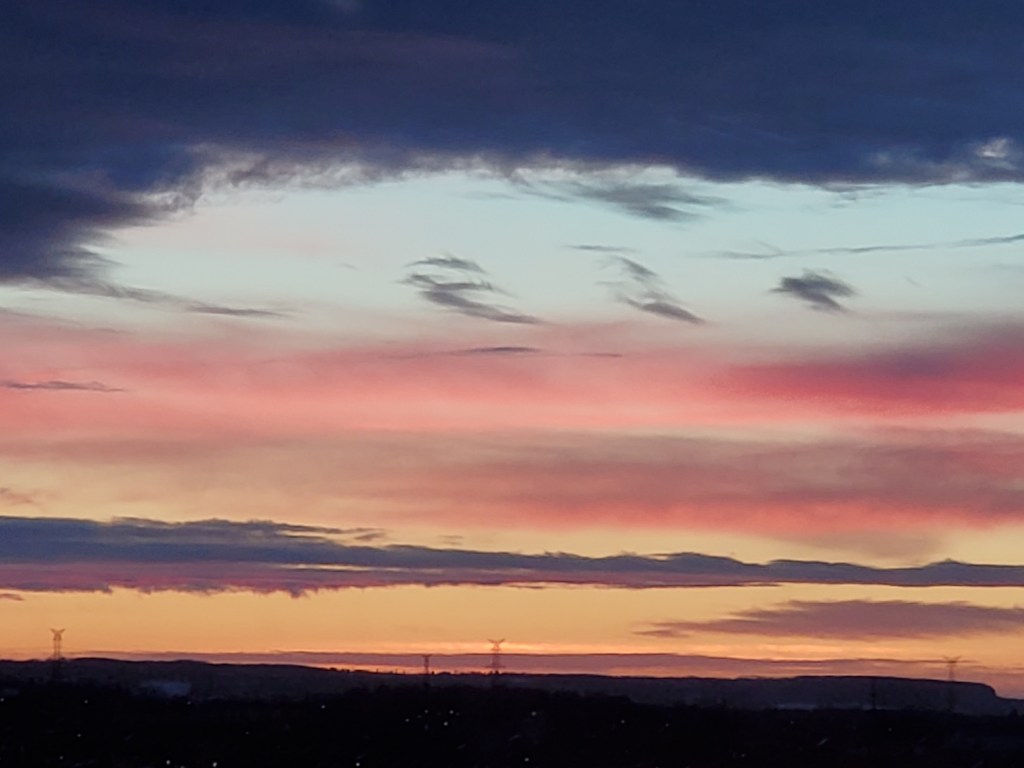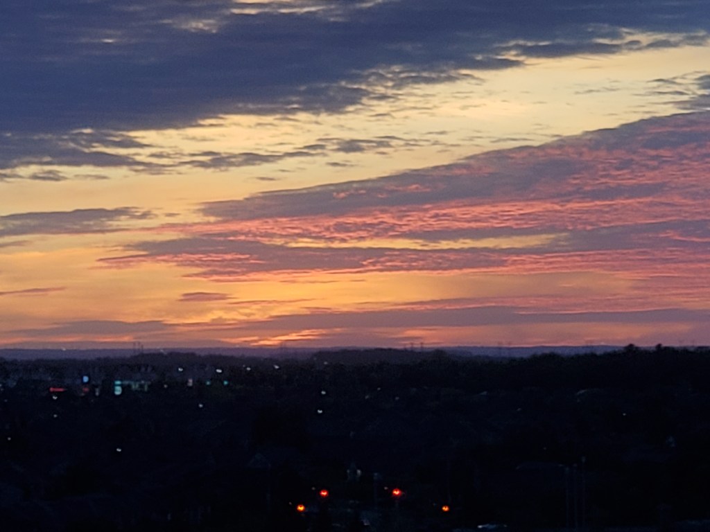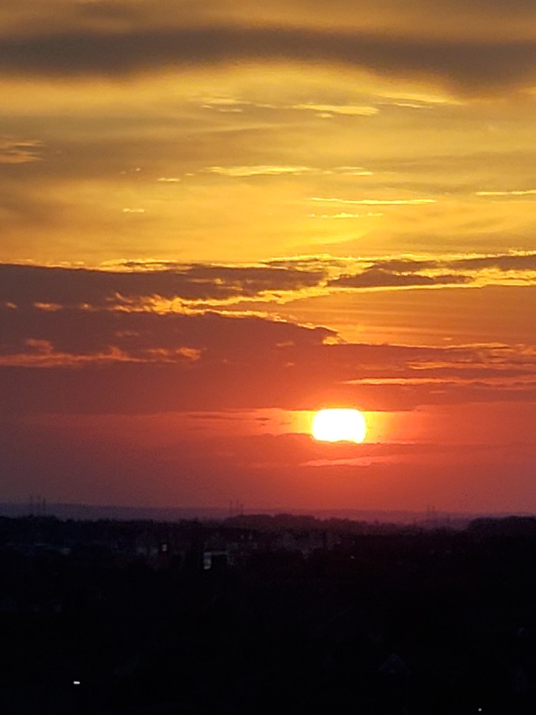 This morning, sunrise shared its golden-red light with clouds diffused gentle white
