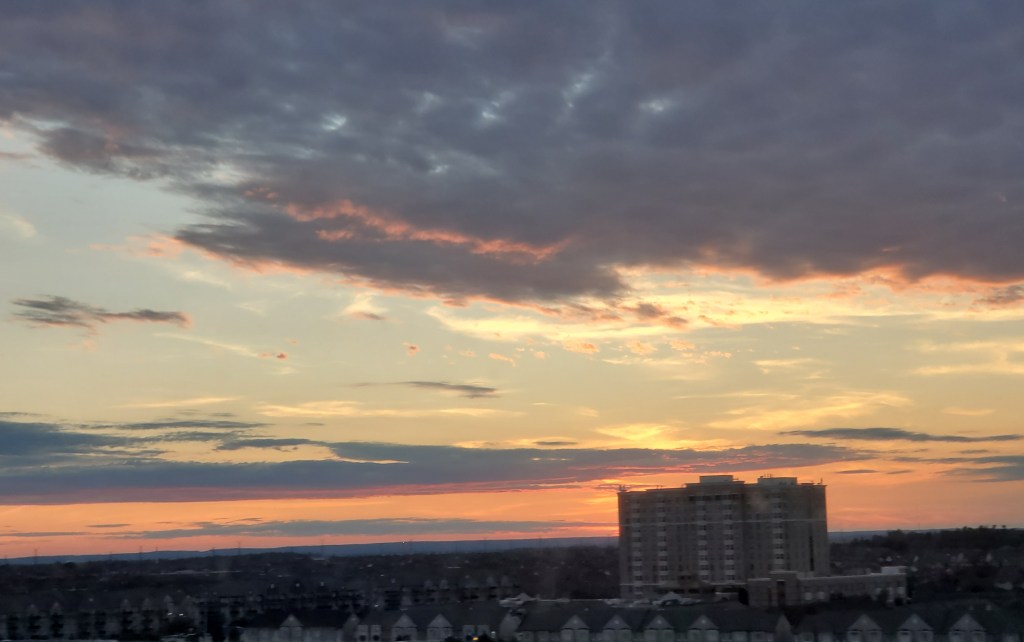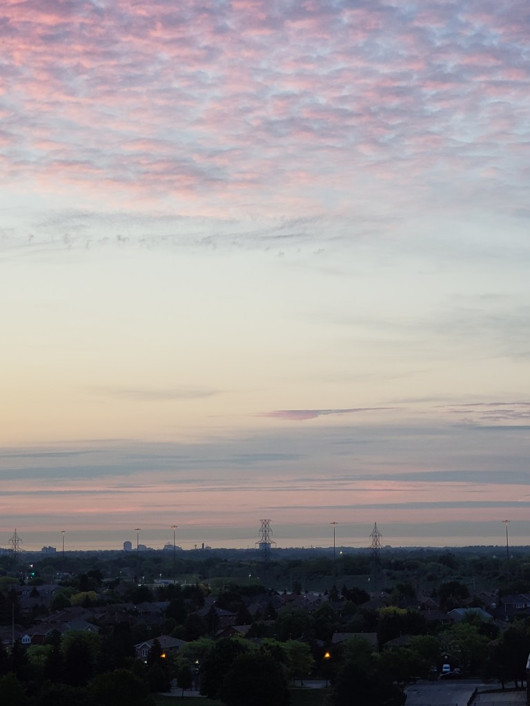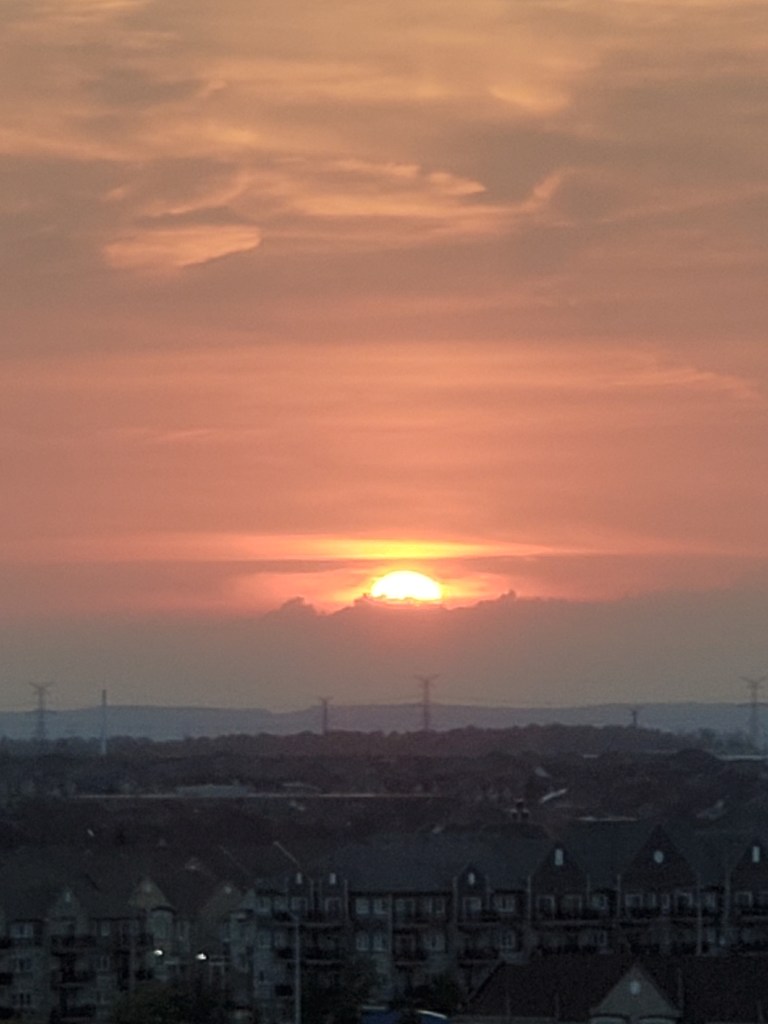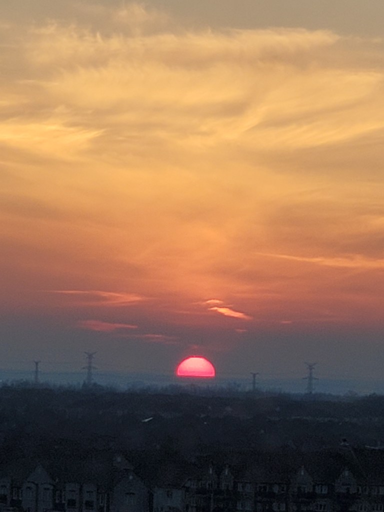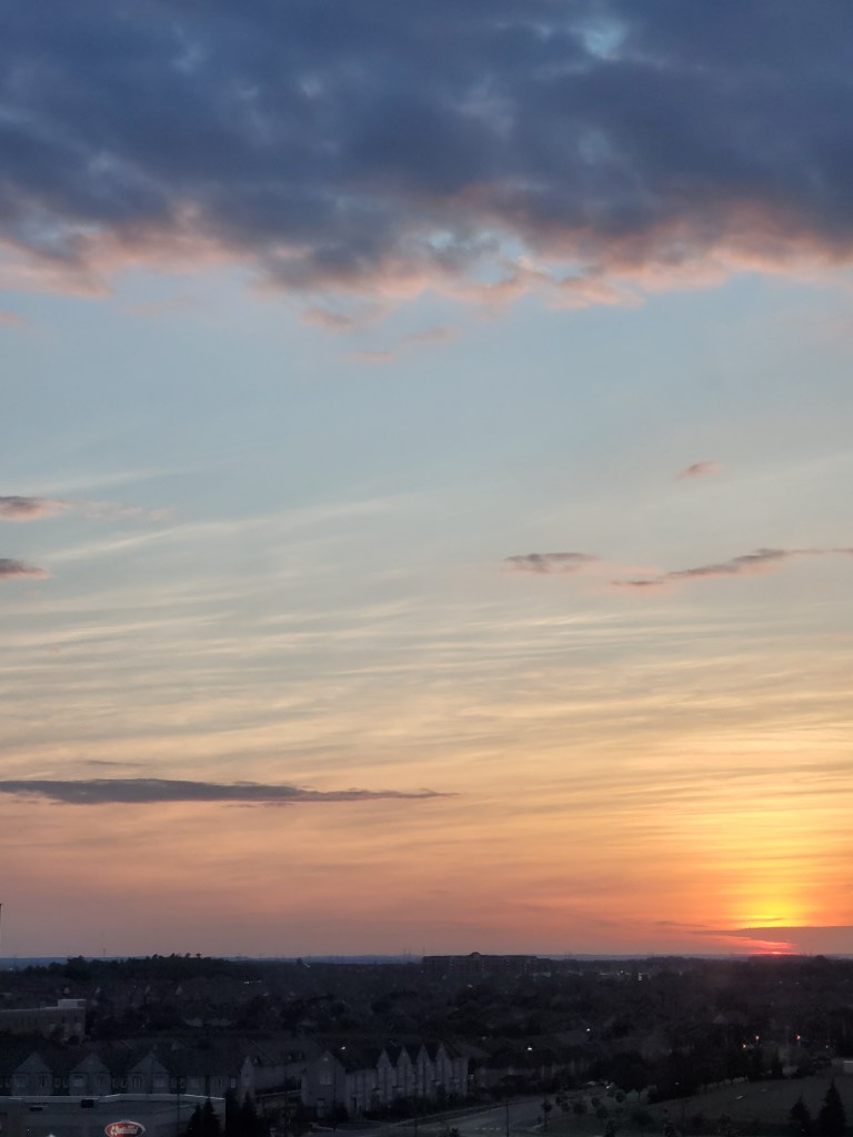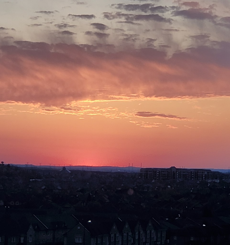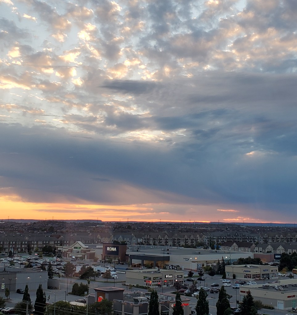 This morning, sunrise shared its golden-red light with clouds diffused gentle white