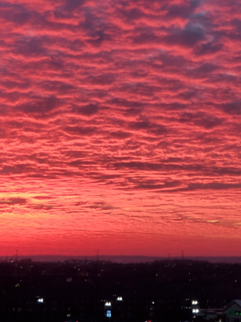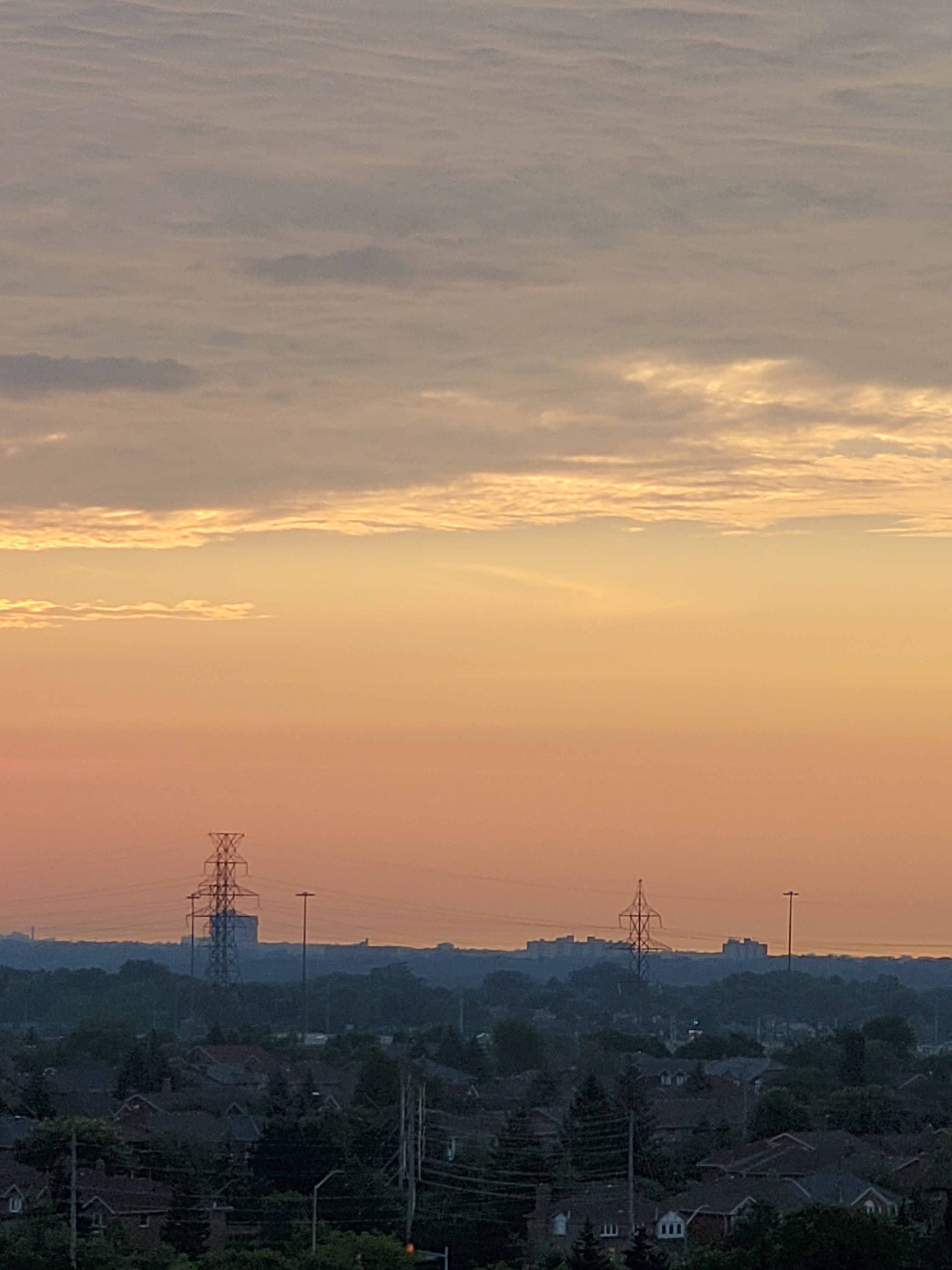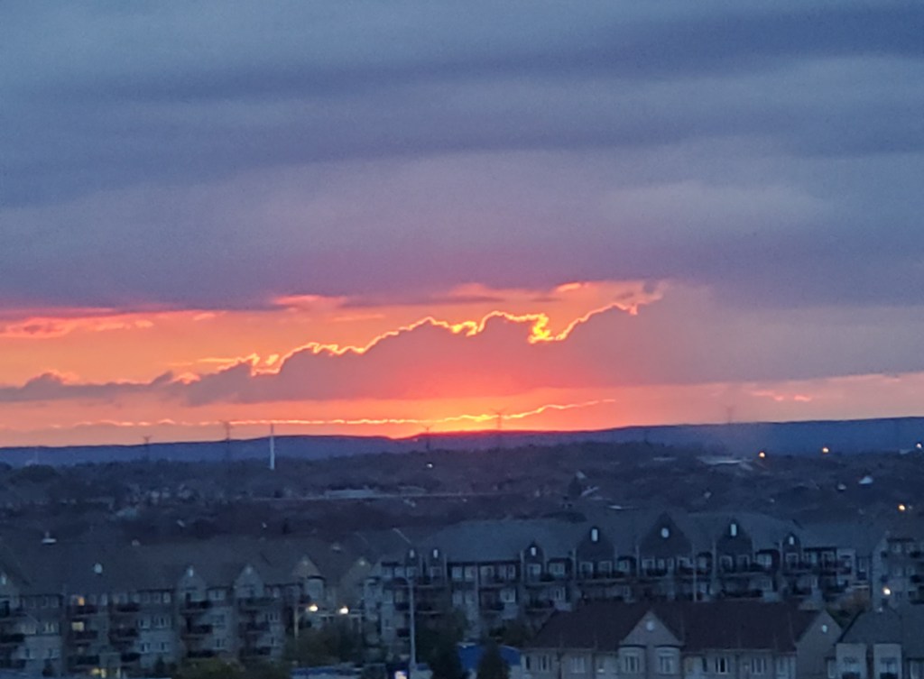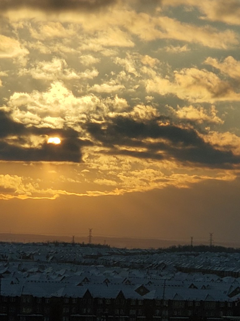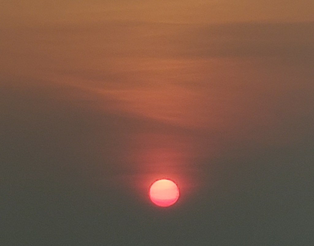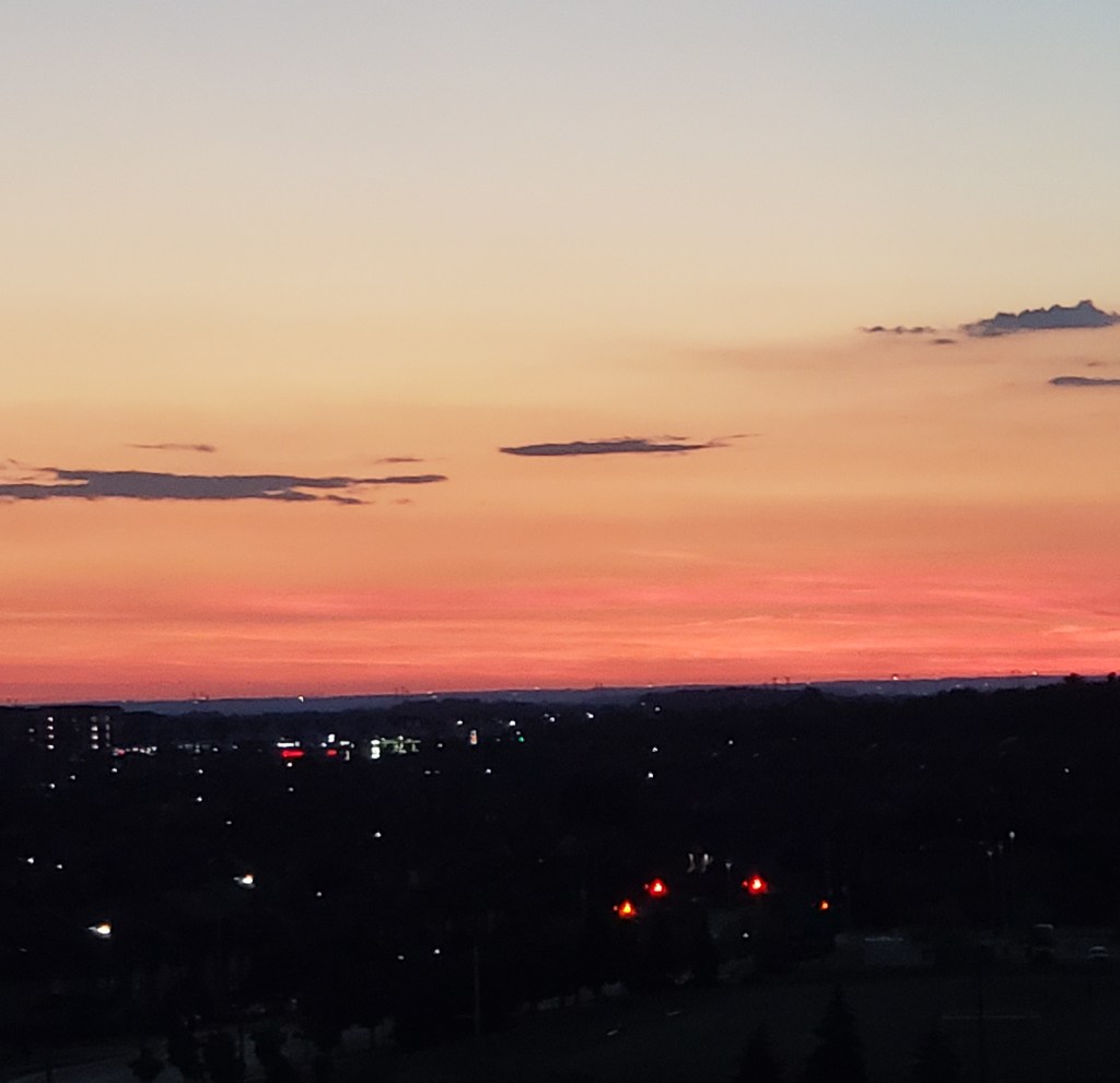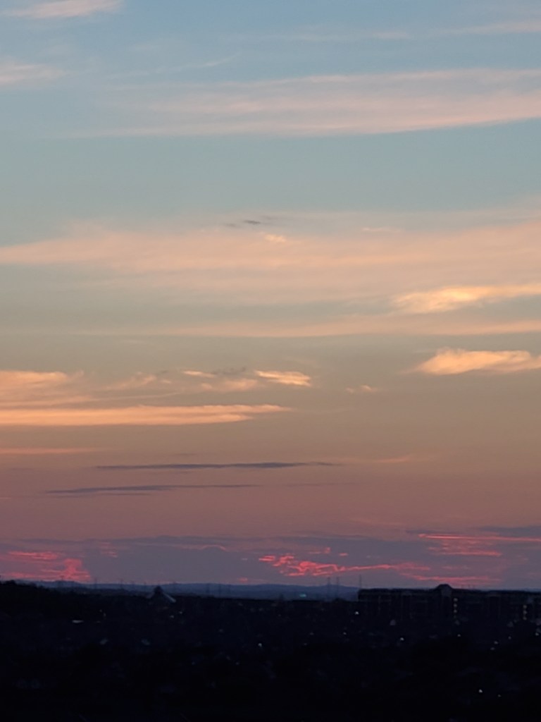 This morning, sunrise shared its golden-red light with clouds diffused gentle white