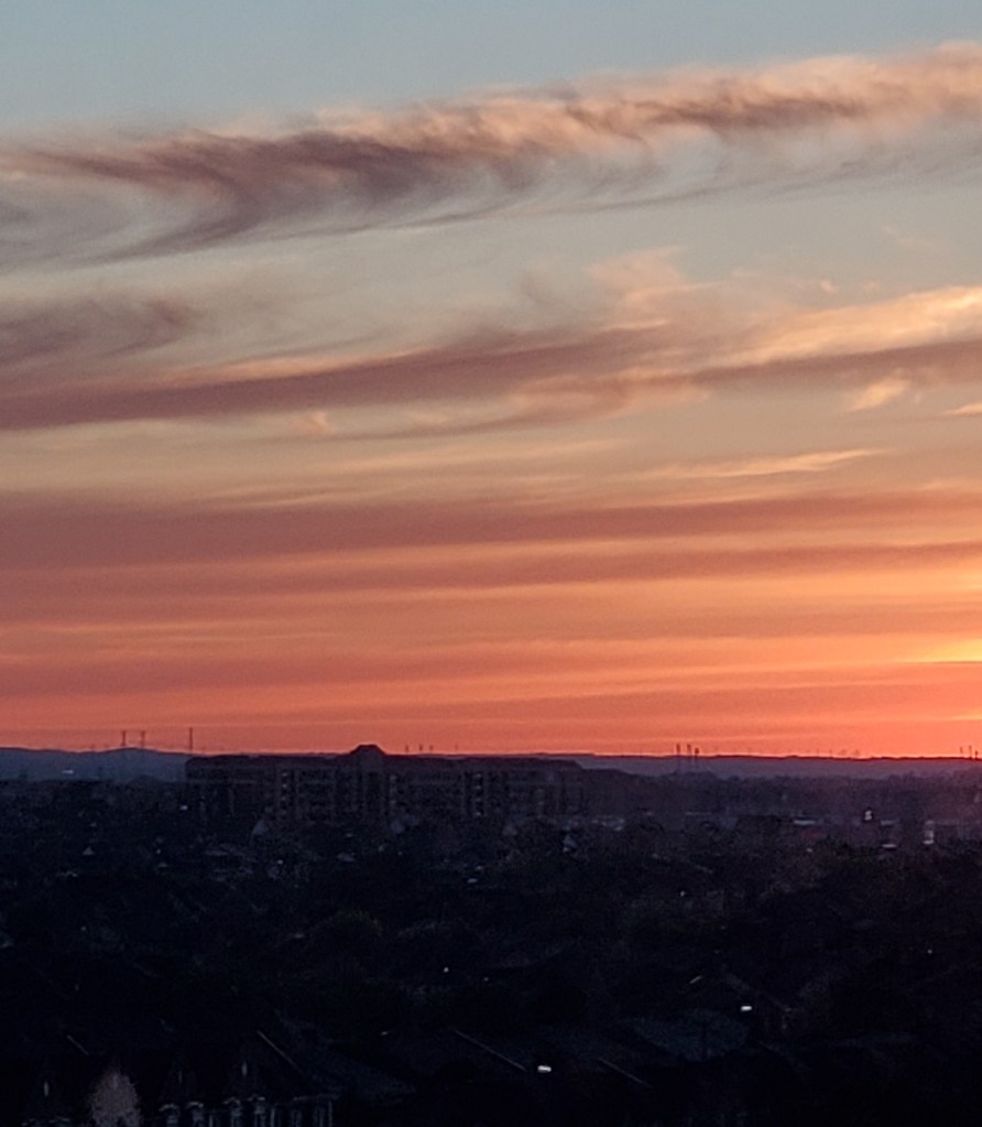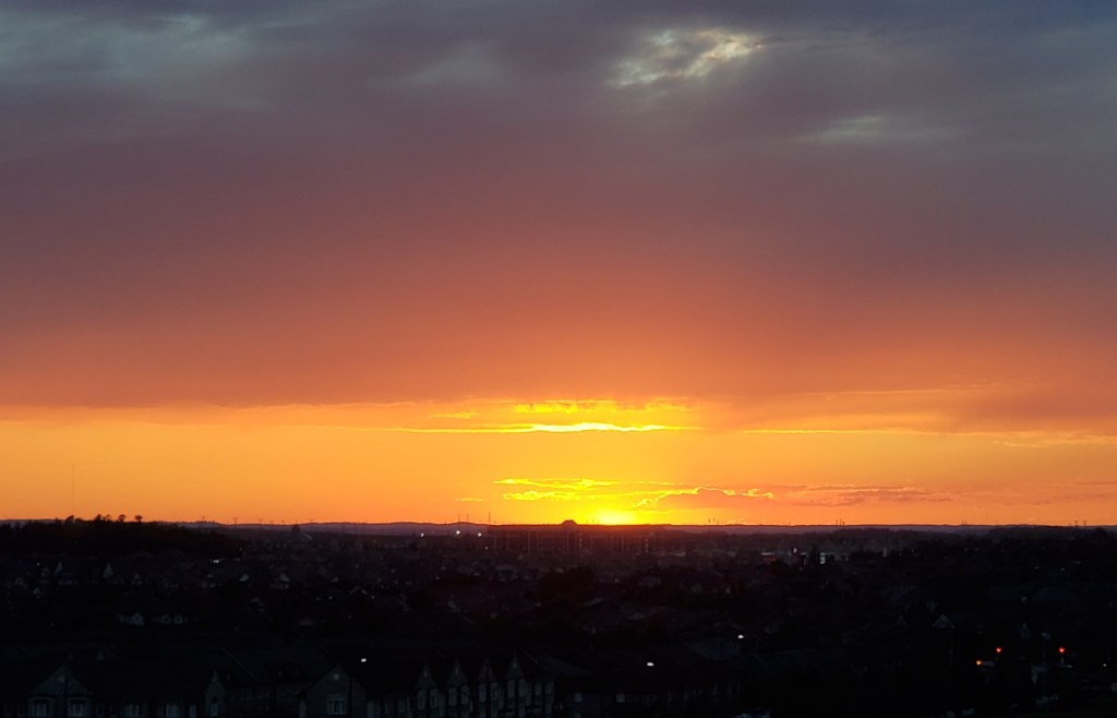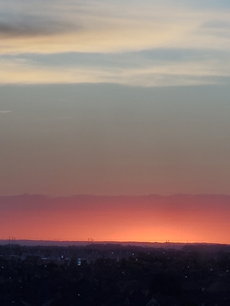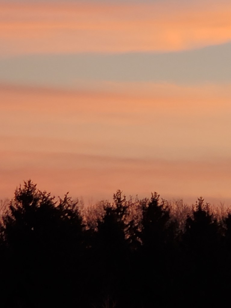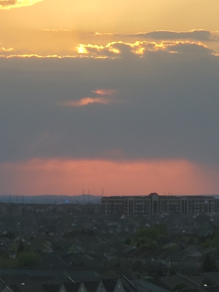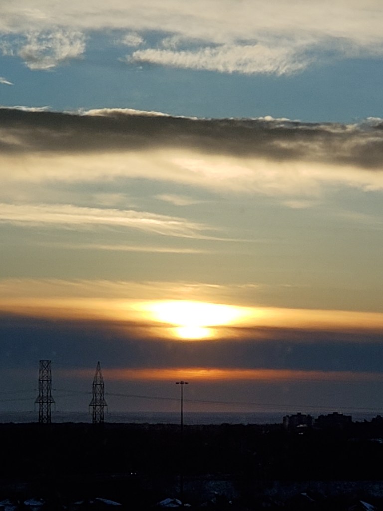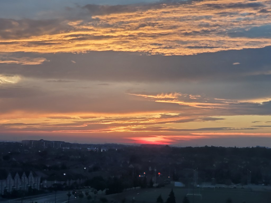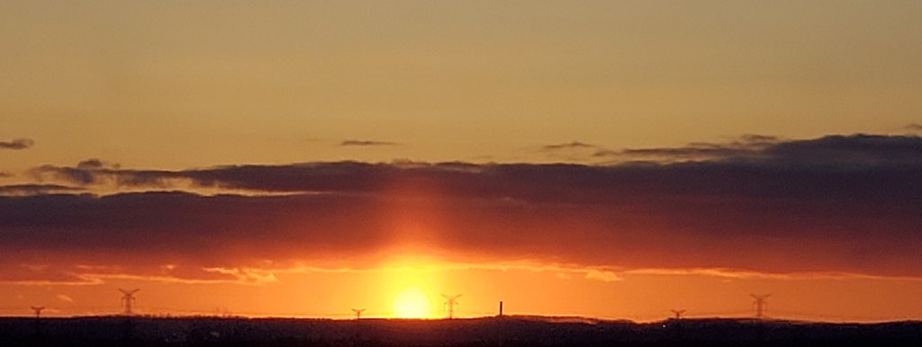 This morning, sunrise shared its golden-red light with clouds diffused gentle white