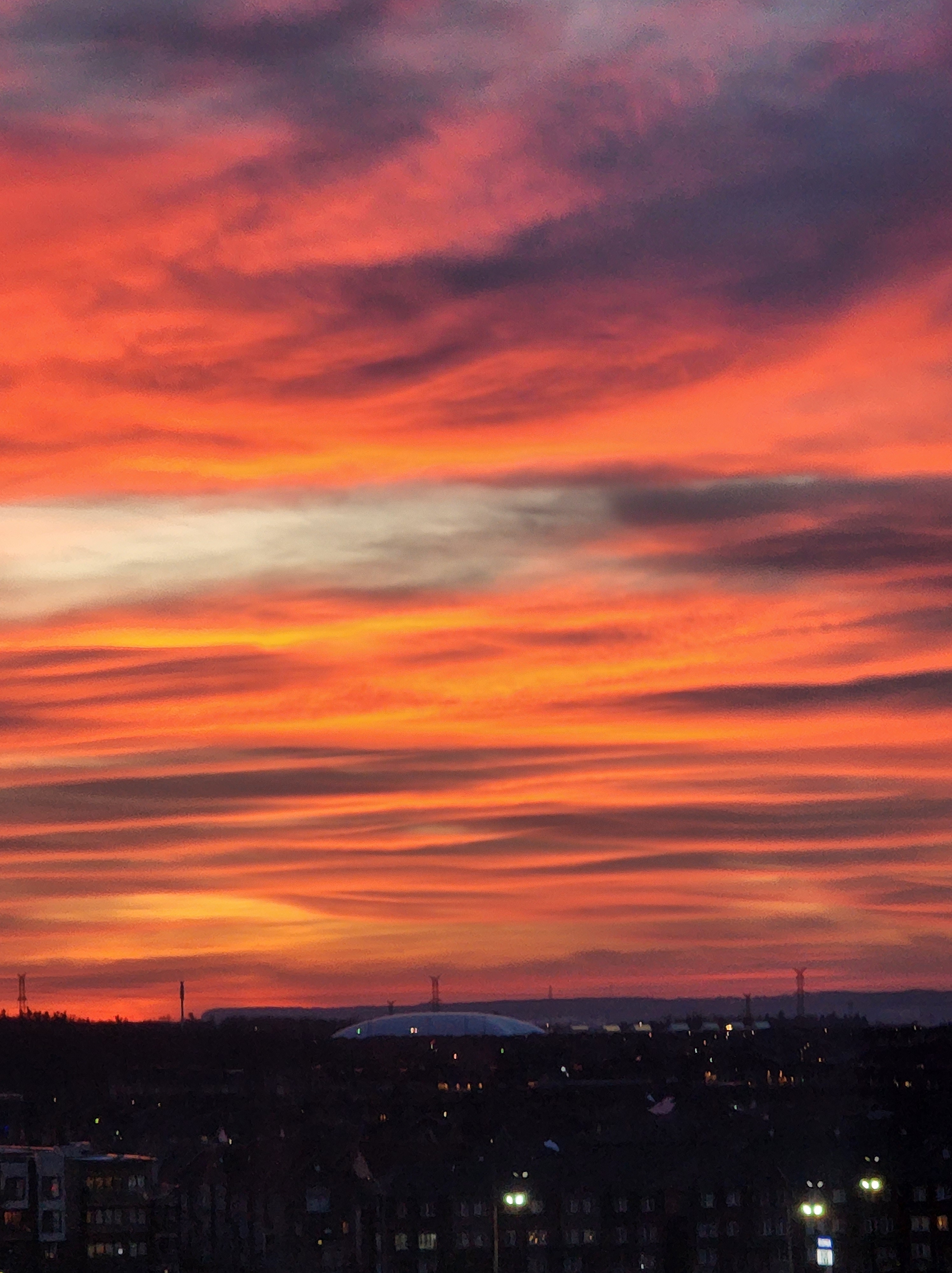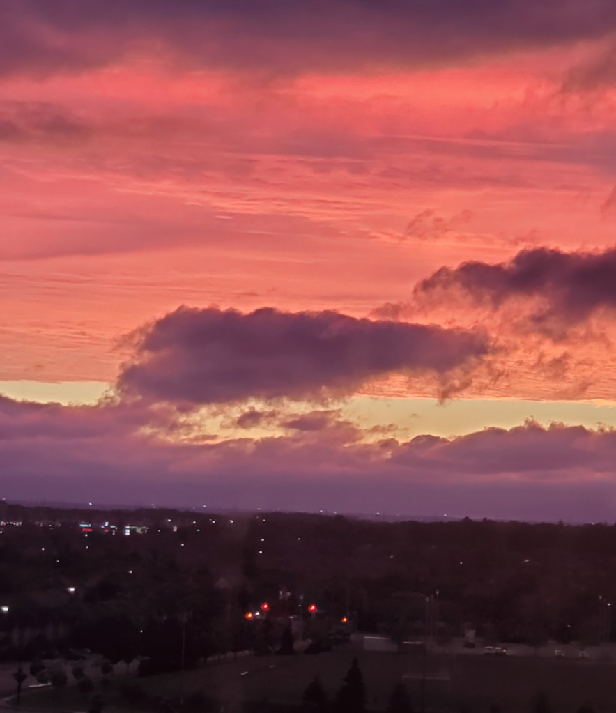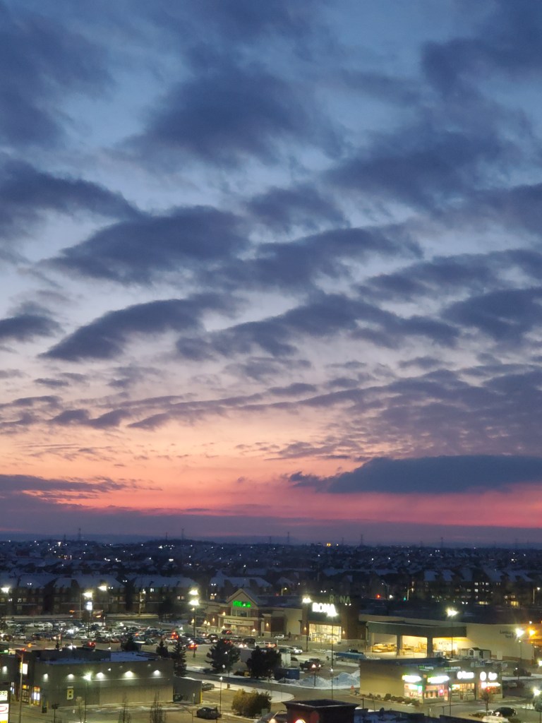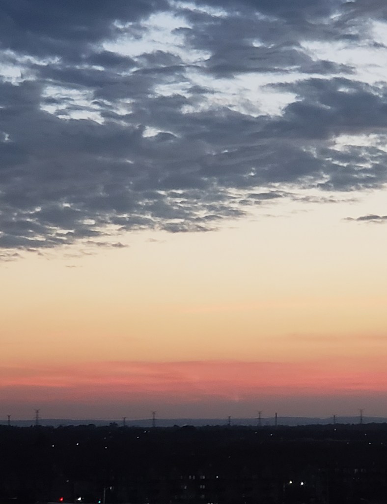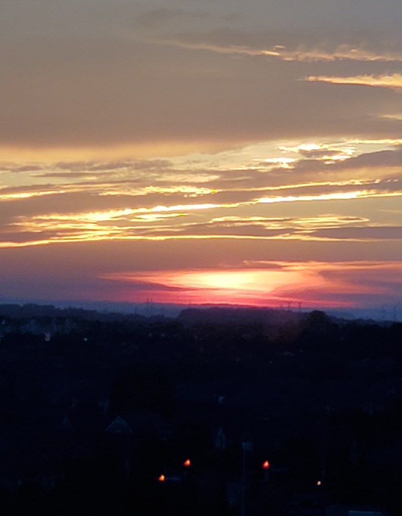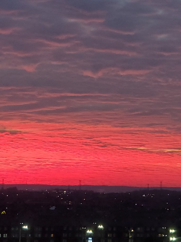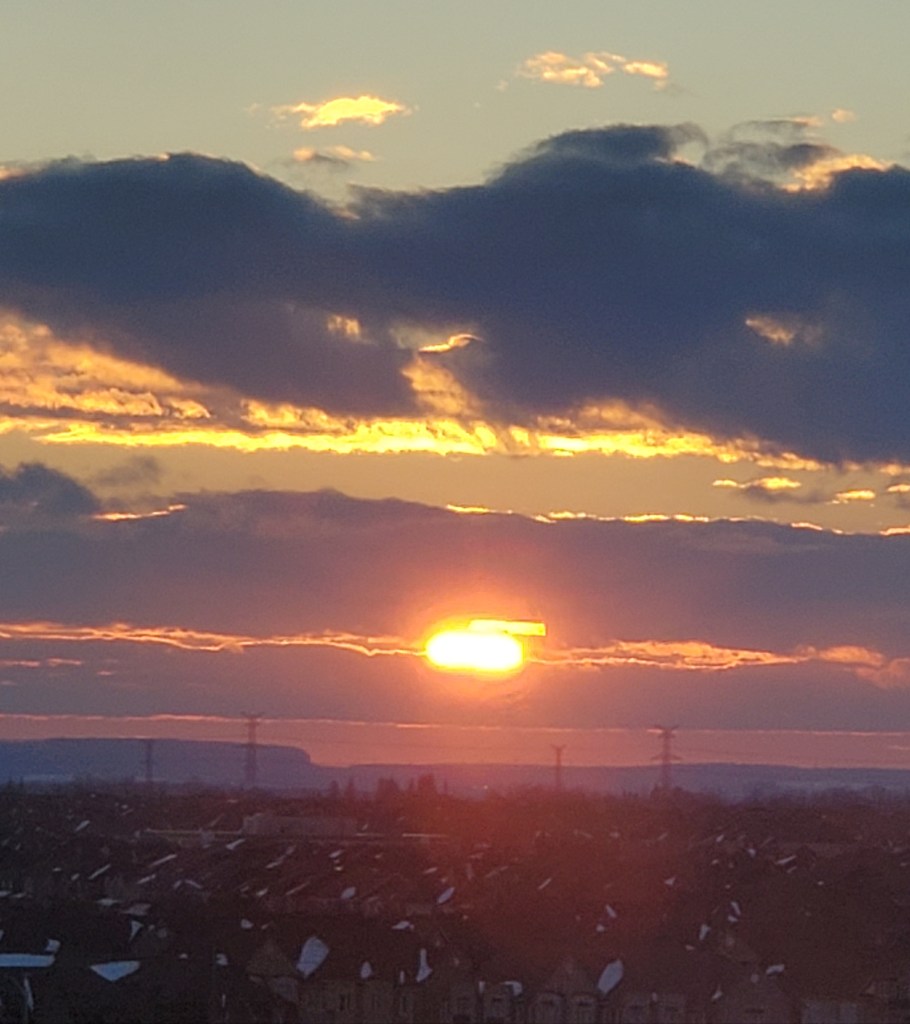 This morning, sunrise shared its golden-red light with clouds diffused gentle white