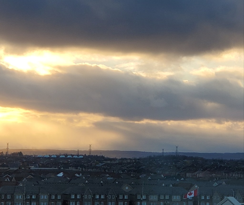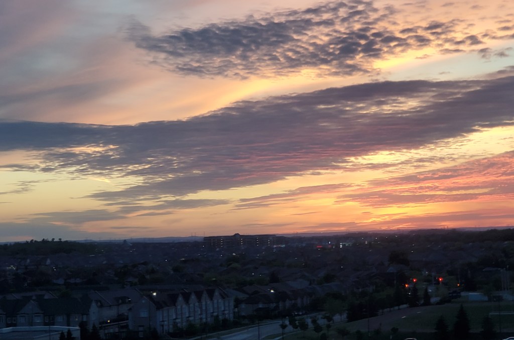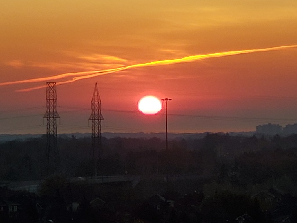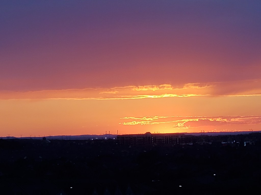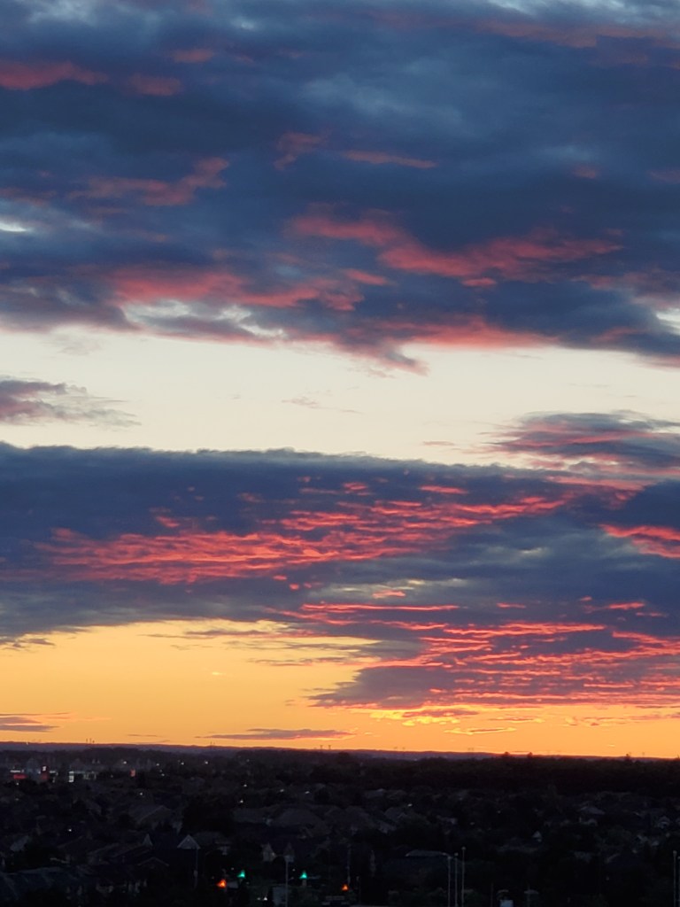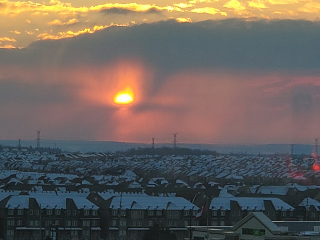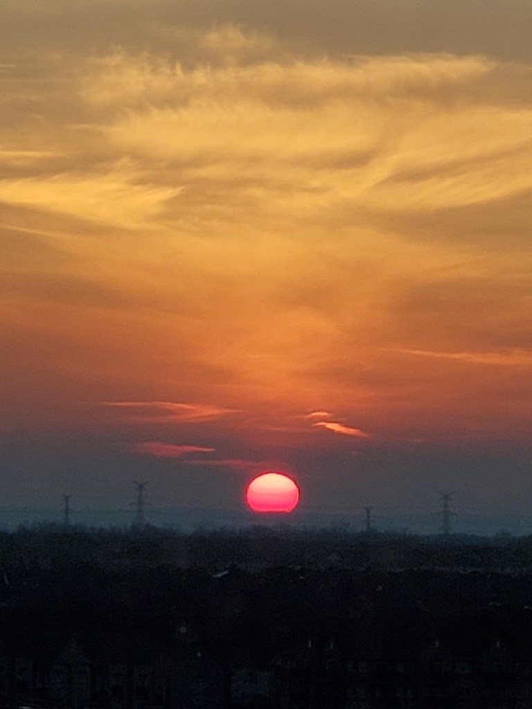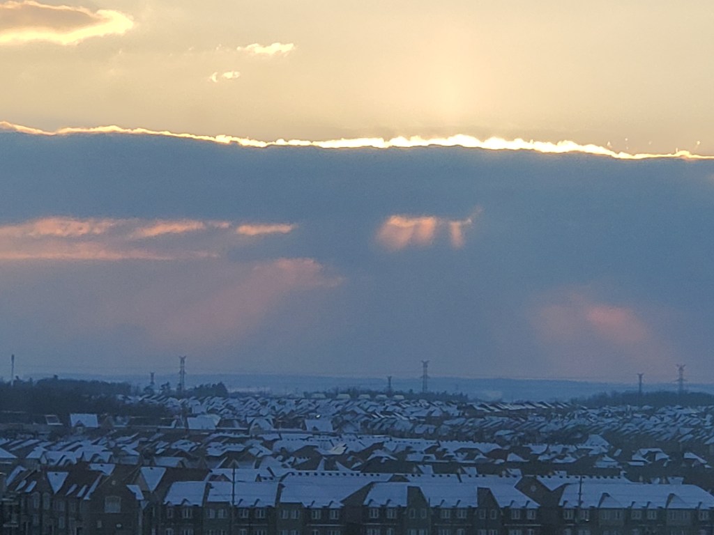 This morning, sunrise shared its golden-red light with clouds diffused gentle white
