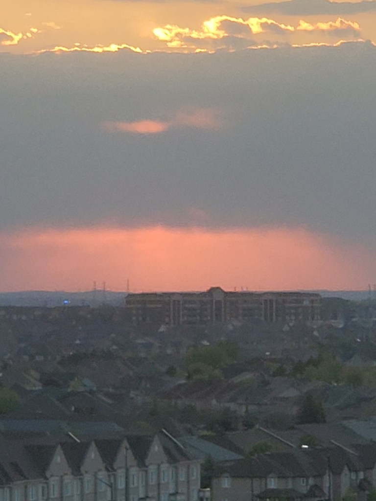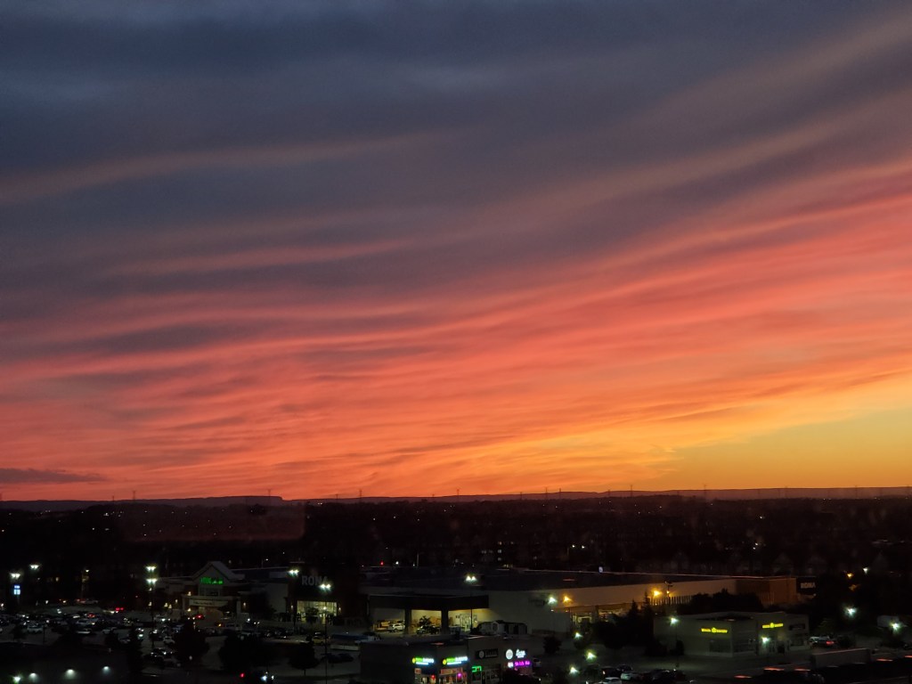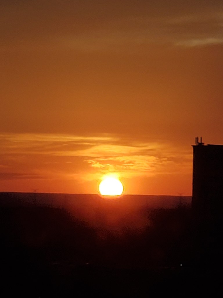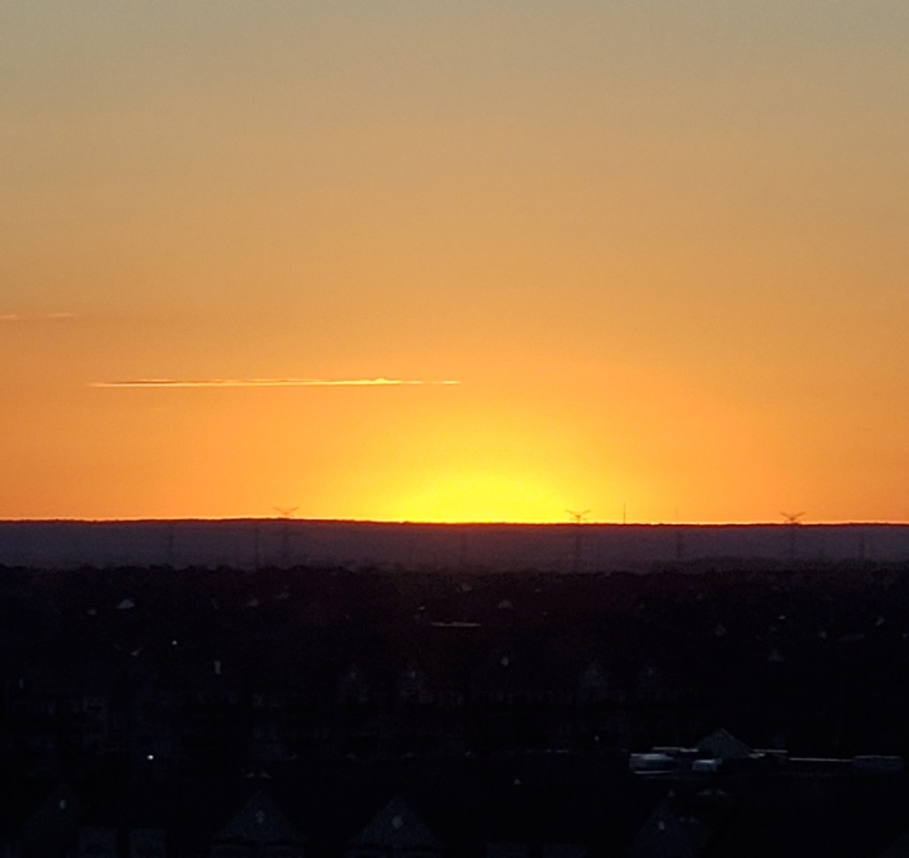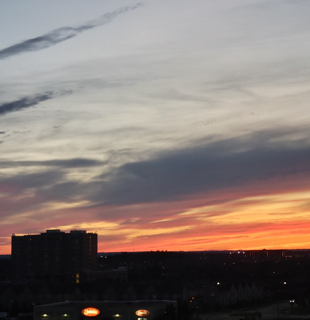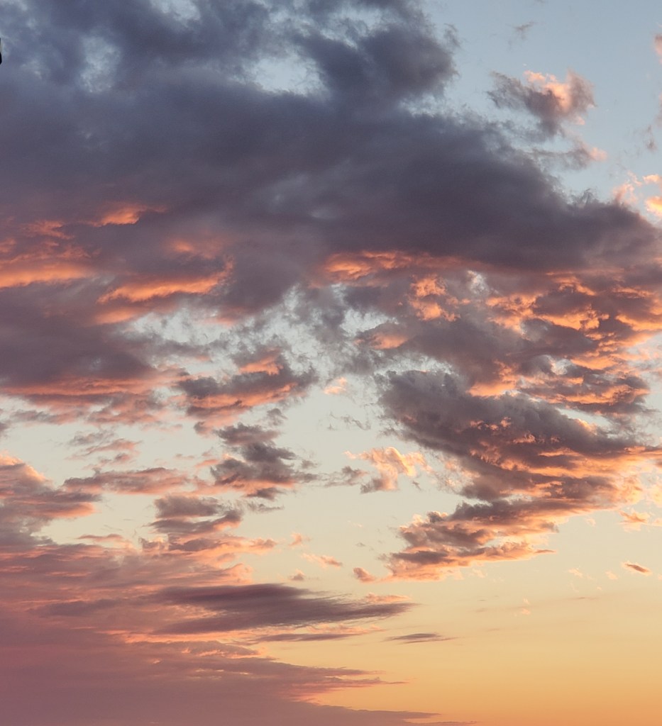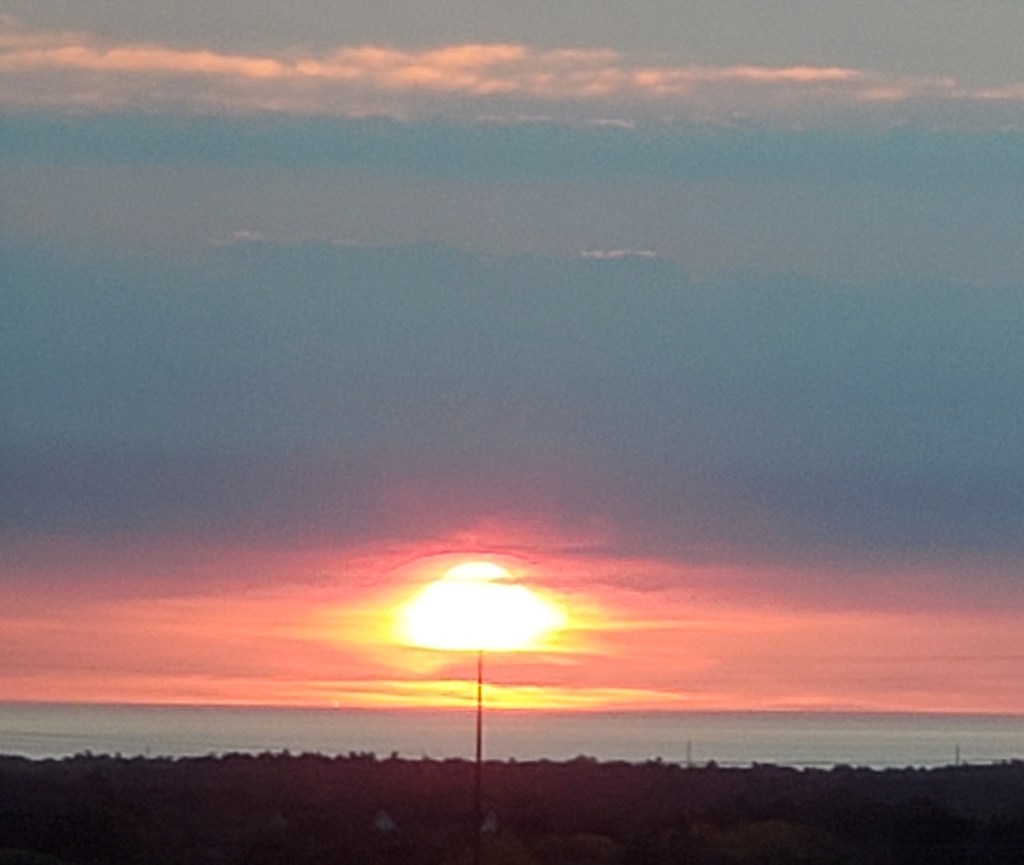 This morning, sunrise shared its golden-red light with clouds diffused gentle white
