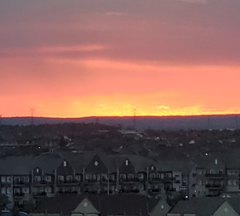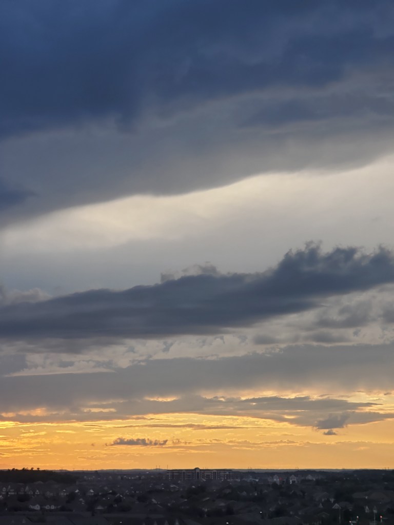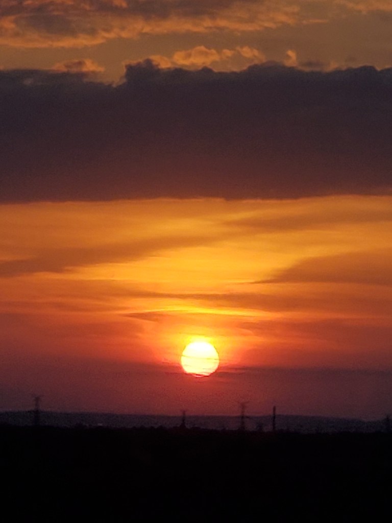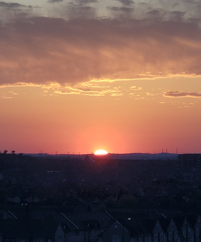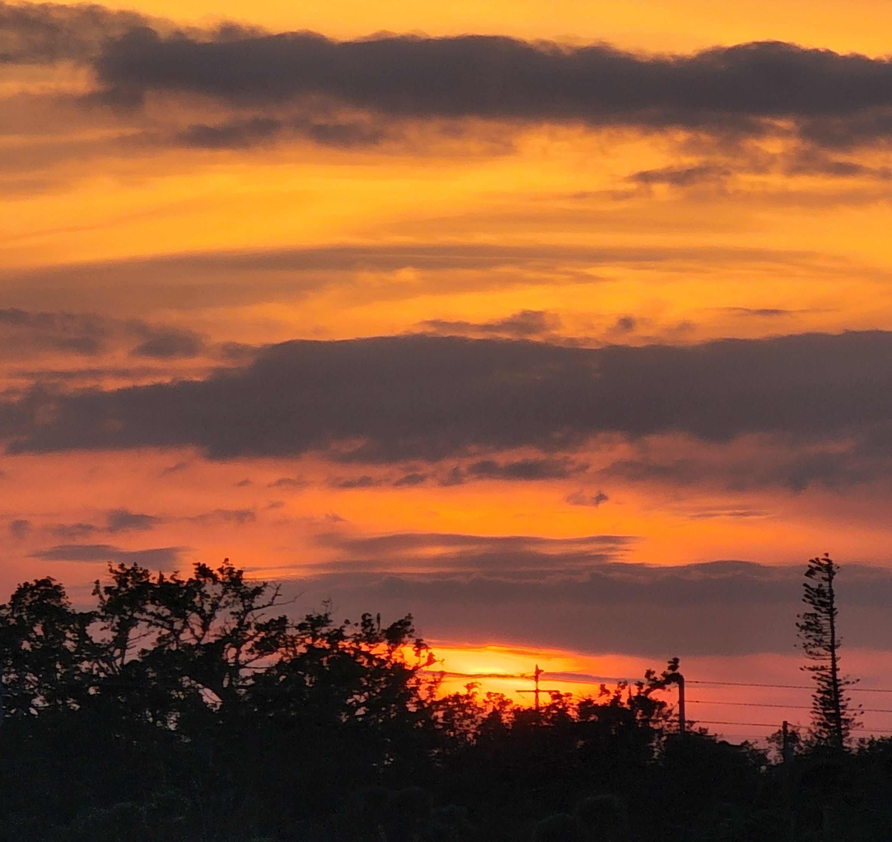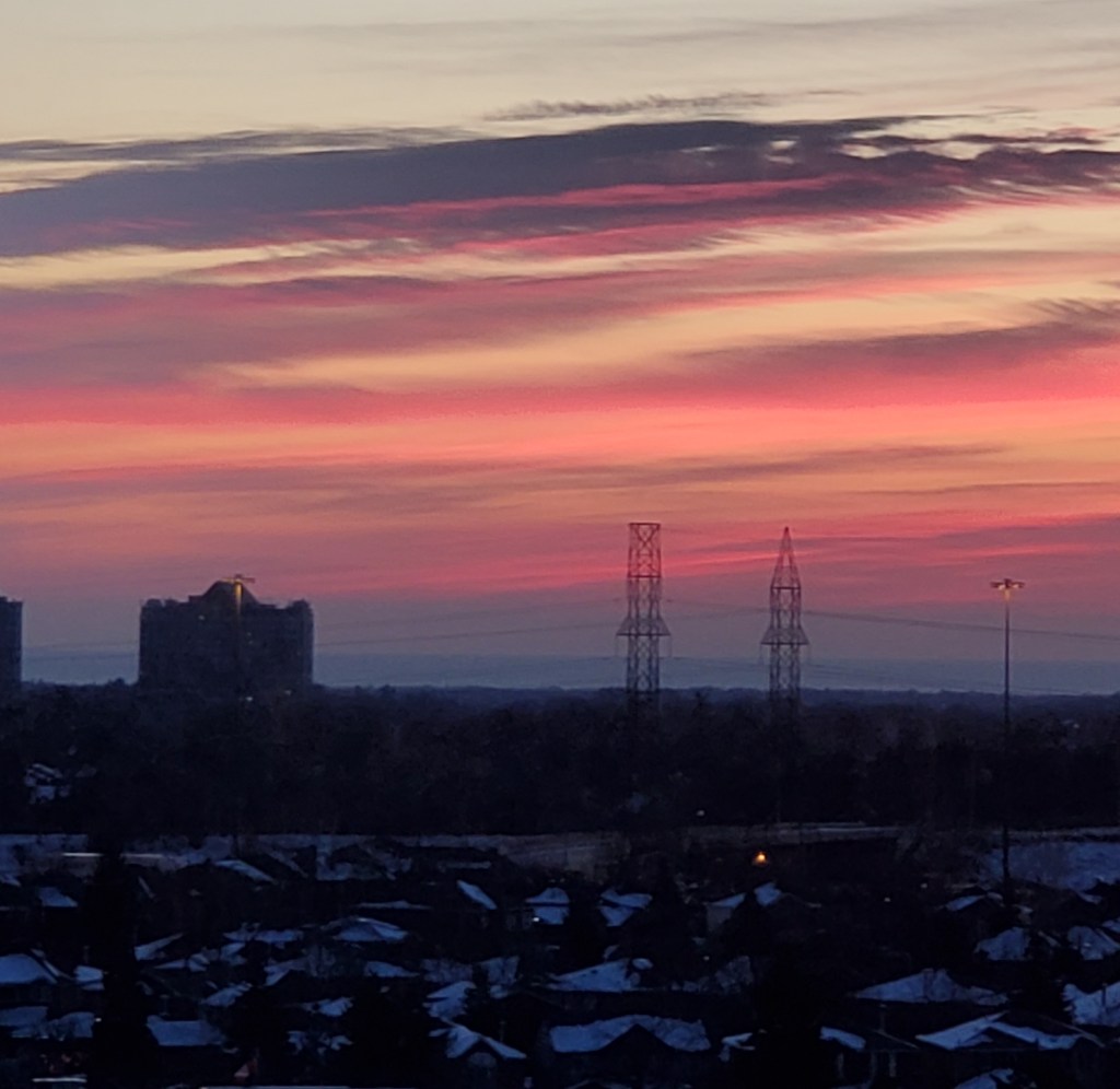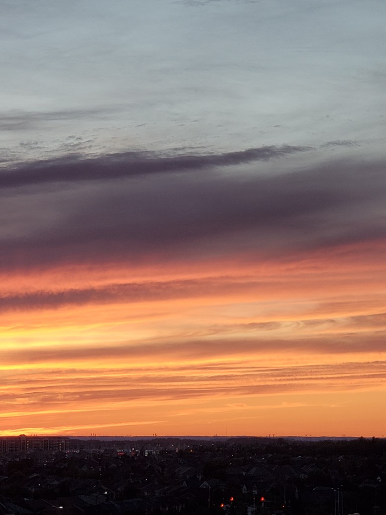 This morning, sunrise shared its golden-red light with clouds diffused gentle white