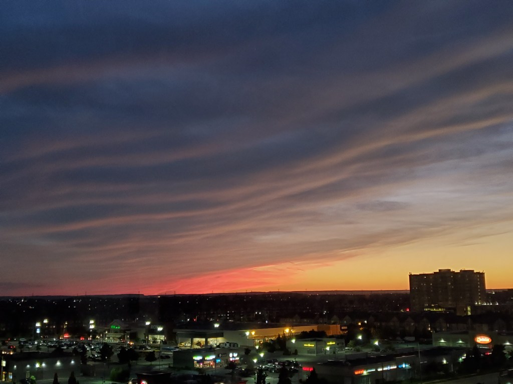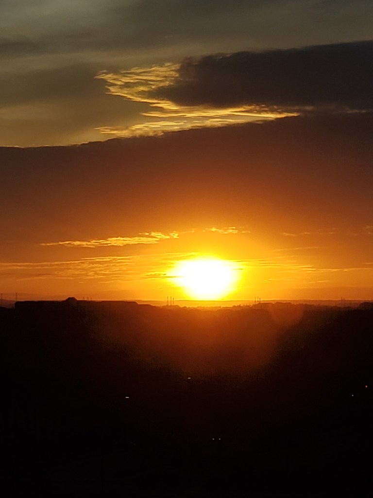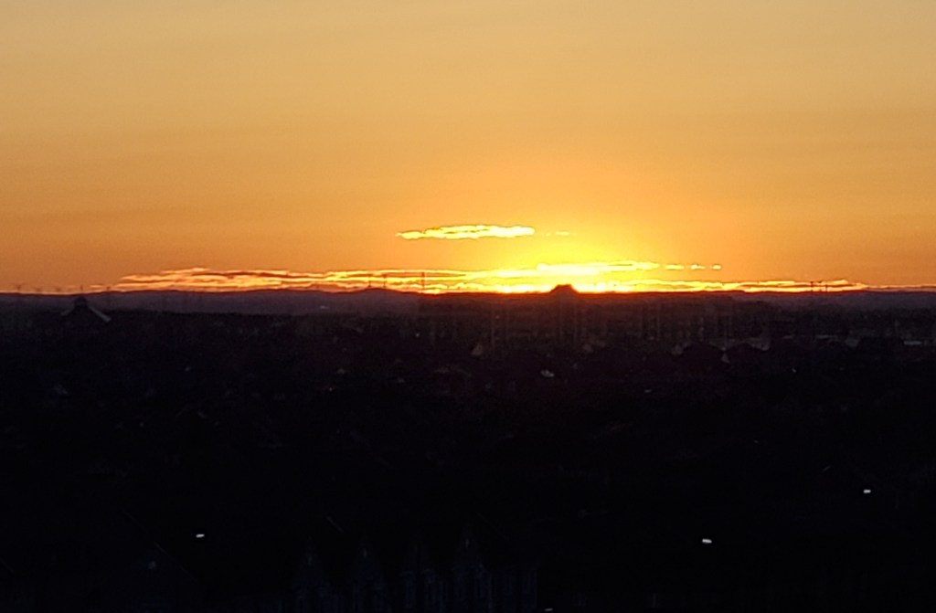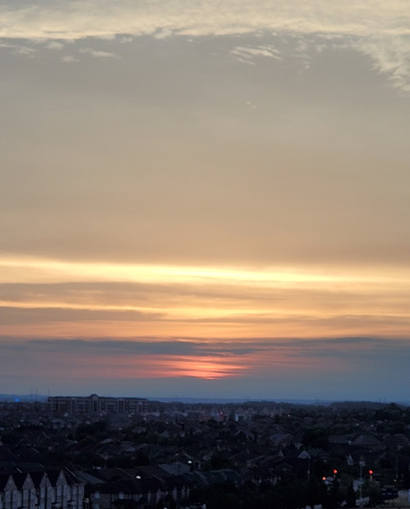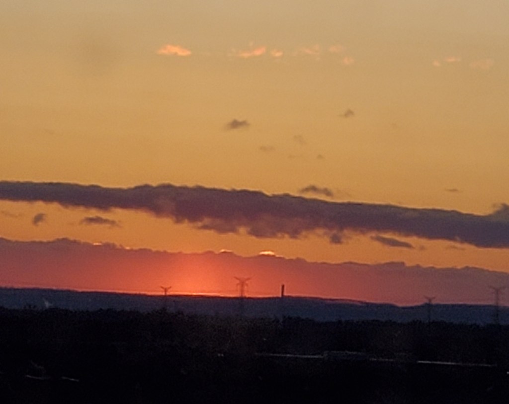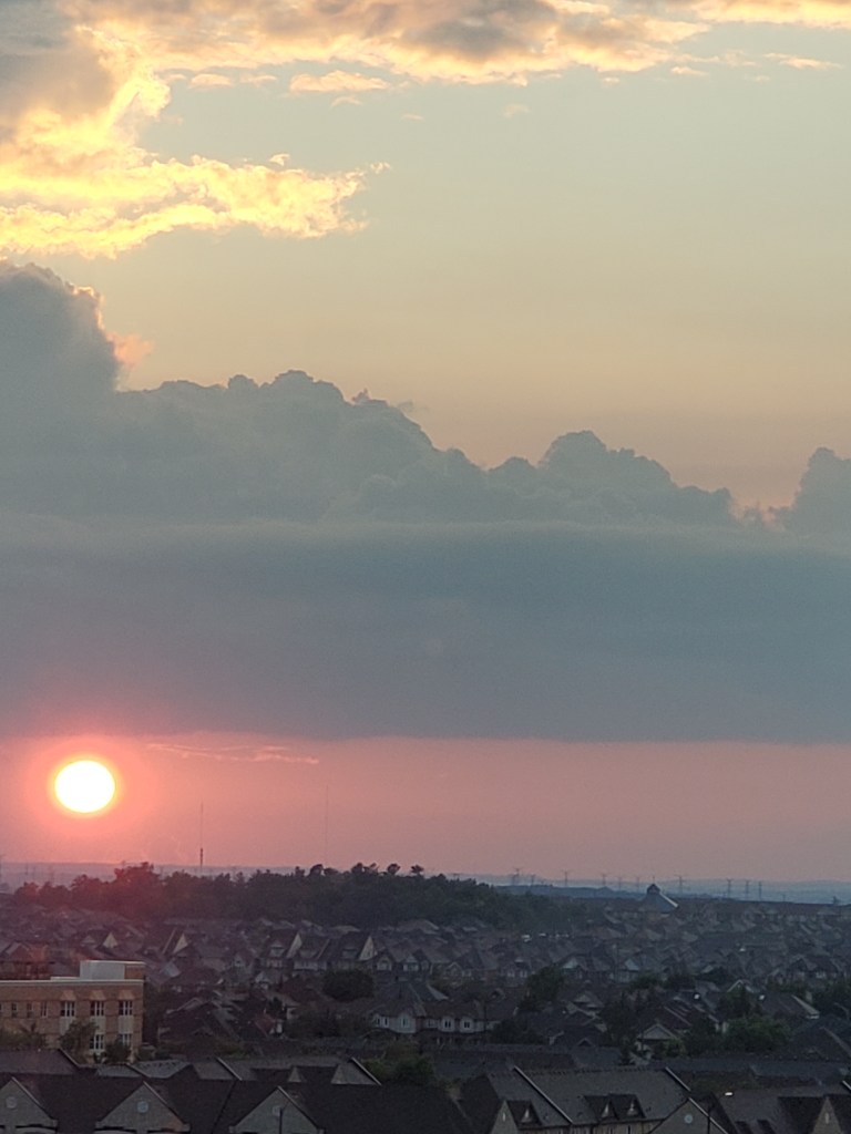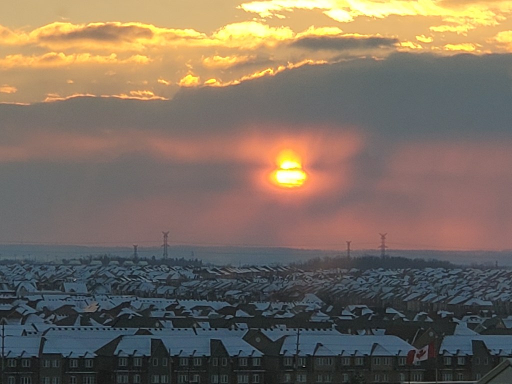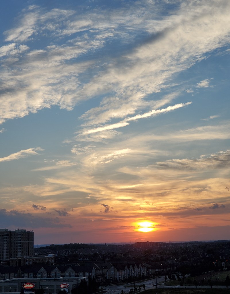 This morning, sunrise shared its golden-red light with clouds diffused gentle white