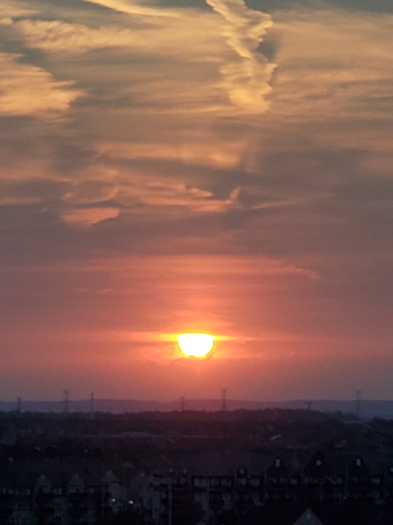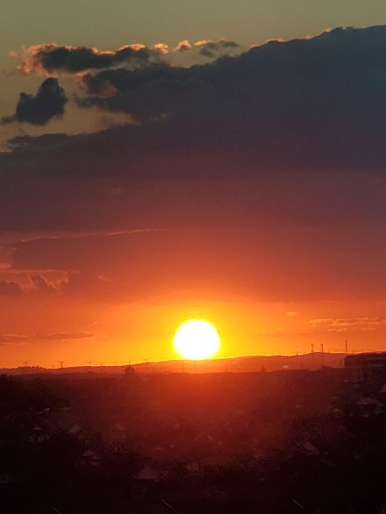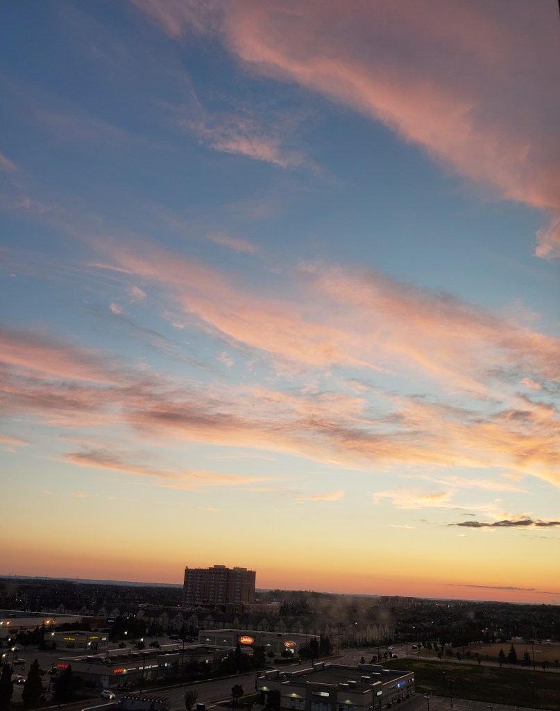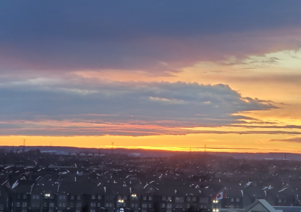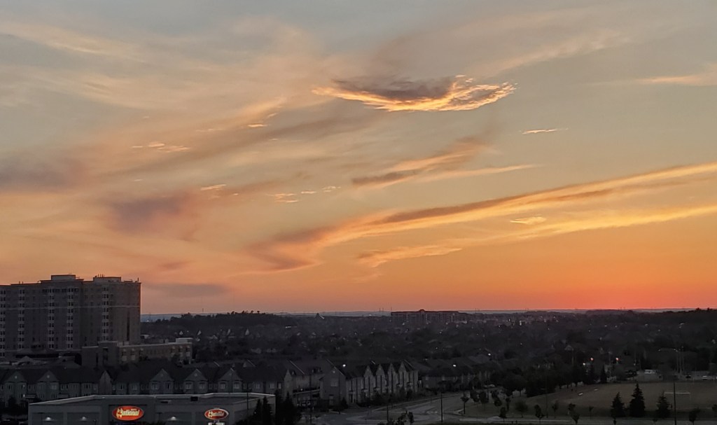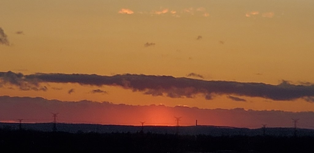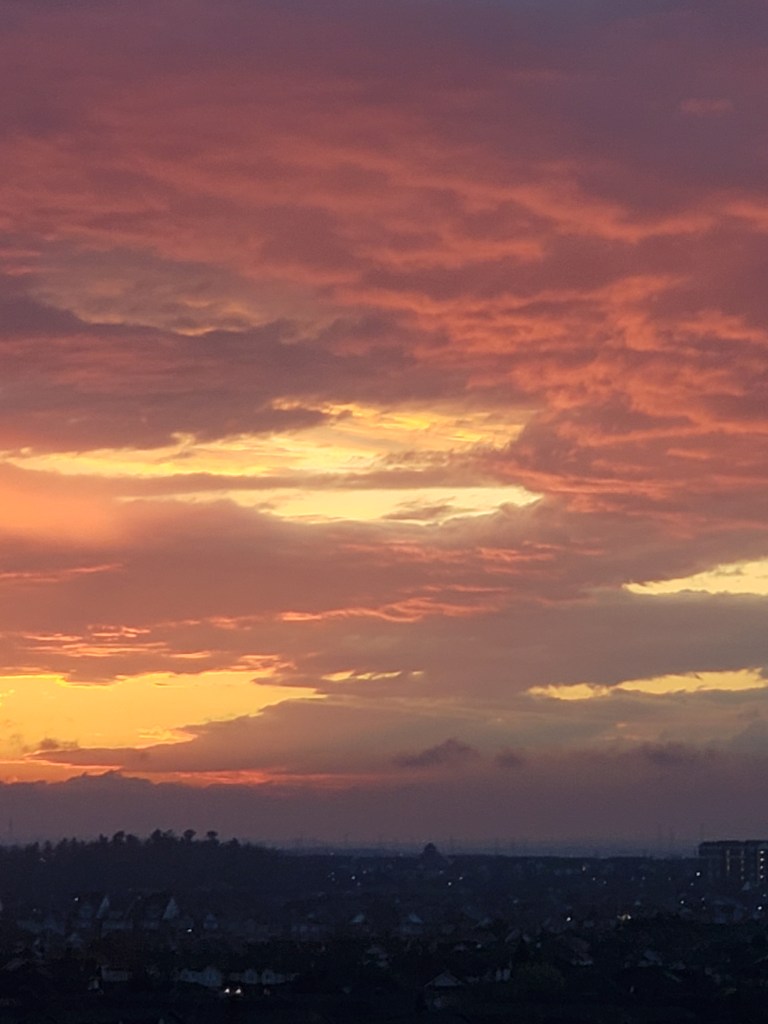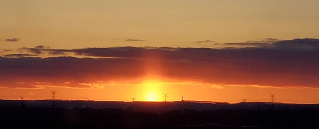 This morning, sunrise shared its golden-red light with clouds diffused gentle white
