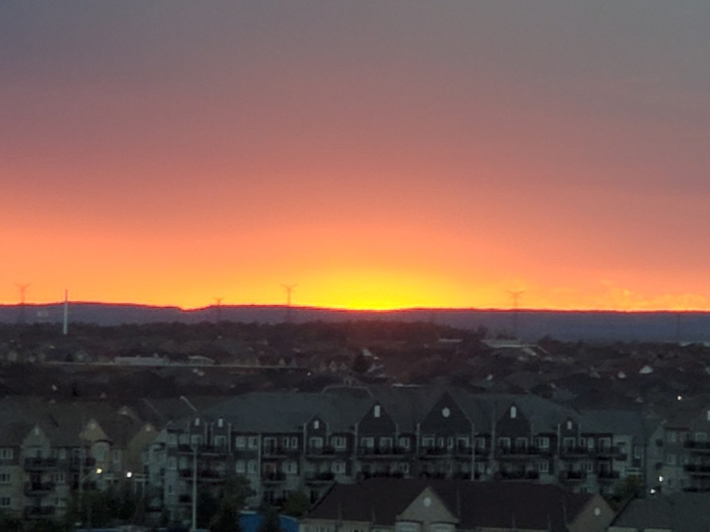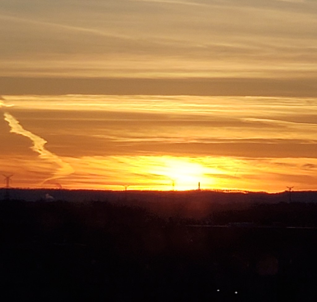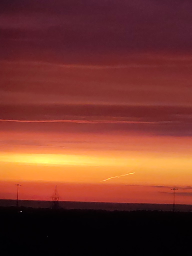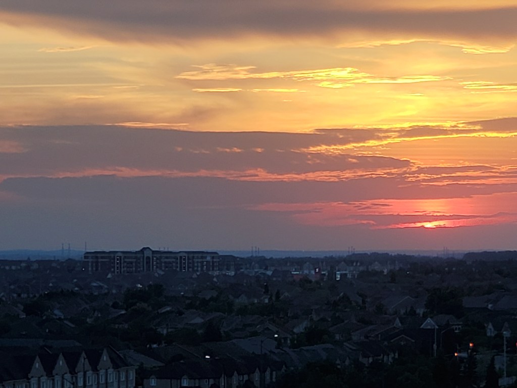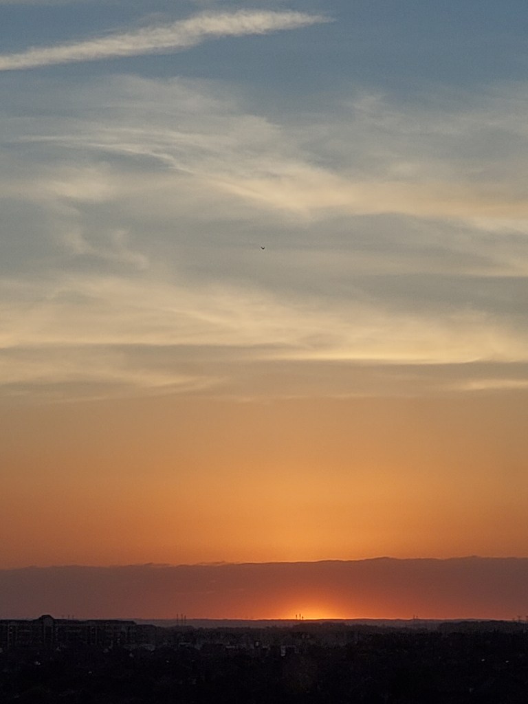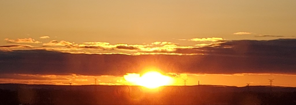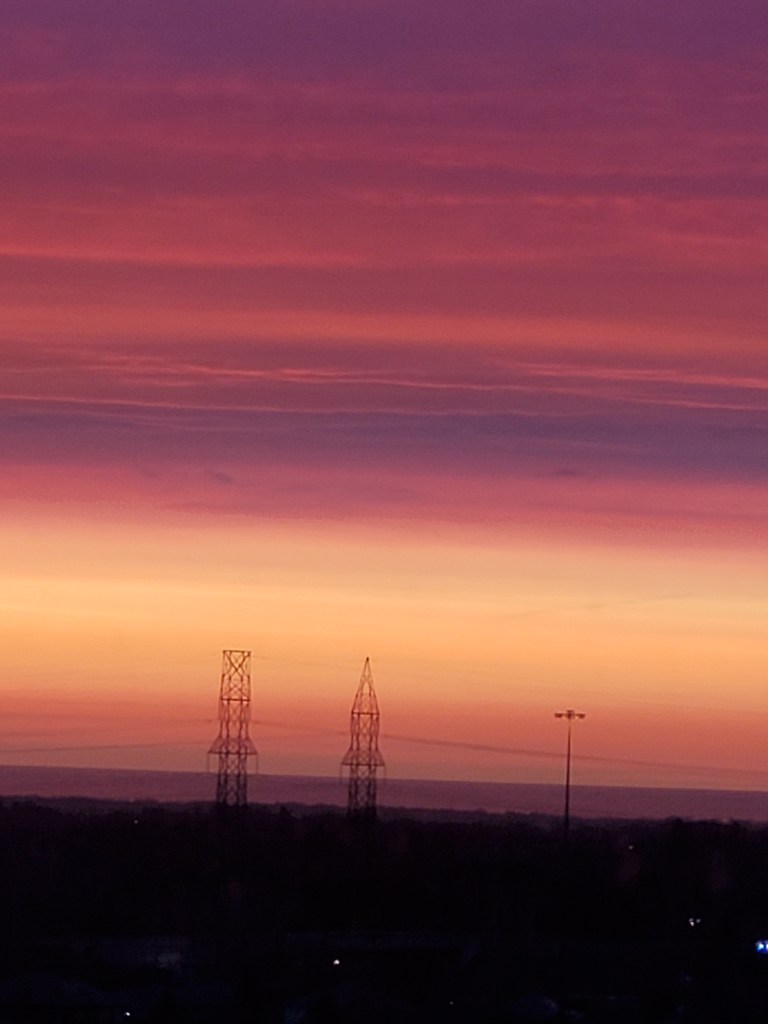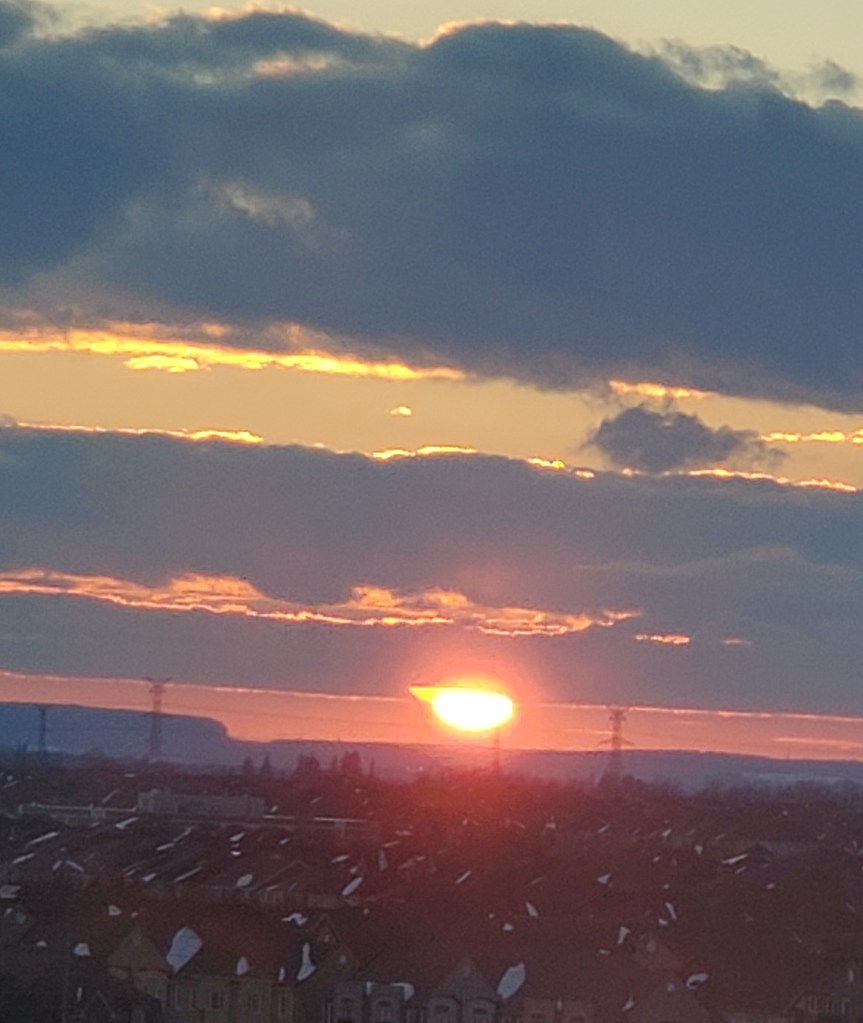 This morning, sunrise shared its golden-red light with clouds diffused gentle white