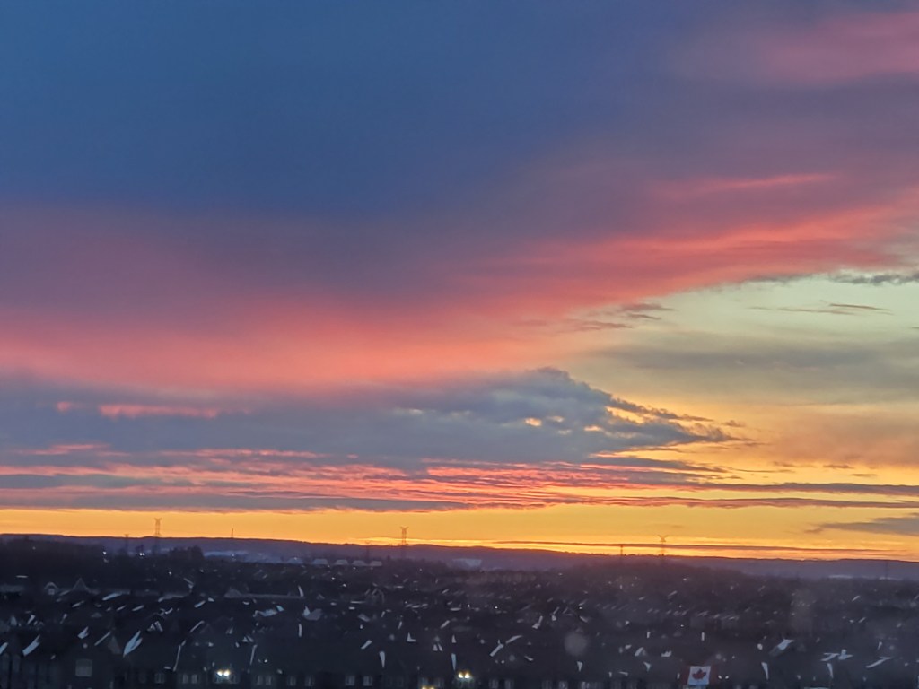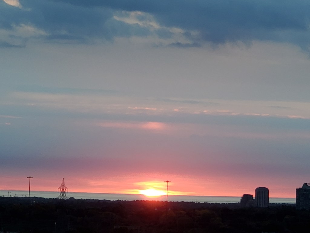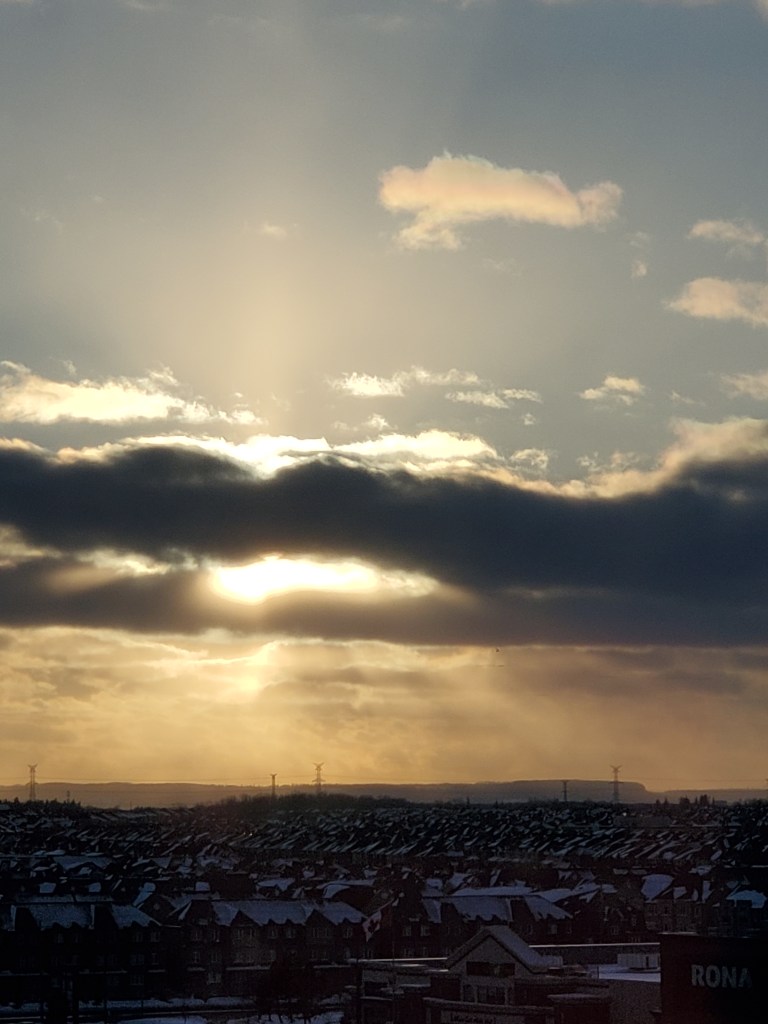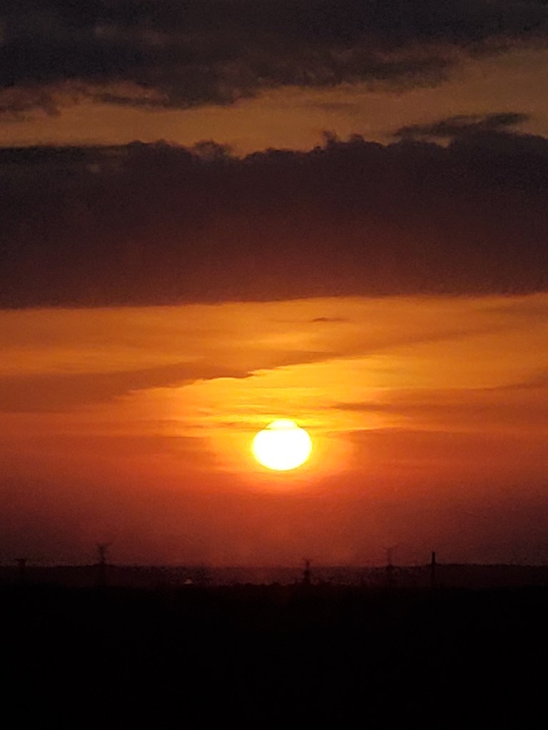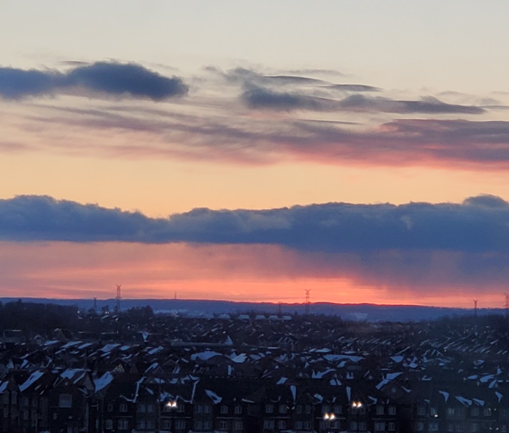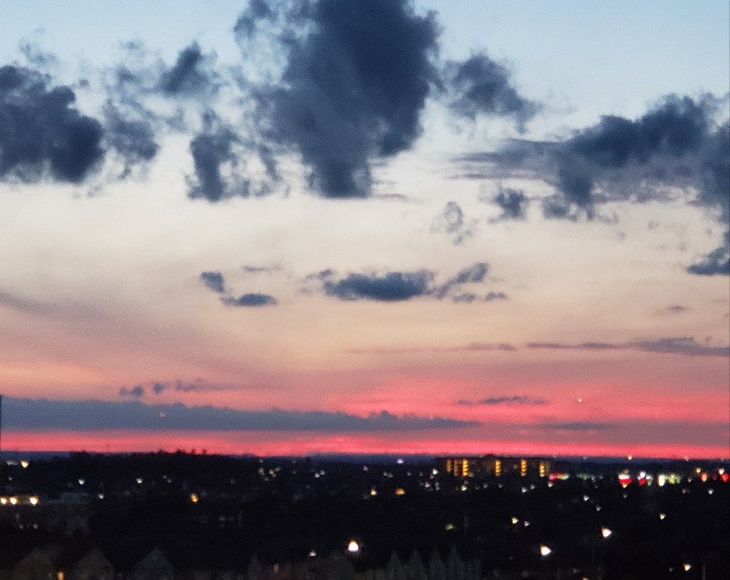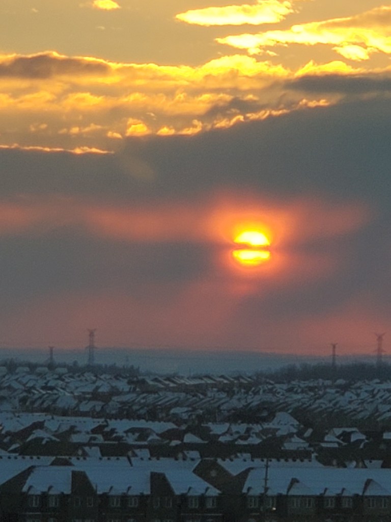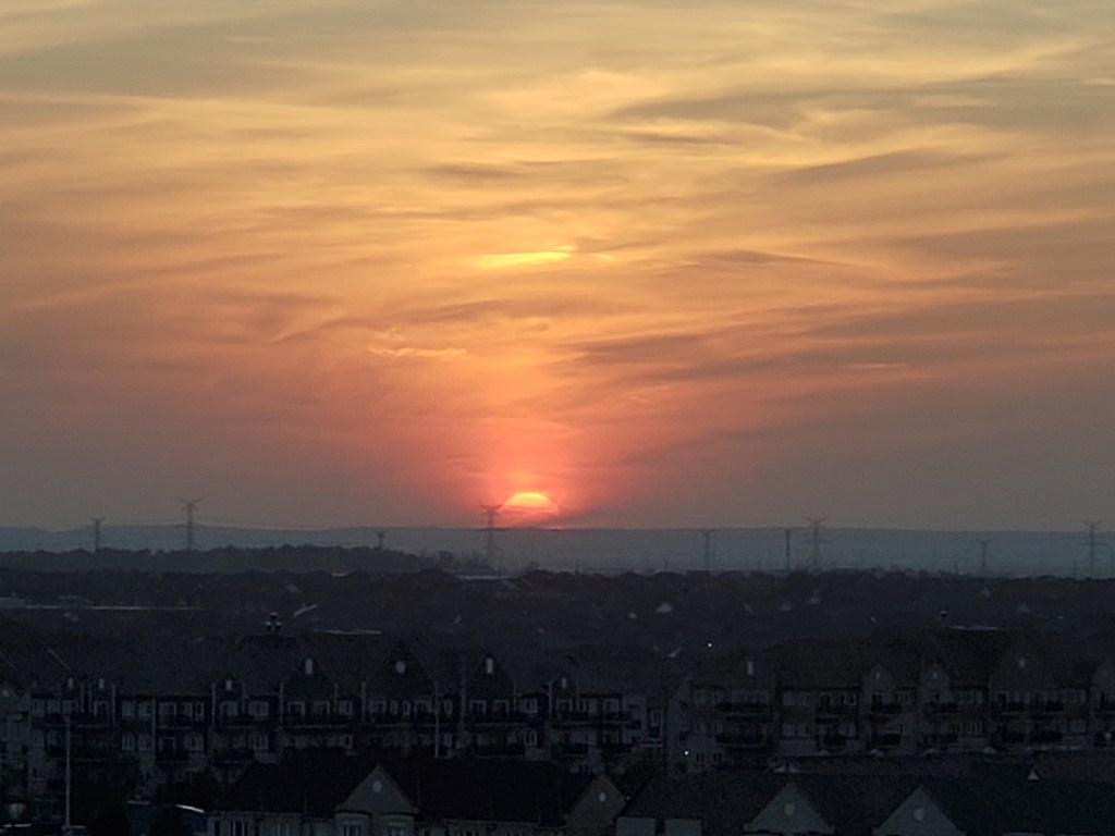 This morning, sunrise shared its golden-red light with clouds diffused gentle white