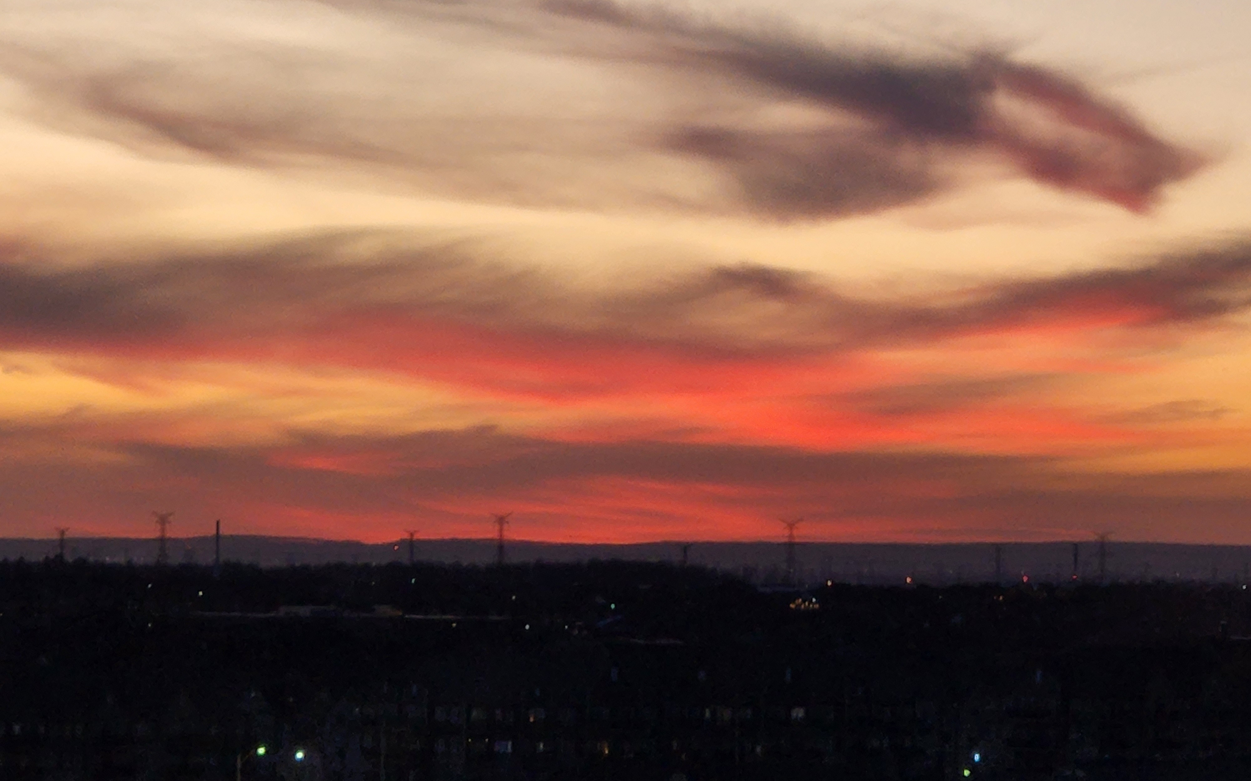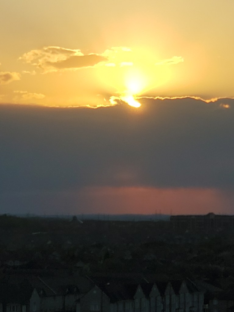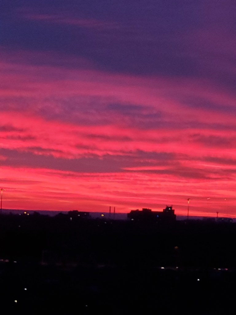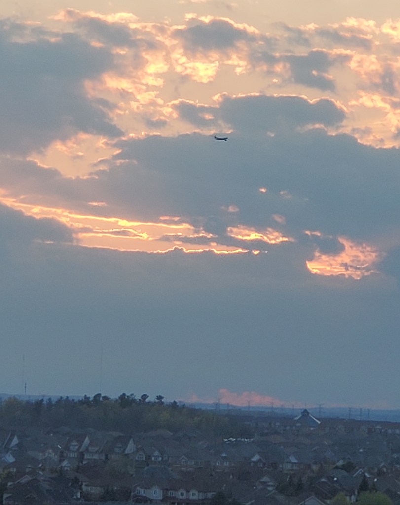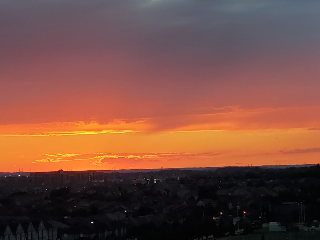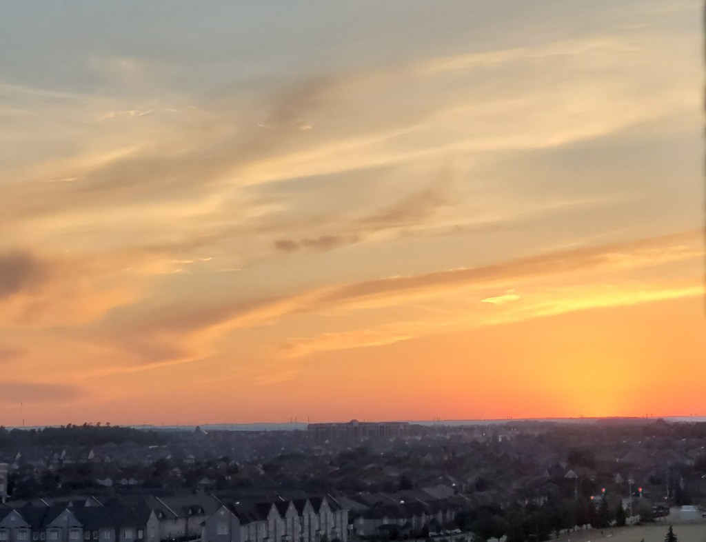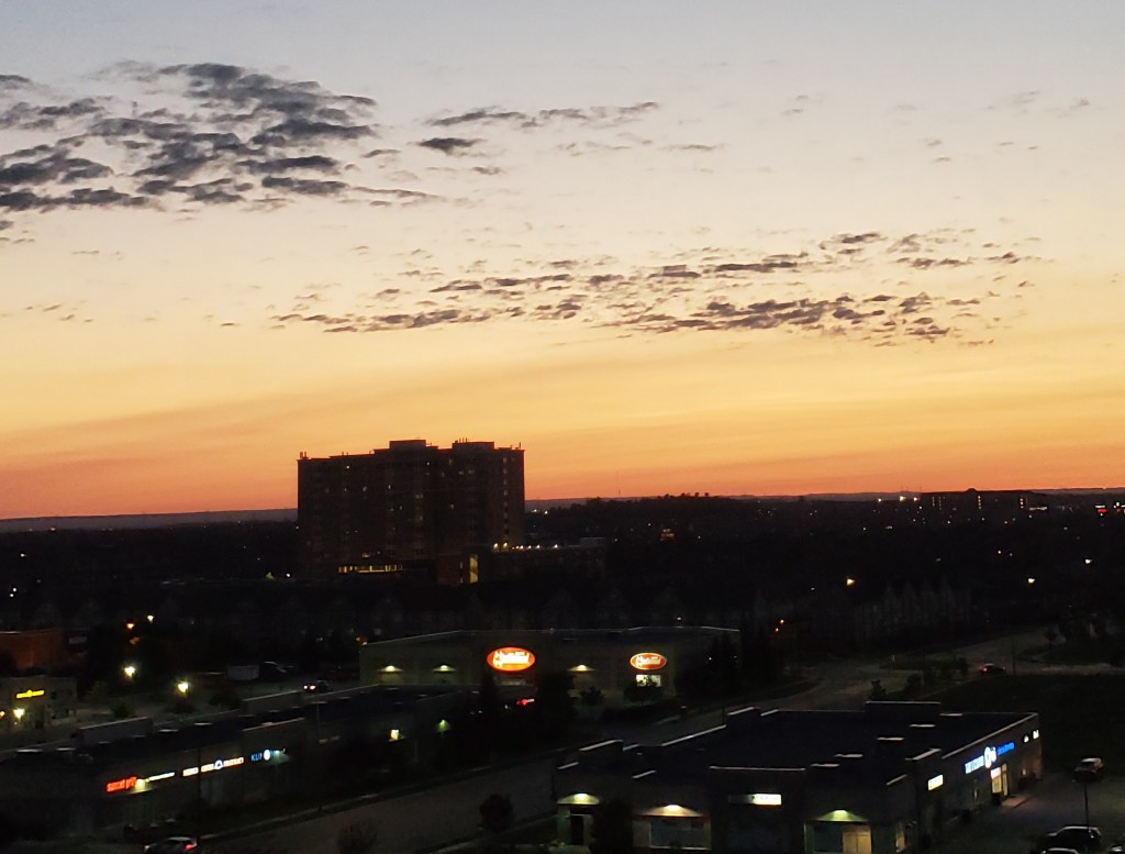 This morning, sunrise shared its golden-red light with clouds diffused gentle white