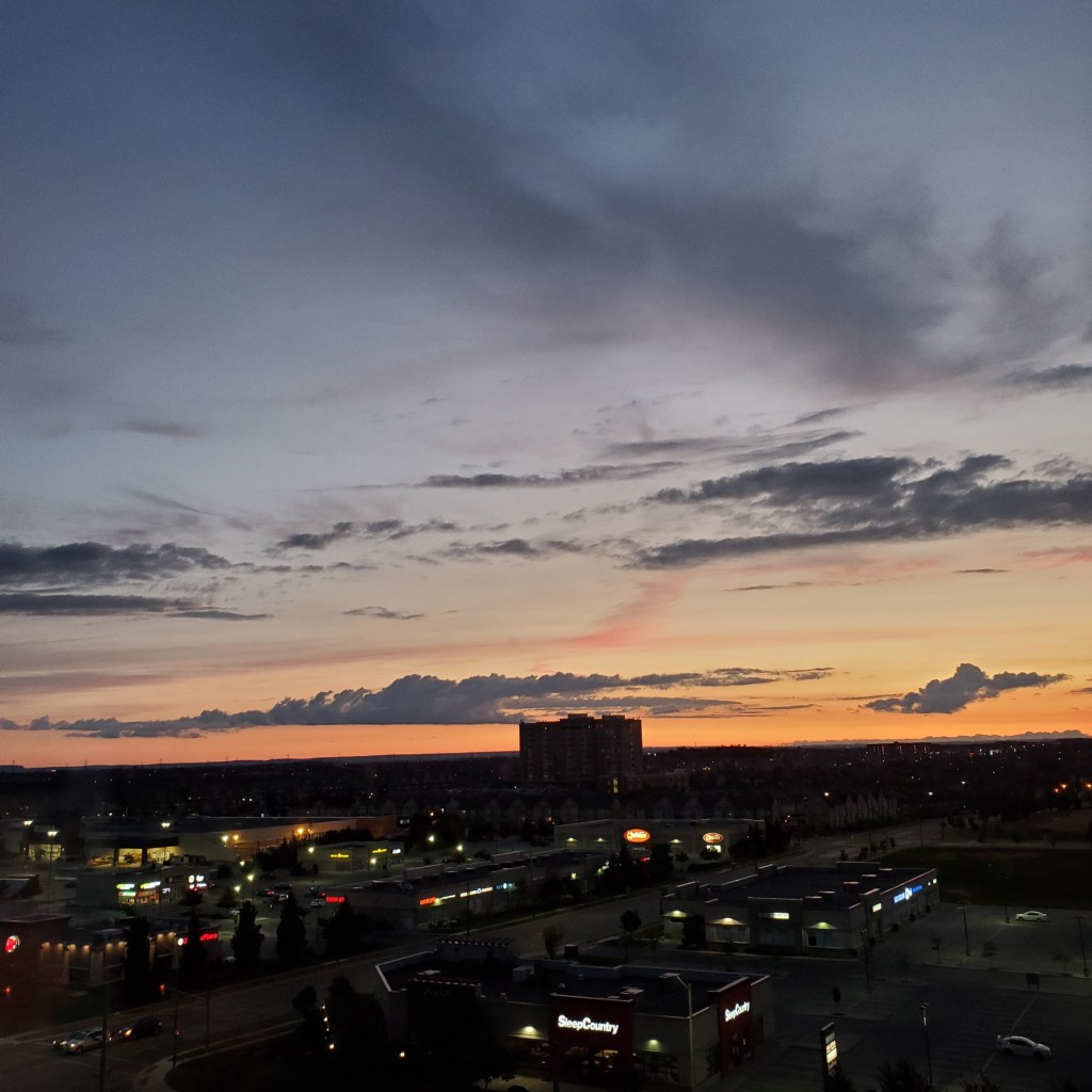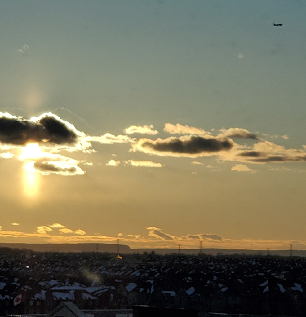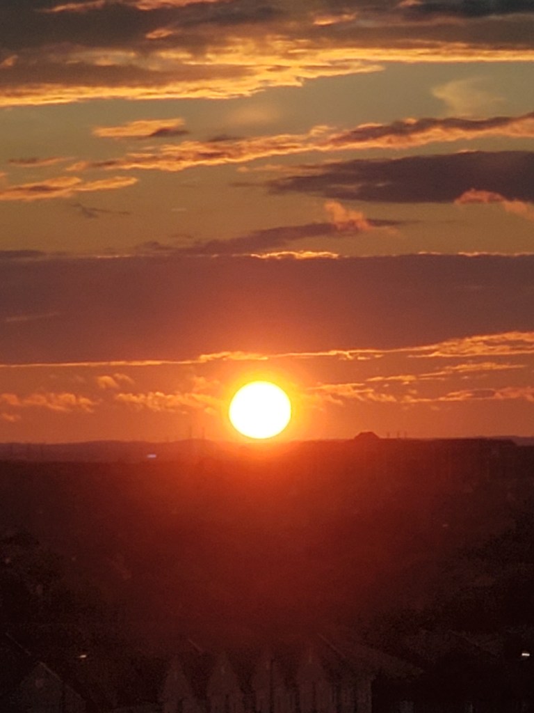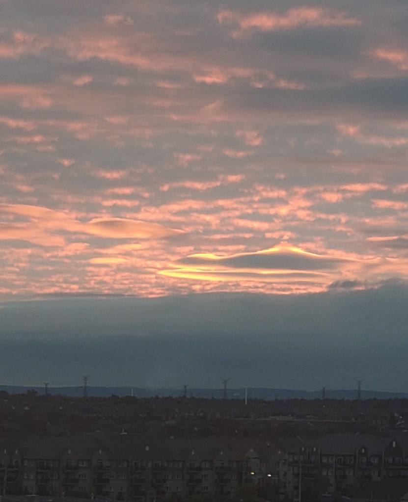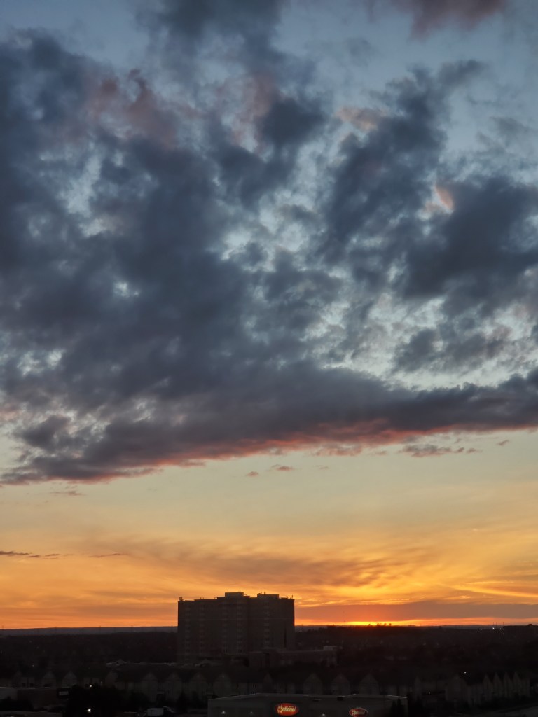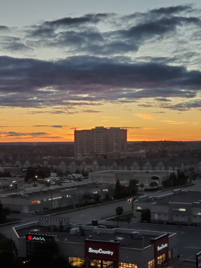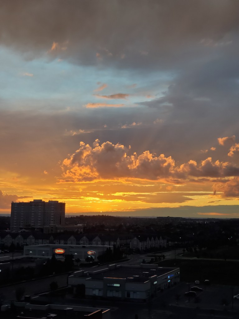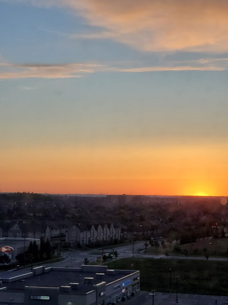 This morning, sunrise shared its golden-red light with clouds diffused gentle white