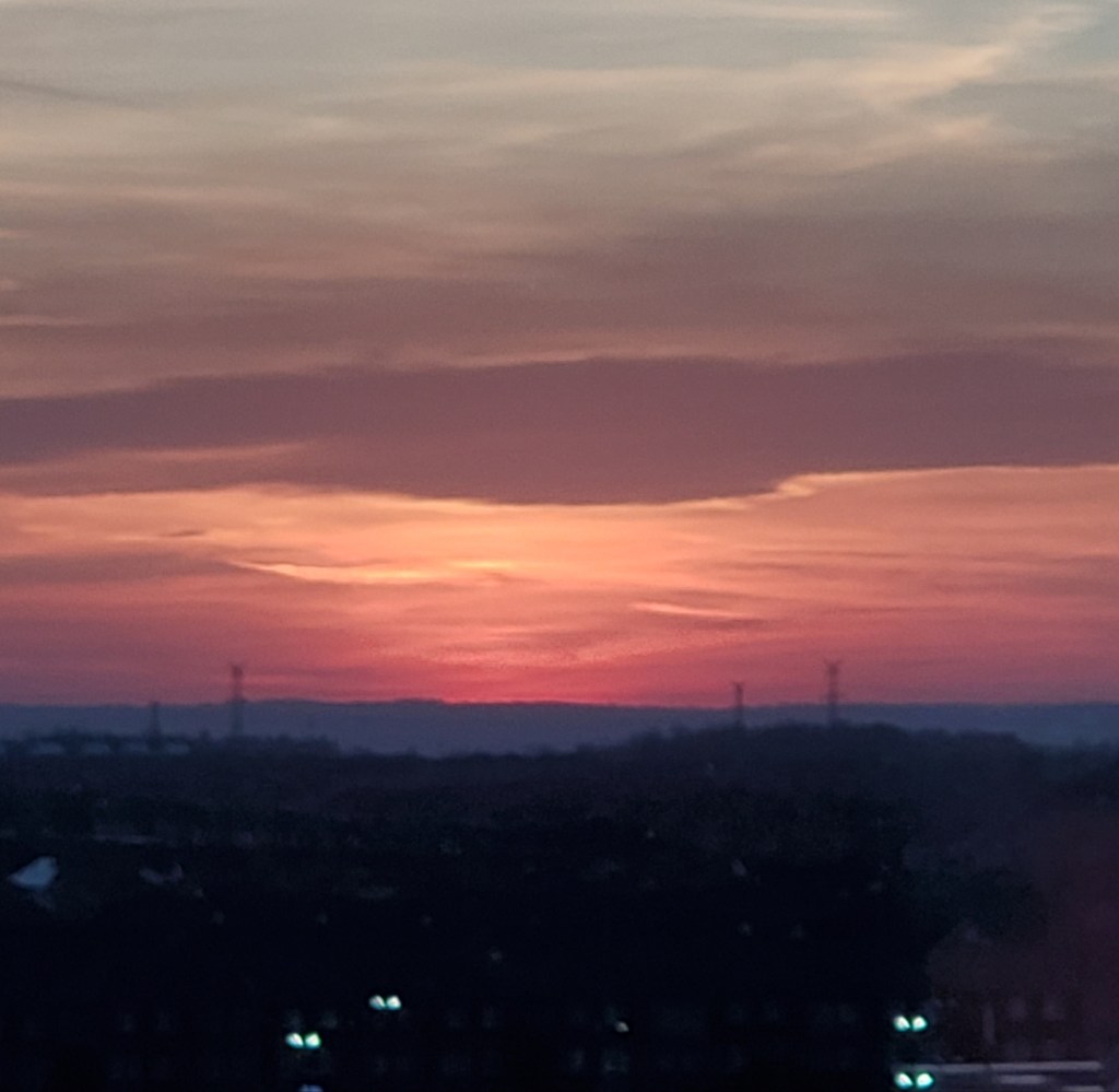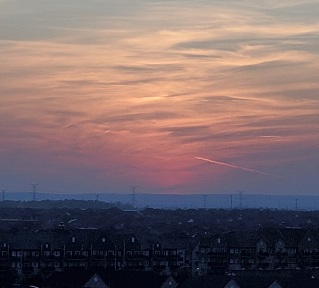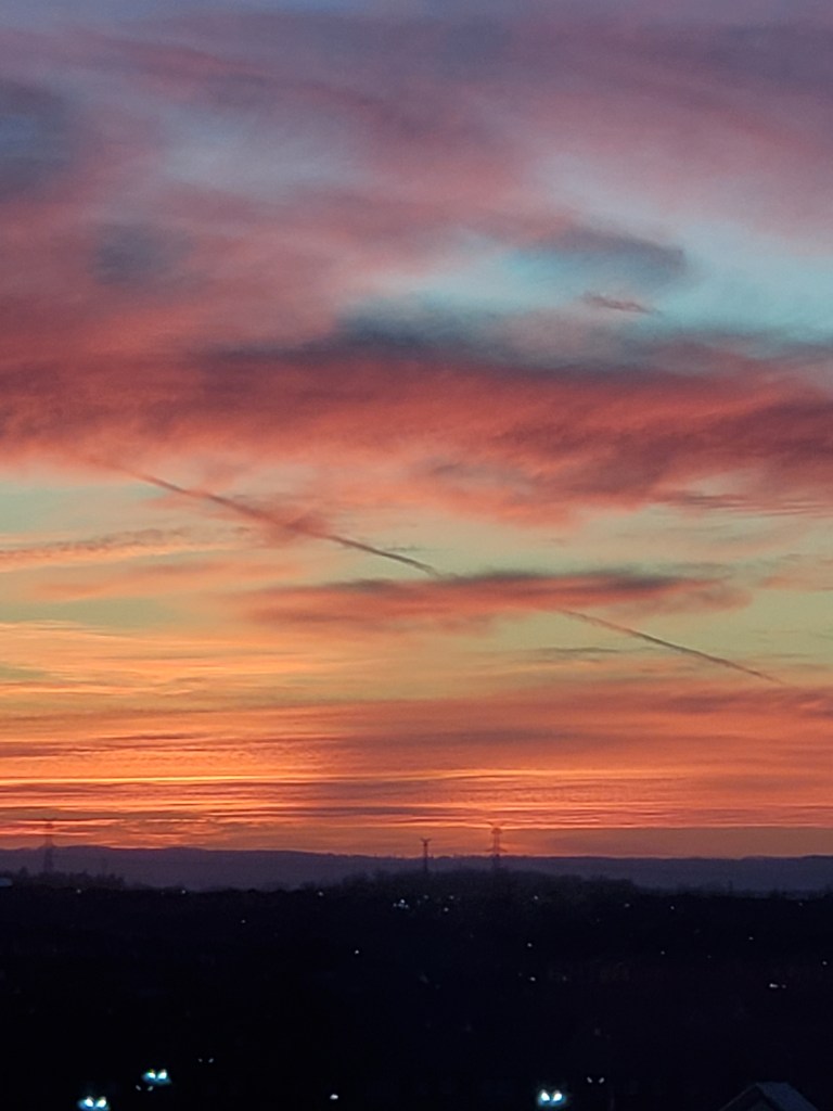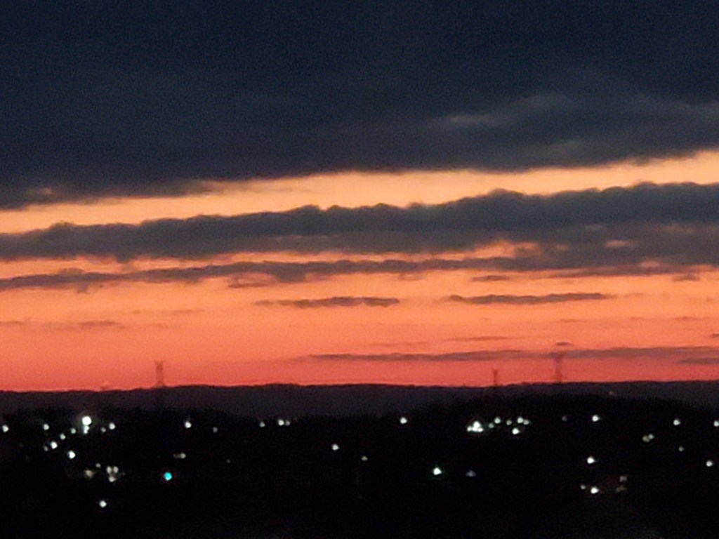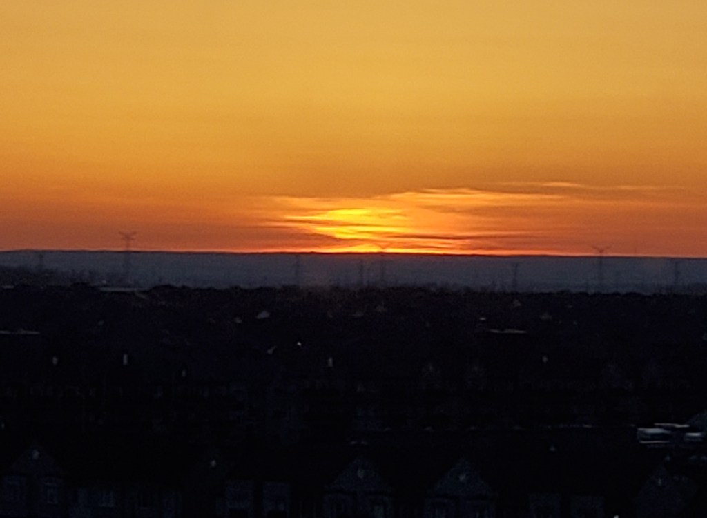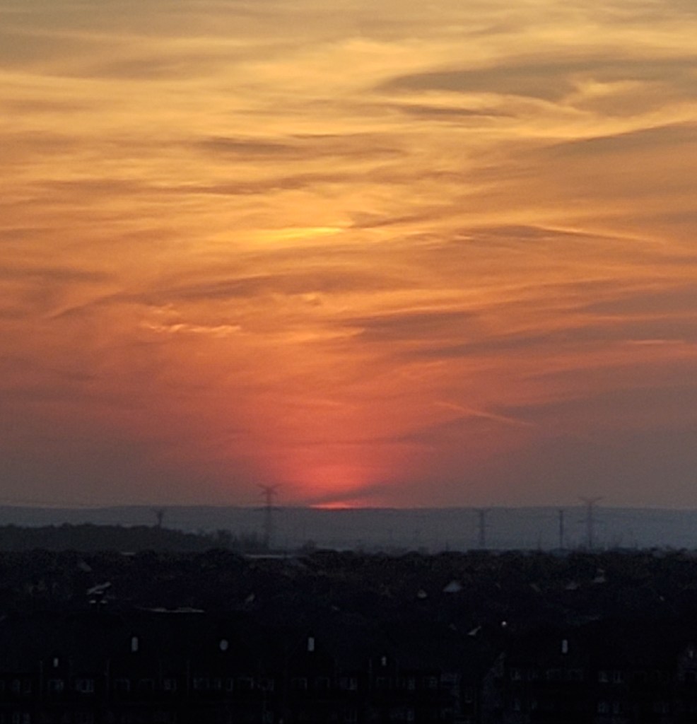 This morning, sunrise shared its golden-red light with clouds diffused gentle white