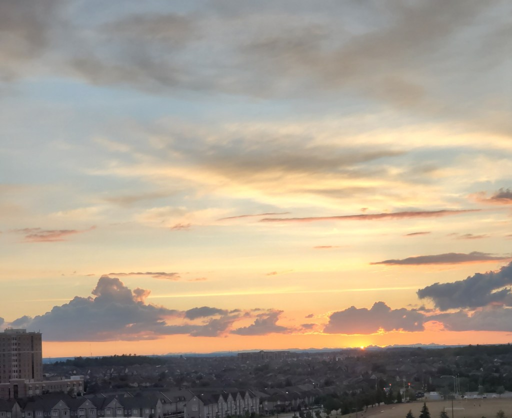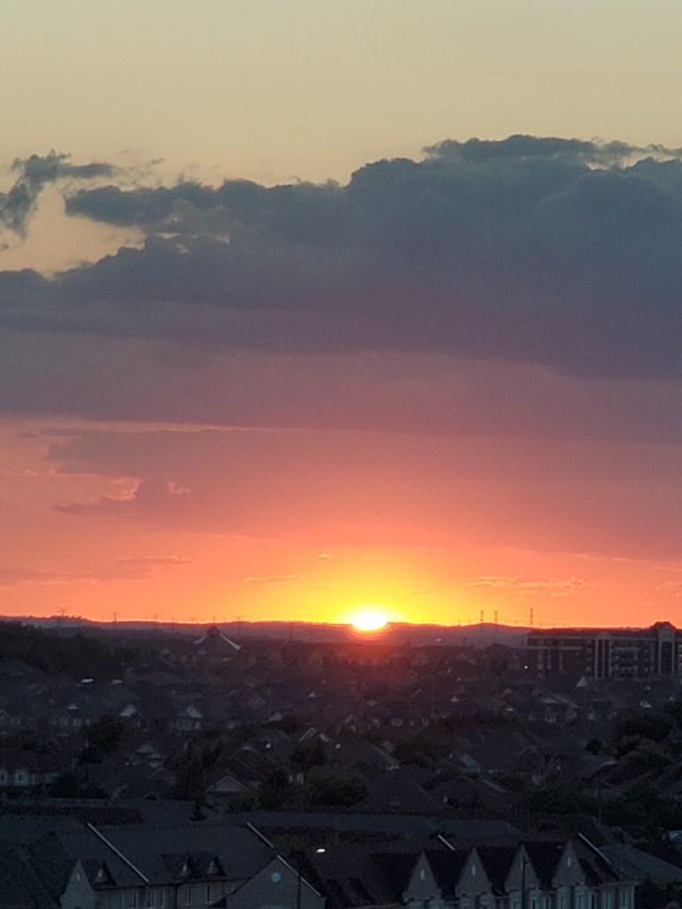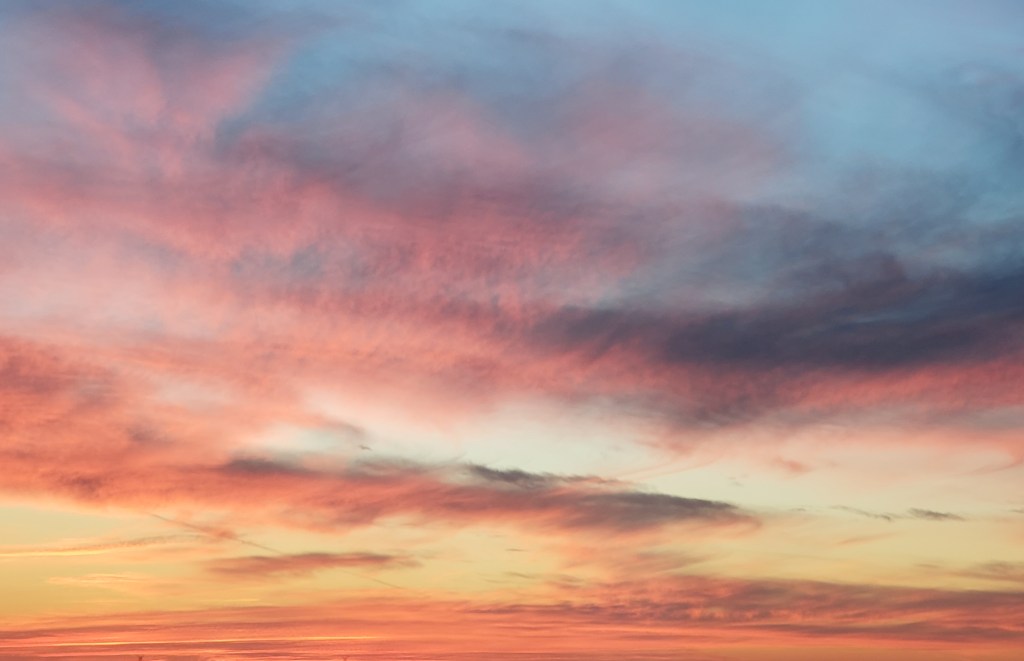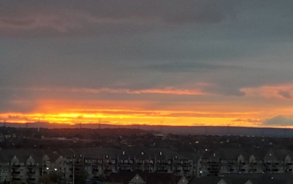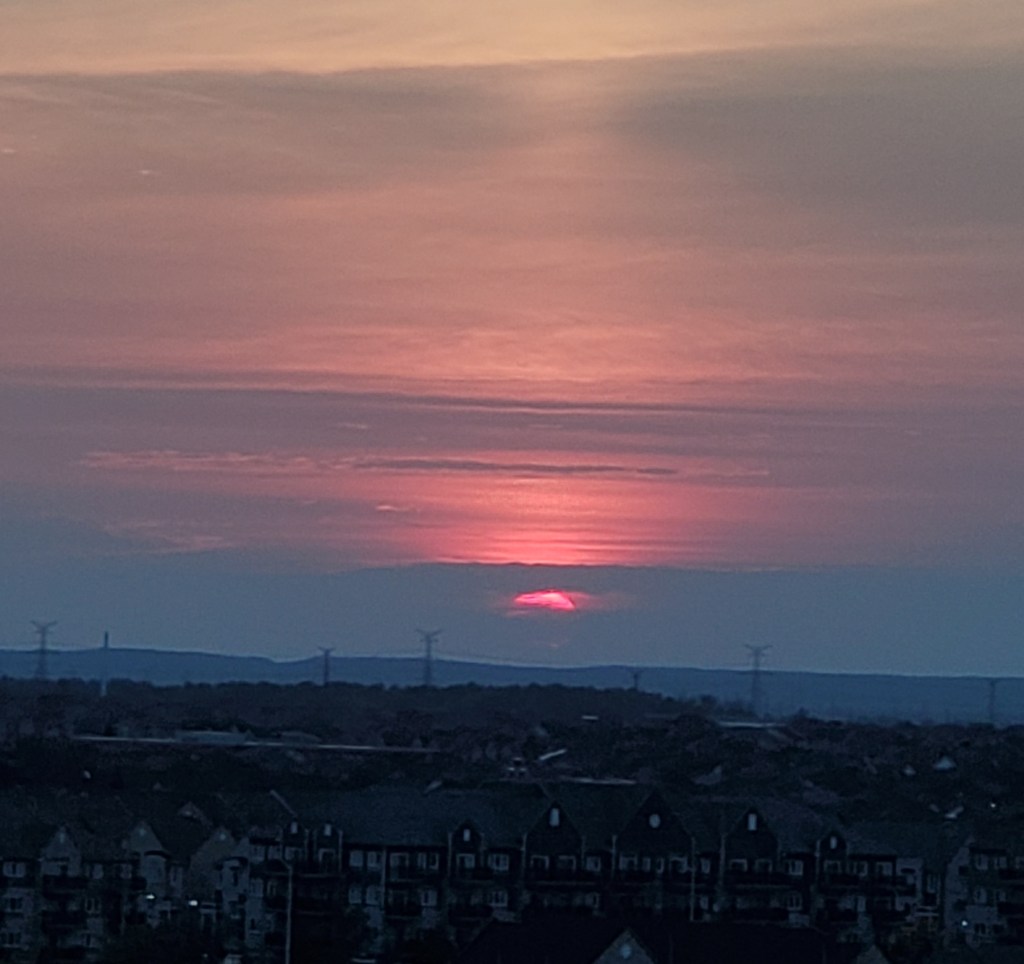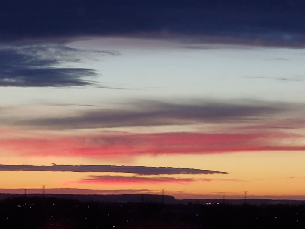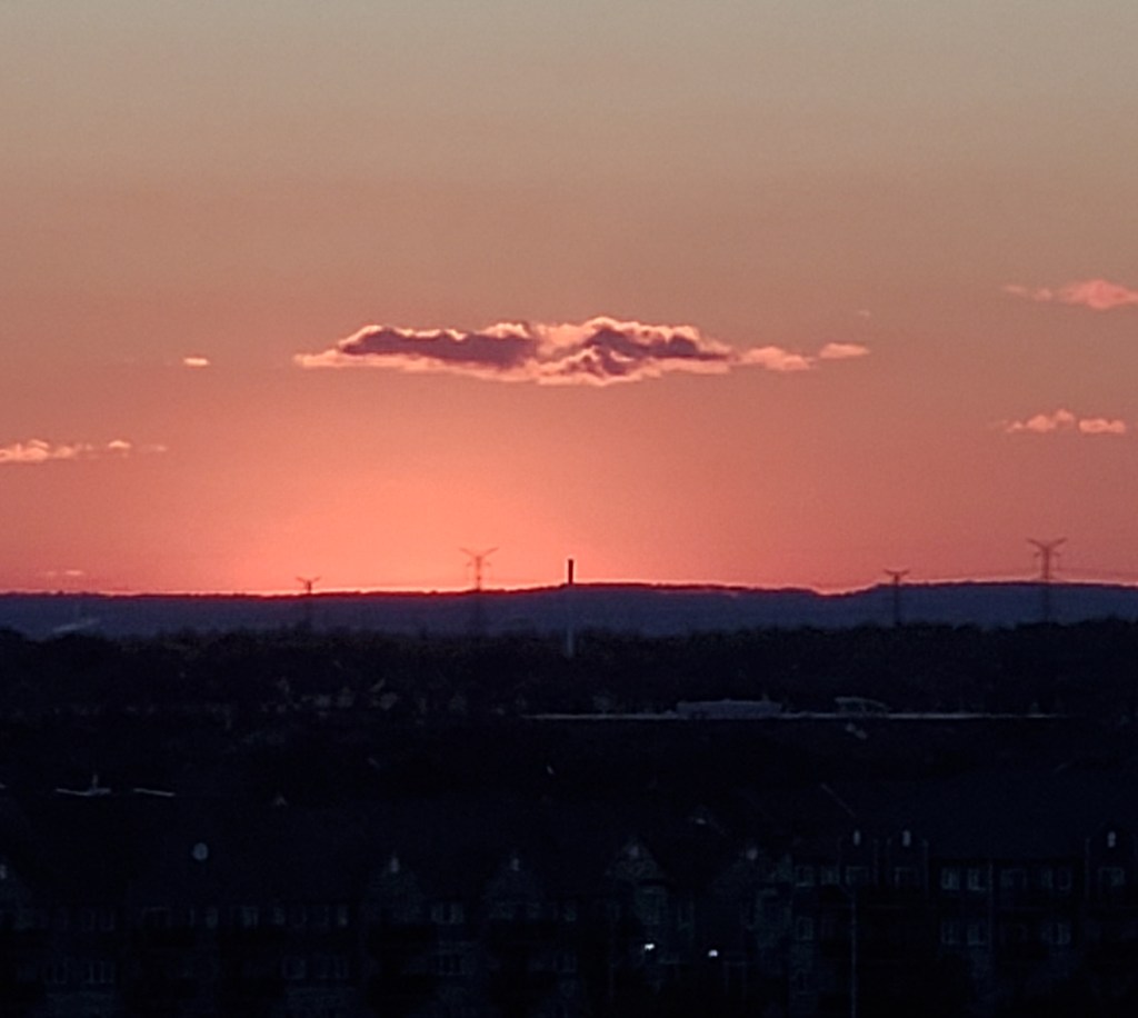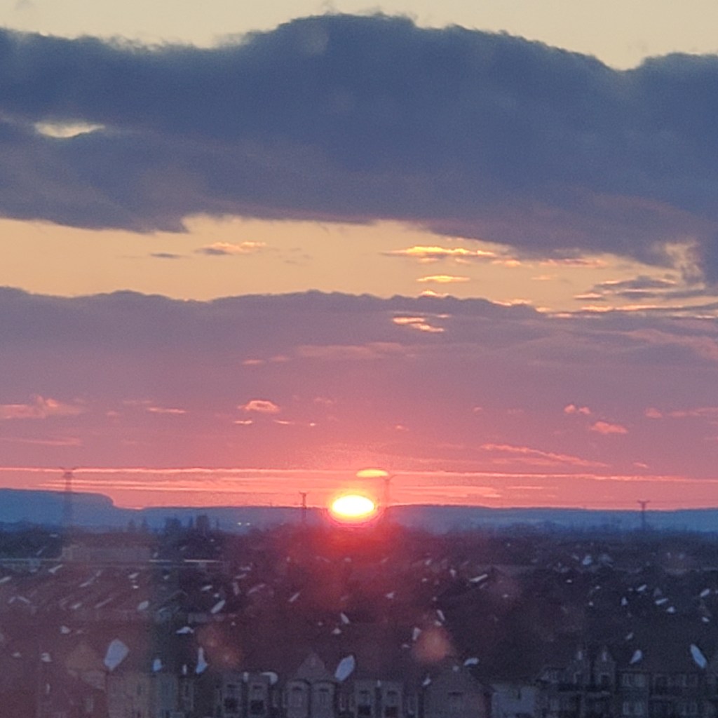 This morning, sunrise shared its golden-red light with clouds diffused gentle white