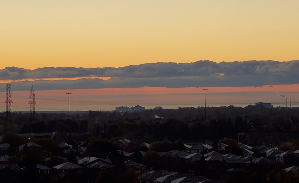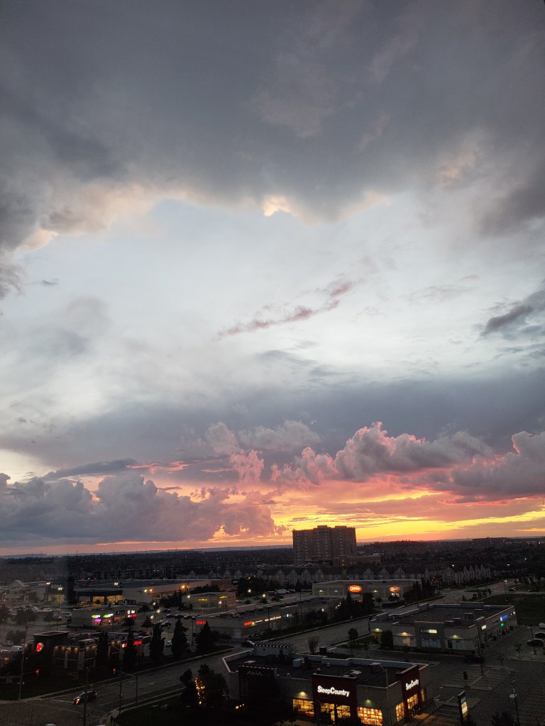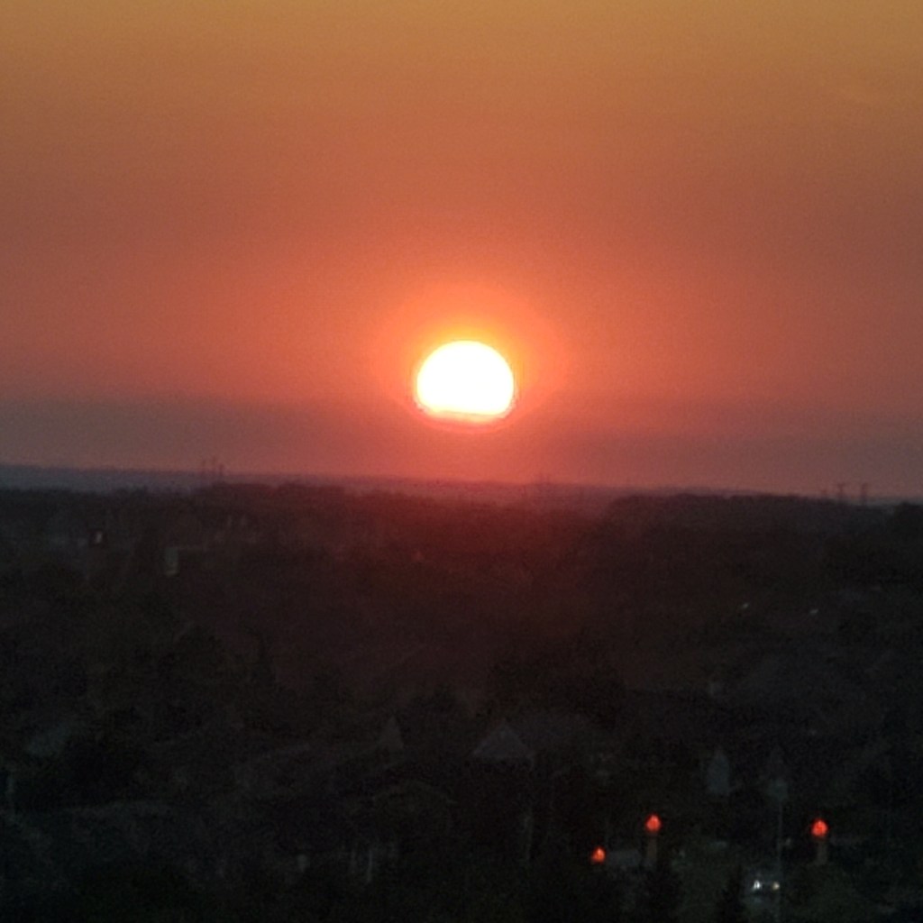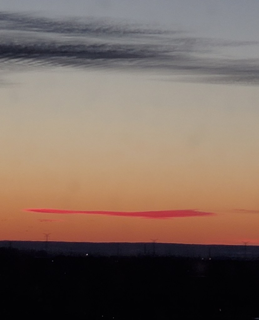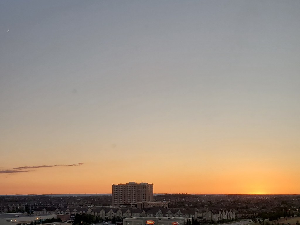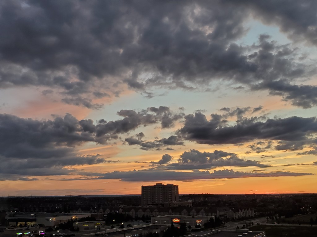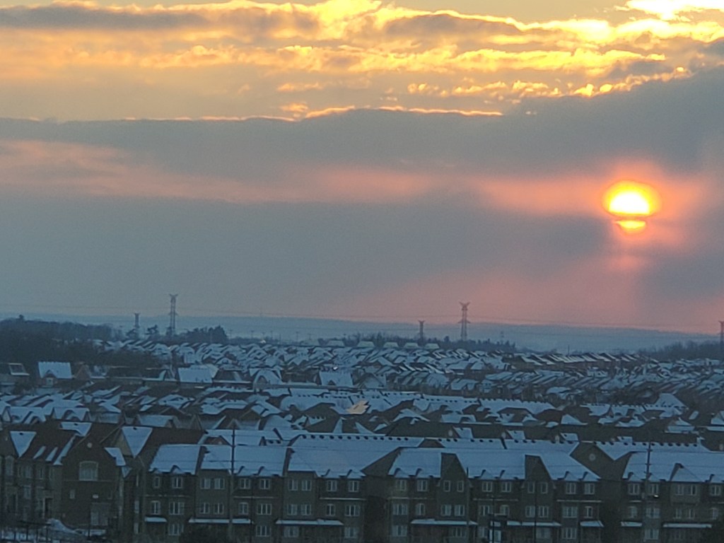 This morning, sunrise shared its golden-red light with clouds diffused gentle white