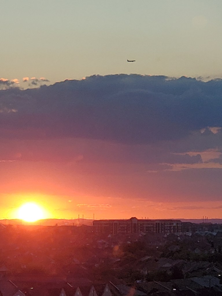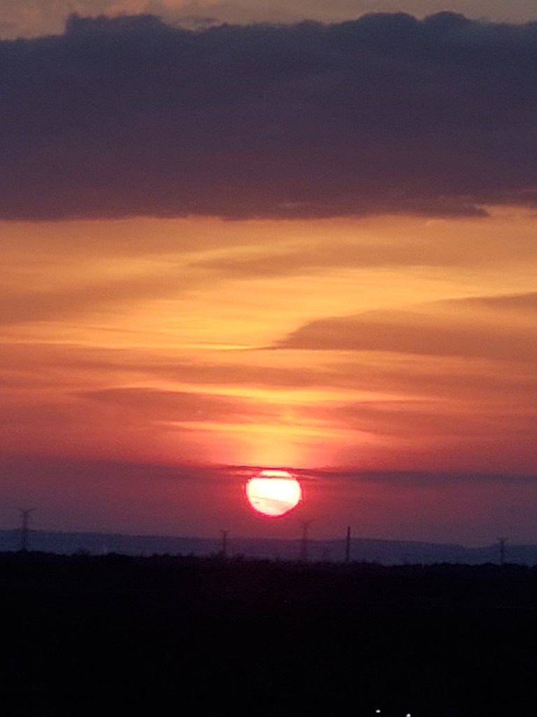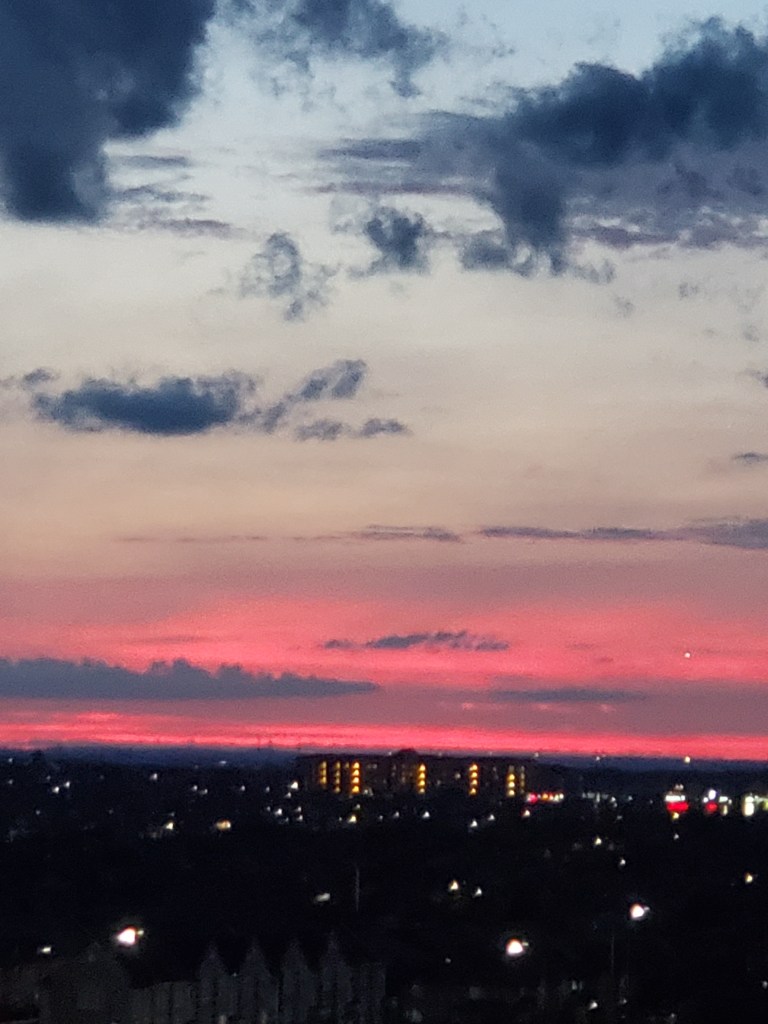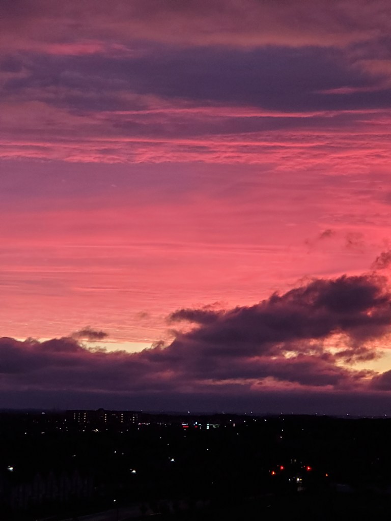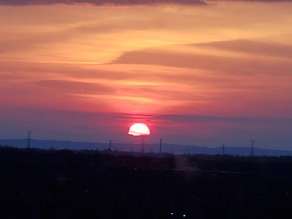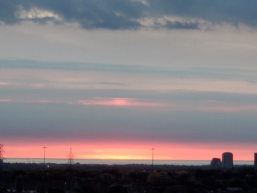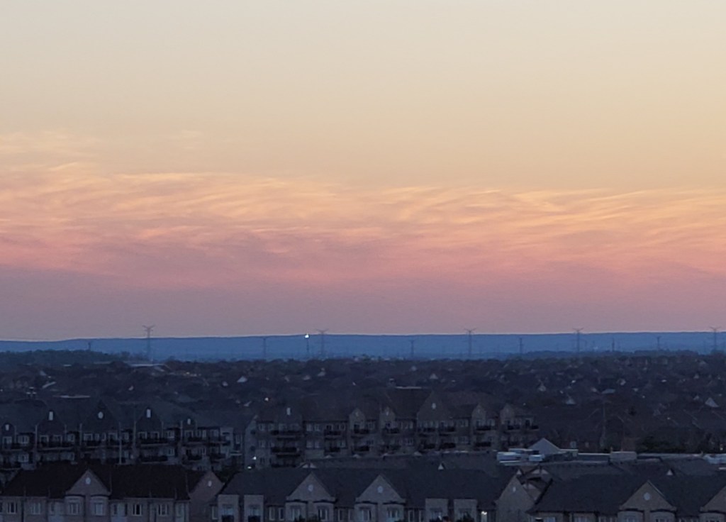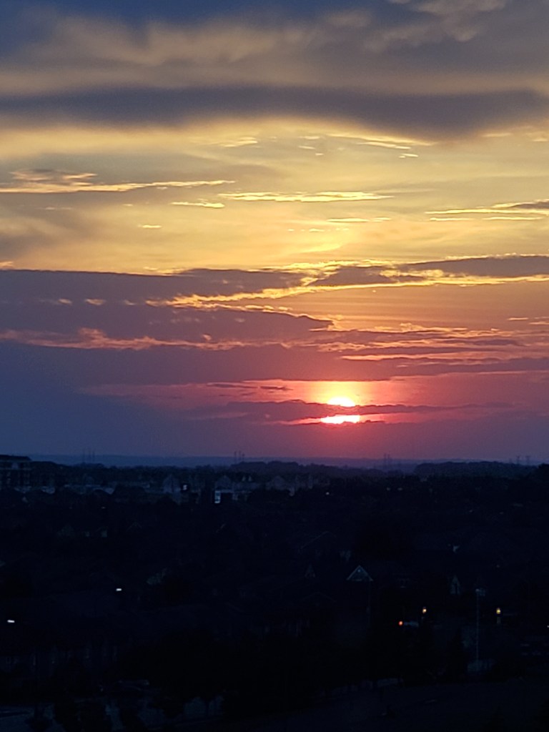 This morning, sunrise shared its golden-red light with clouds diffused gentle white