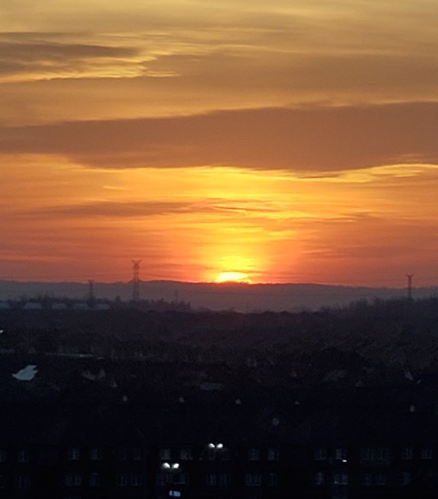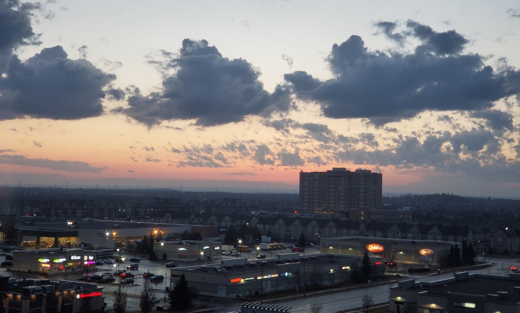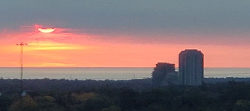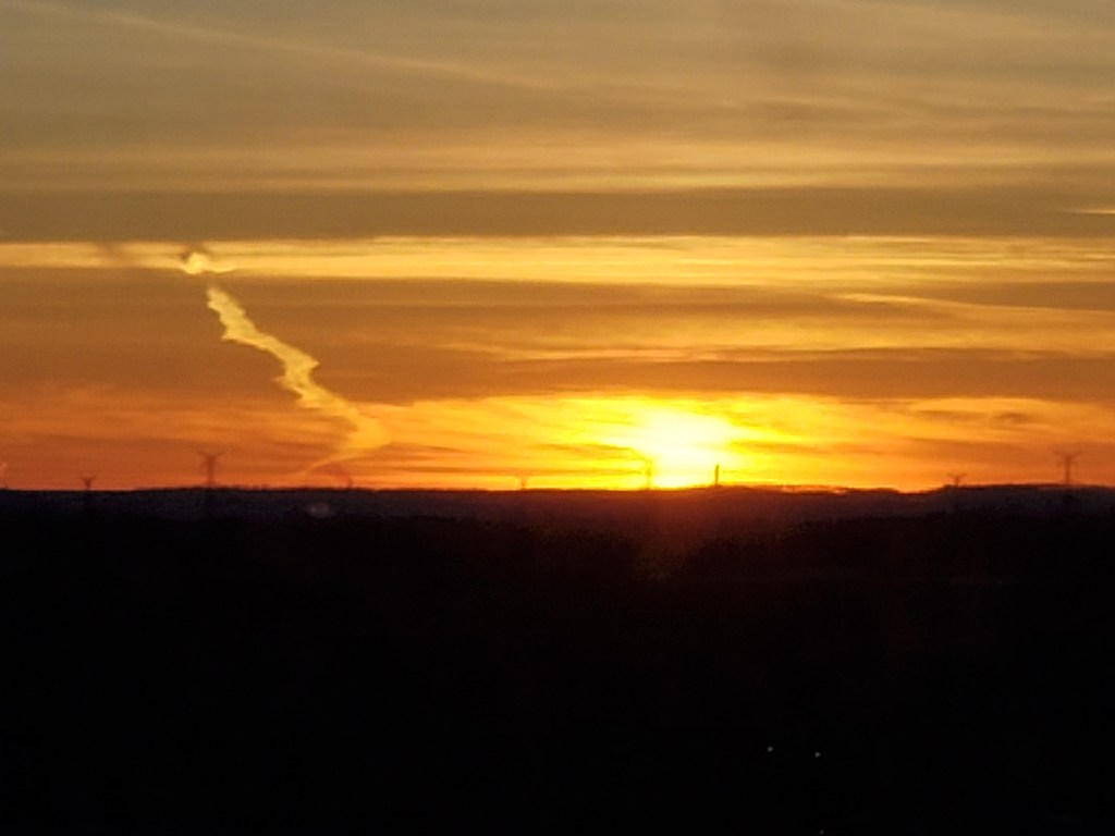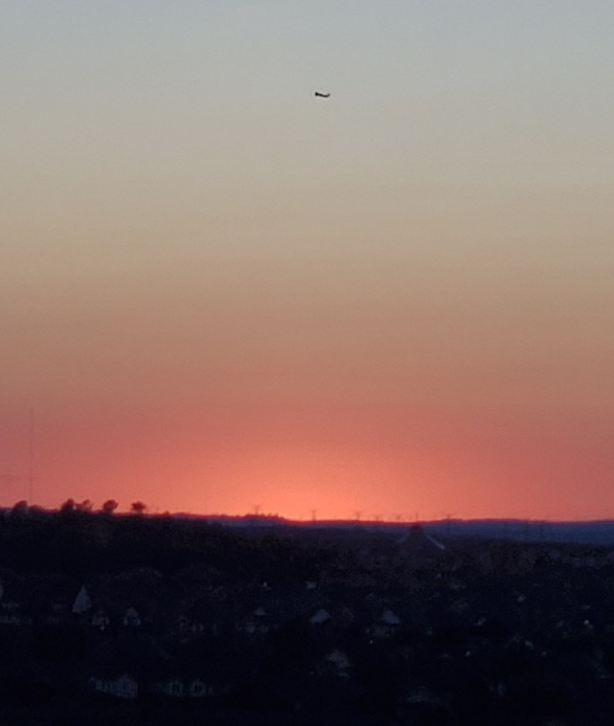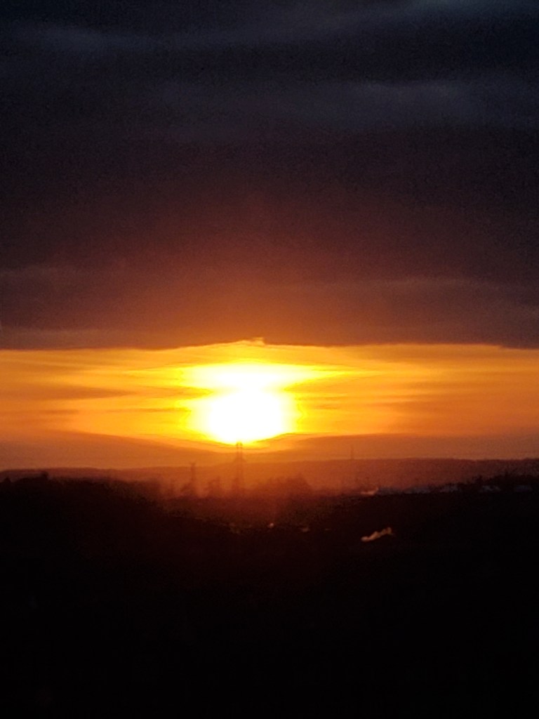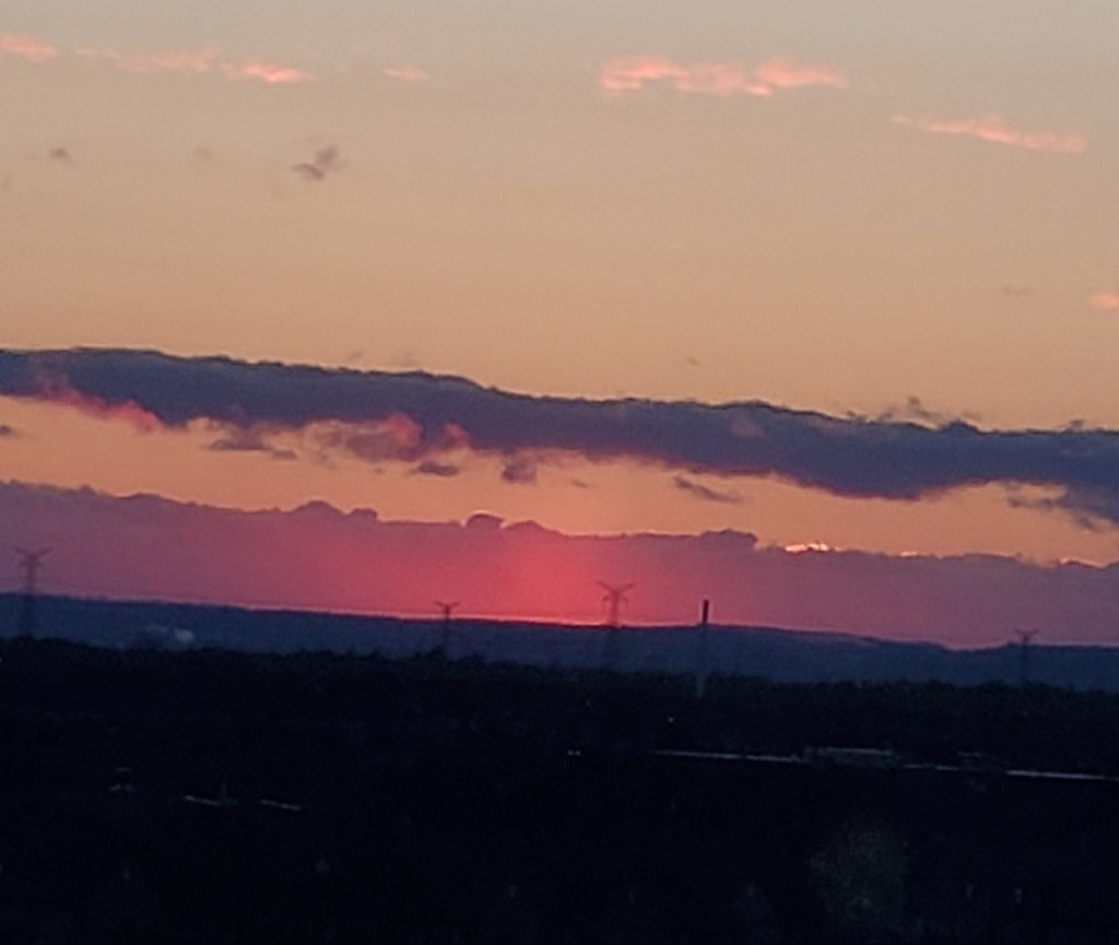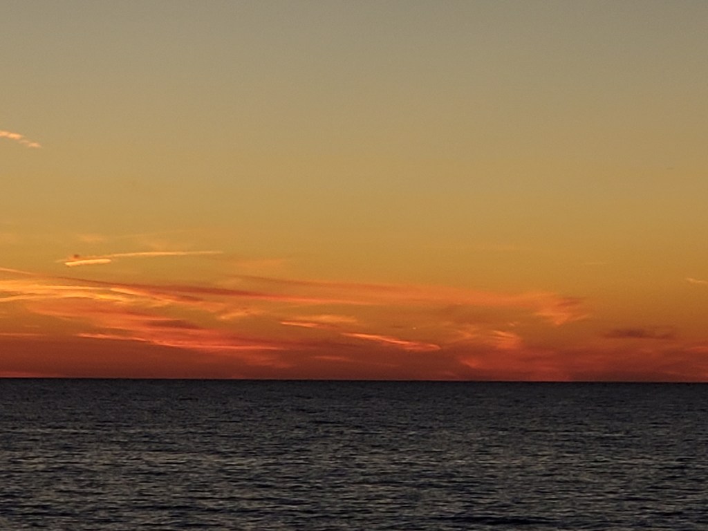 This morning, sunrise shared its golden-red light with clouds diffused gentle white