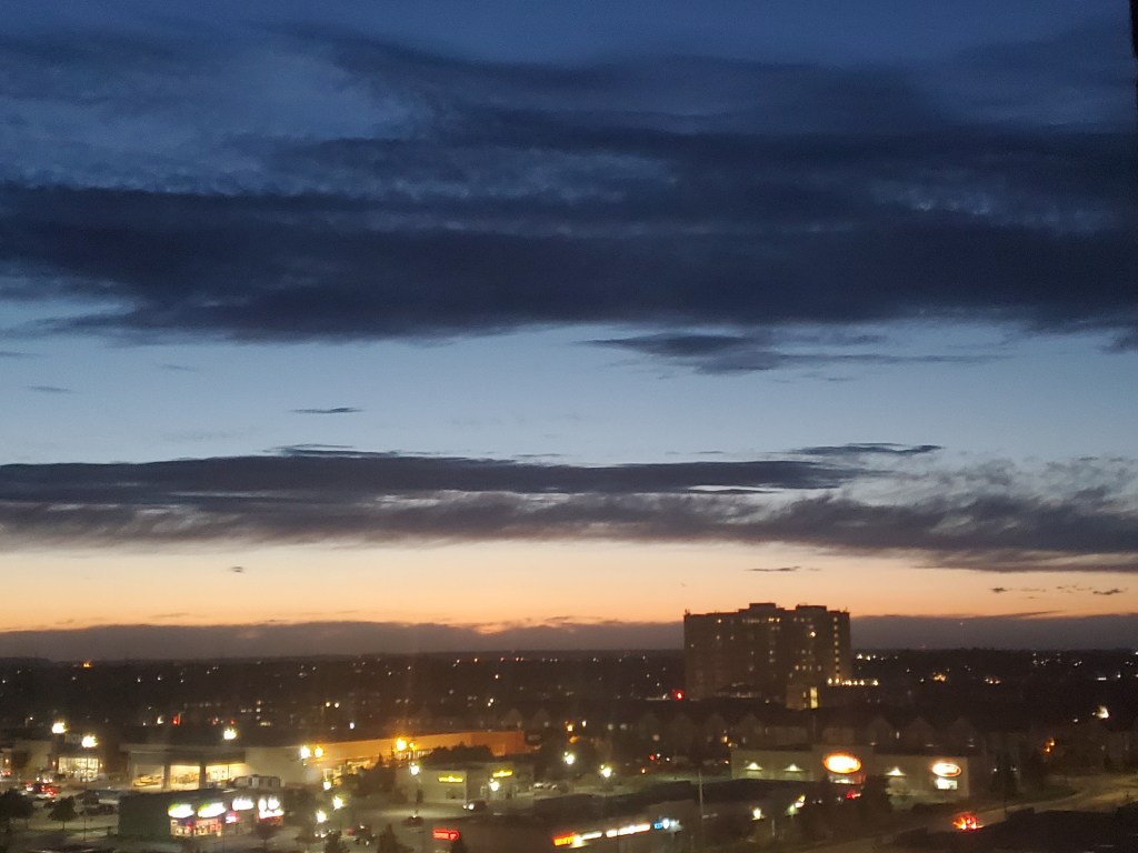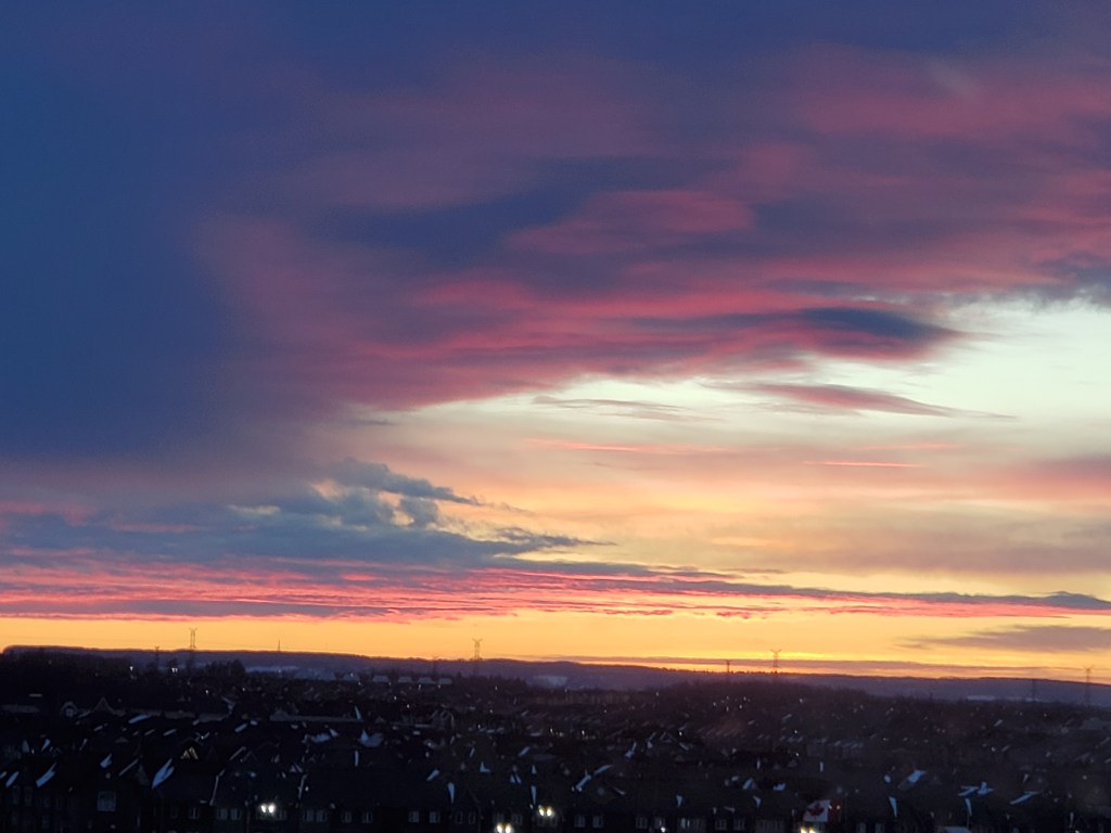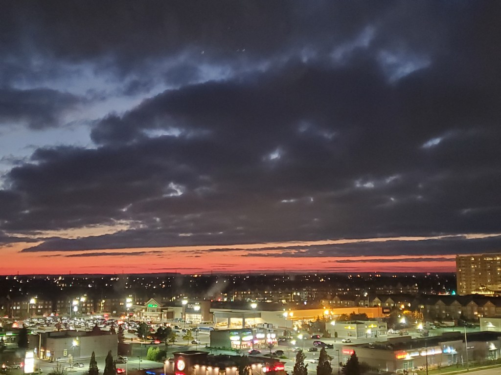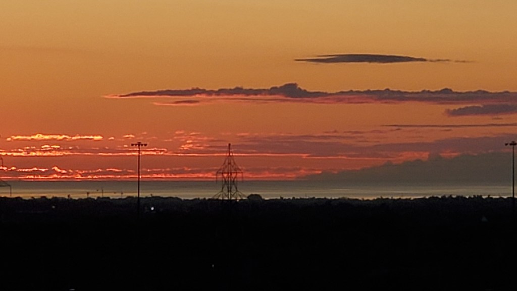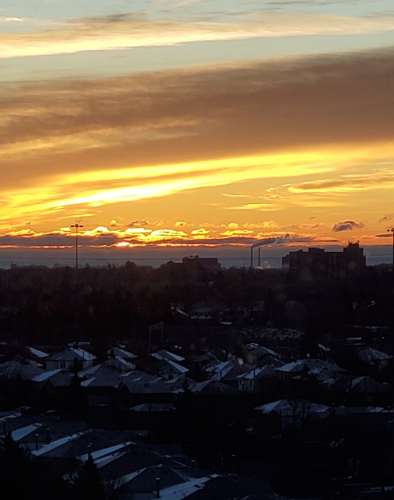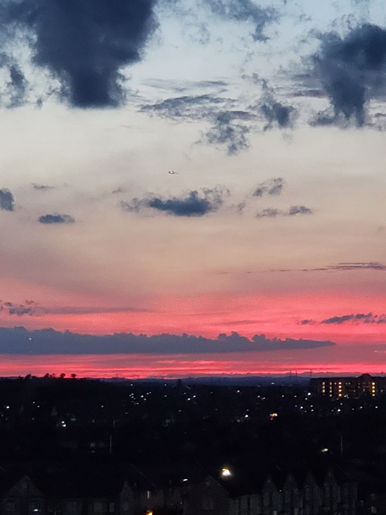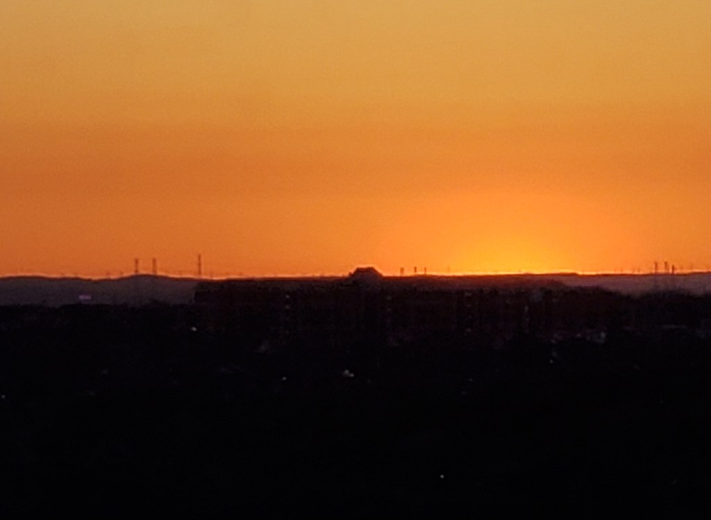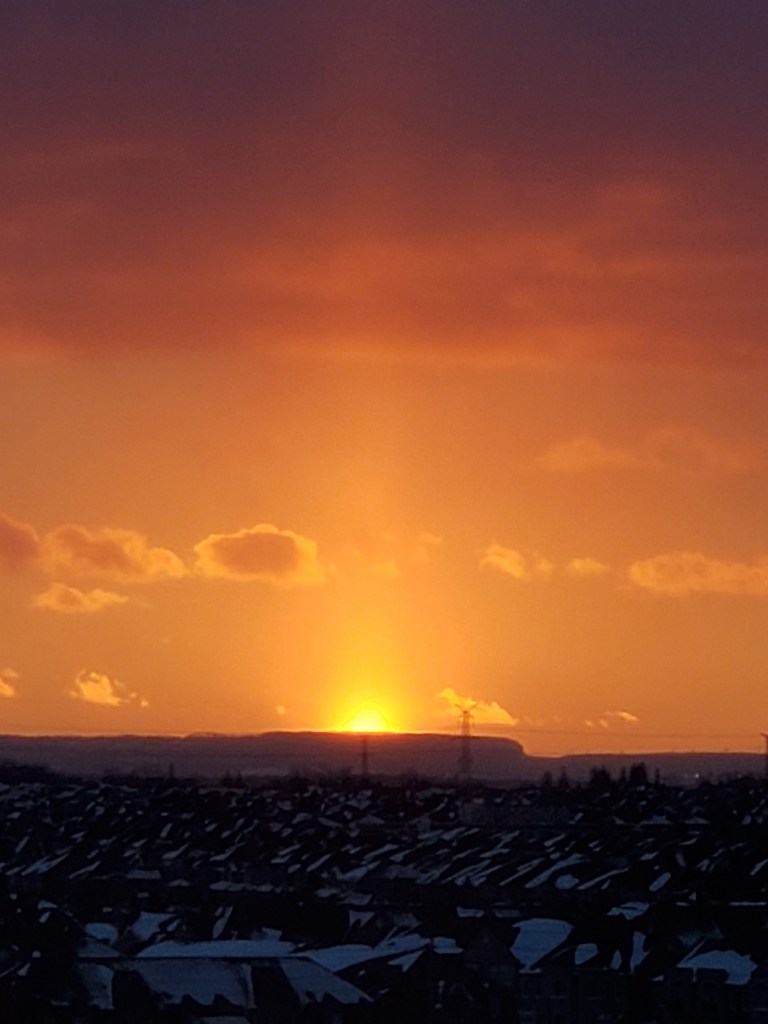 This morning, sunrise shared its golden-red light with clouds diffused gentle white