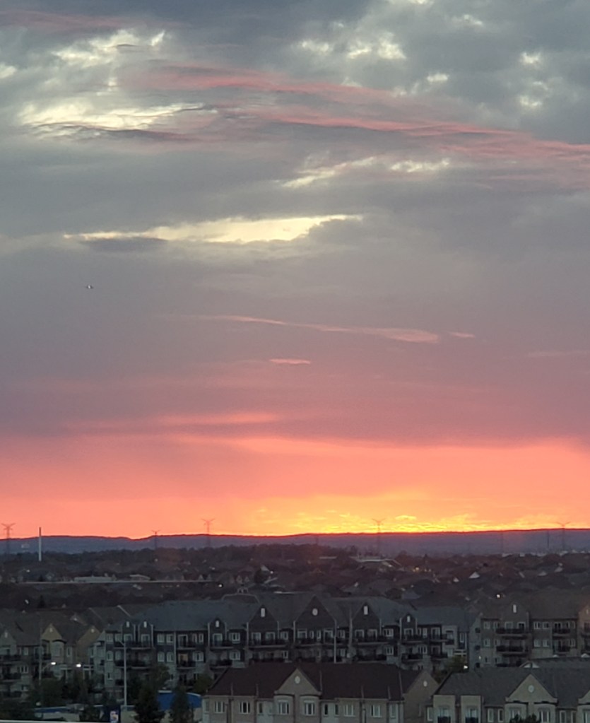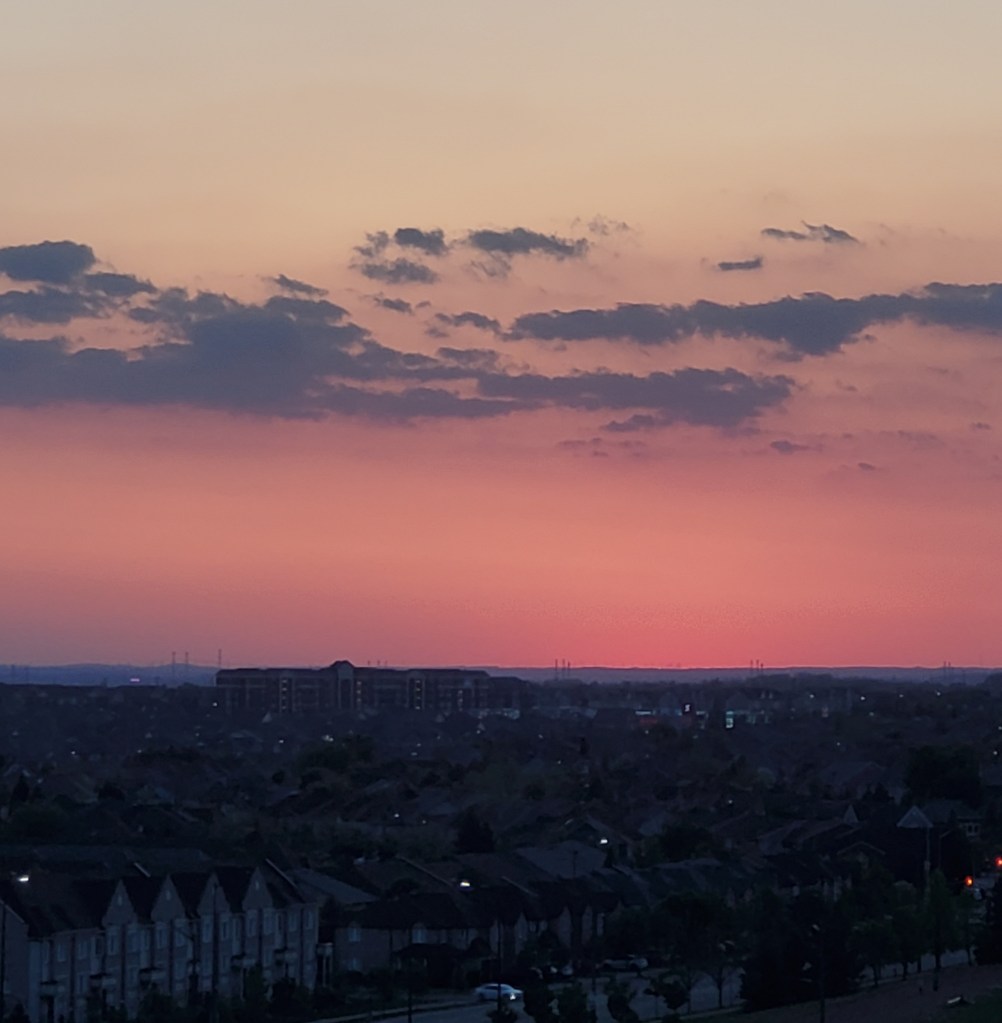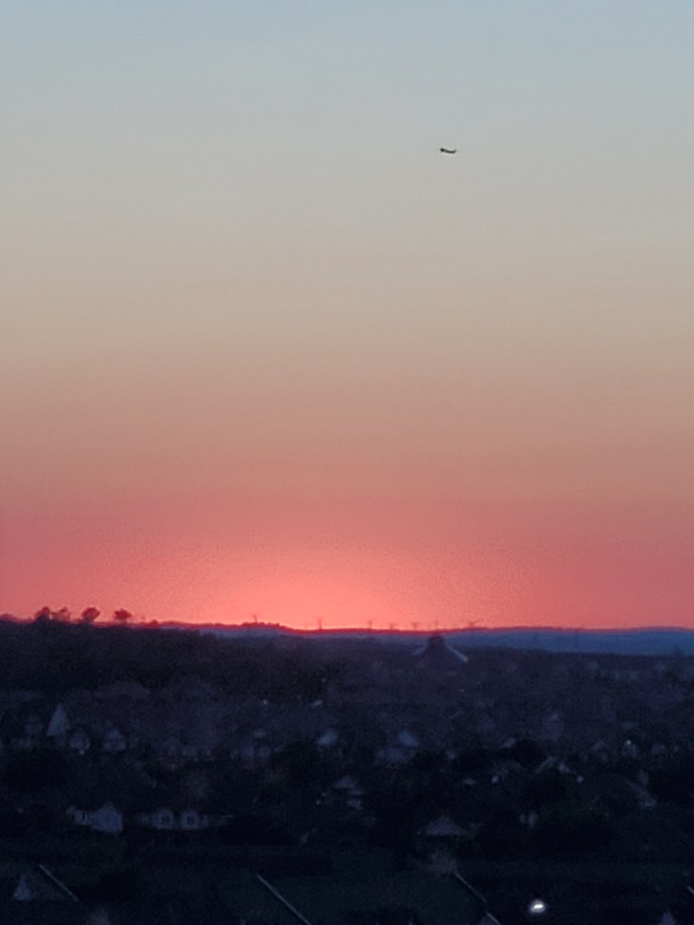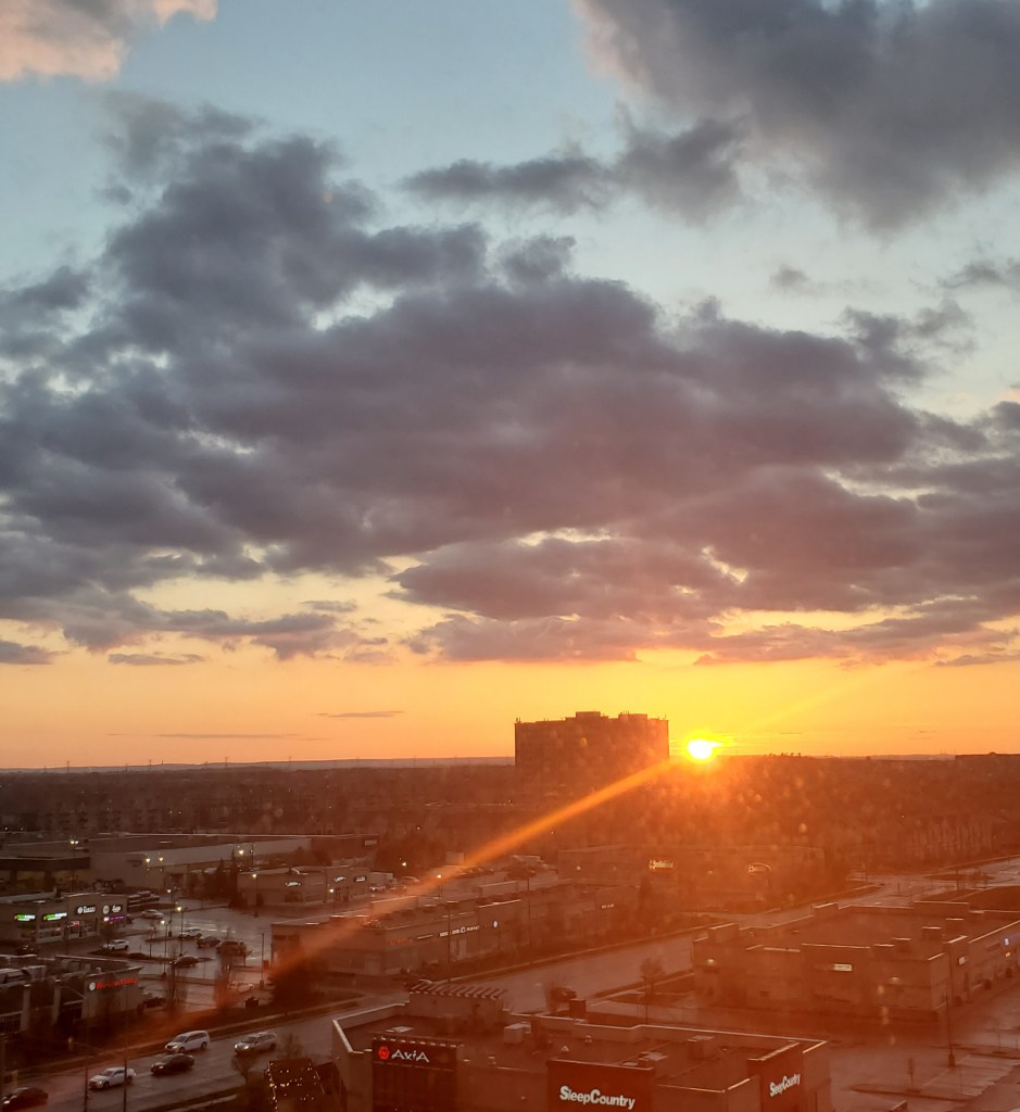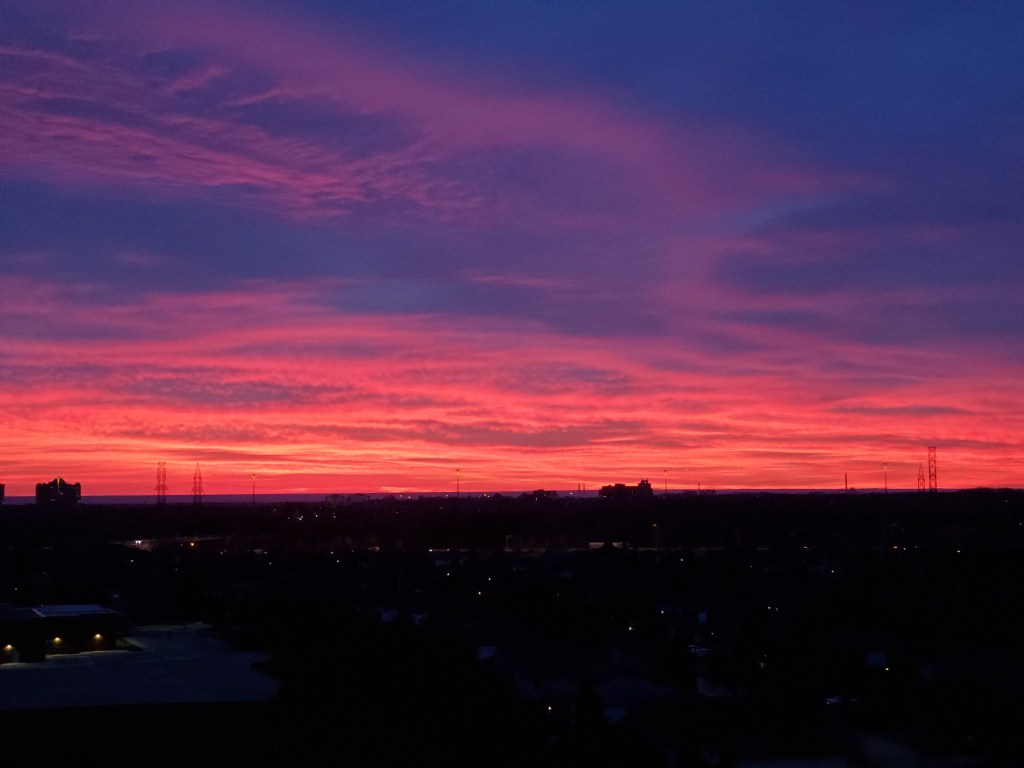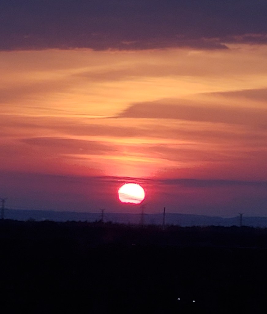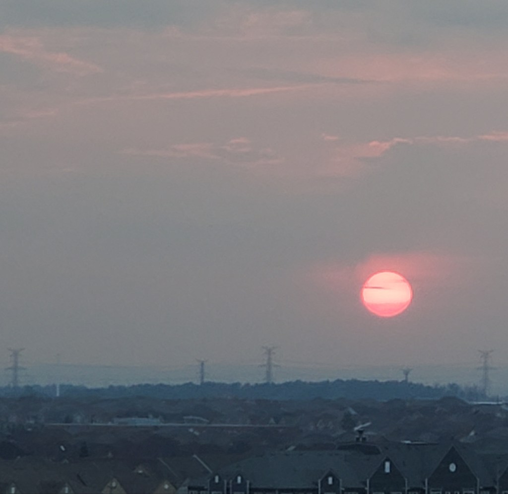 This morning, sunrise shared its golden-red light with clouds diffused gentle white