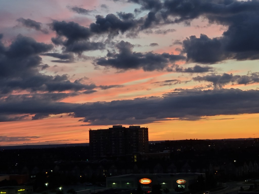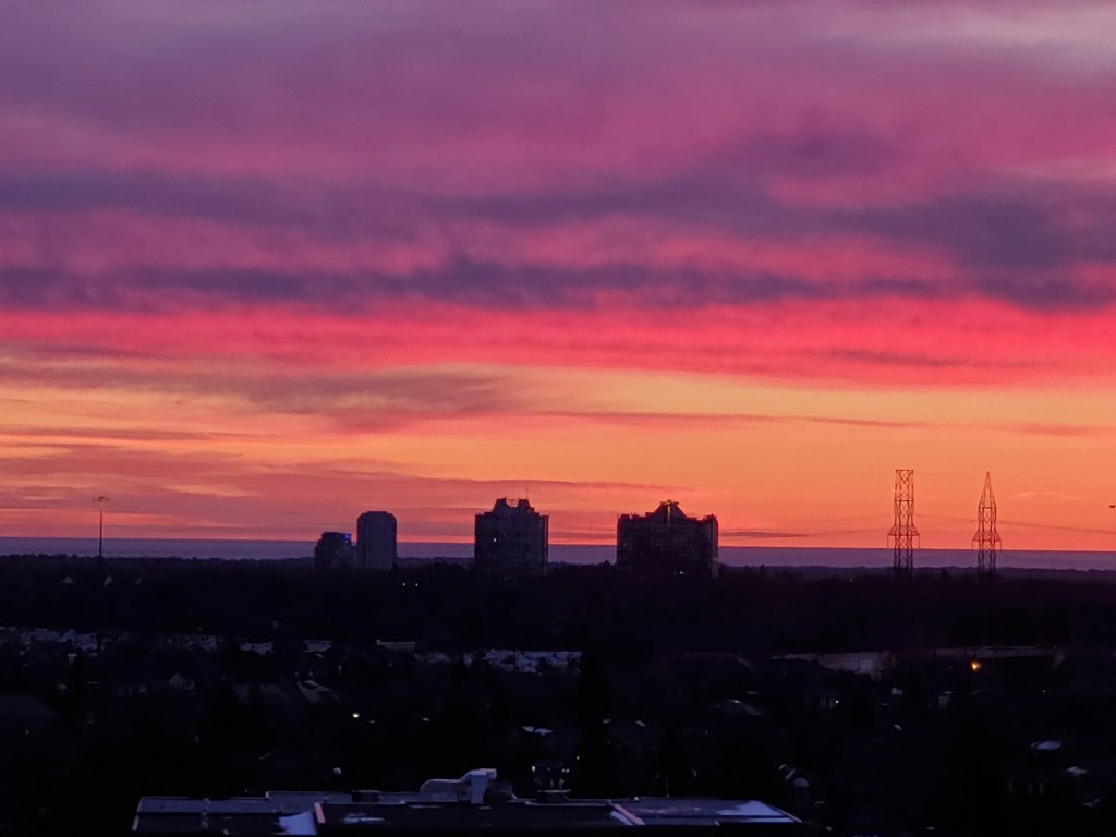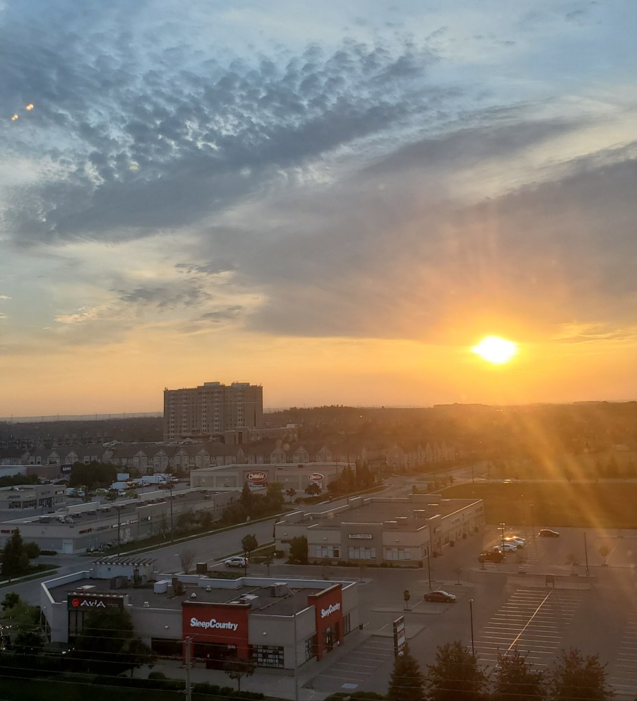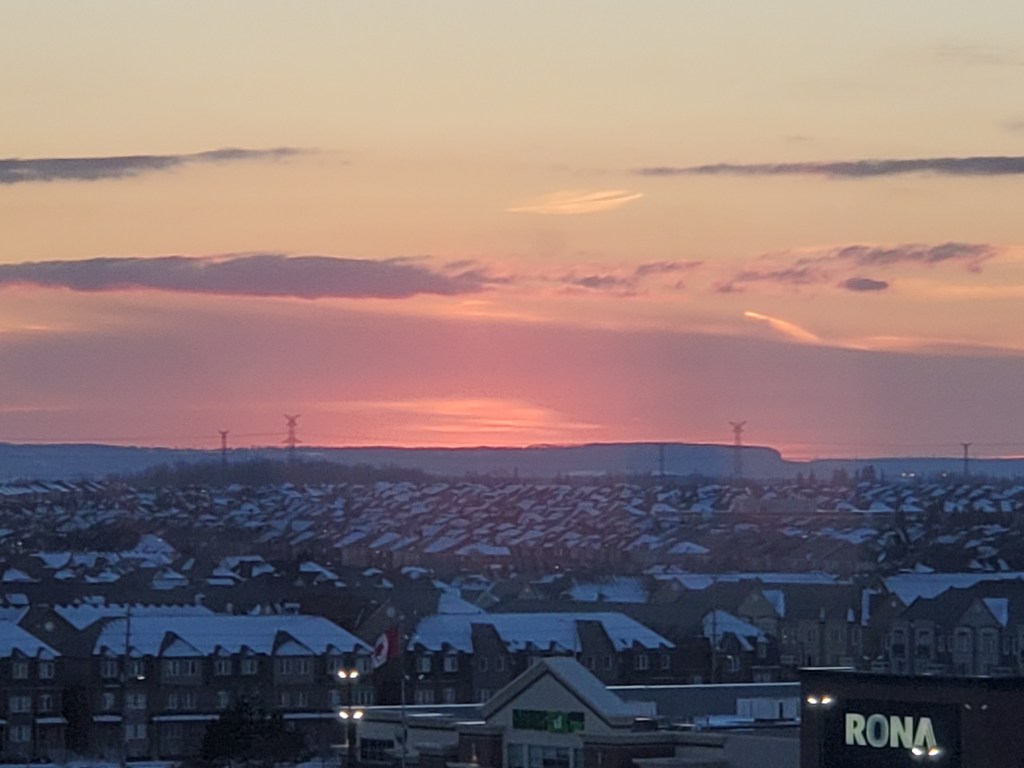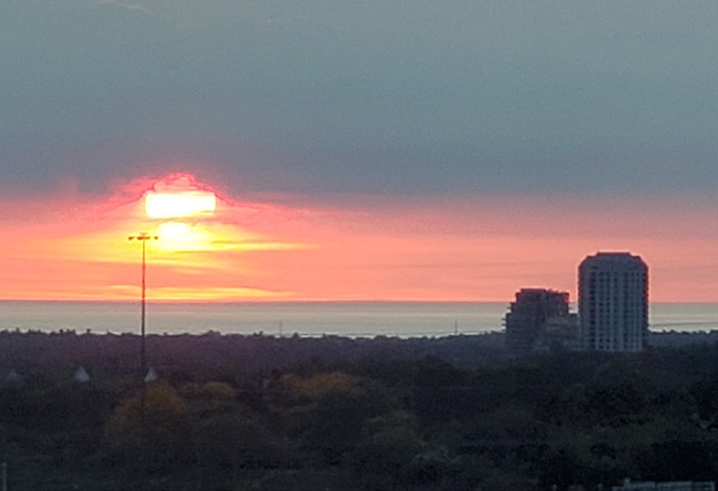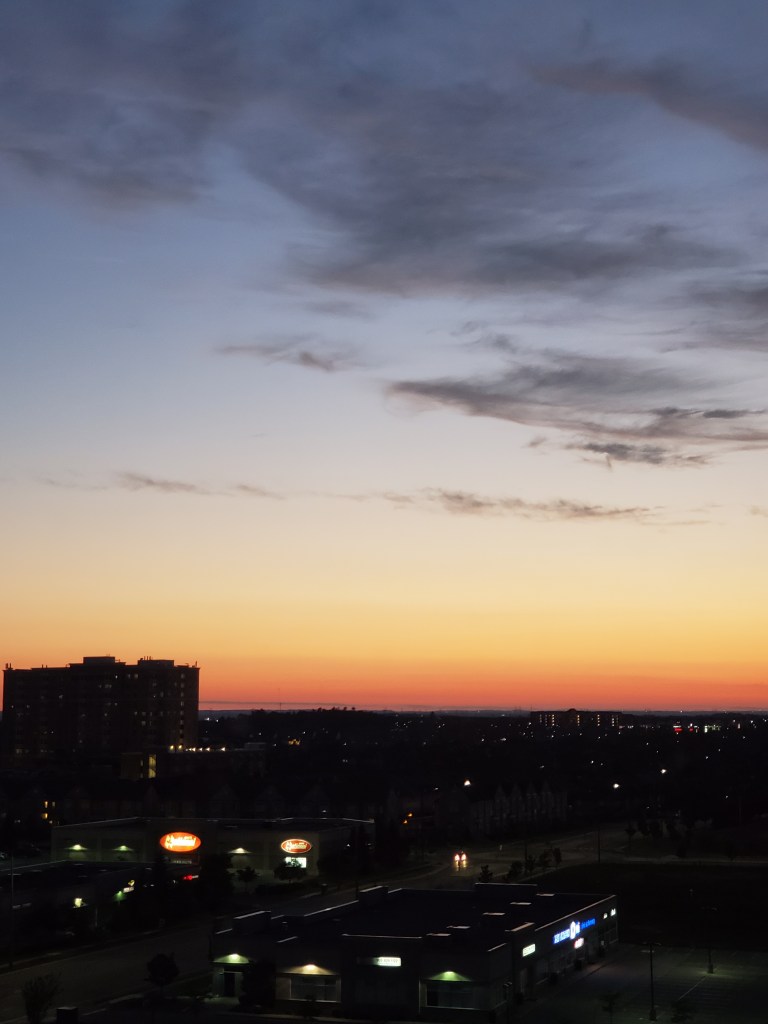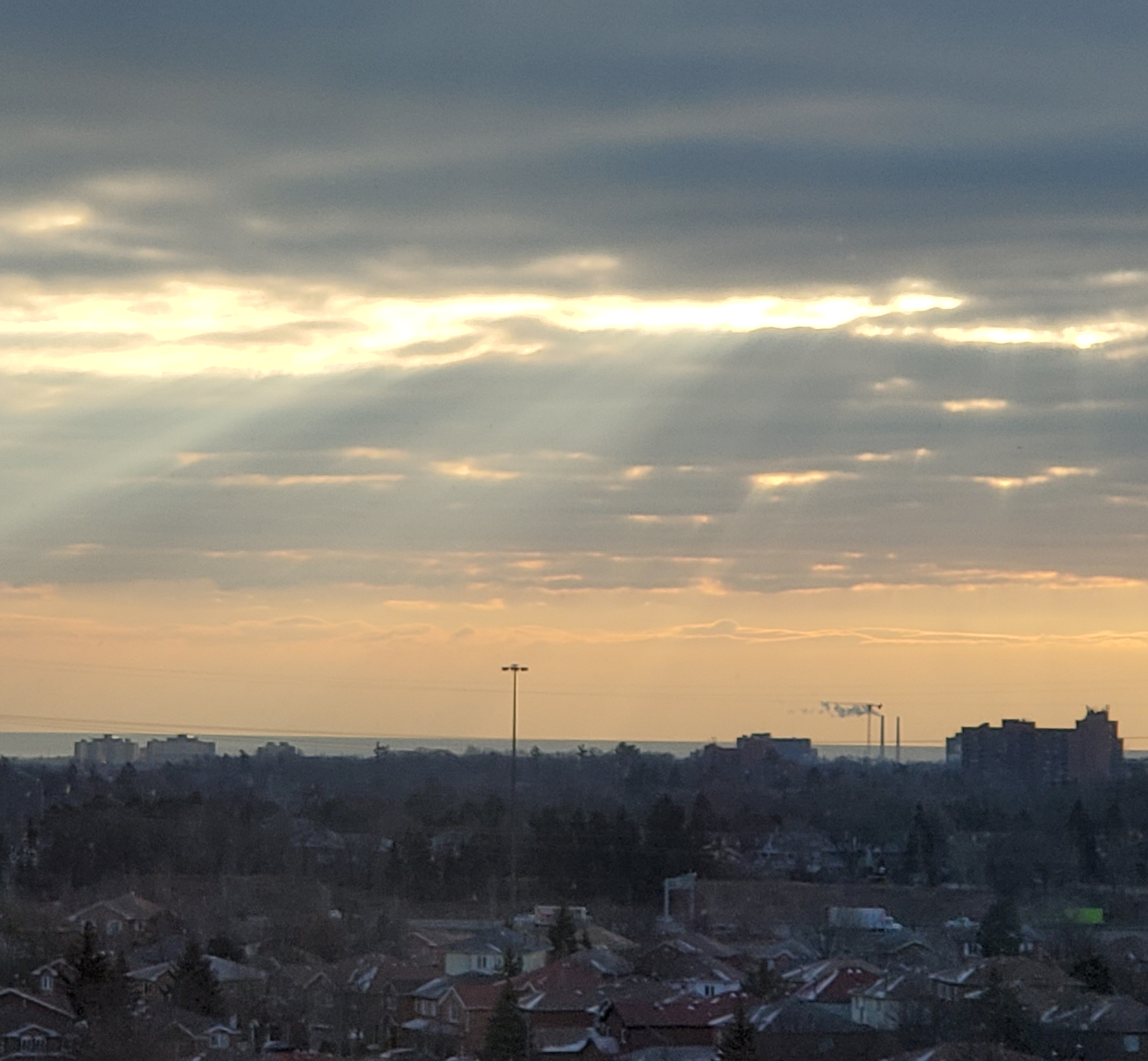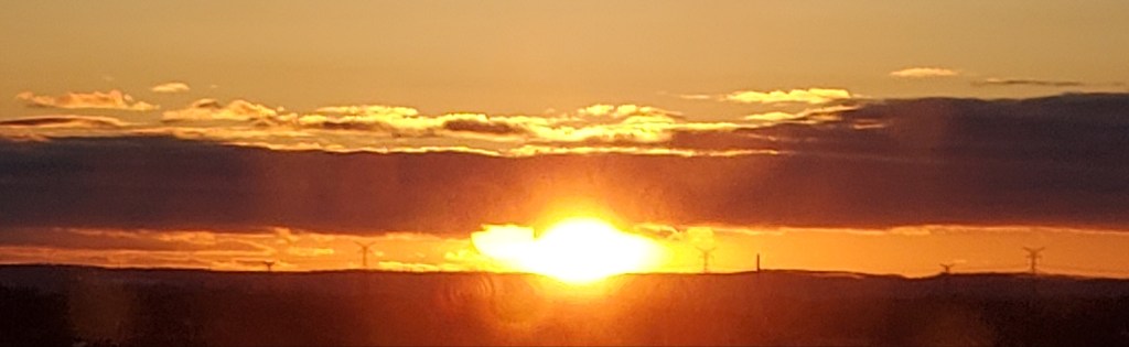 This morning, sunrise shared its golden-red light with clouds diffused gentle white
