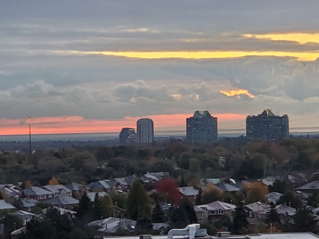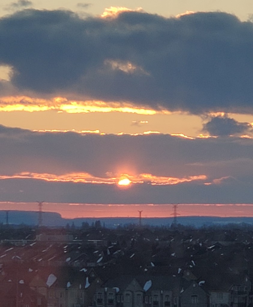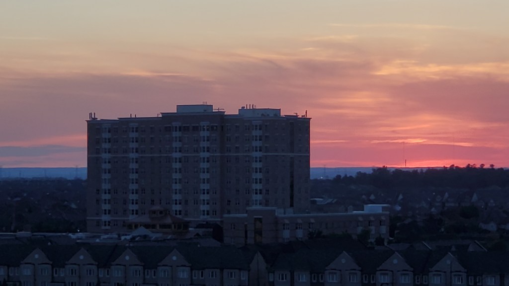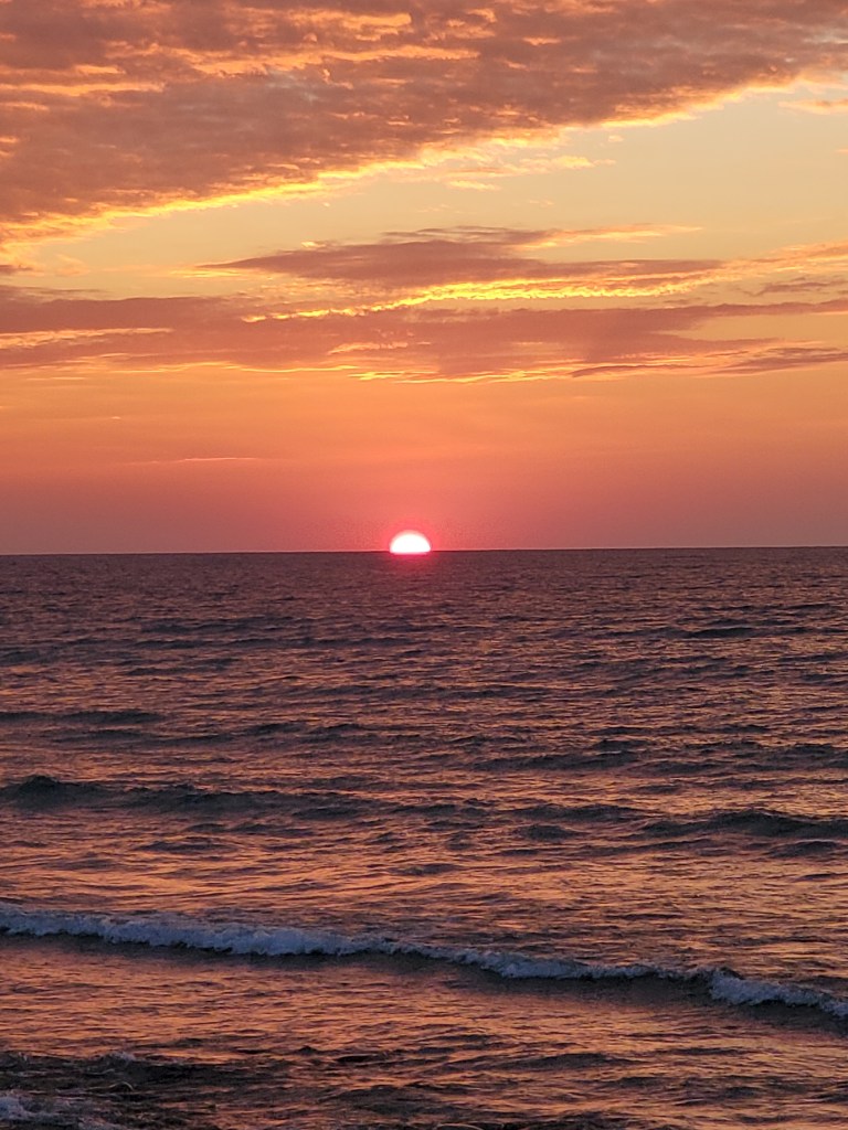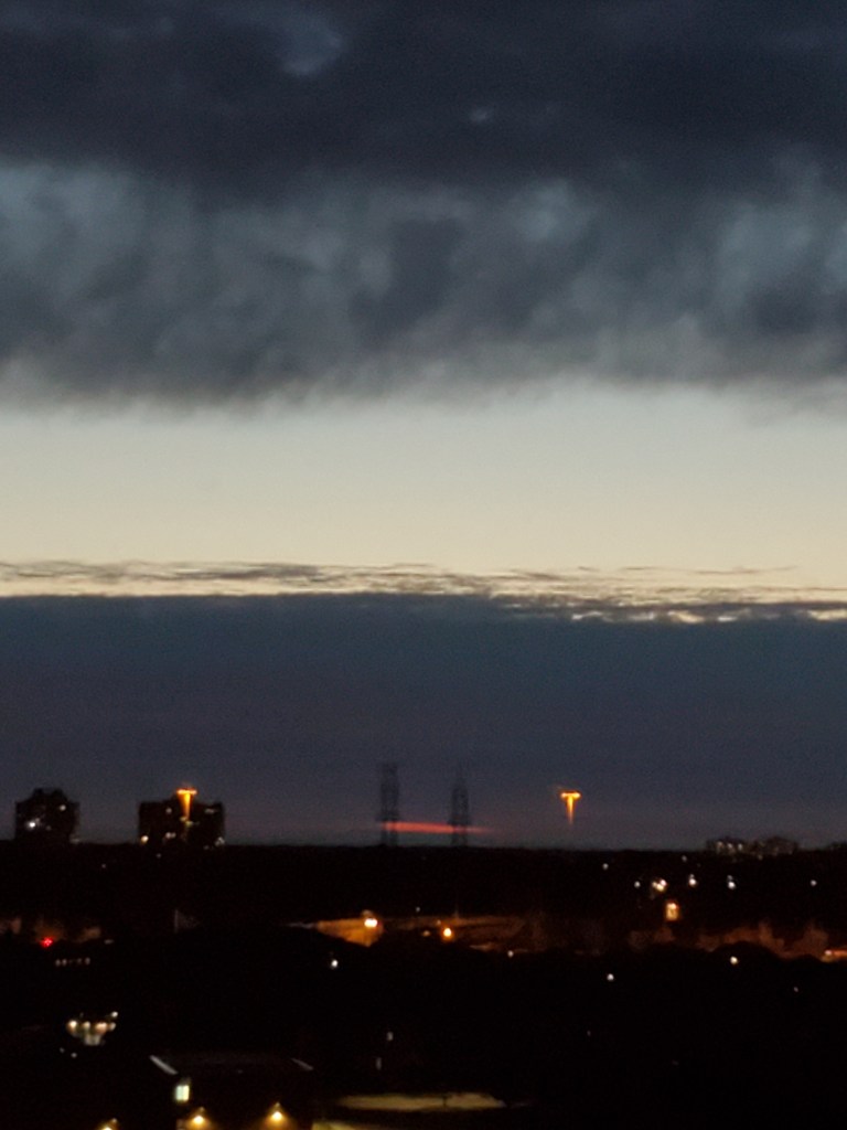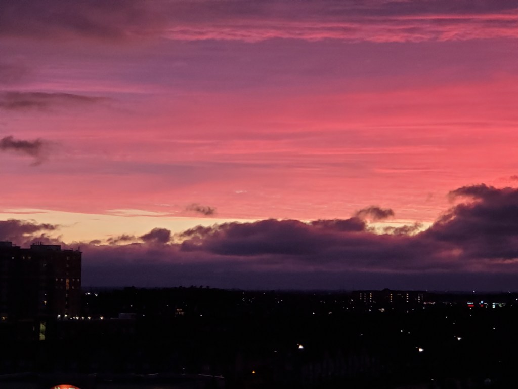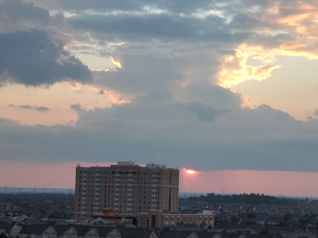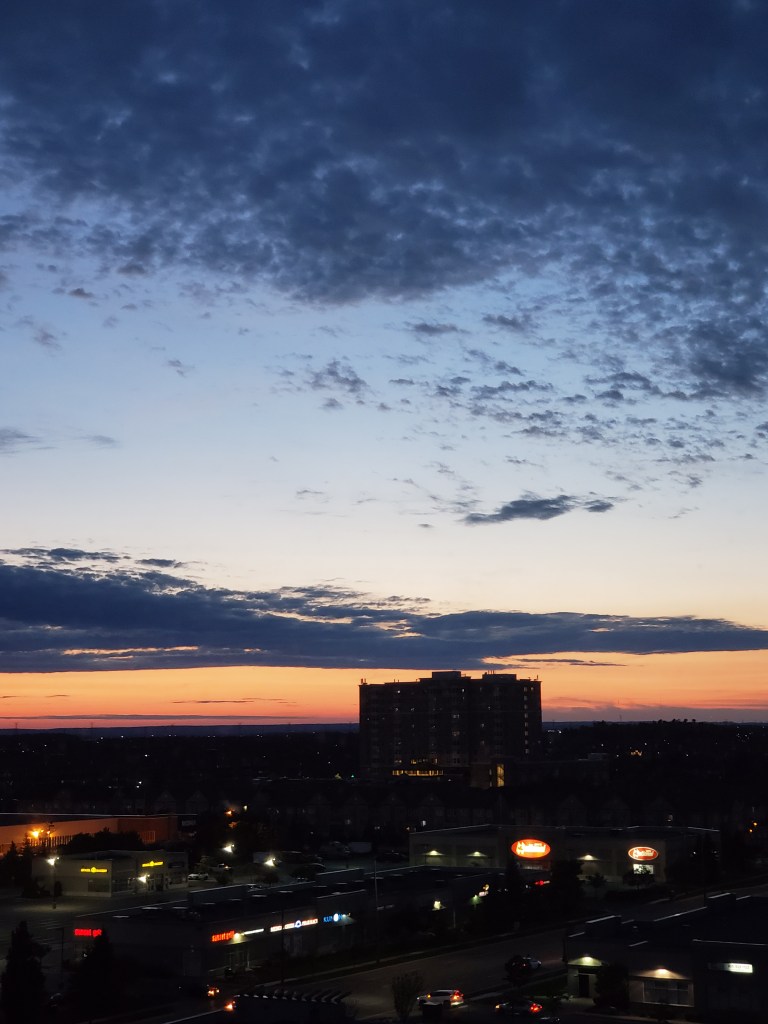 This morning, sunrise shared its golden-red light with clouds diffused gentle white