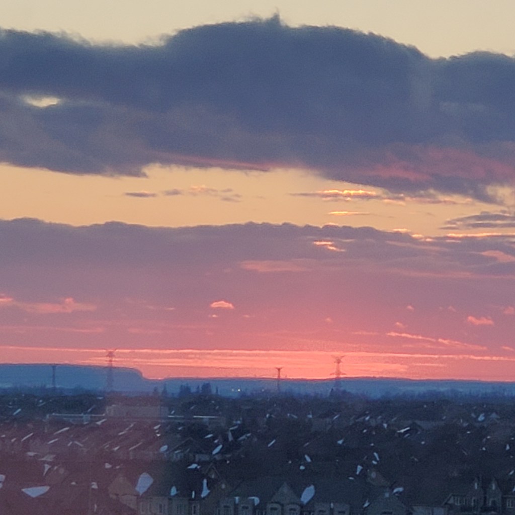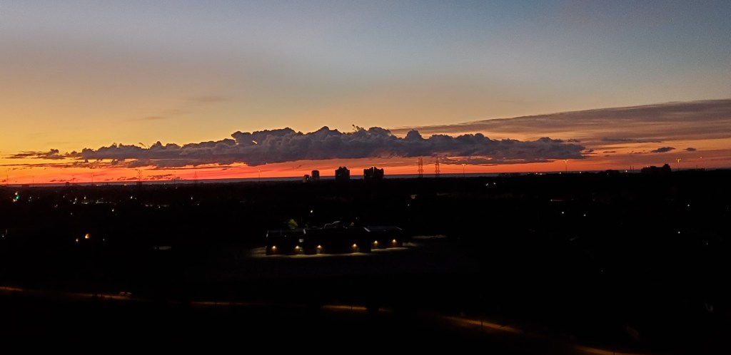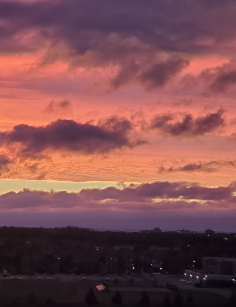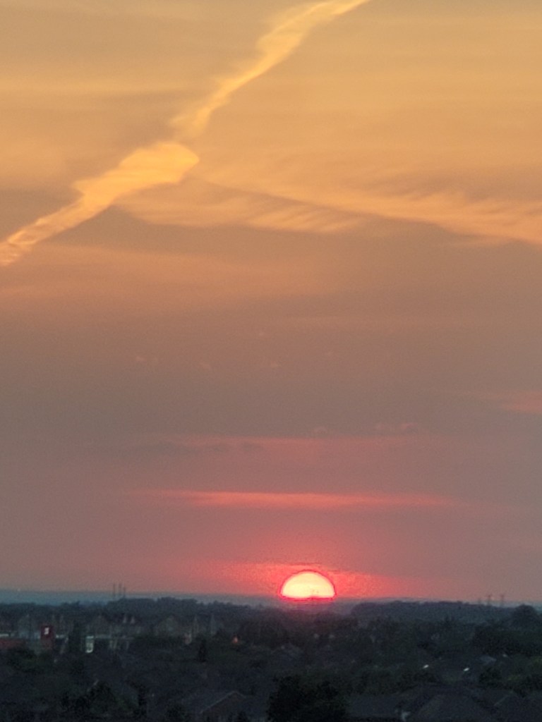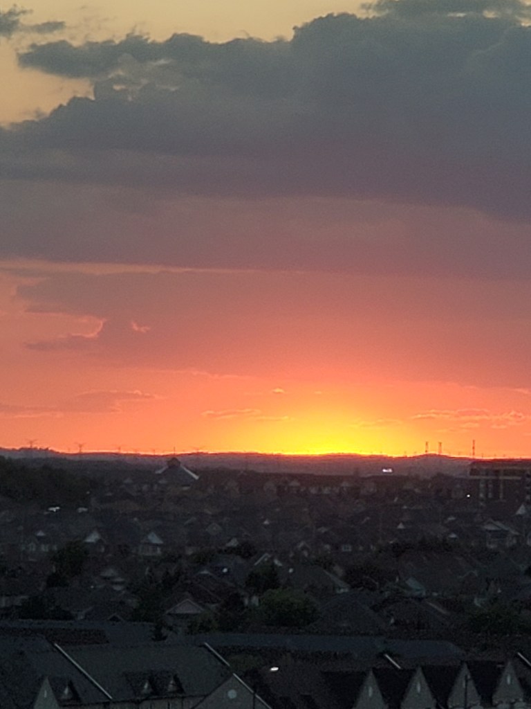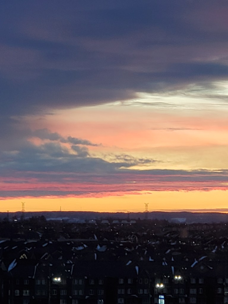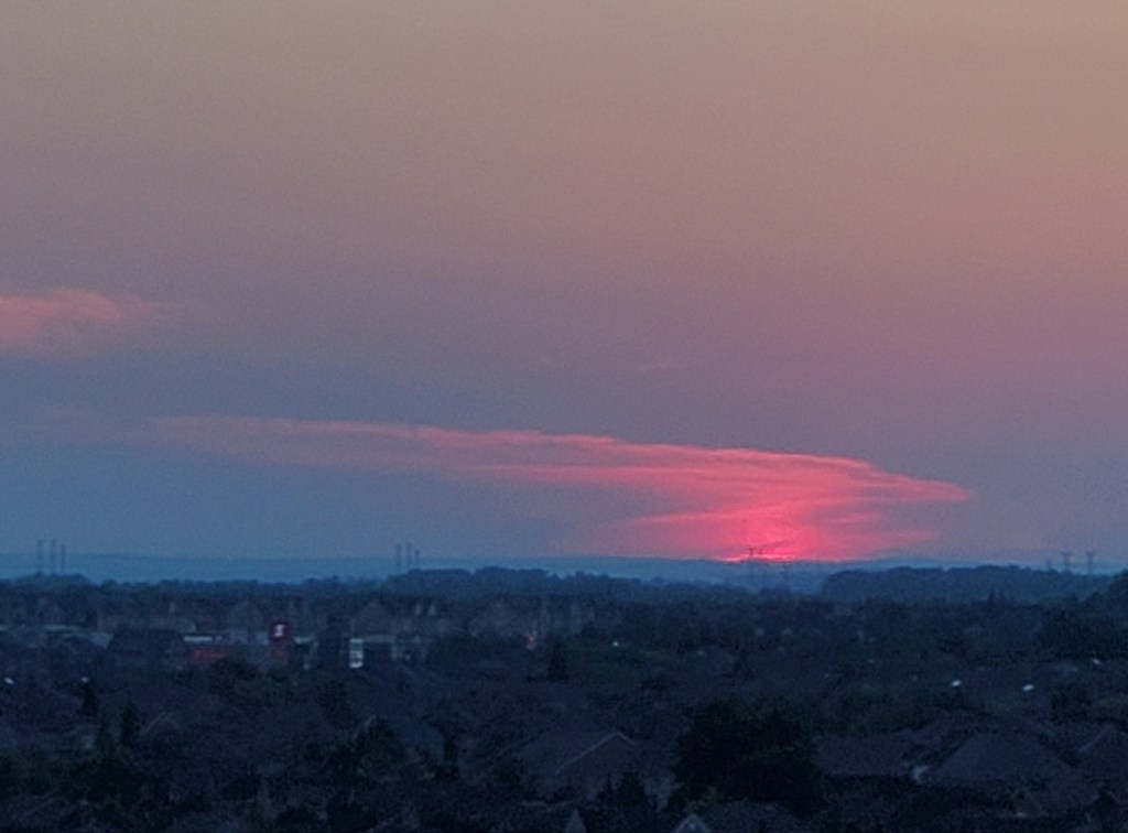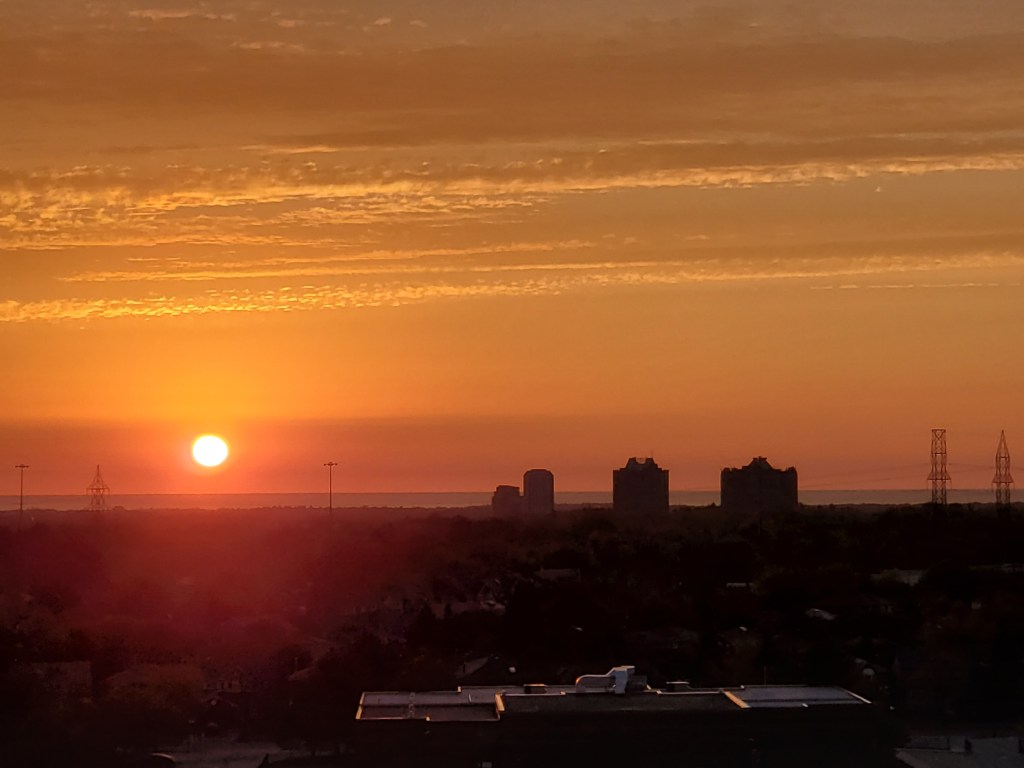 This morning, sunrise shared its golden-red light with clouds diffused gentle white