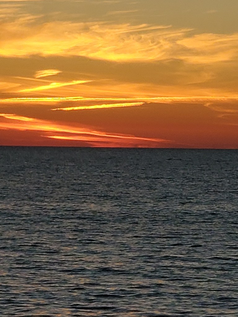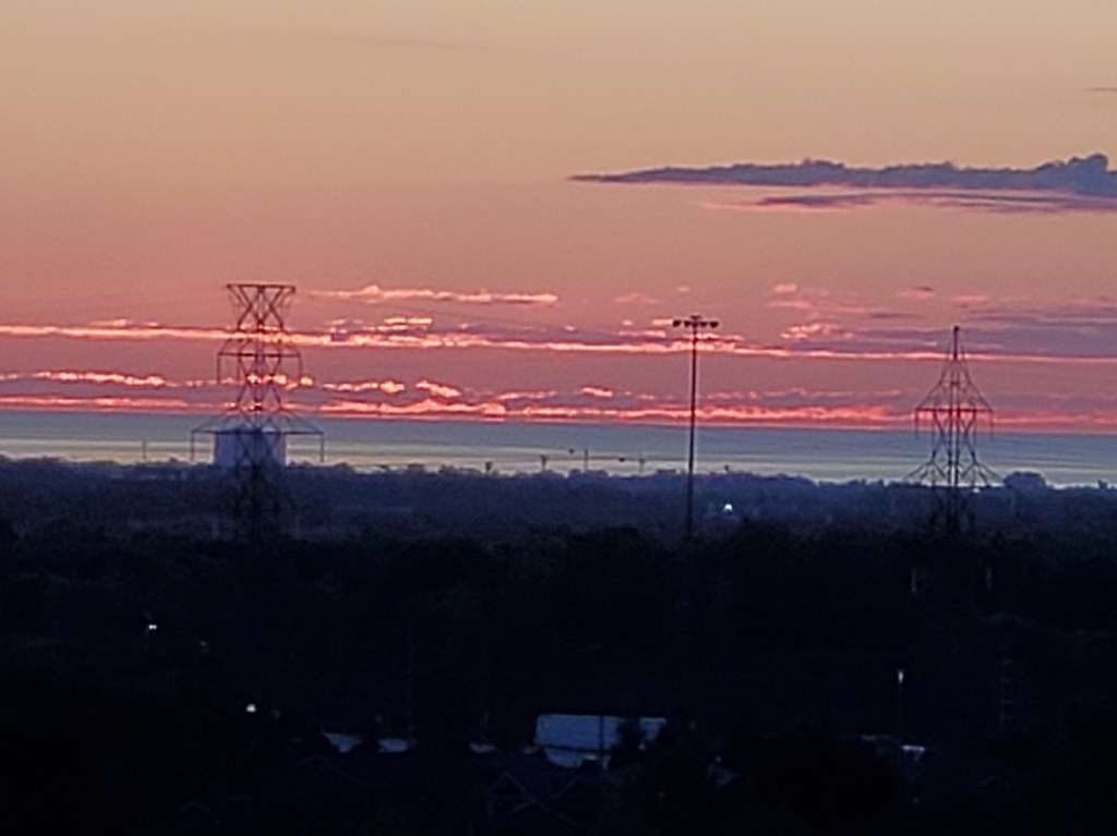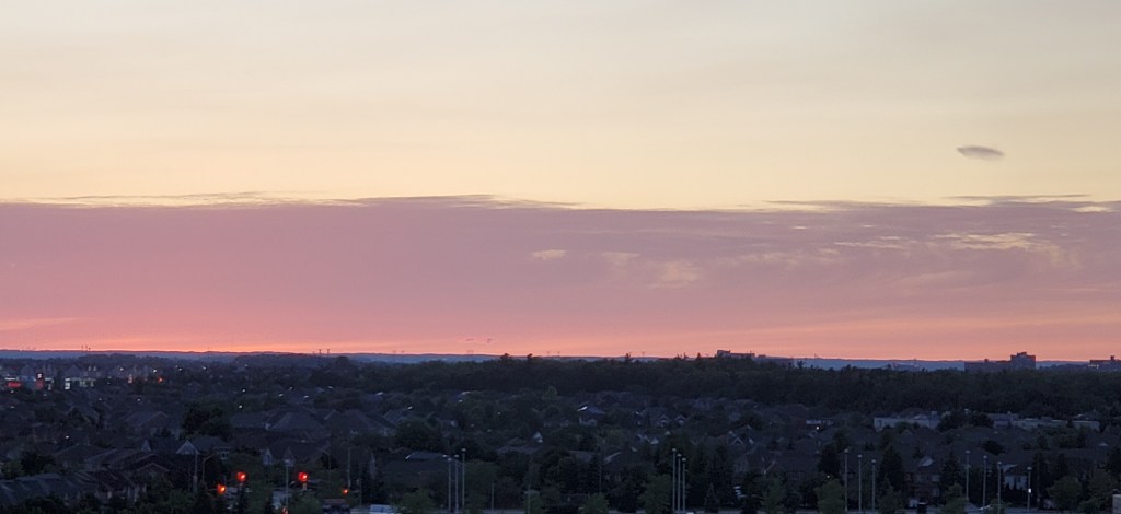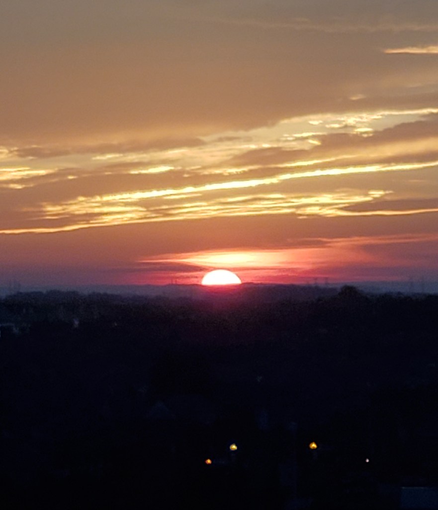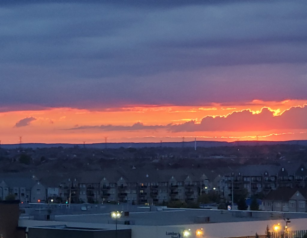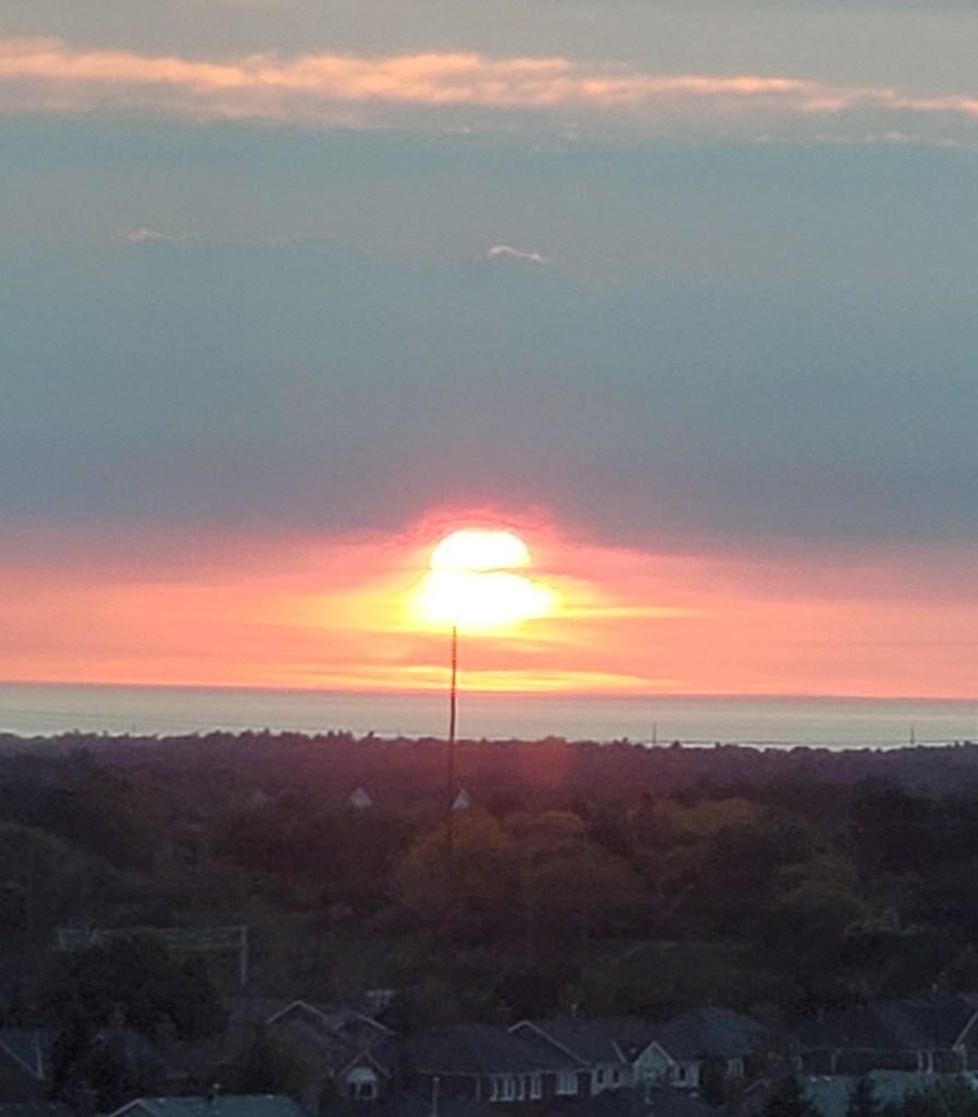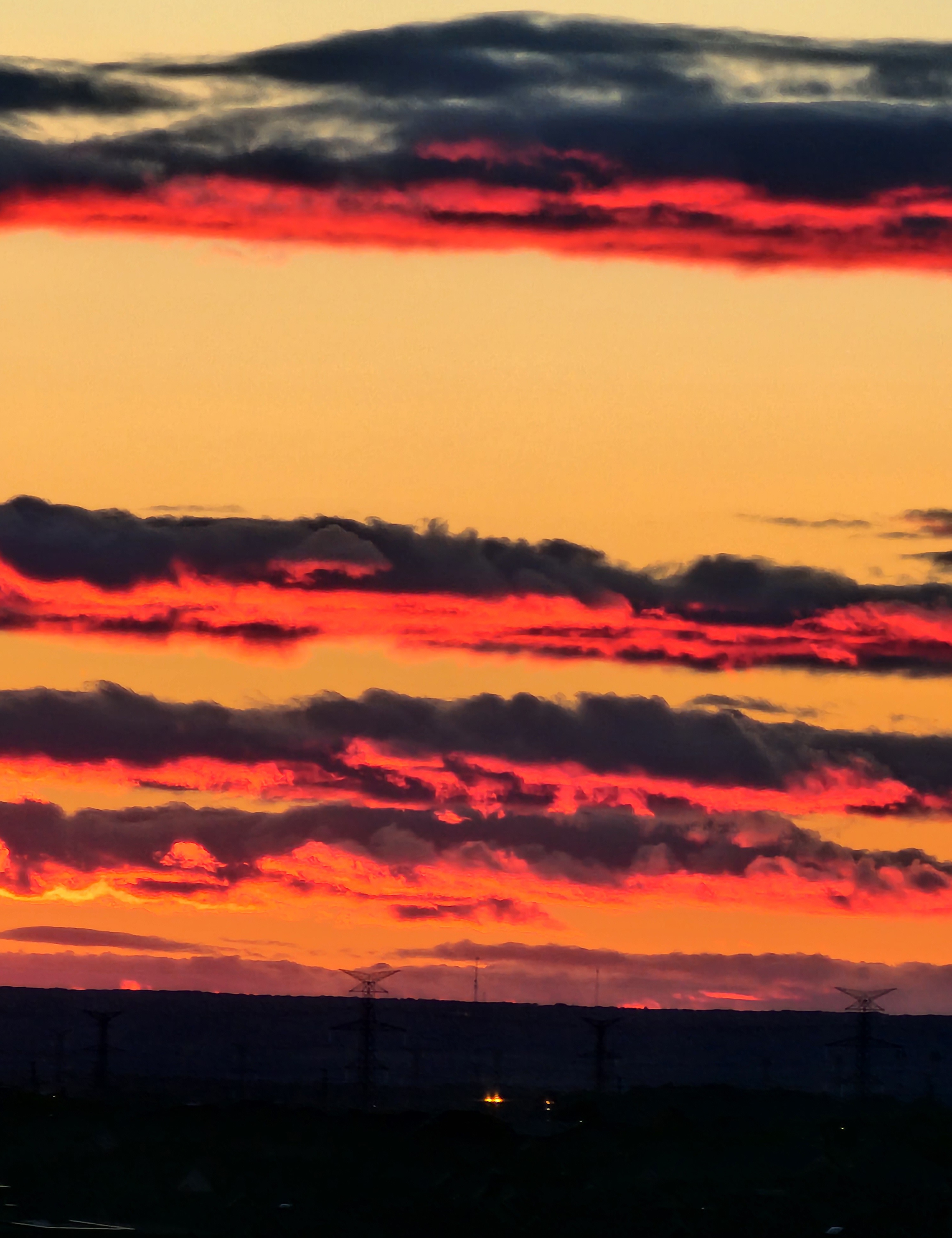 This morning, sunrise shared its golden-red light with clouds diffused gentle white