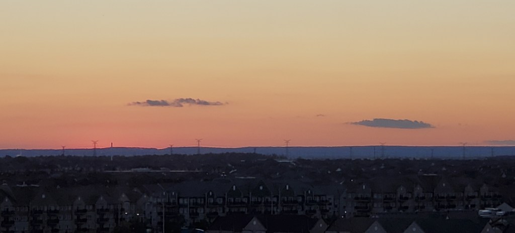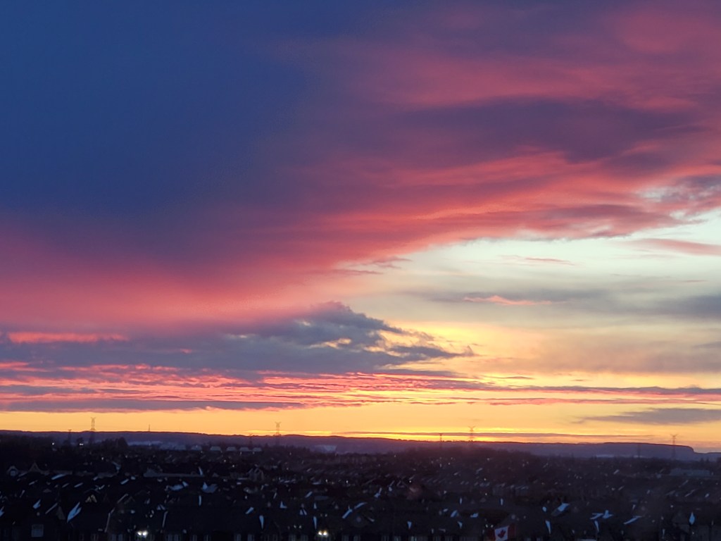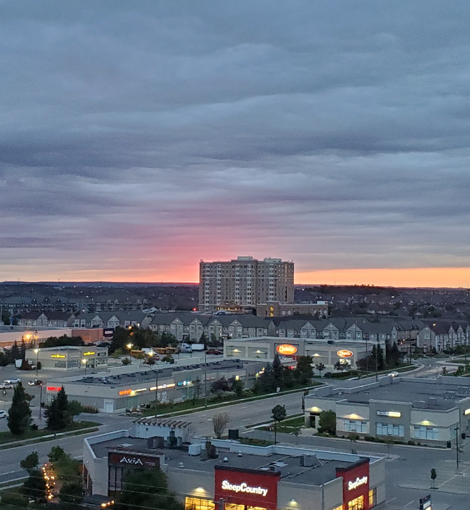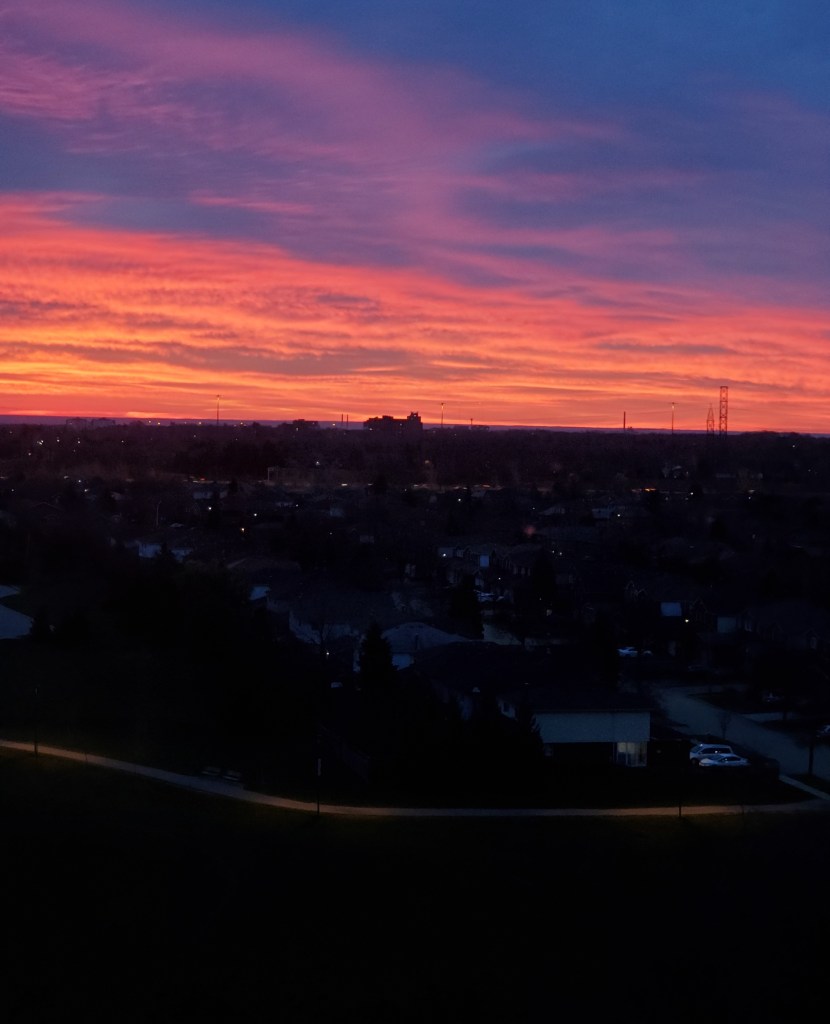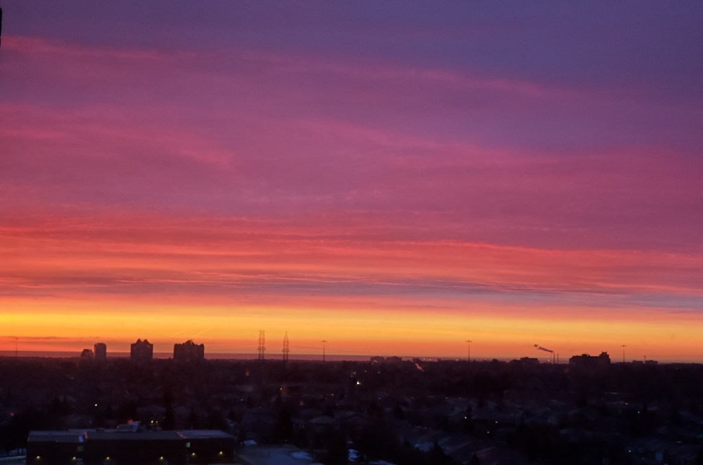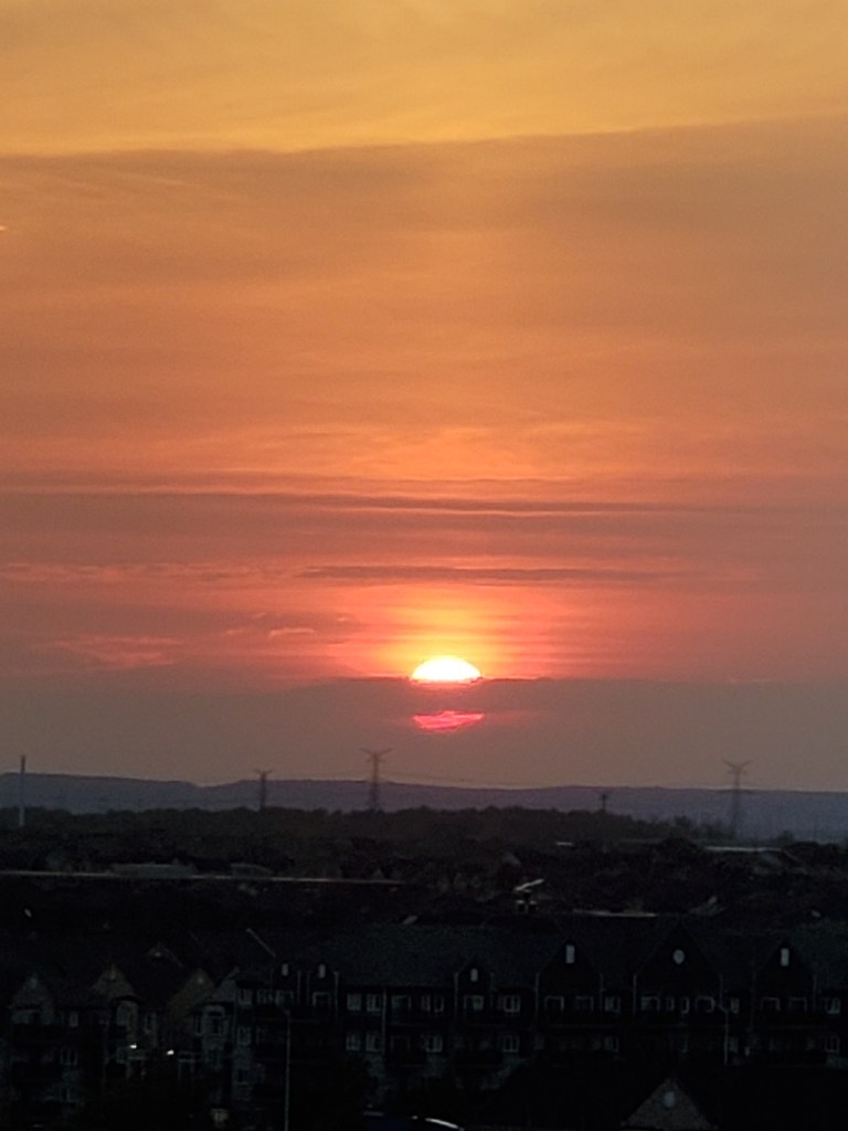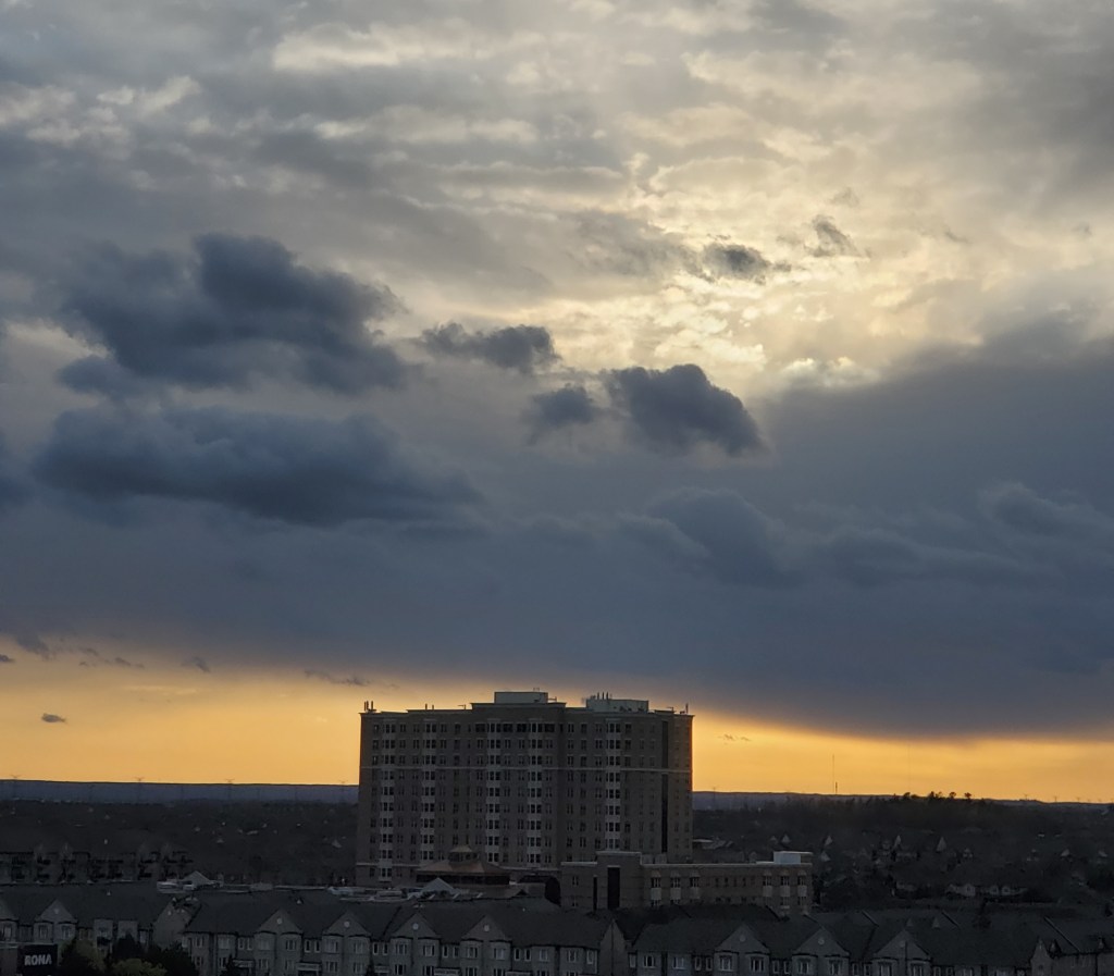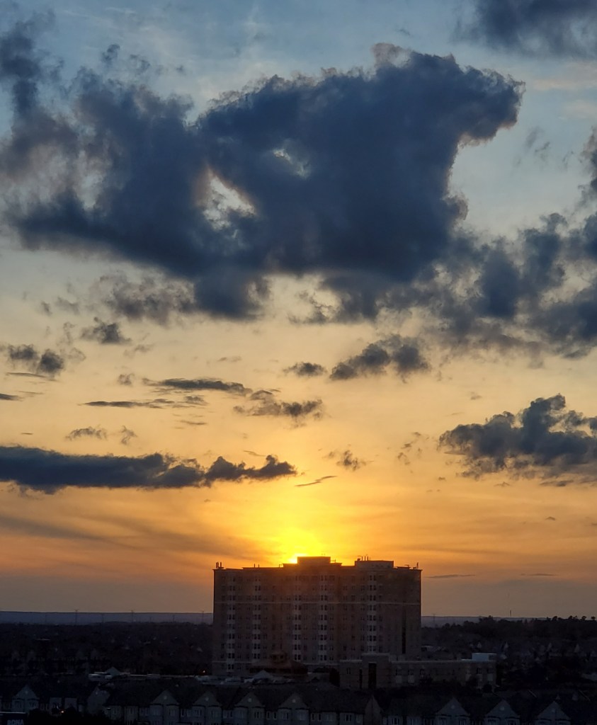 This morning, sunrise shared its golden-red light with clouds diffused gentle white