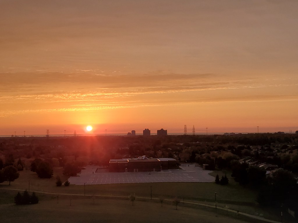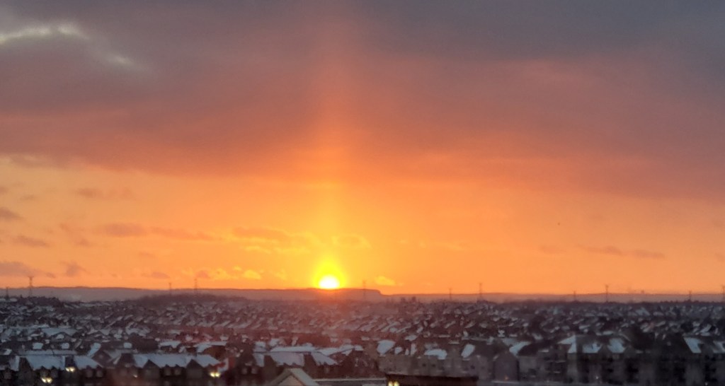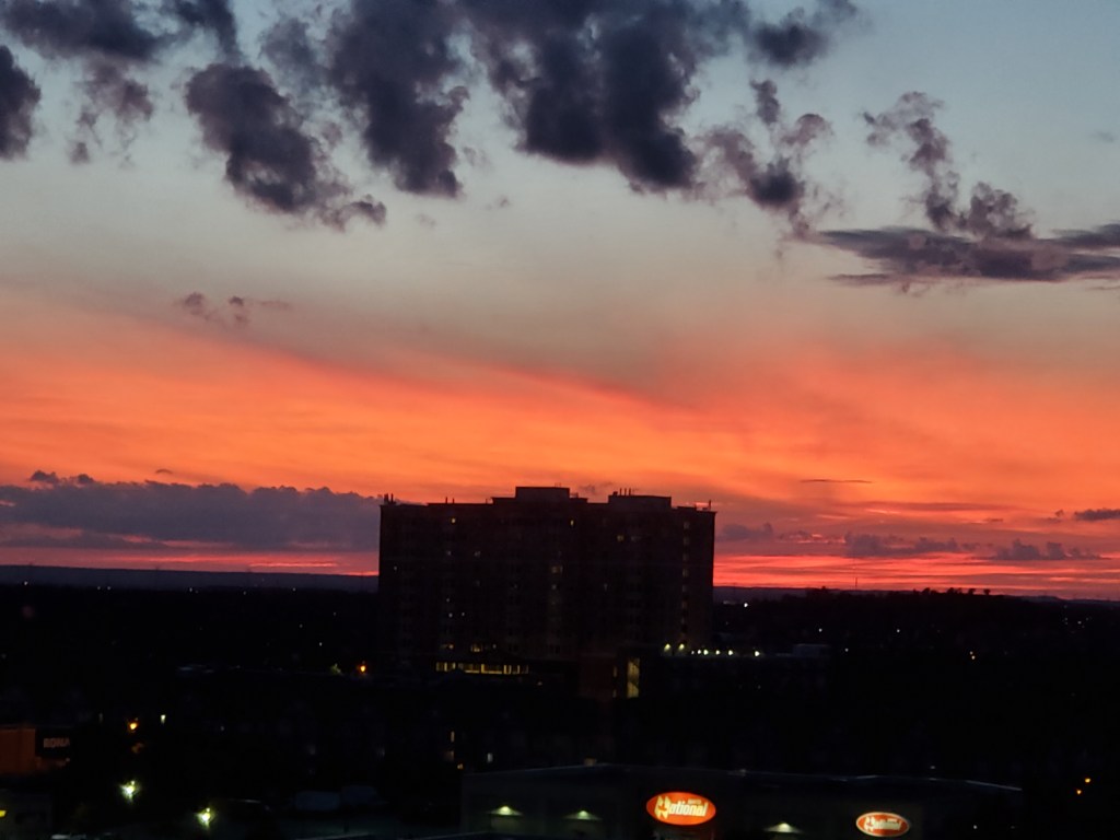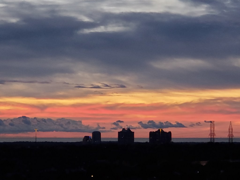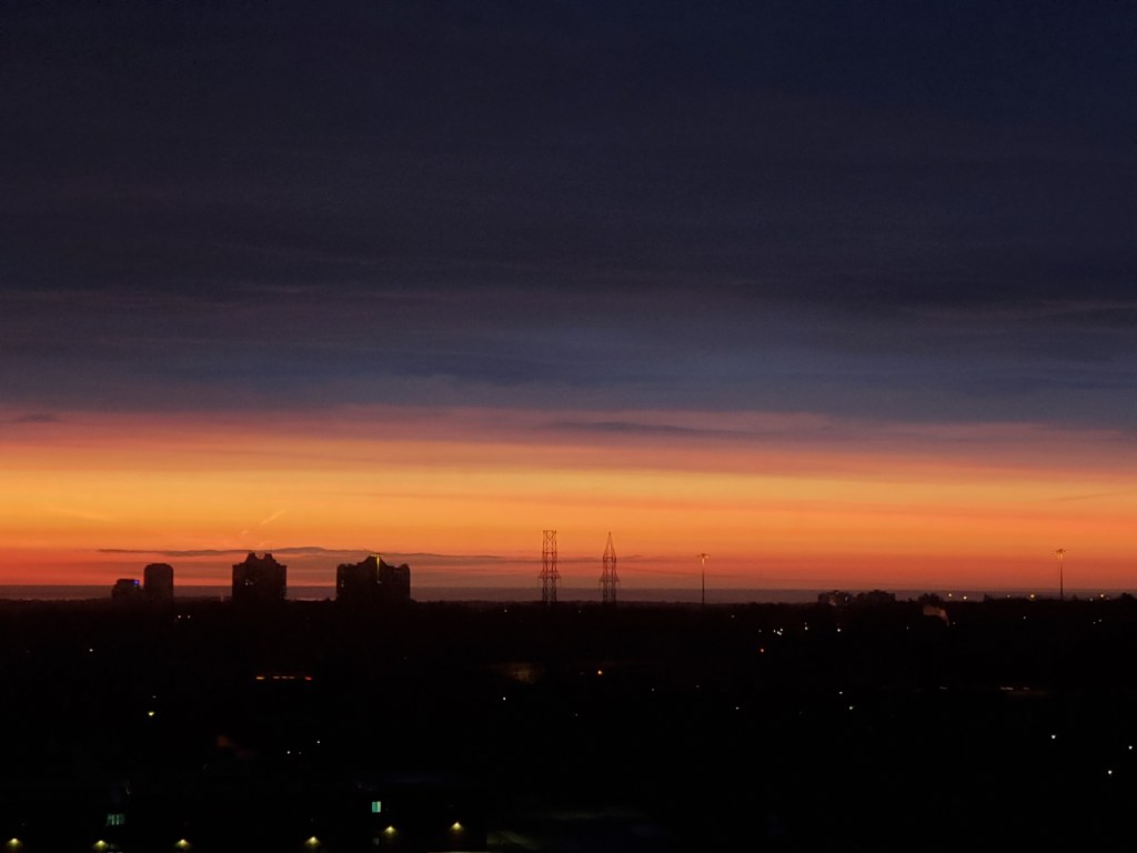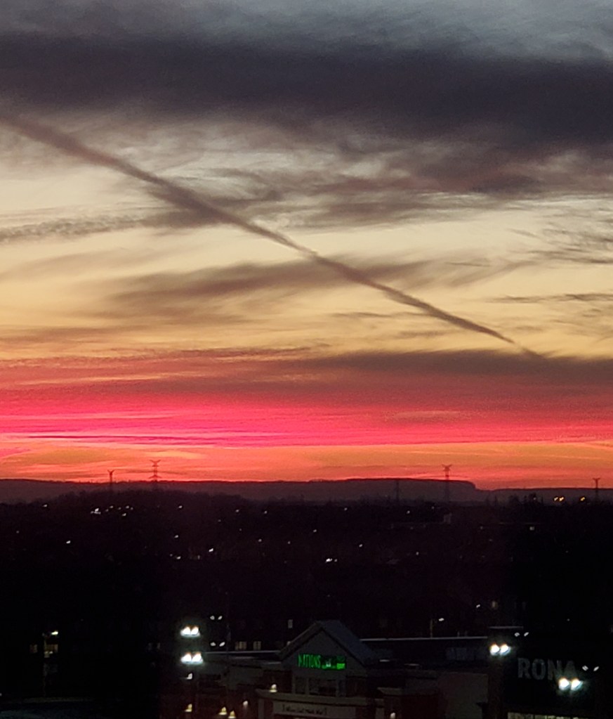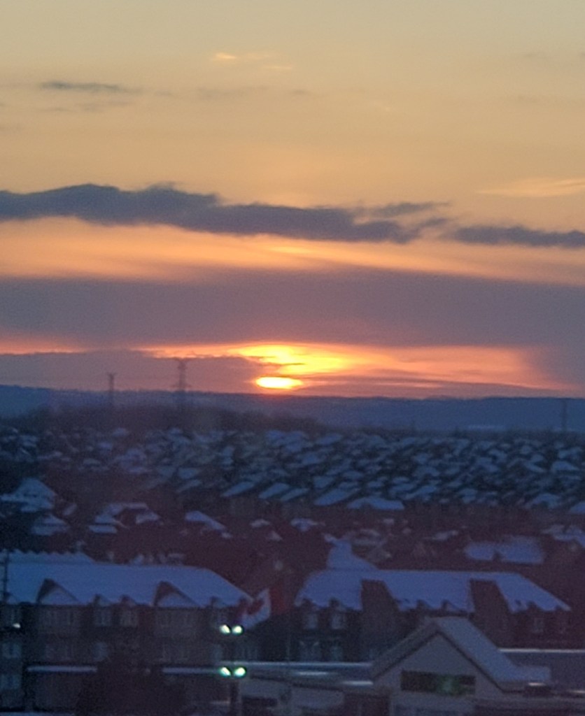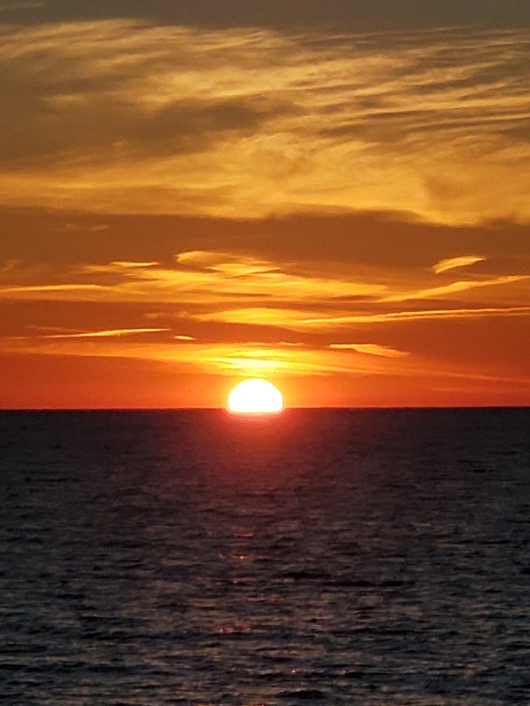 This morning, sunrise shared its golden-red light with clouds diffused gentle white