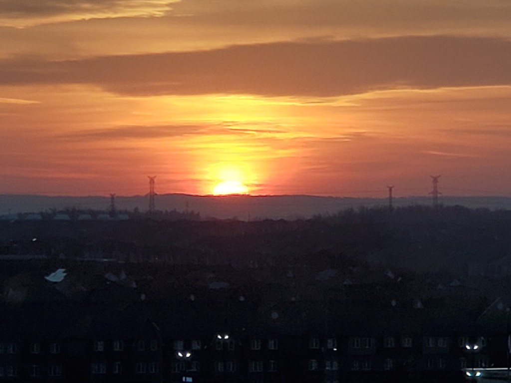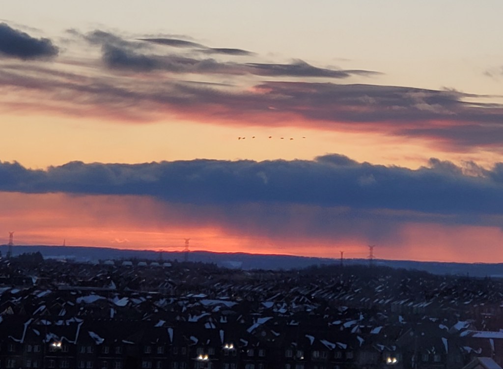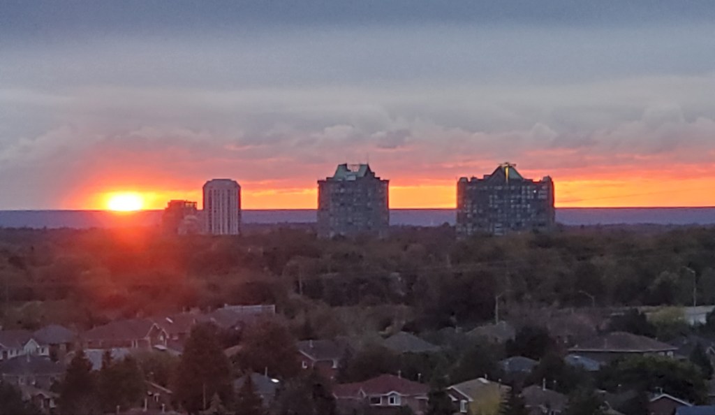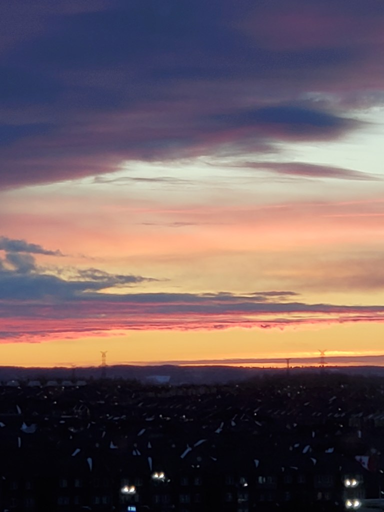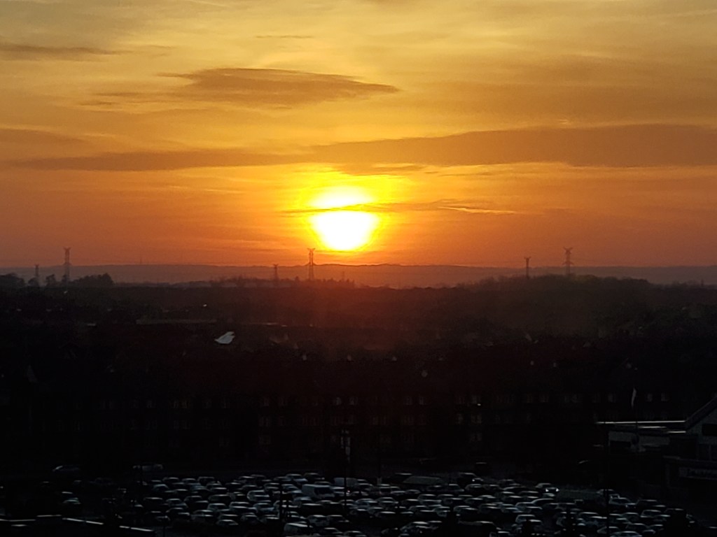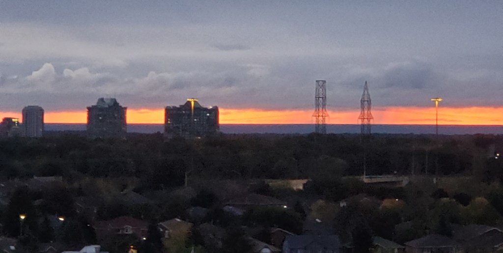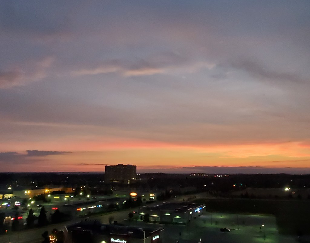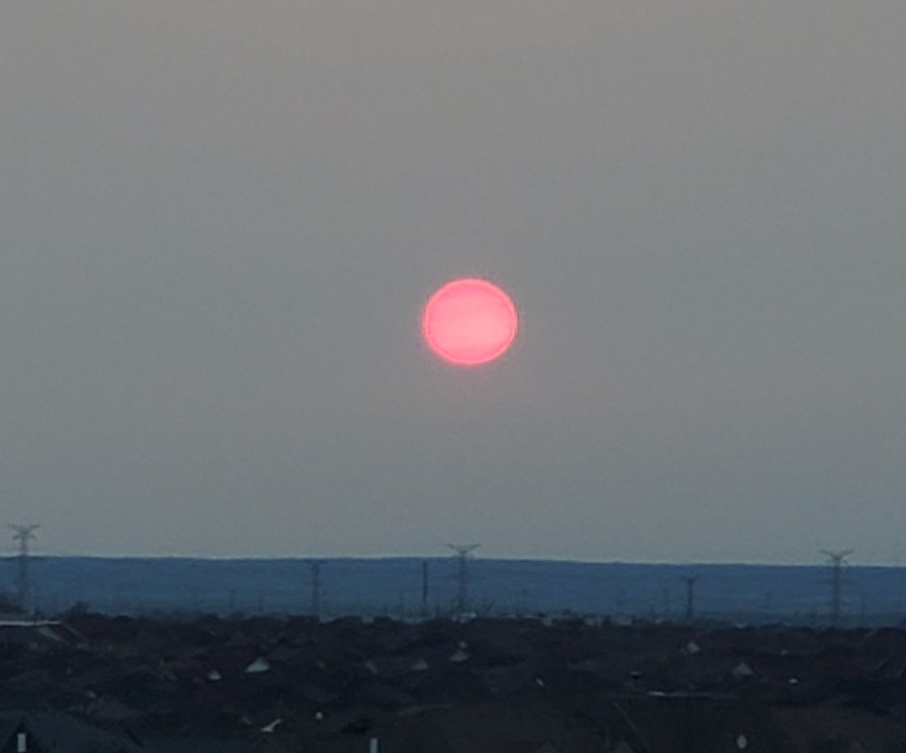 This morning, sunrise shared its golden-red light with clouds diffused gentle white