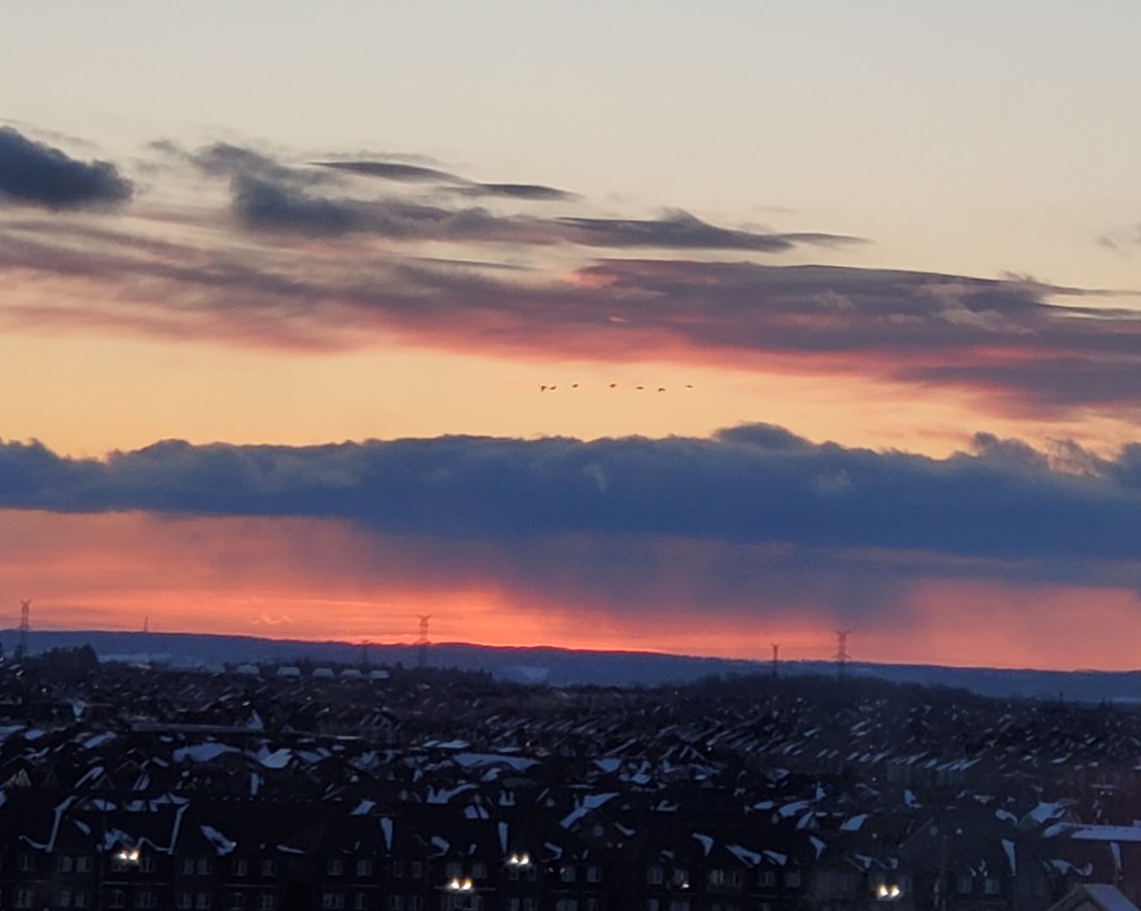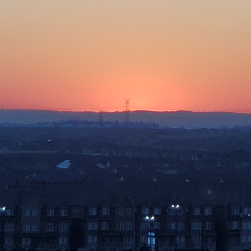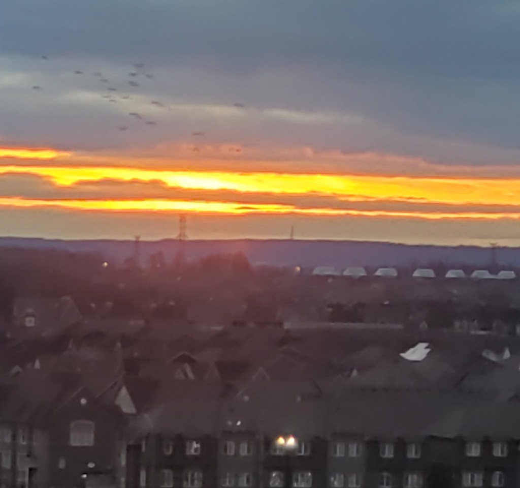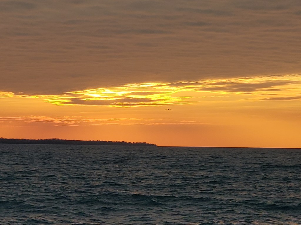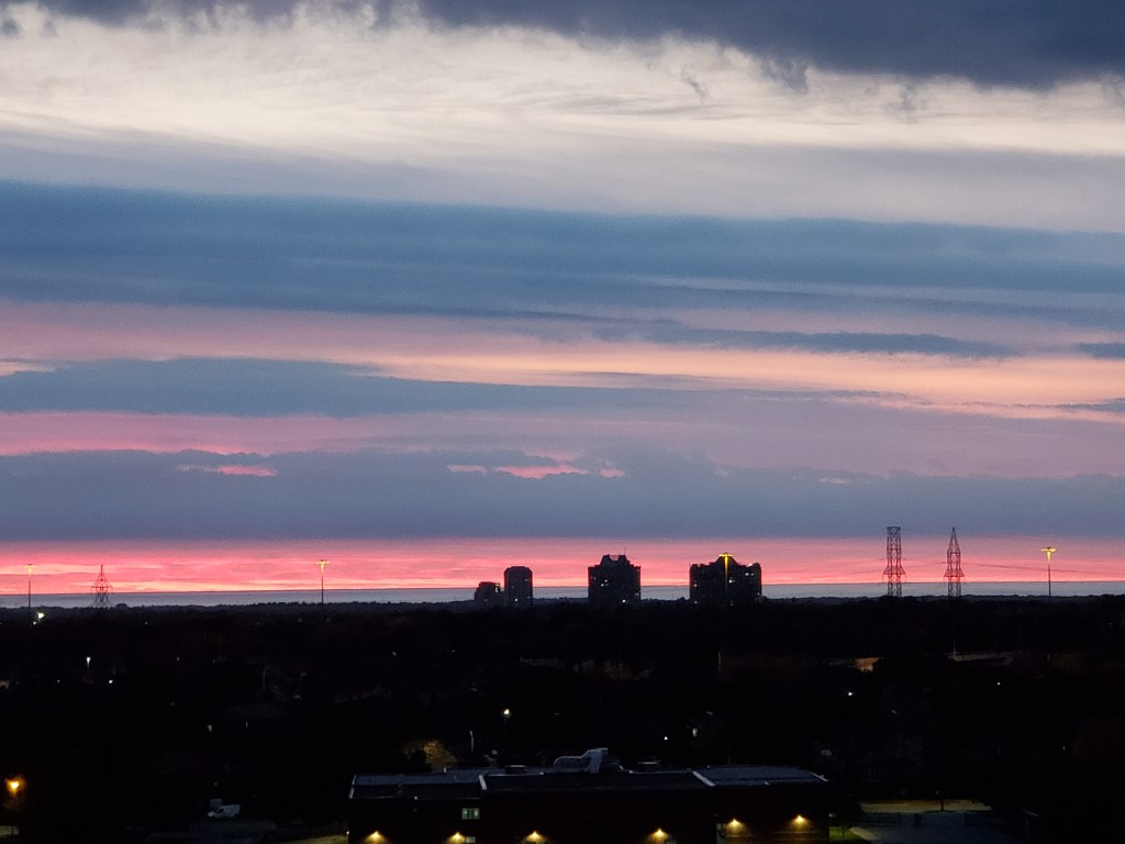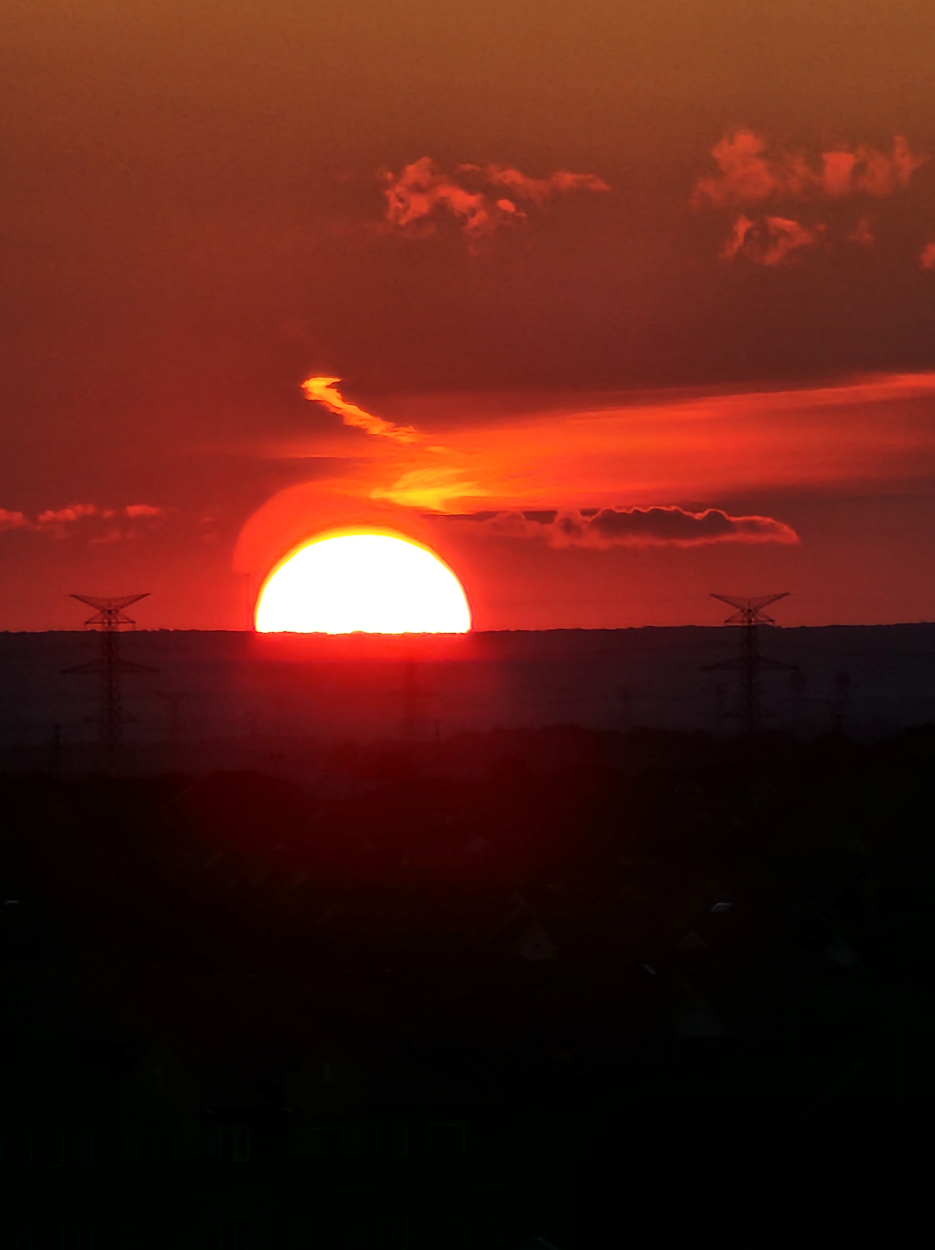 This morning, sunrise shared its golden-red light with clouds diffused gentle white