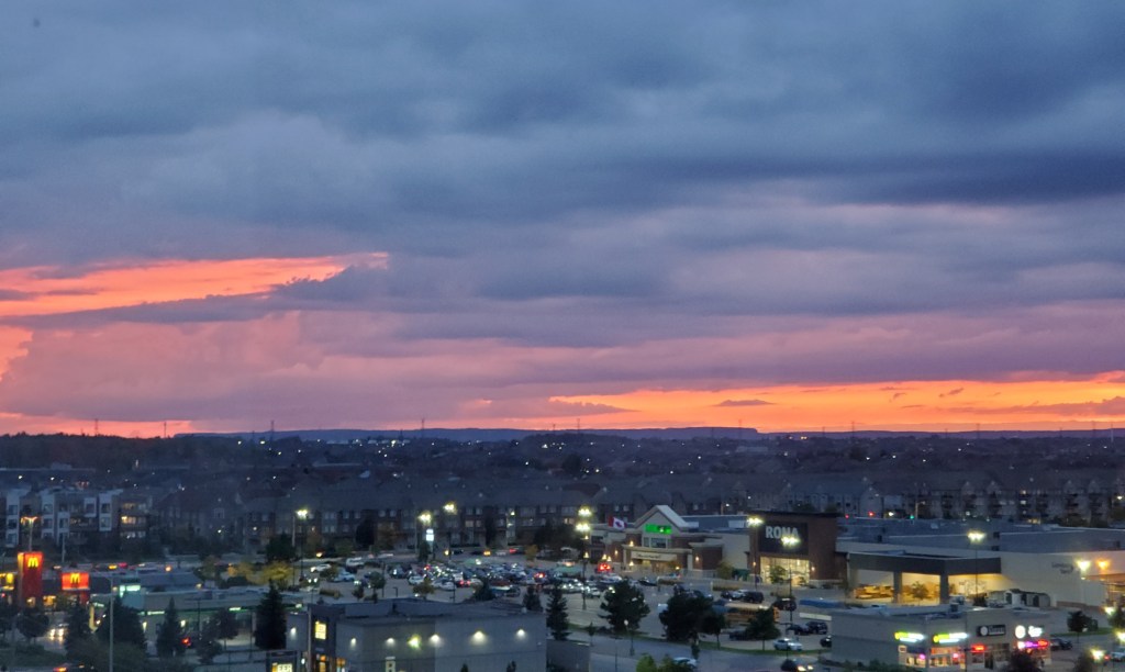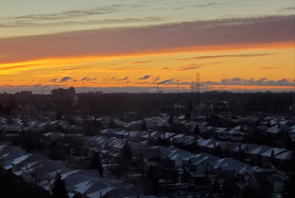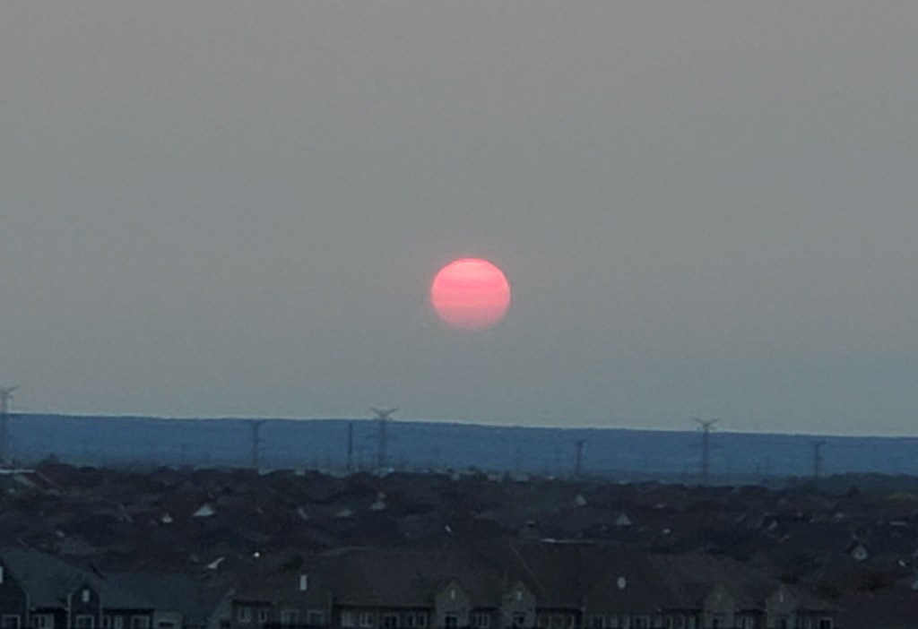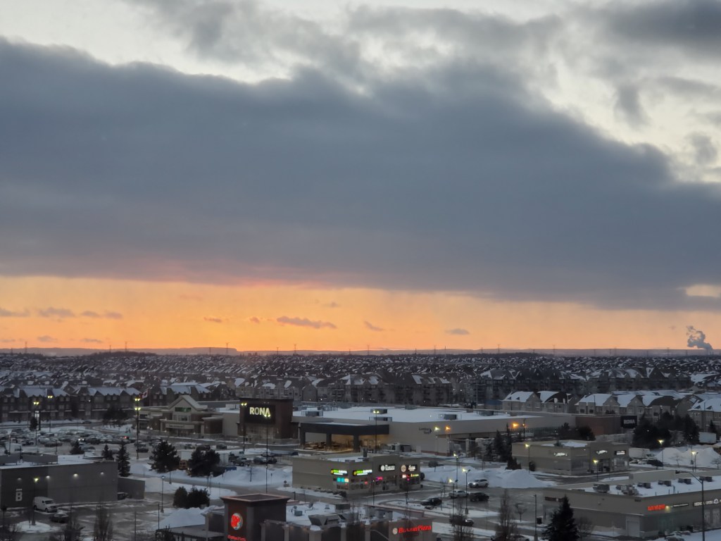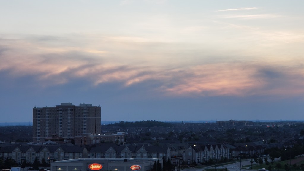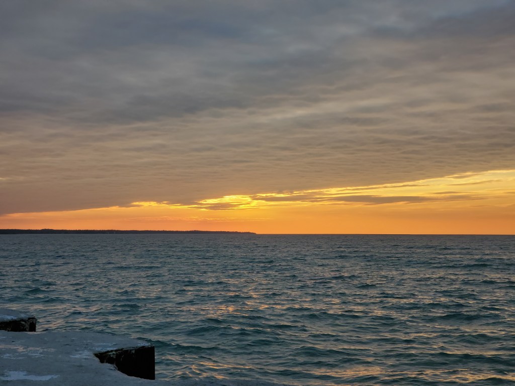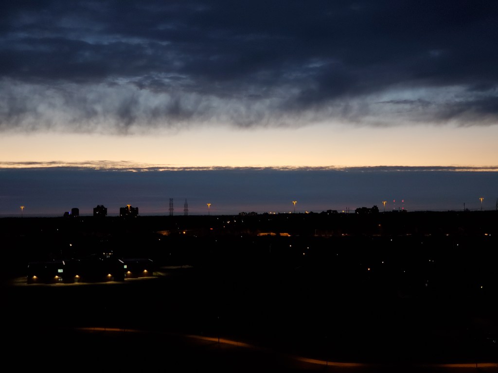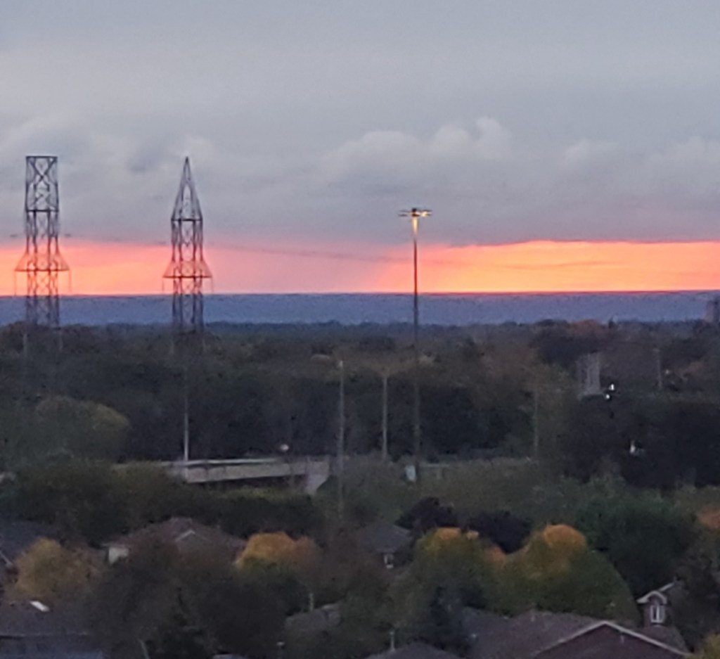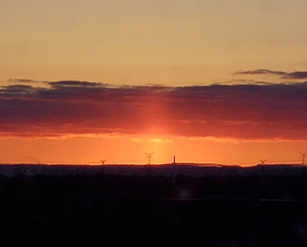 This morning, sunrise shared its golden-red light with clouds diffused gentle white