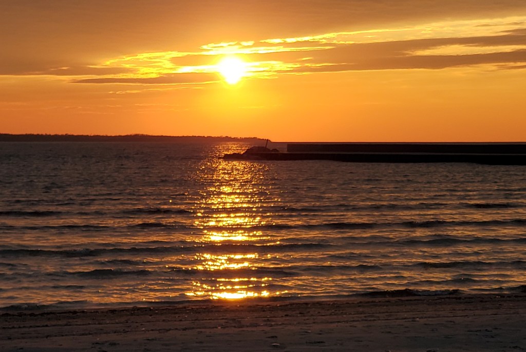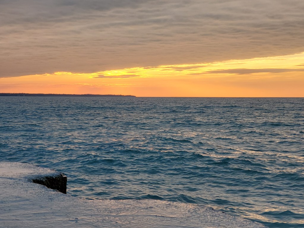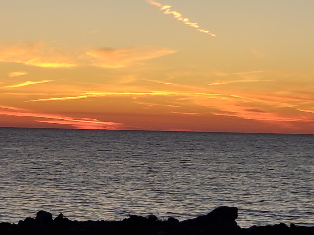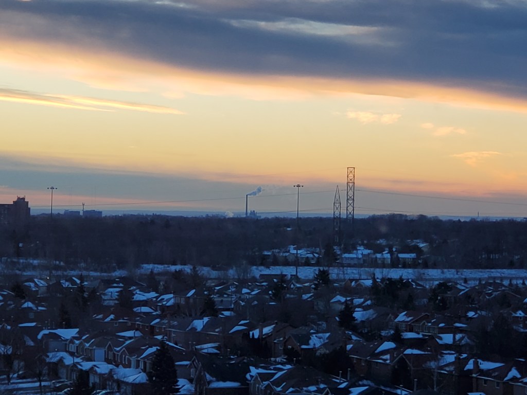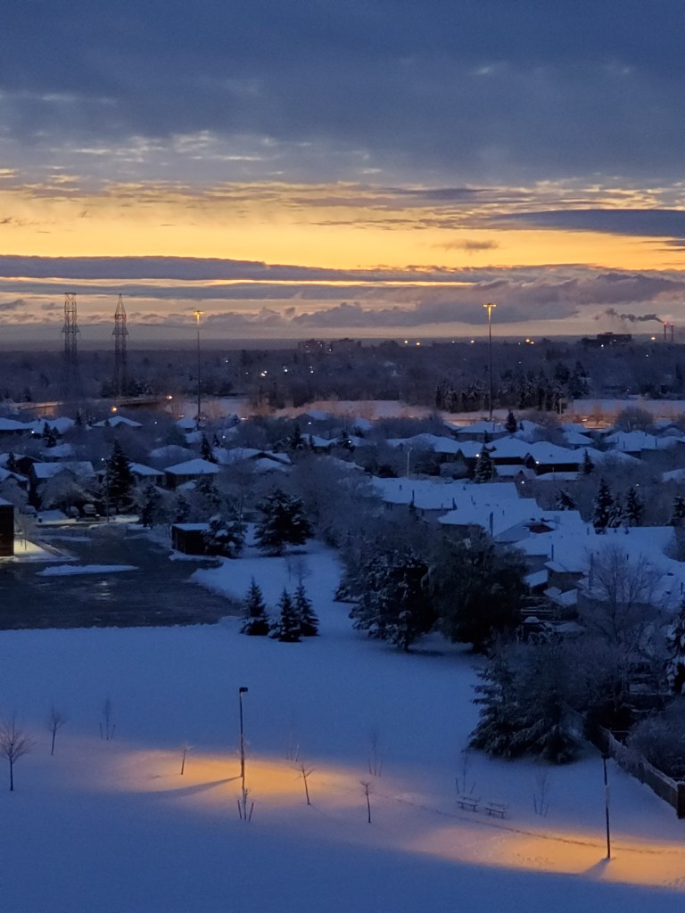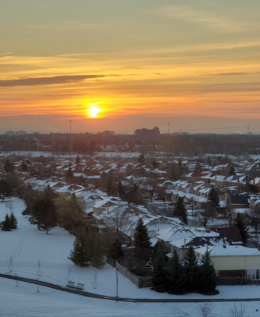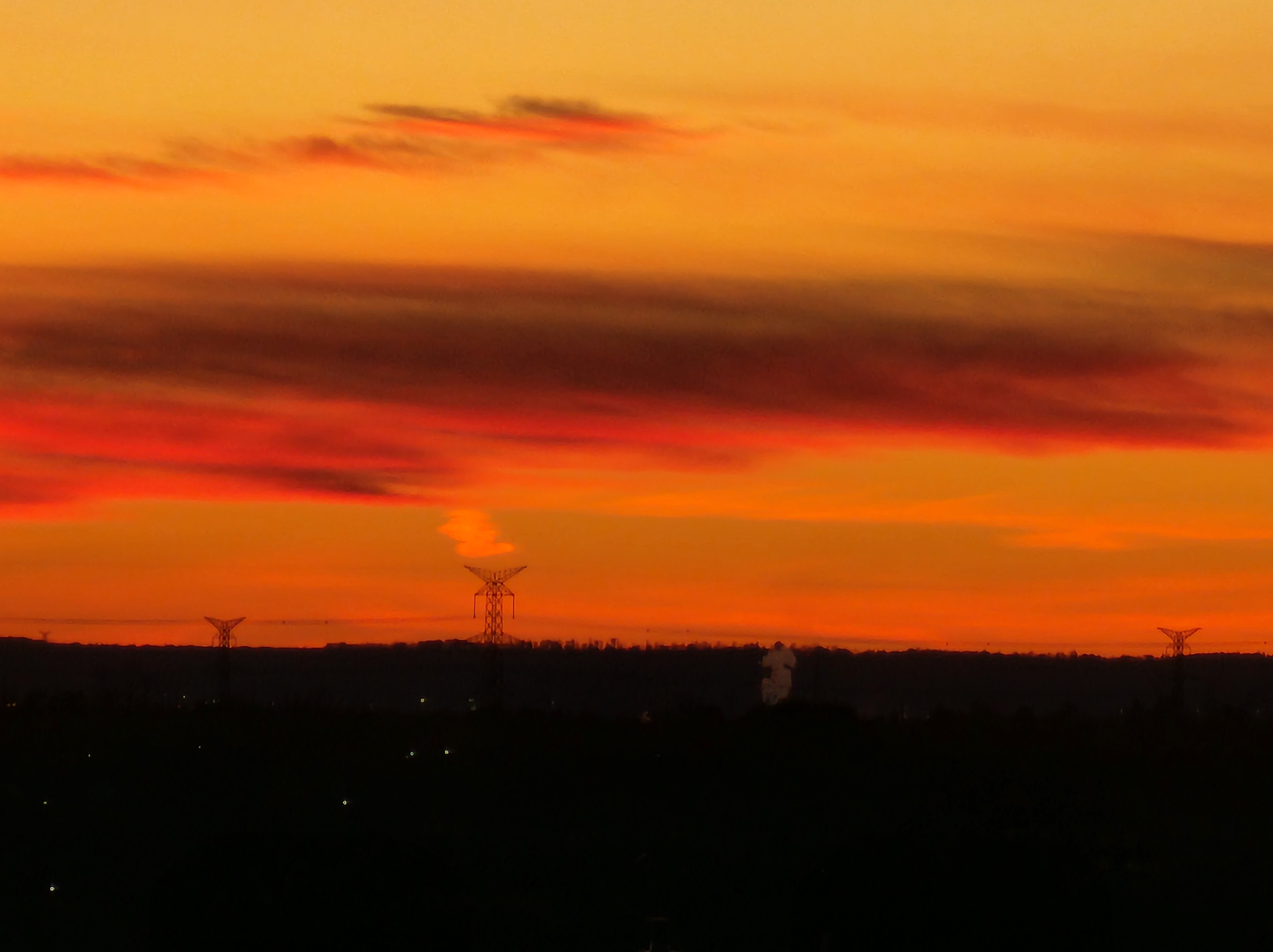 This morning, sunrise shared its golden-red light with clouds diffused gentle white