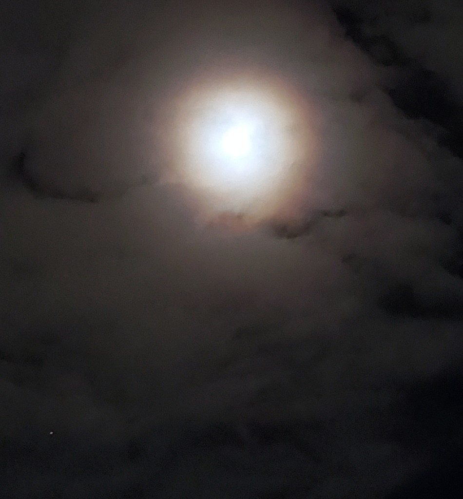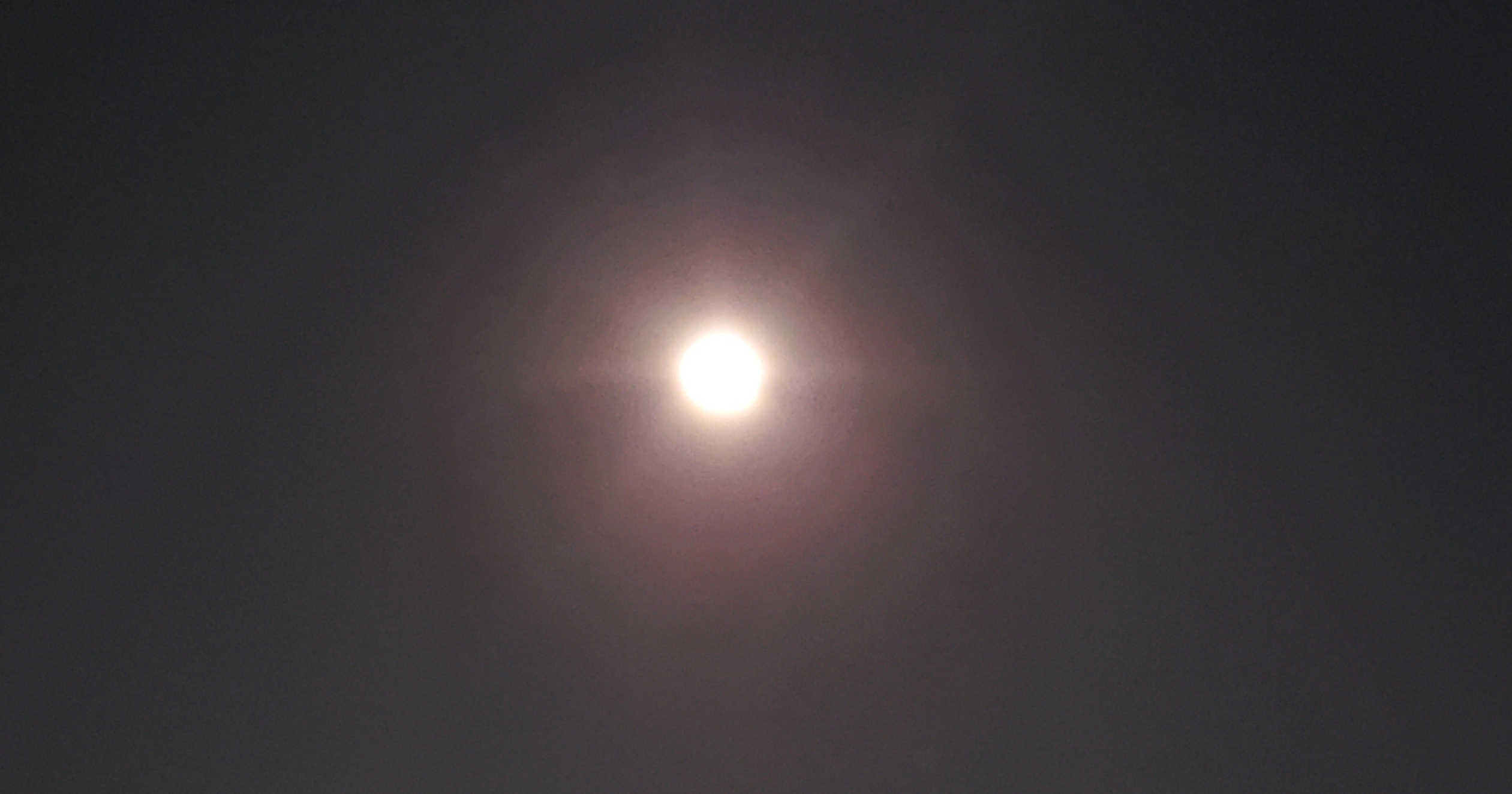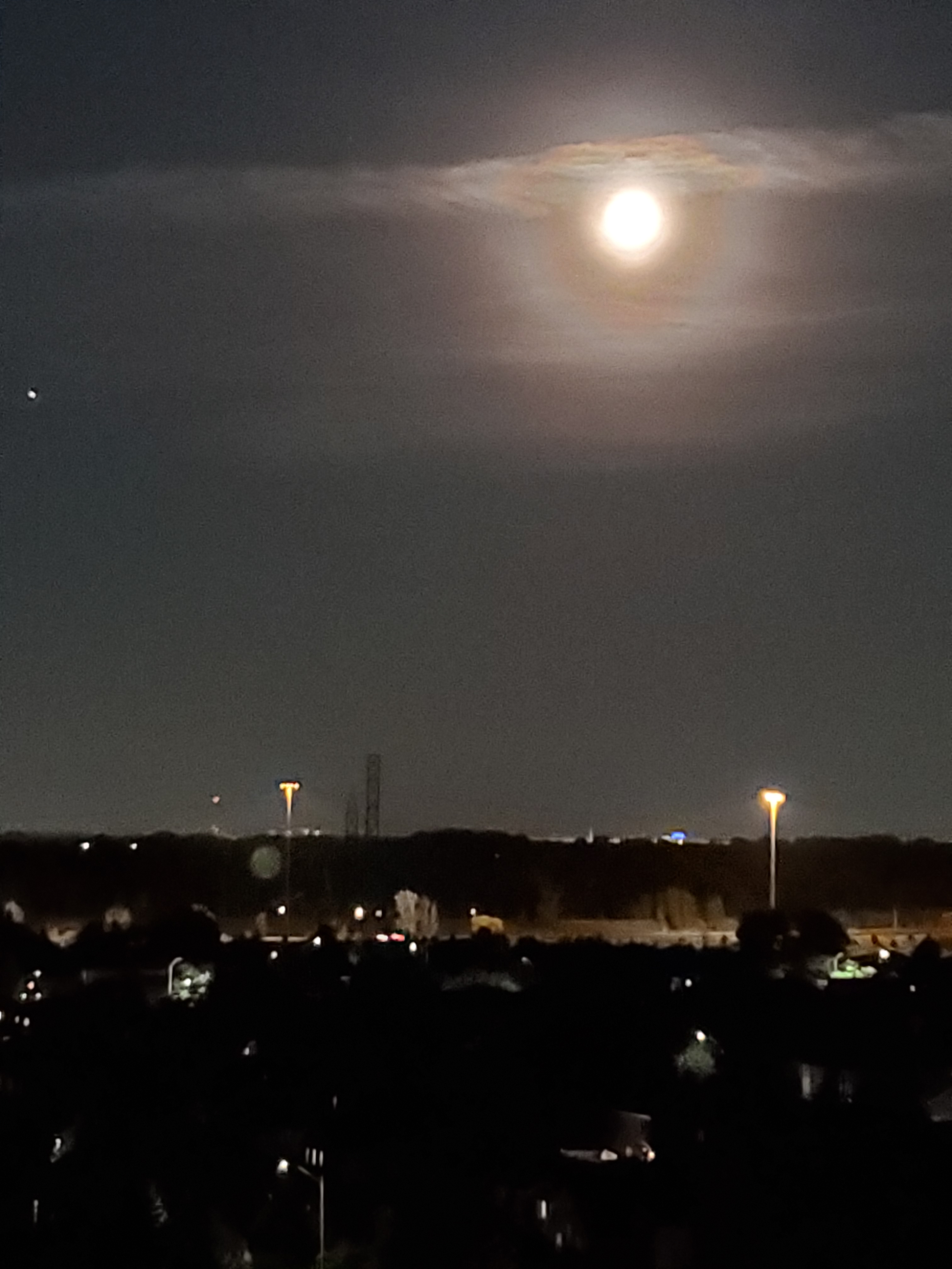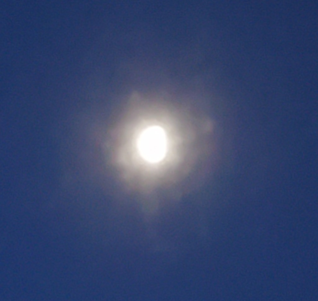 So surreal, so ethereal: golden halo around moon – such a delight!